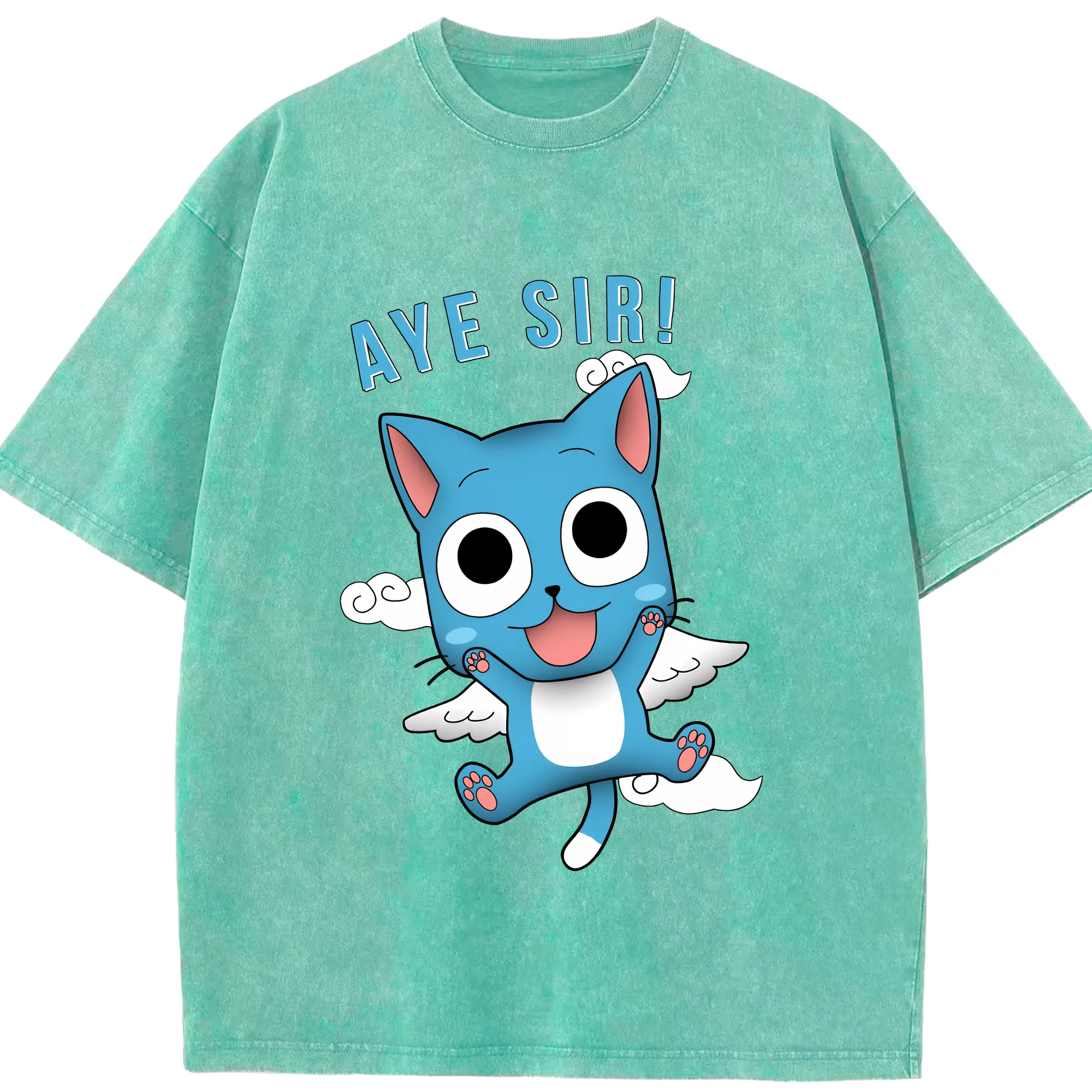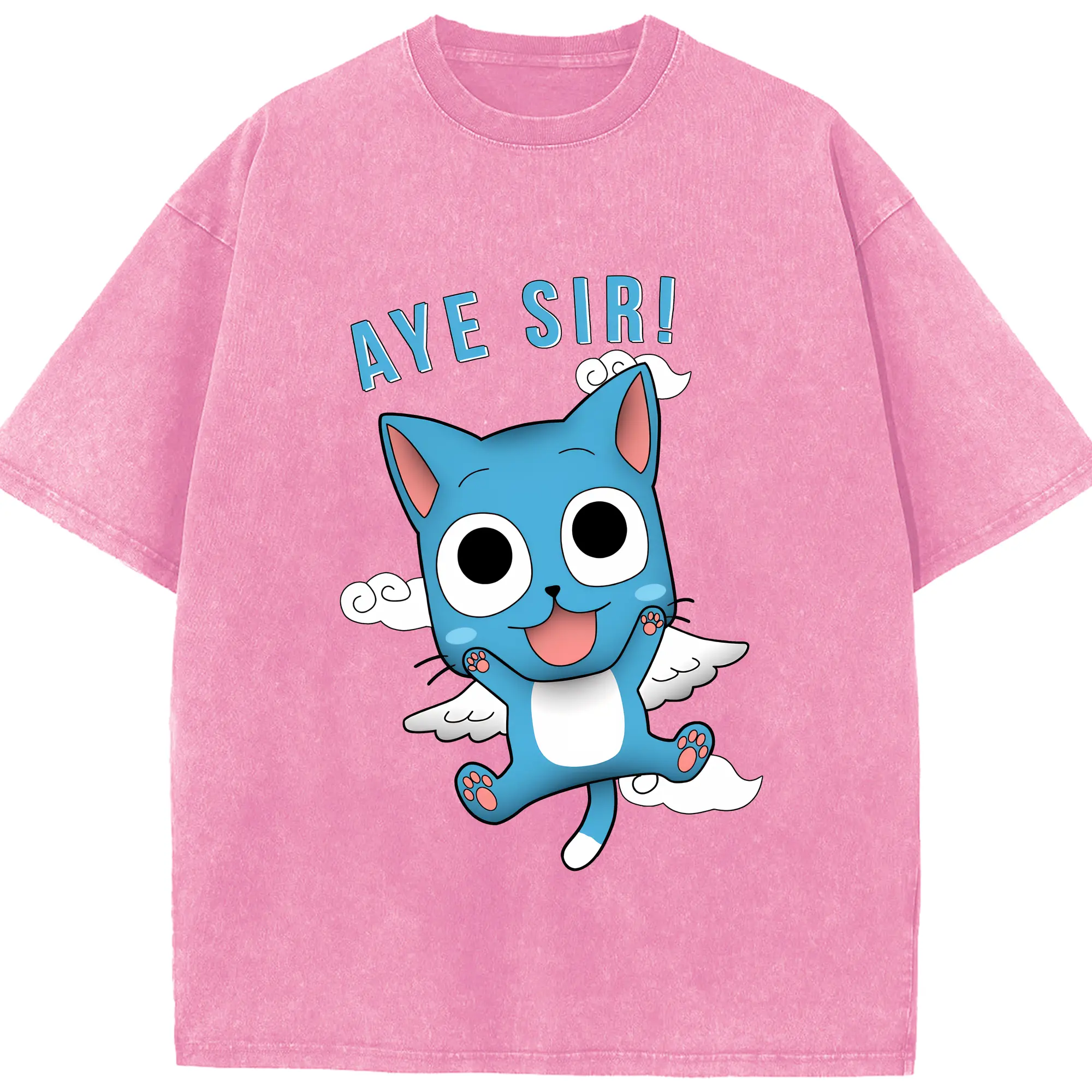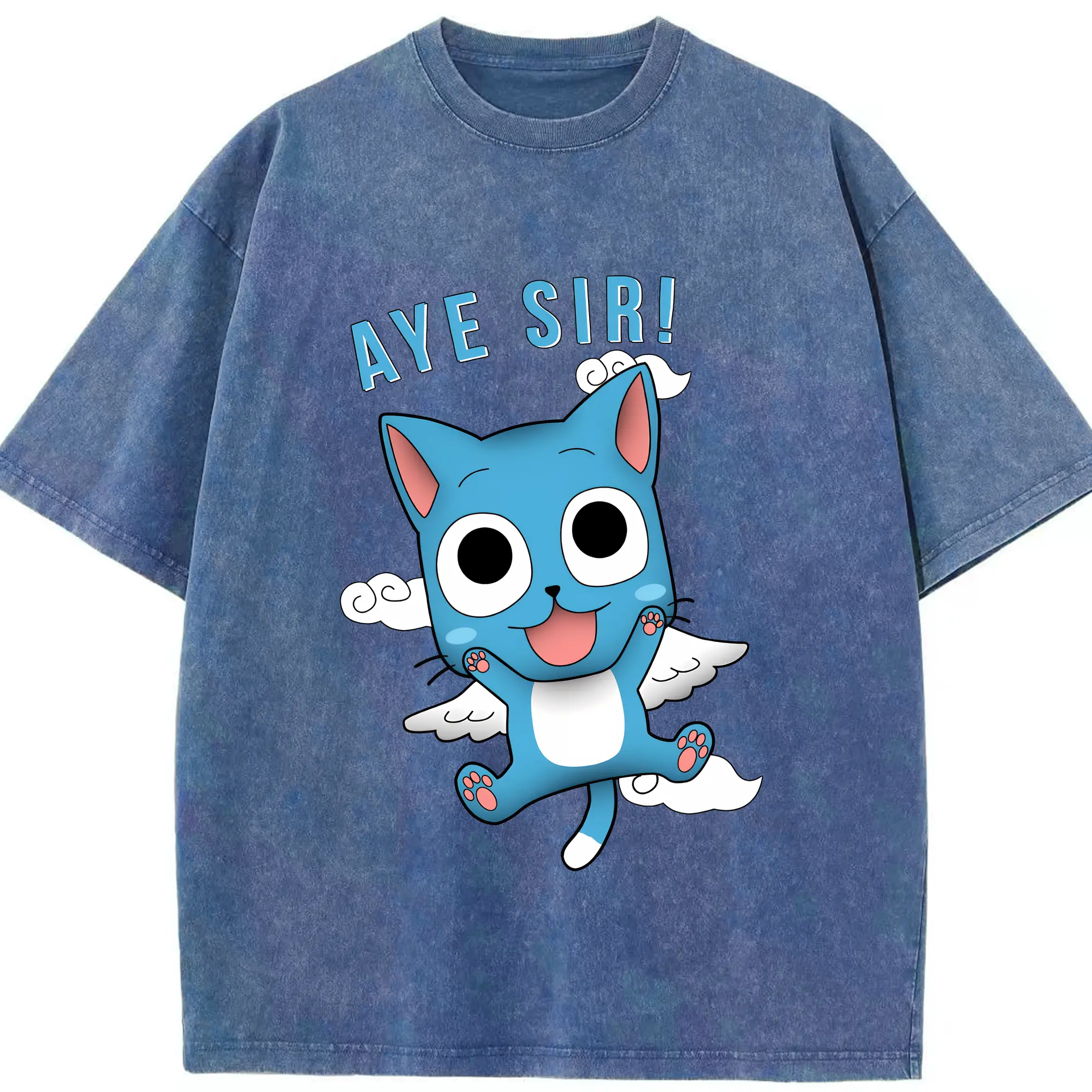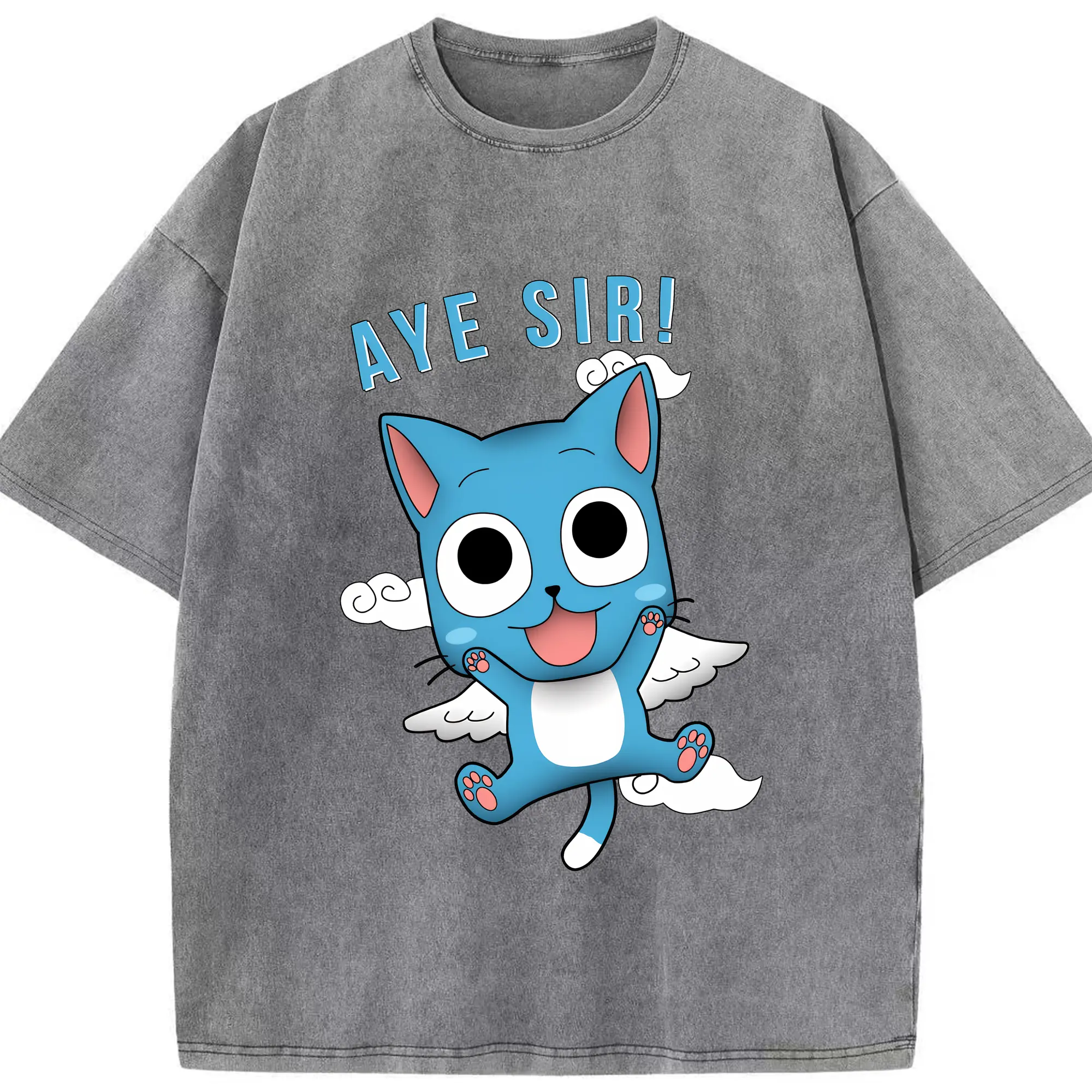 フェアリーテイル グッズ ハッピー - 綿100% ヴィンテージ風 半袖Tシャツ ・ 背面プリント ・ 柔らか肌触り ・ 通気性 快適 ・ スポーツ カジュアル 外出用