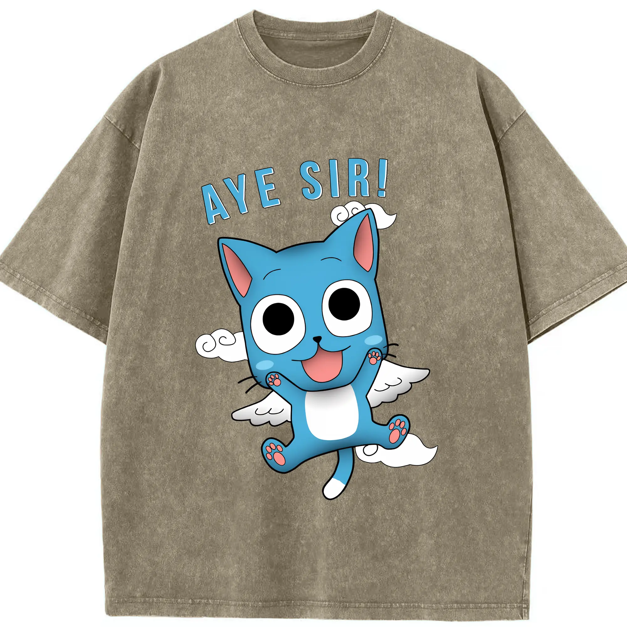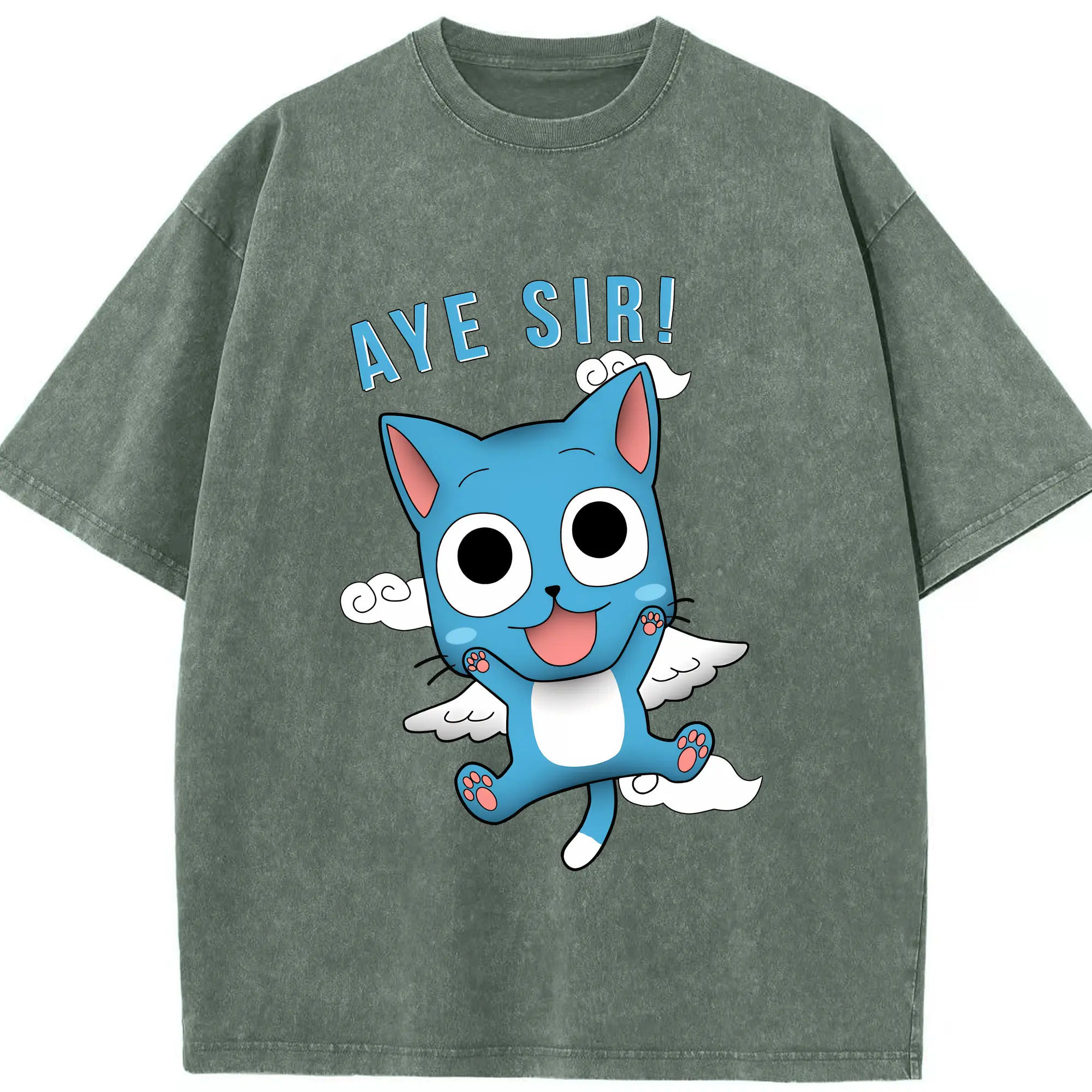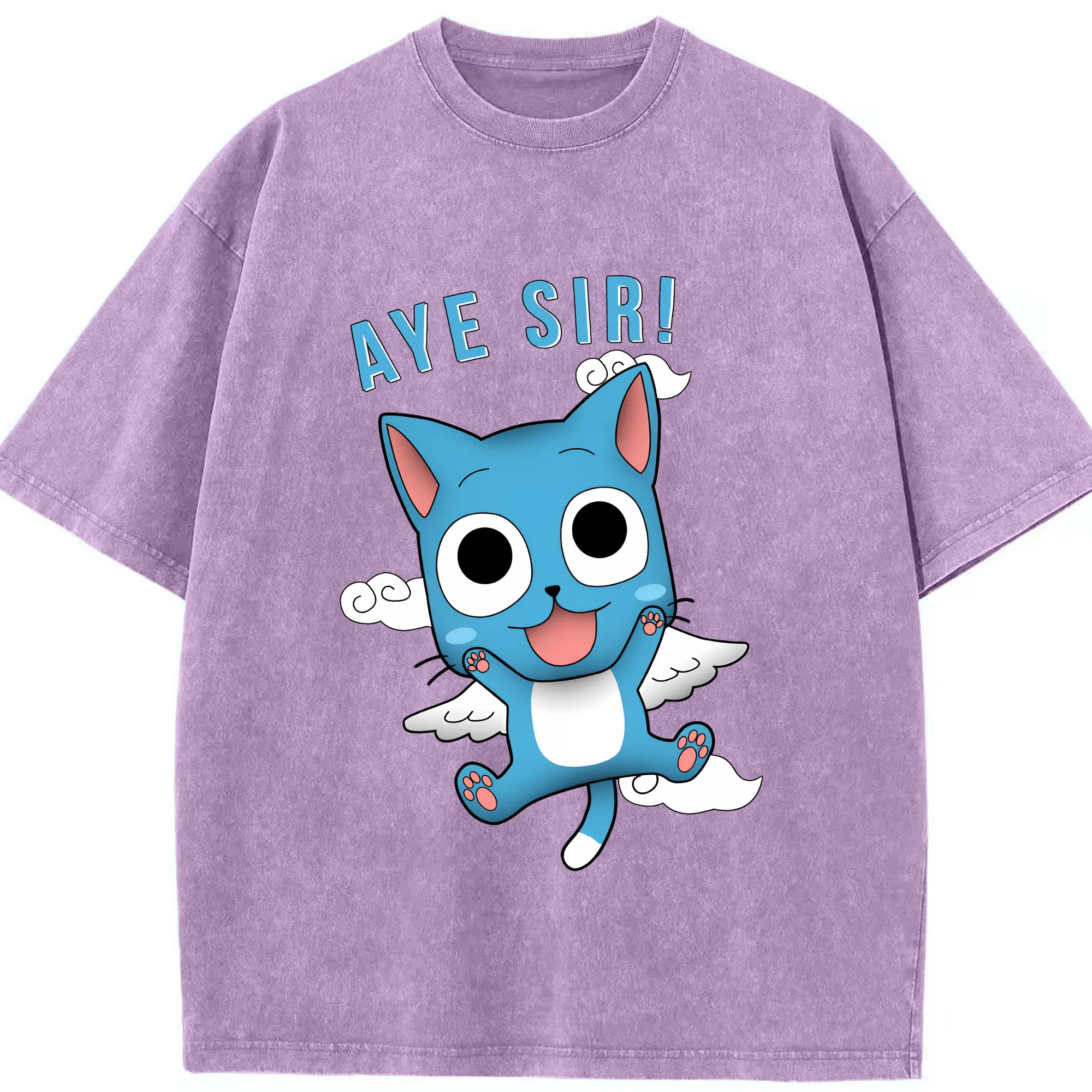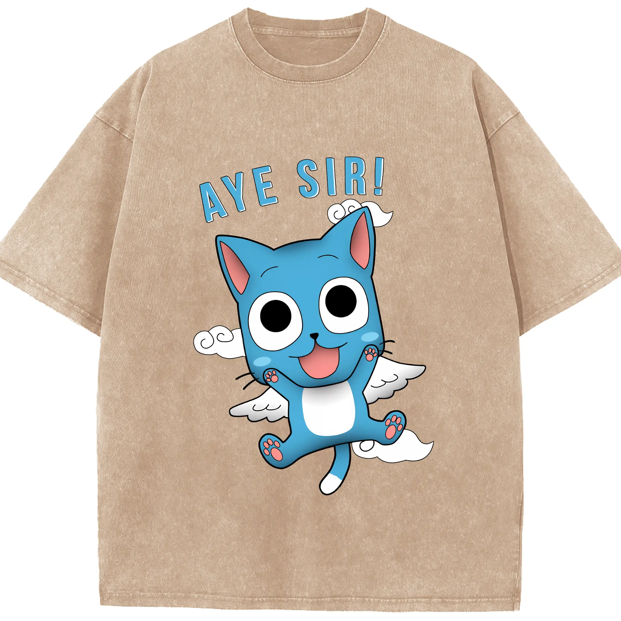 フェアリーテイル グッズ ハッピー - 綿100% ヴィンテージ風 半袖Tシャツ ・ 背面プリント ・ 柔らか肌触り ・ 通気性 快適 ・ スポーツ カジュアル 外出用