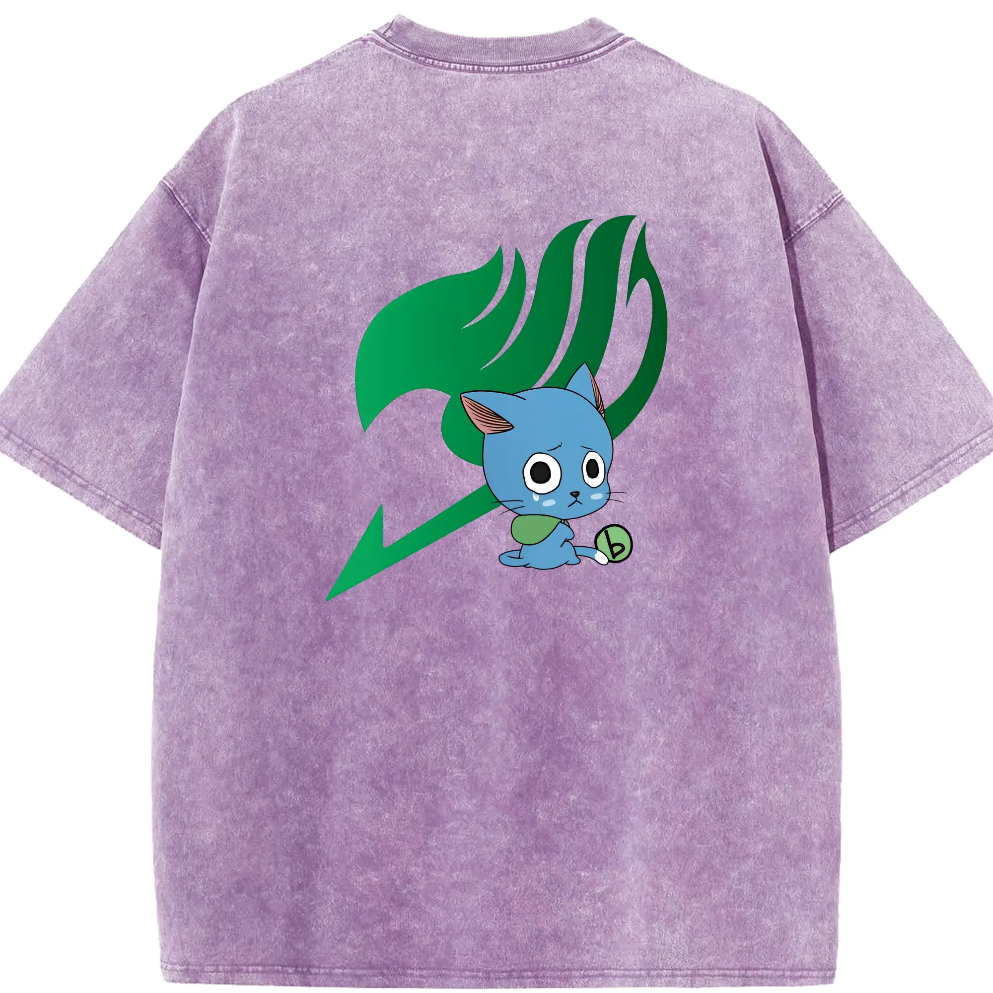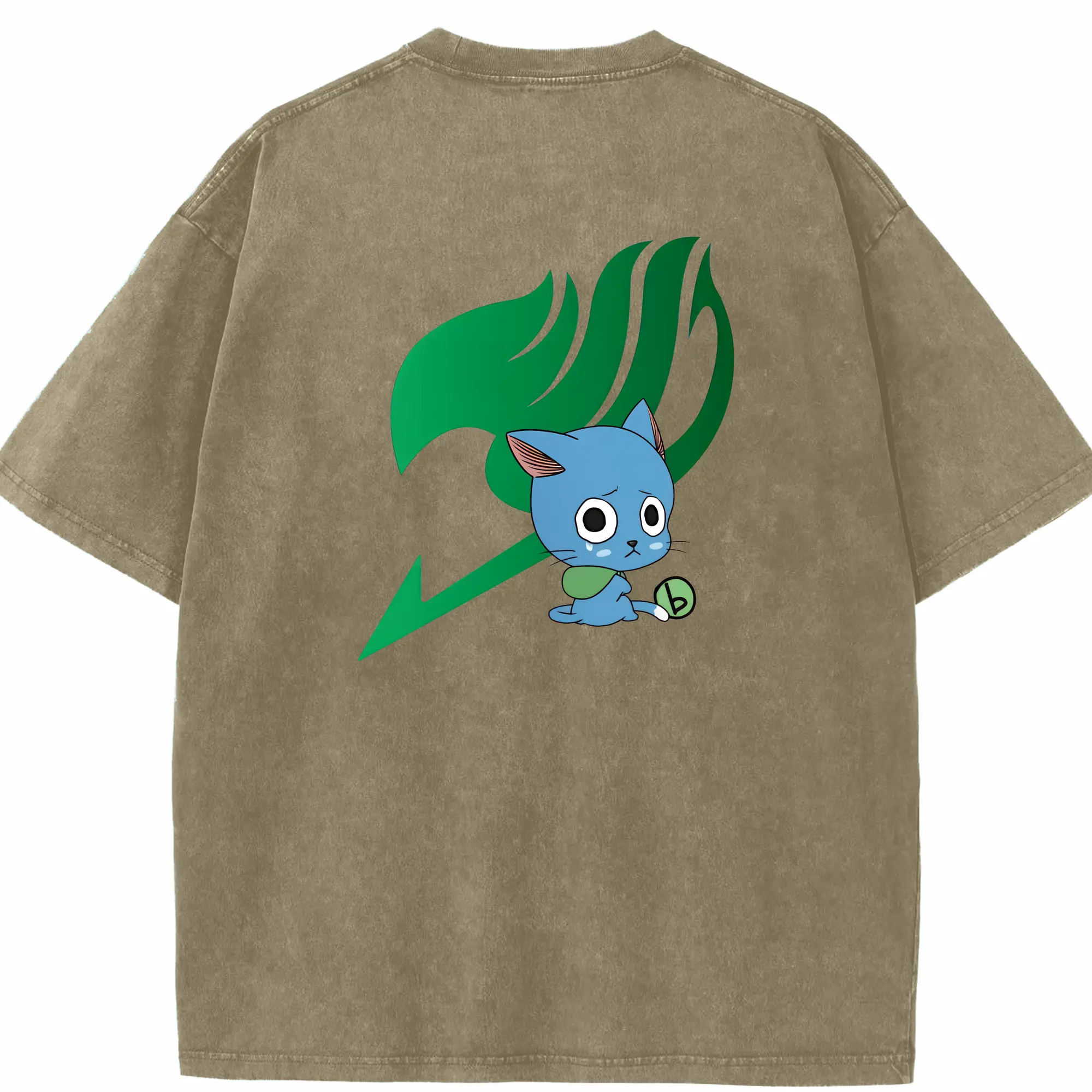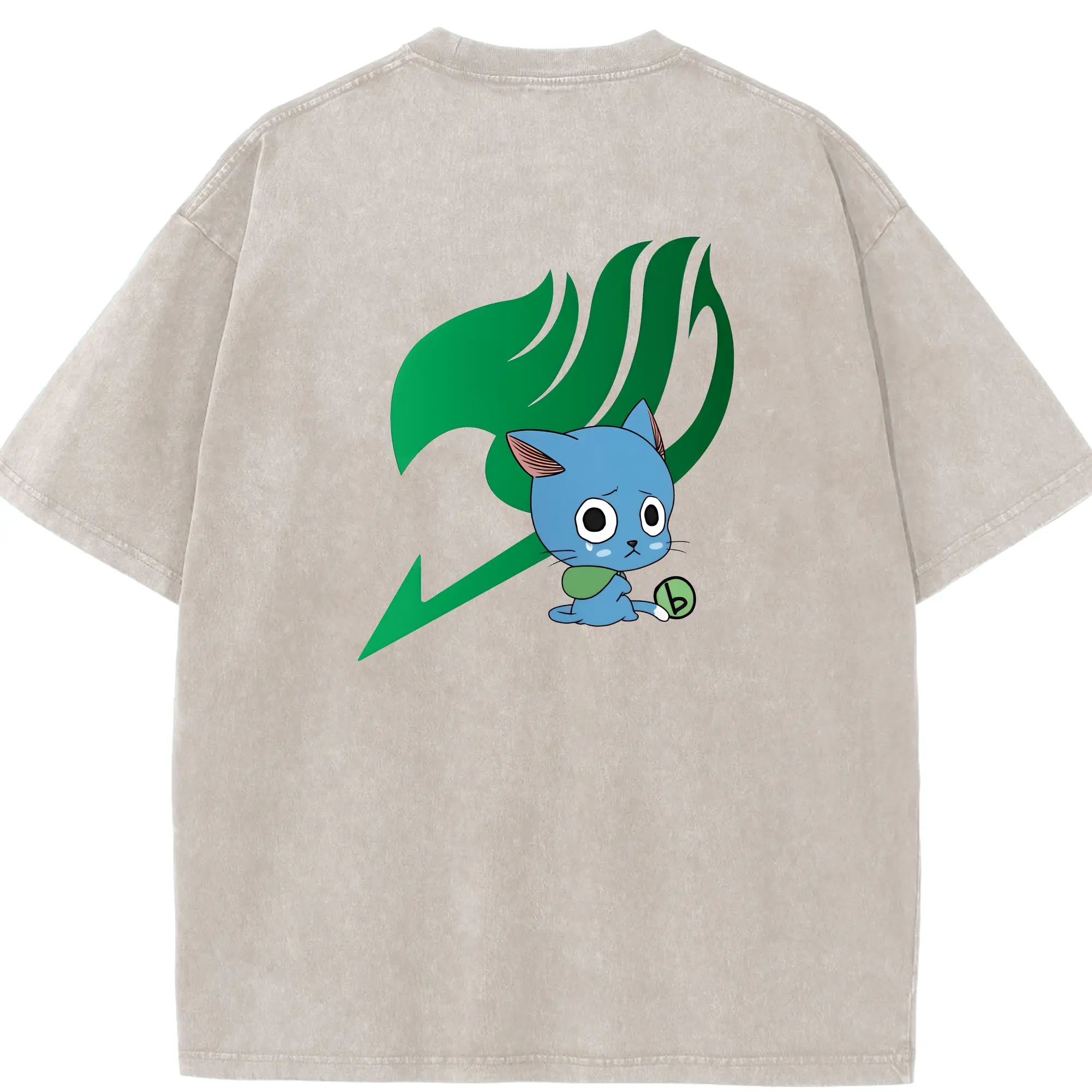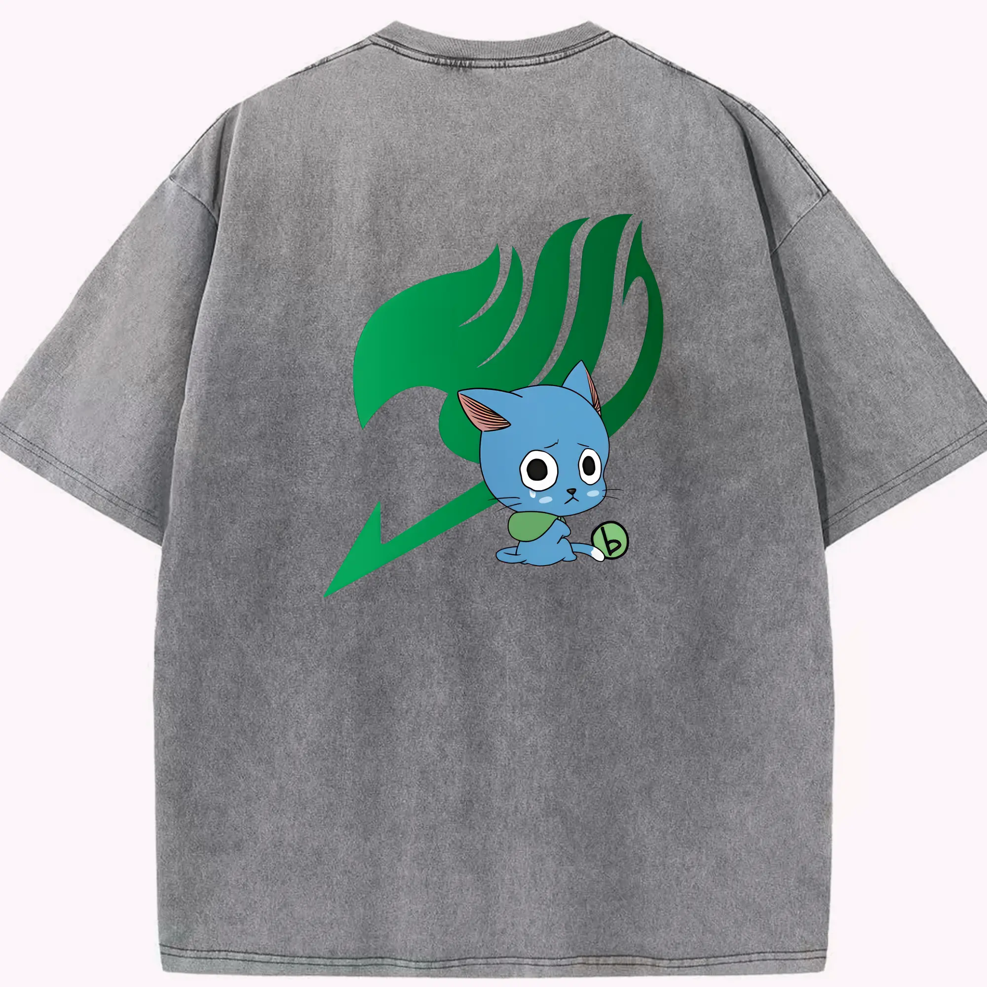 フェアリーテイル グッズ ハッピー - 綿100% ヴィンテージ風 半袖Tシャツ ・ フロントプリント ・ 柔らか肌触り ・ 通気性 快適 ・ スポーツ カジュアル 外出用