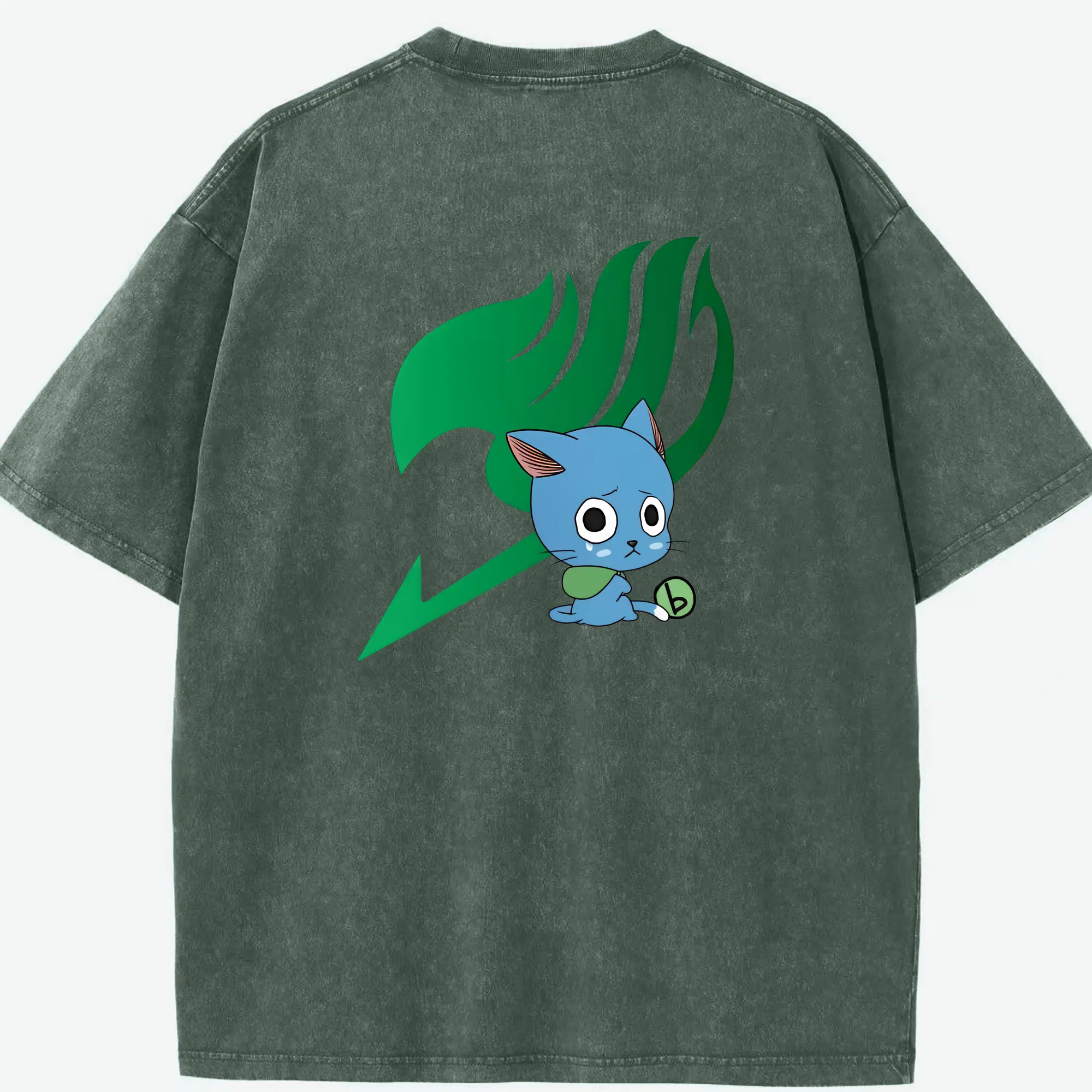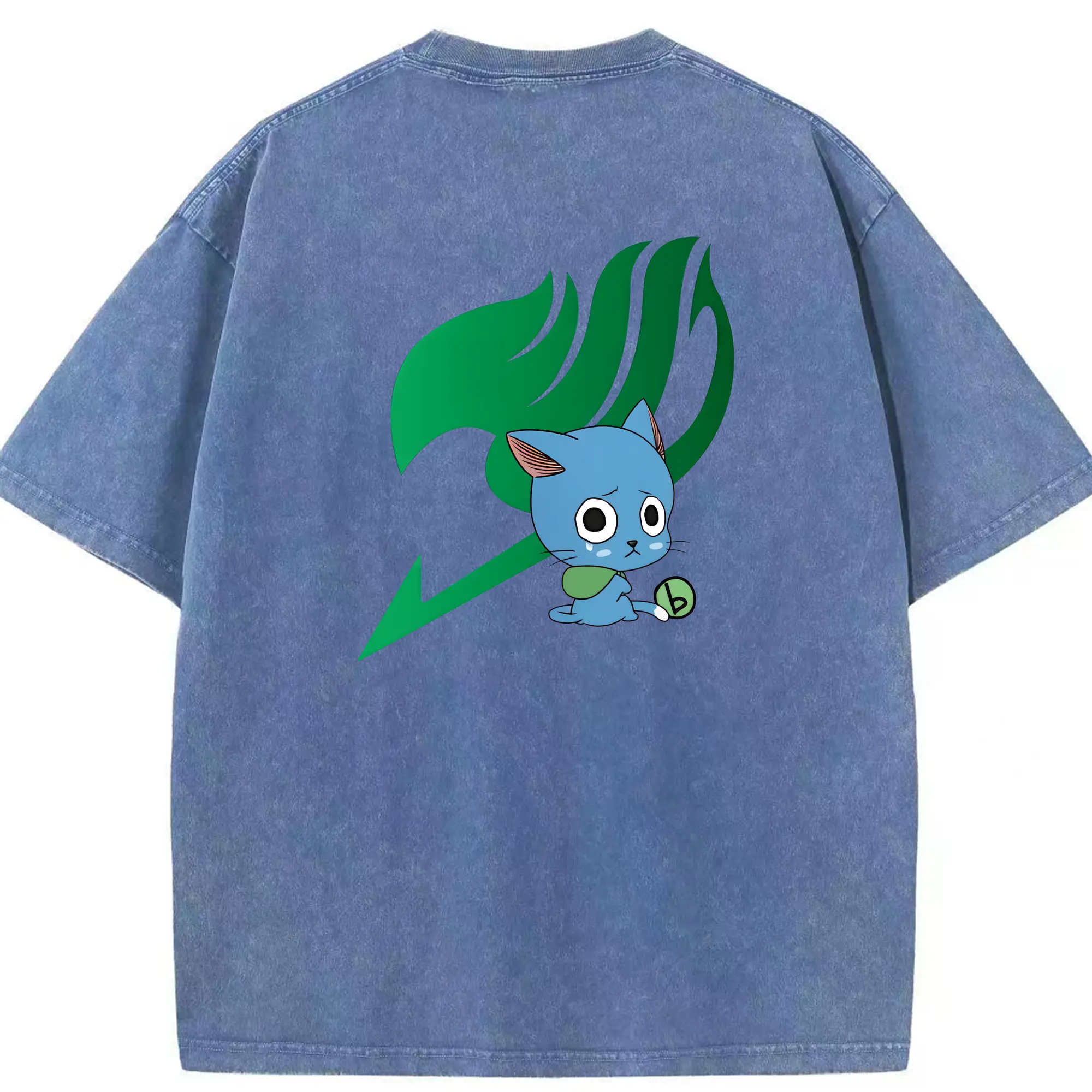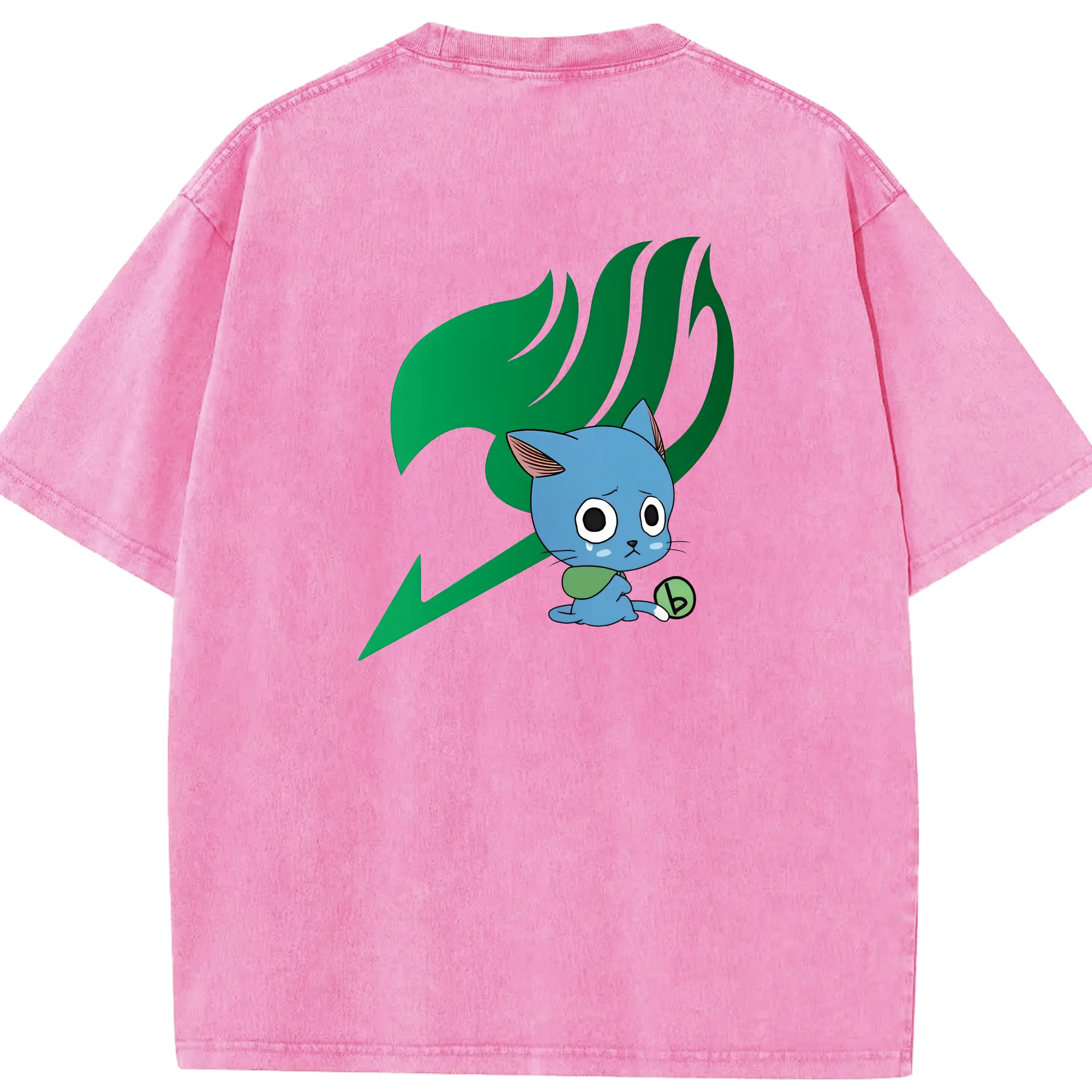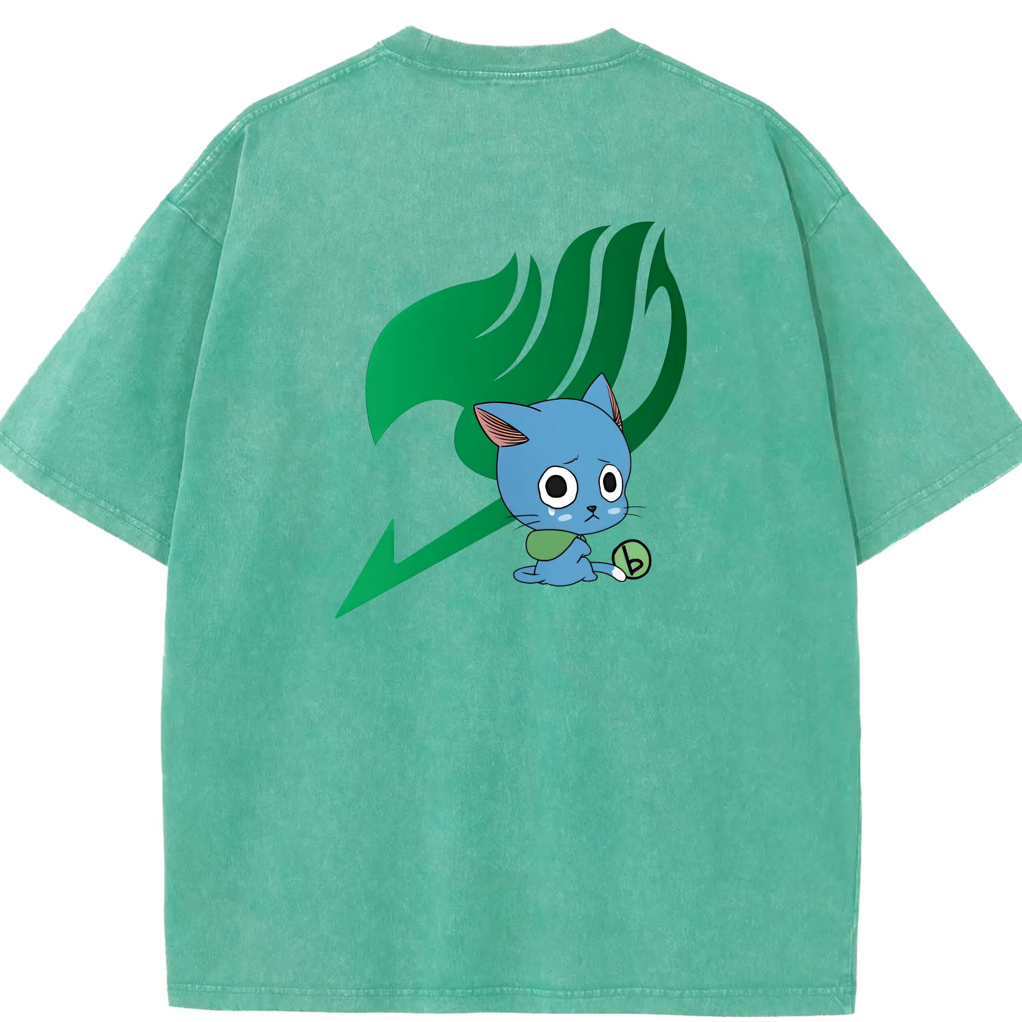 フェアリーテイル グッズ ハッピー - 綿100% ヴィンテージ風 半袖Tシャツ ・ フロントプリント ・ 柔らか肌触り ・ 通気性 快適 ・ スポーツ カジュアル 外出用
