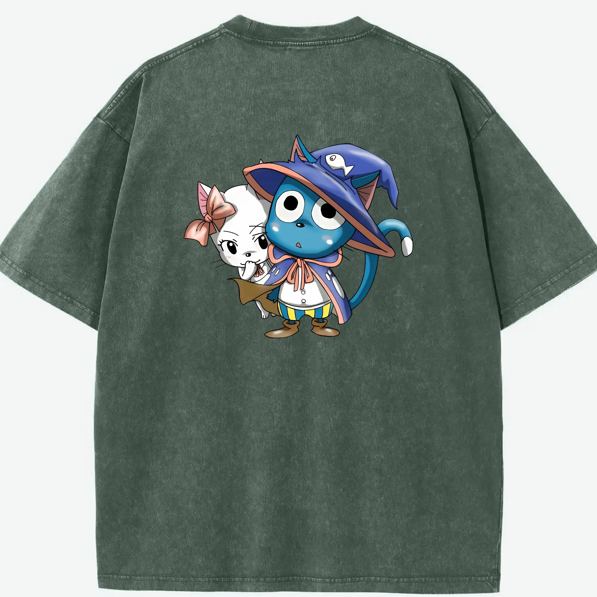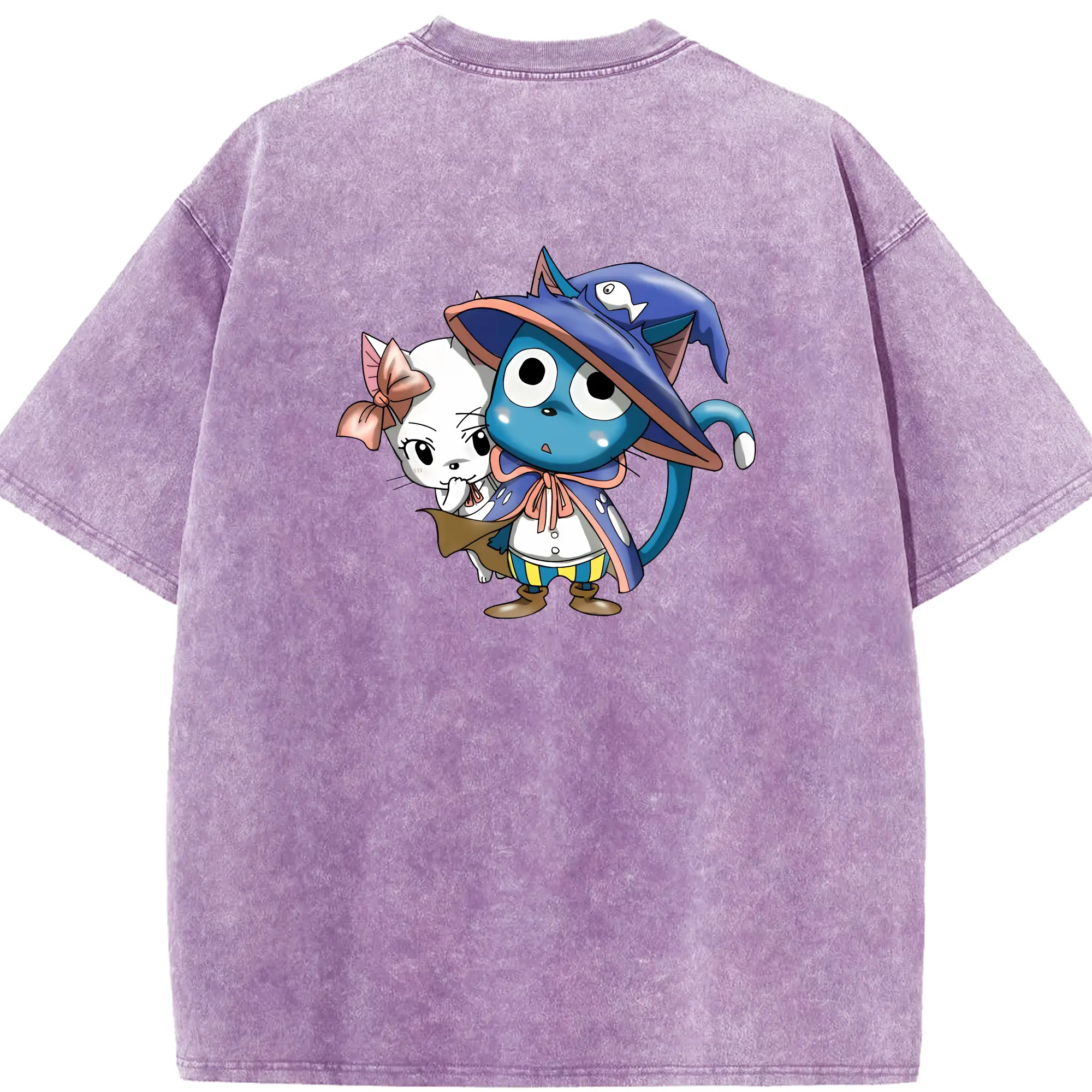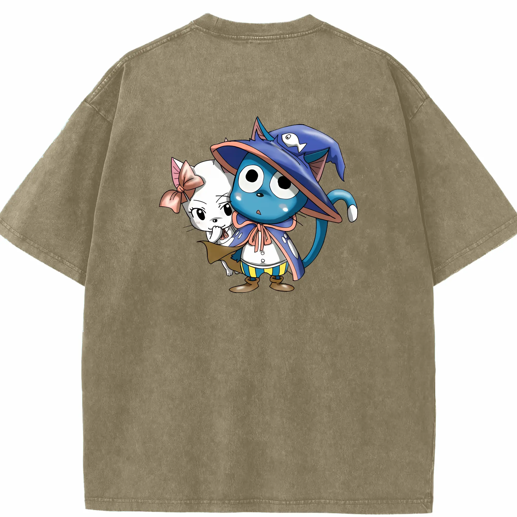 フェアリーテイル グッズ ハッピー - 綿100% ヴィンテージ風 半袖Tシャツ ・ フロントプリント ・ 柔らか肌触り ・ 通気性 快適 ・ スポーツ カジュアル 外出用