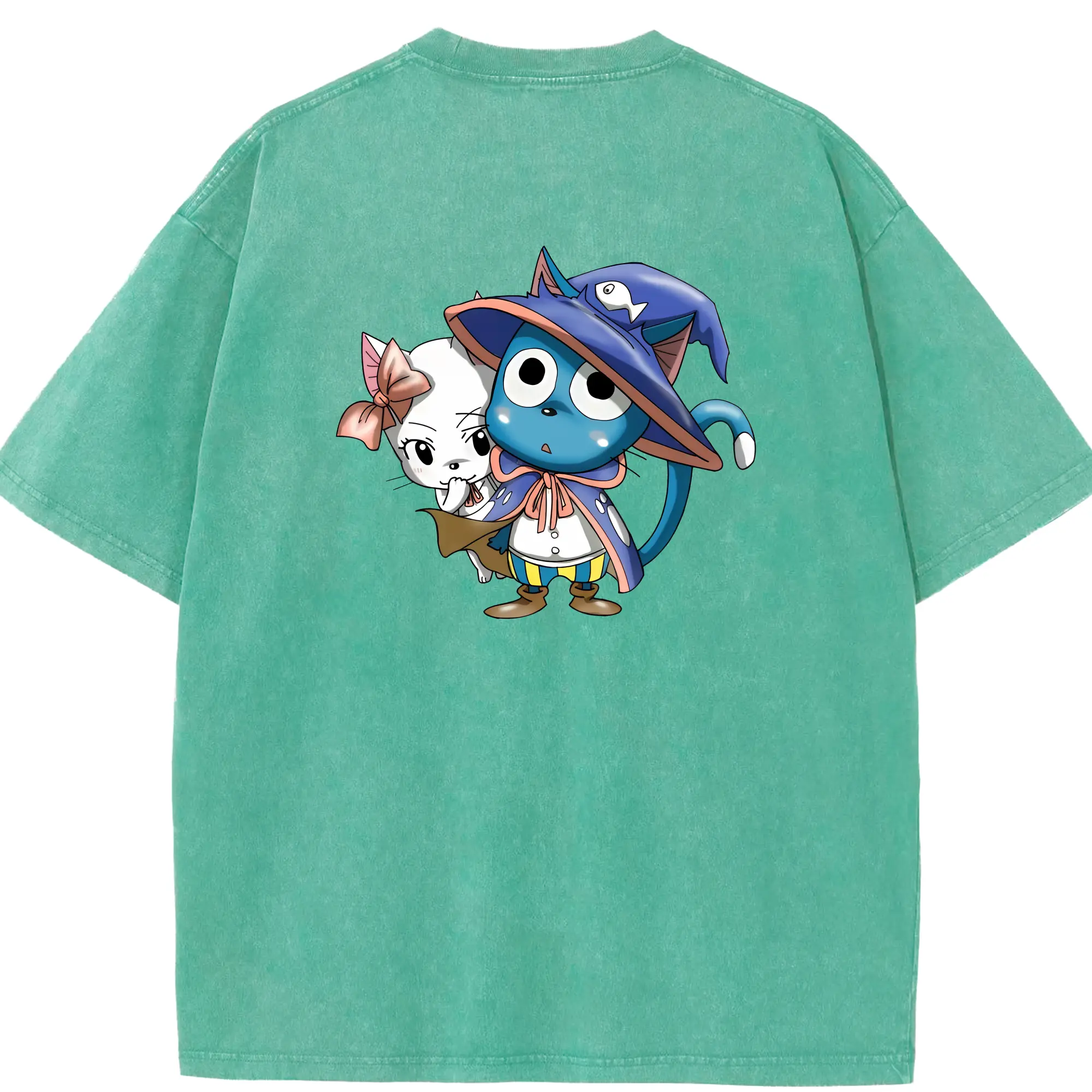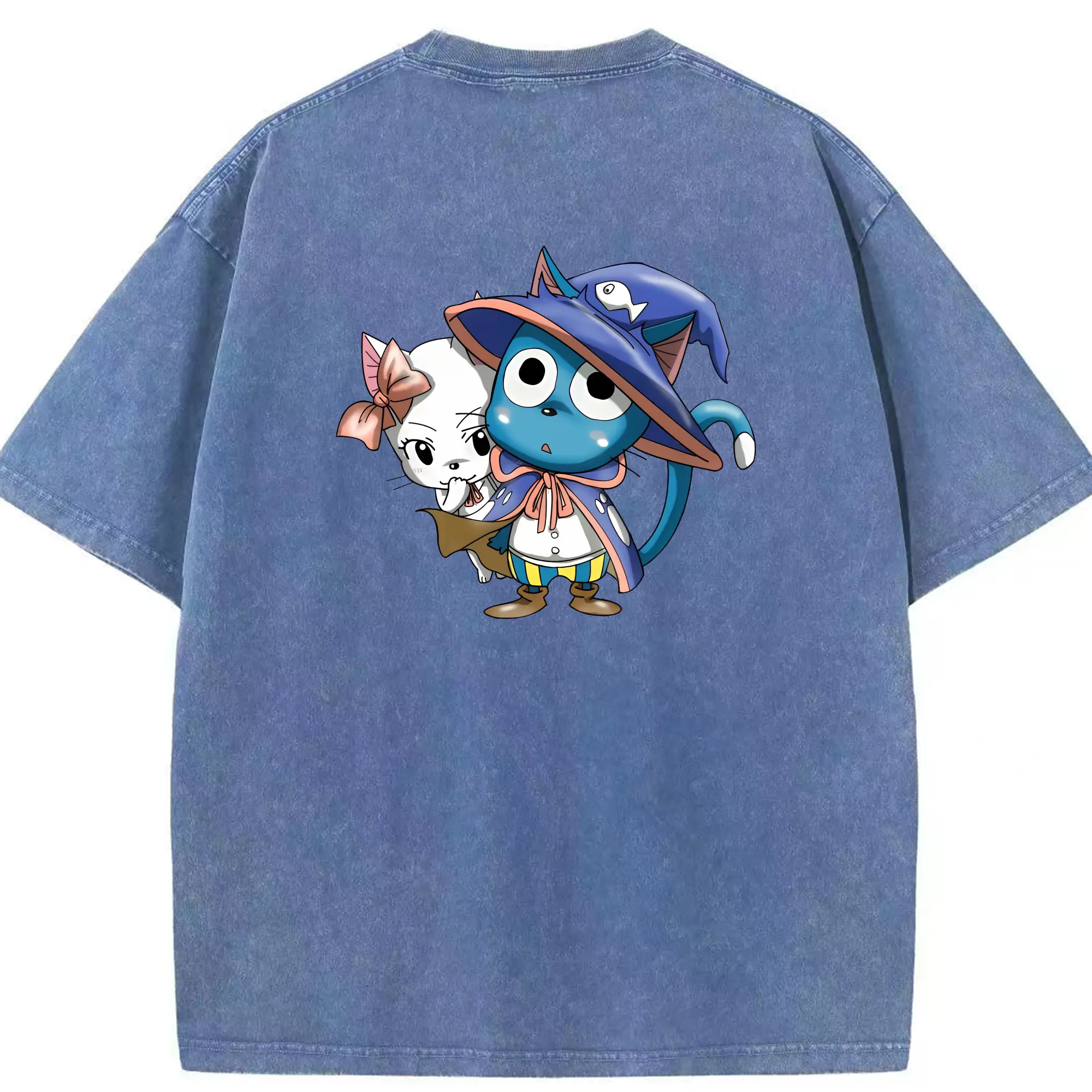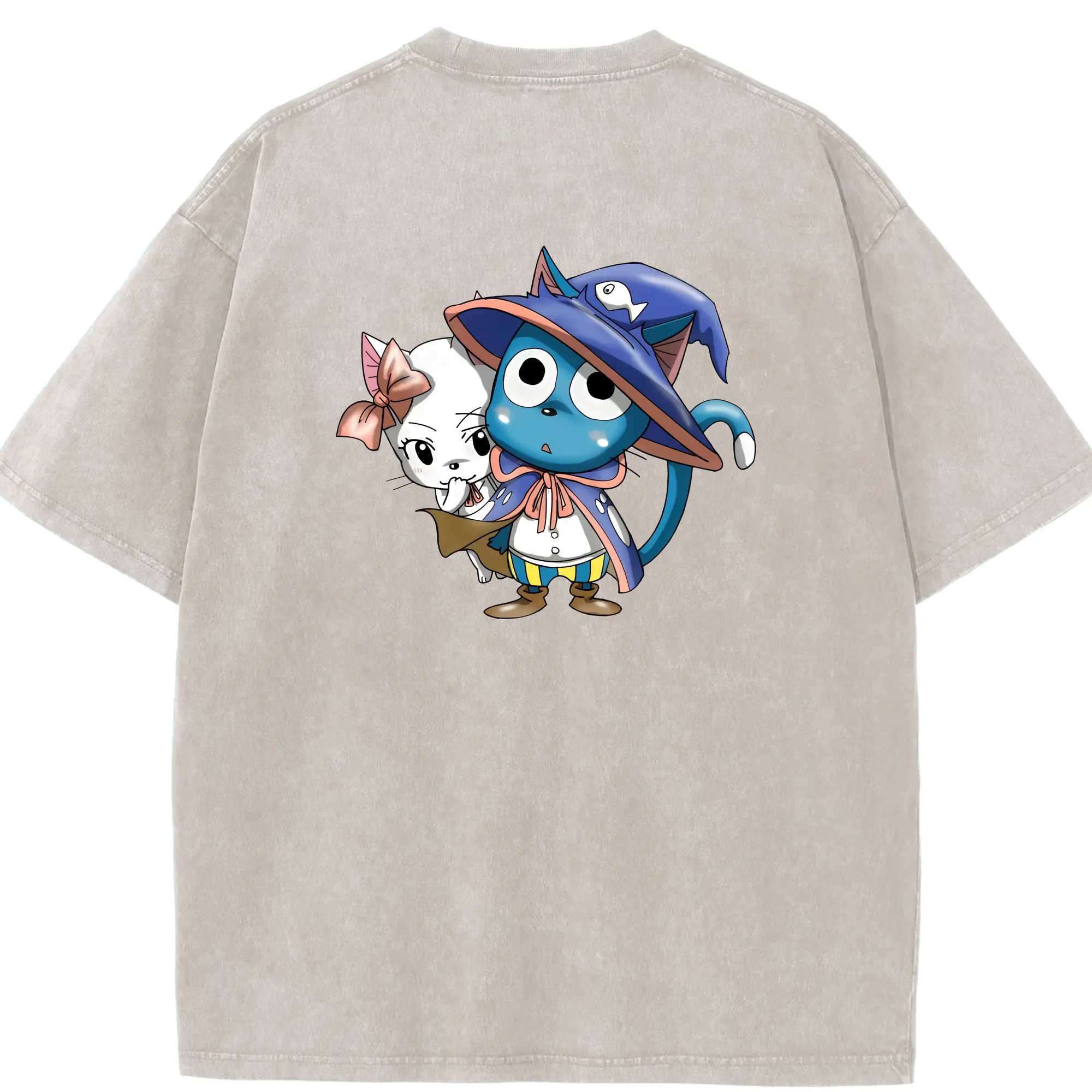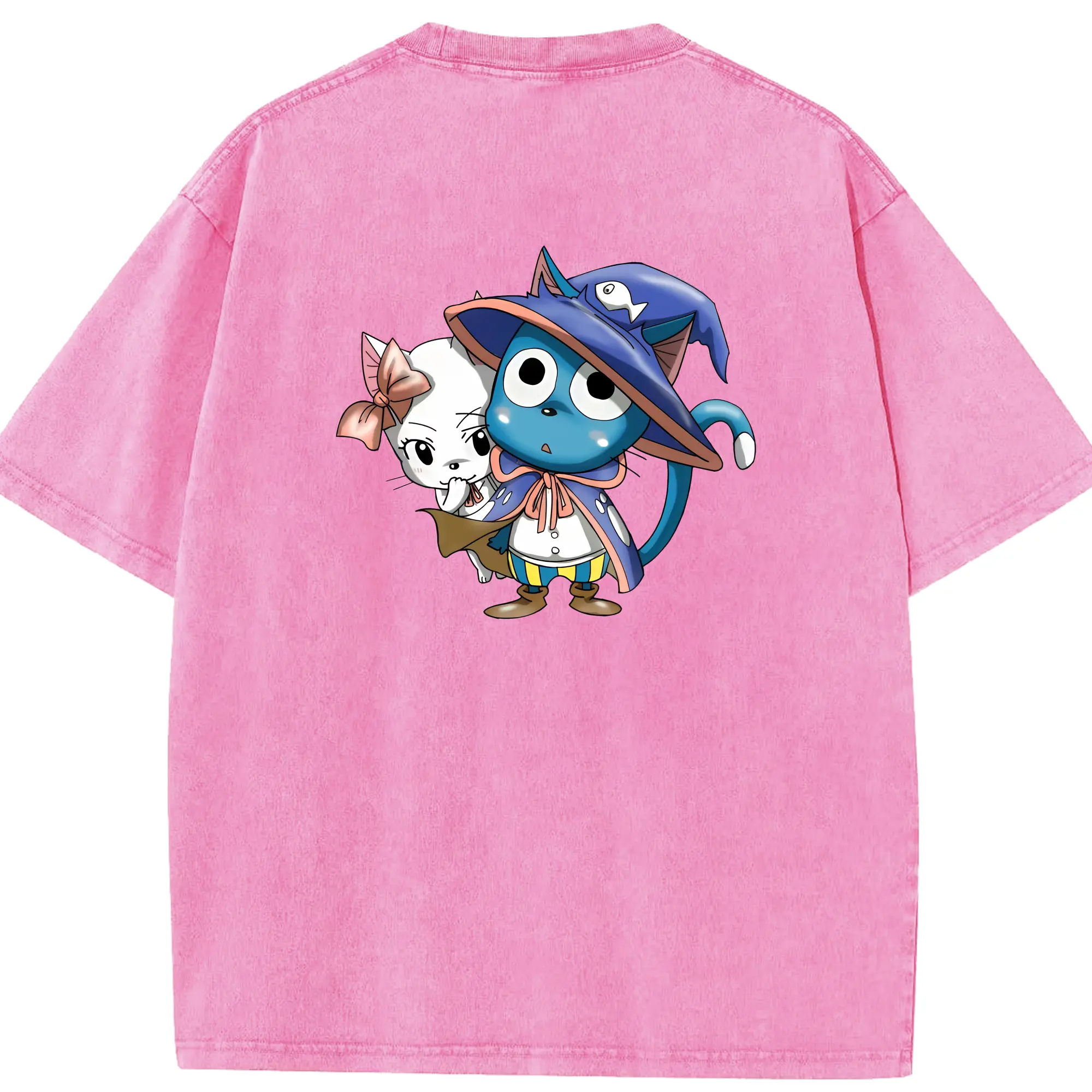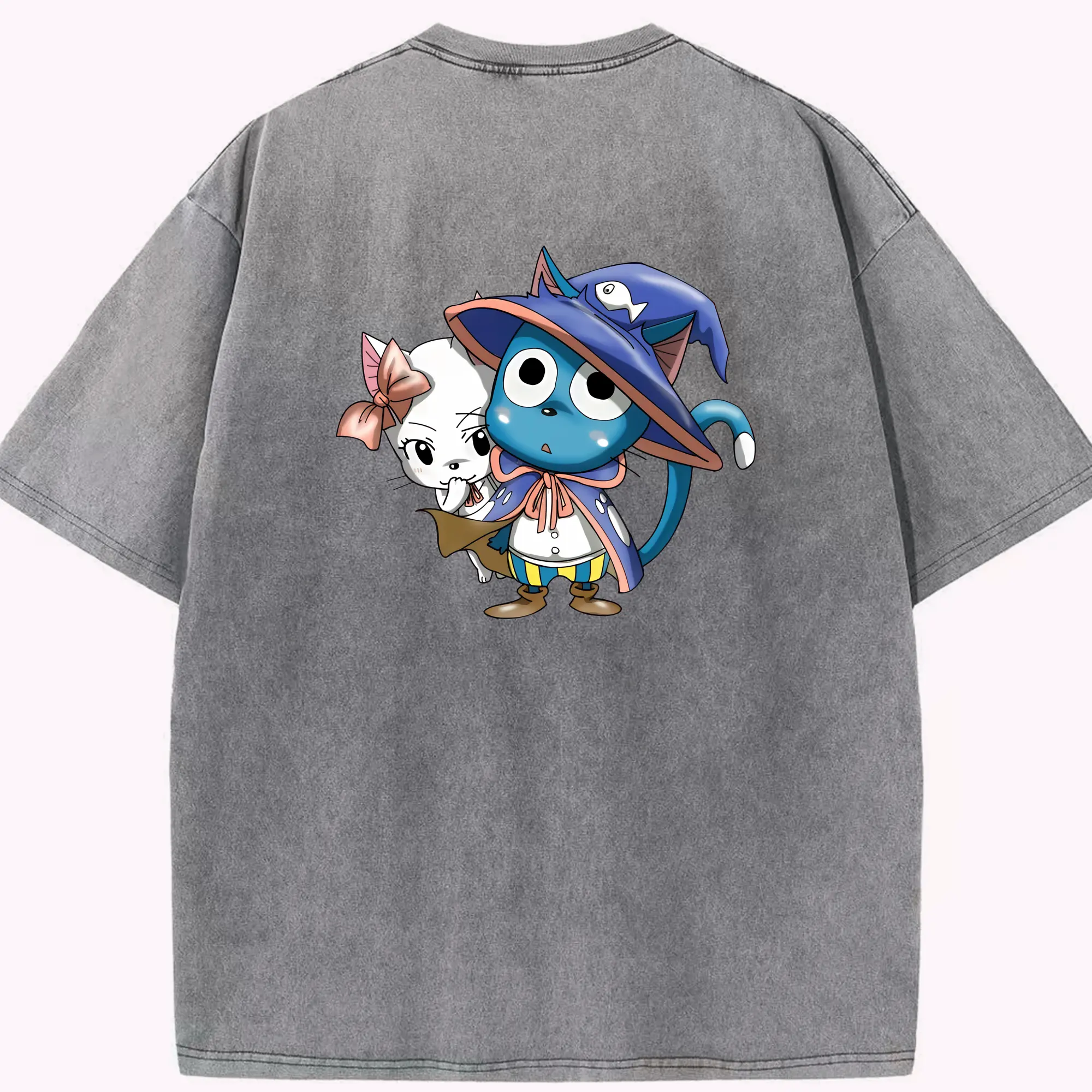 フェアリーテイル グッズ ハッピー - 綿100% 半袖Tシャツ ・ バックプリント ・ 快適 通気性 ・ 日常使い 散歩 スポーツ用