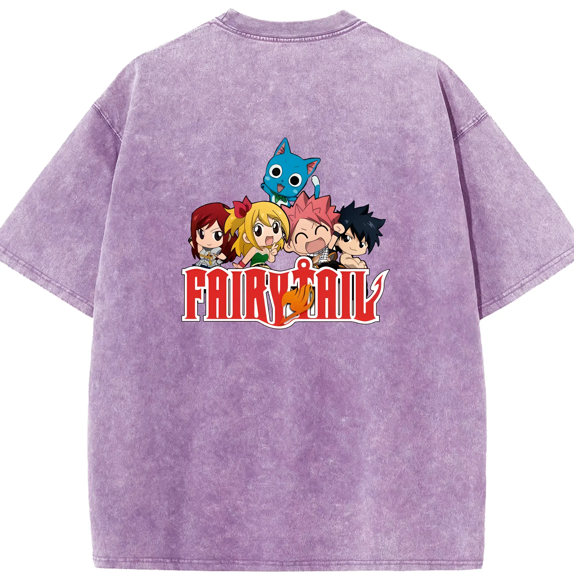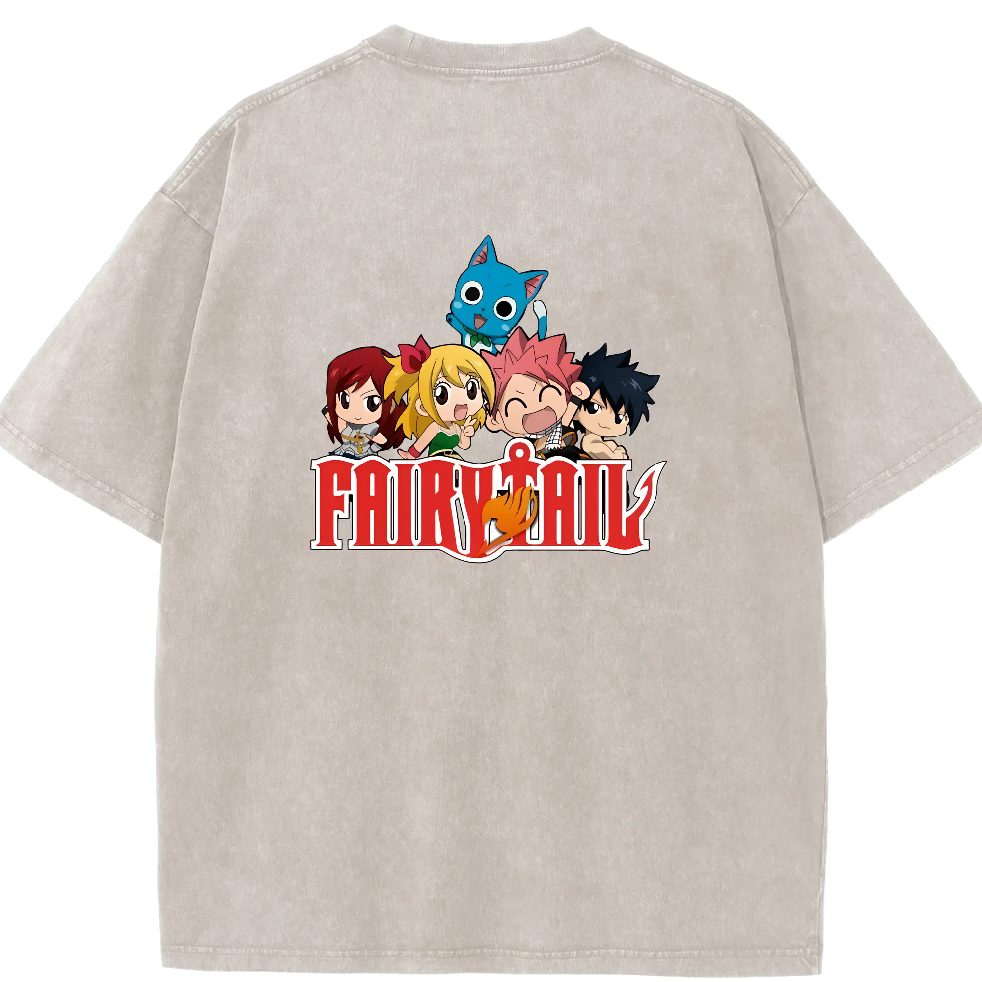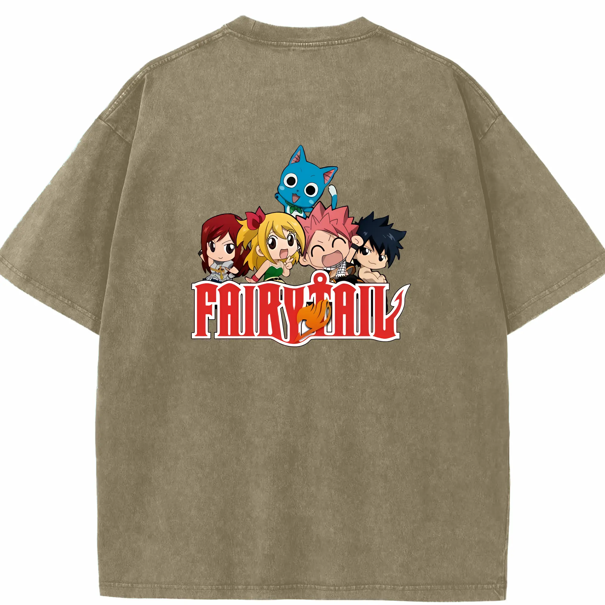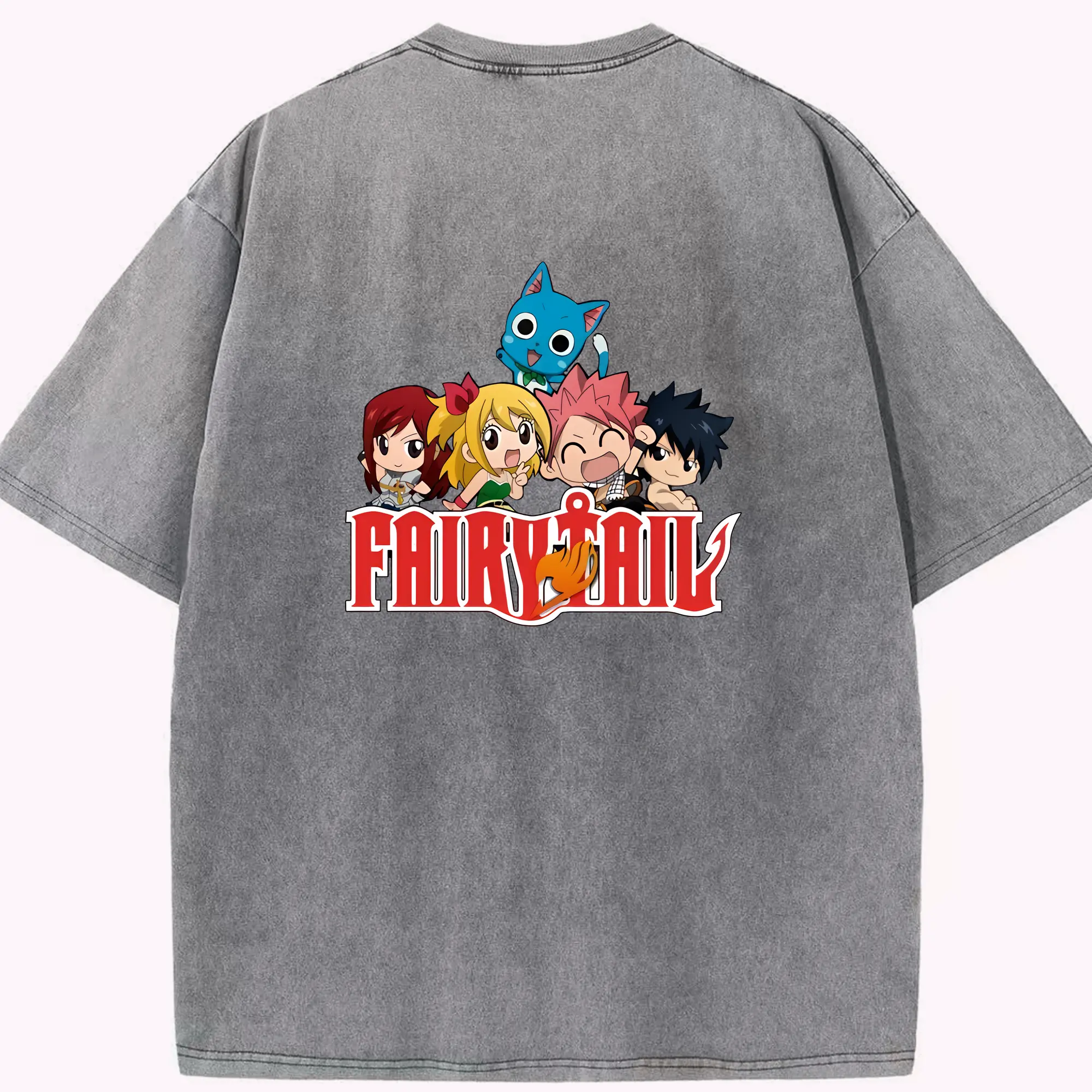 フェアリーテイル グッズ ハッピー - 綿100% ヴィンテージ風 半袖Tシャツ ・ フロントプリント ・ 柔らか肌触り ・ 通気性 快適 ・ スポーツ カジュアル 外出用