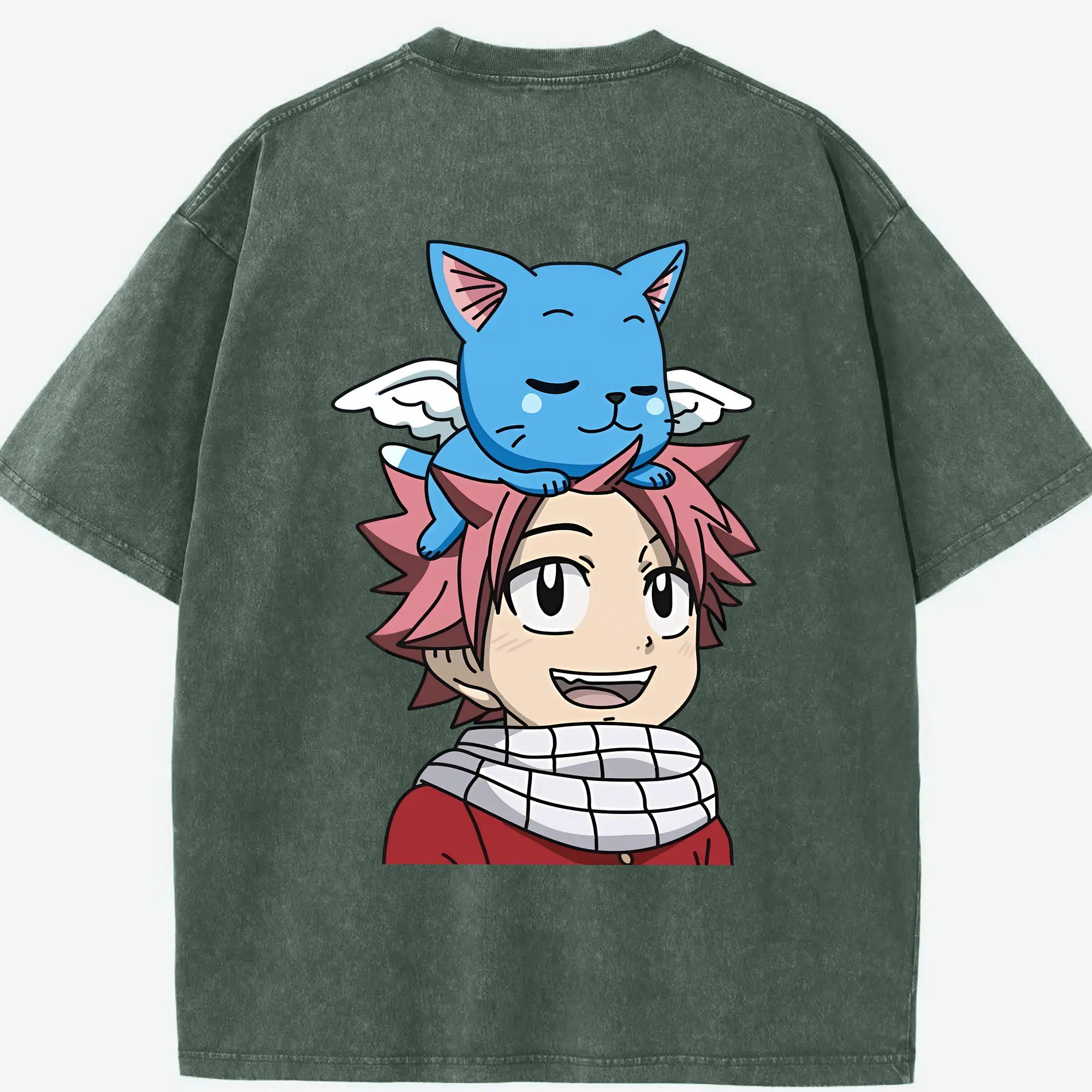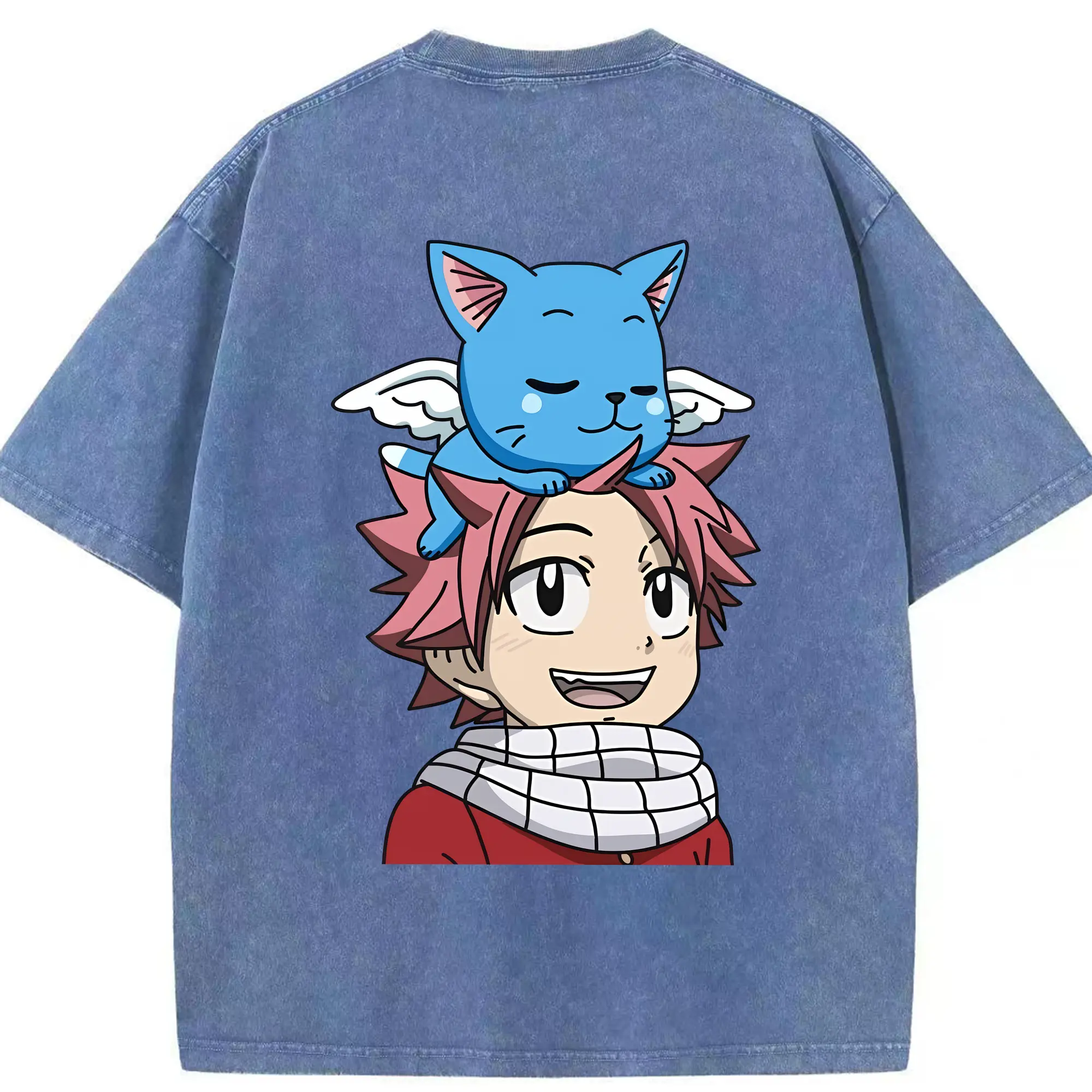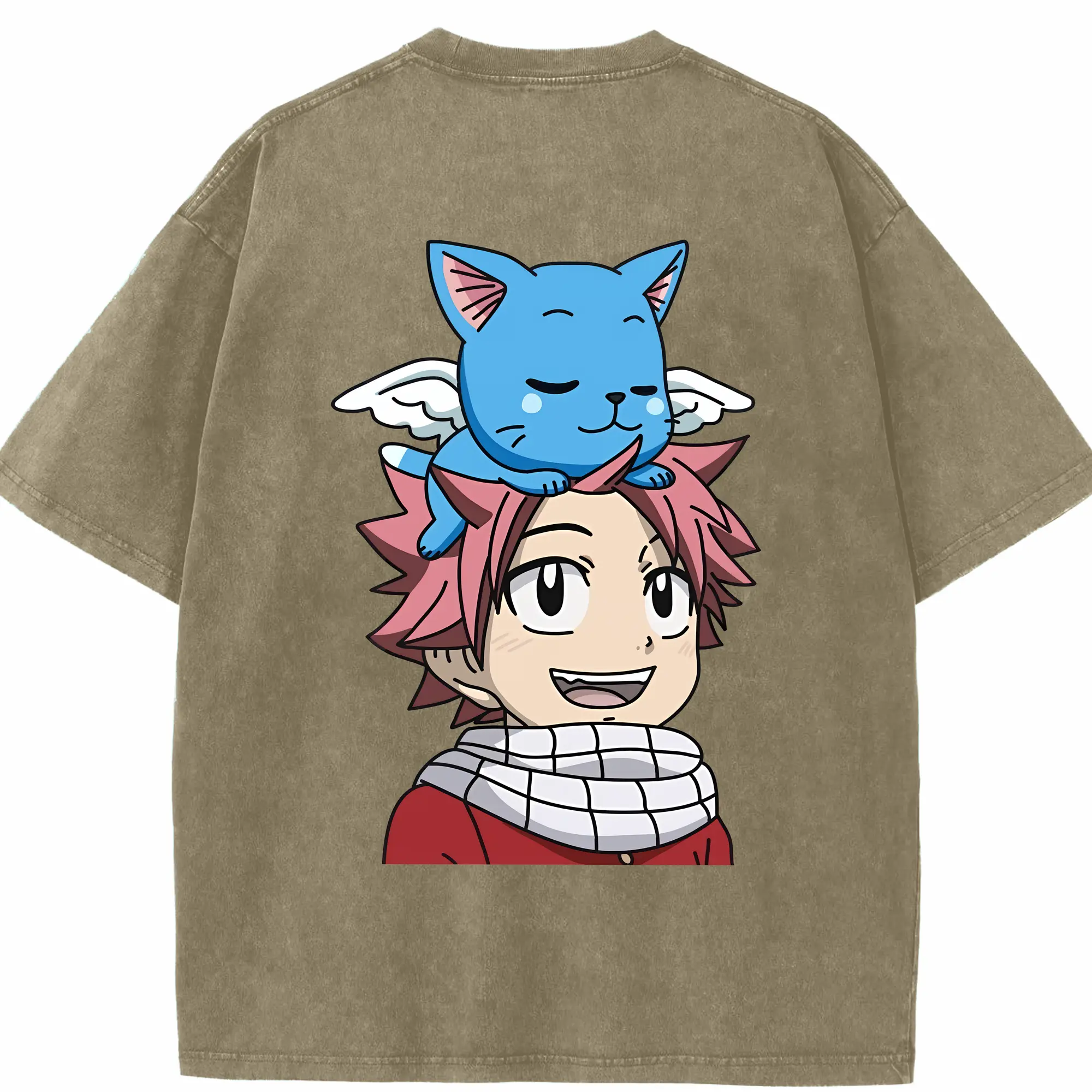 フェアリーテイル グッズ ハッピー - 綿100% ヴィンテージ風 半袖Tシャツ ・ フロントプリント ・ 柔らか肌触り ・ 通気性 快適 ・ スポーツ カジュアル 外出用