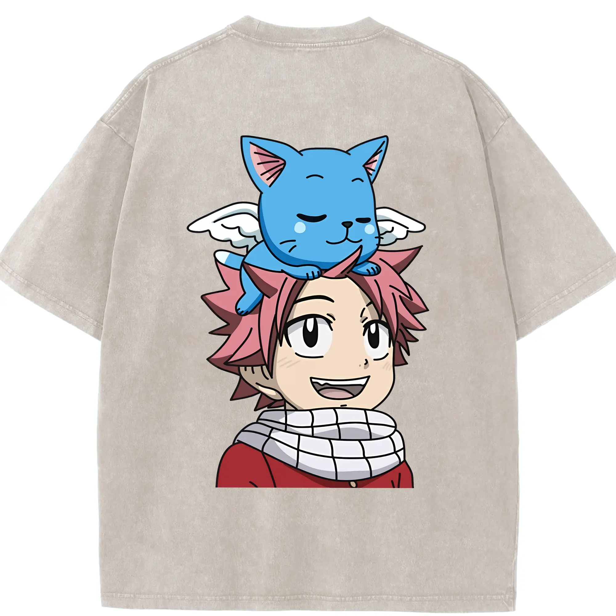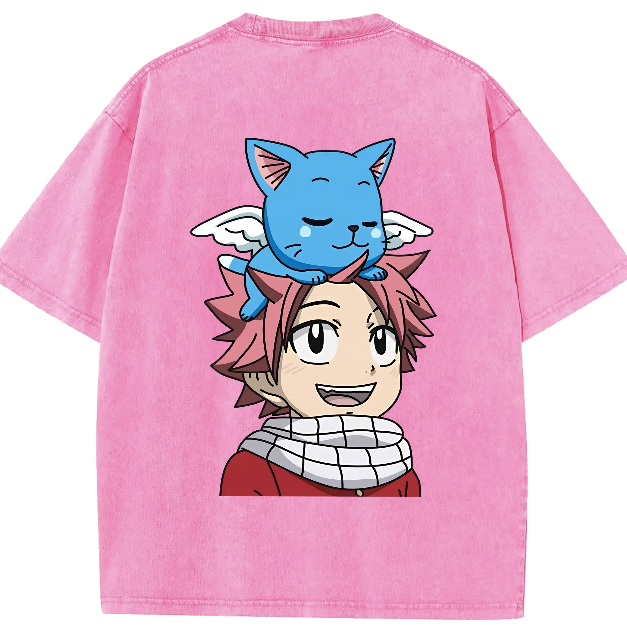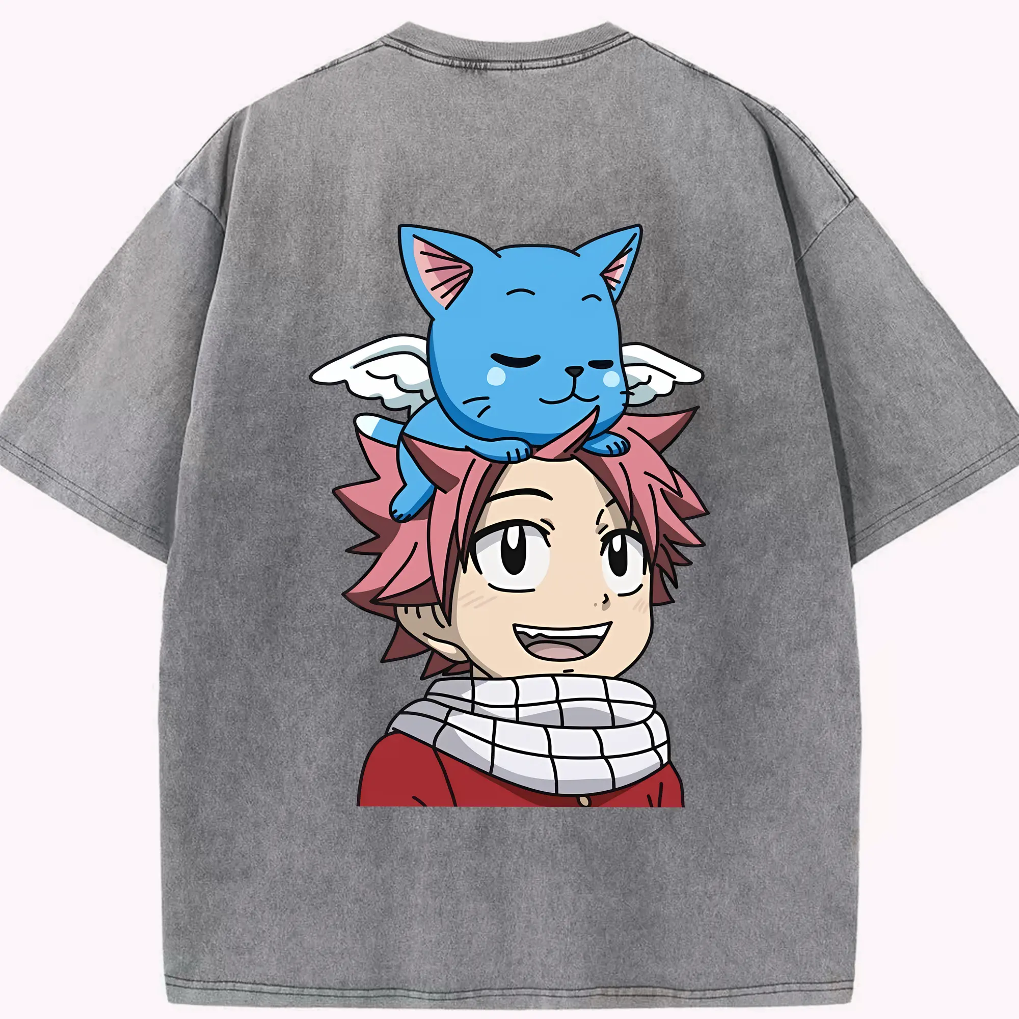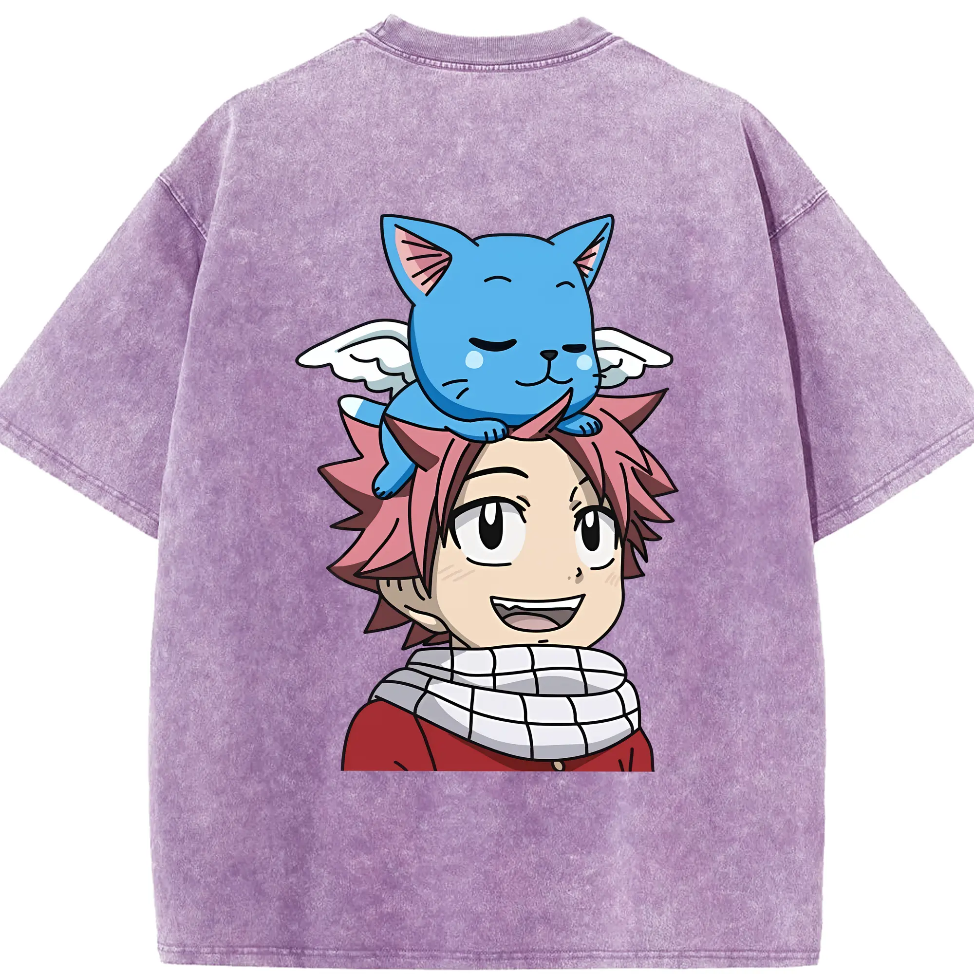 フェアリーテイル グッズ ハッピー - 綿100% 半袖Tシャツ ・ バックプリント ・ 快適 通気性 ・ 日常使い 散歩 スポーツ用