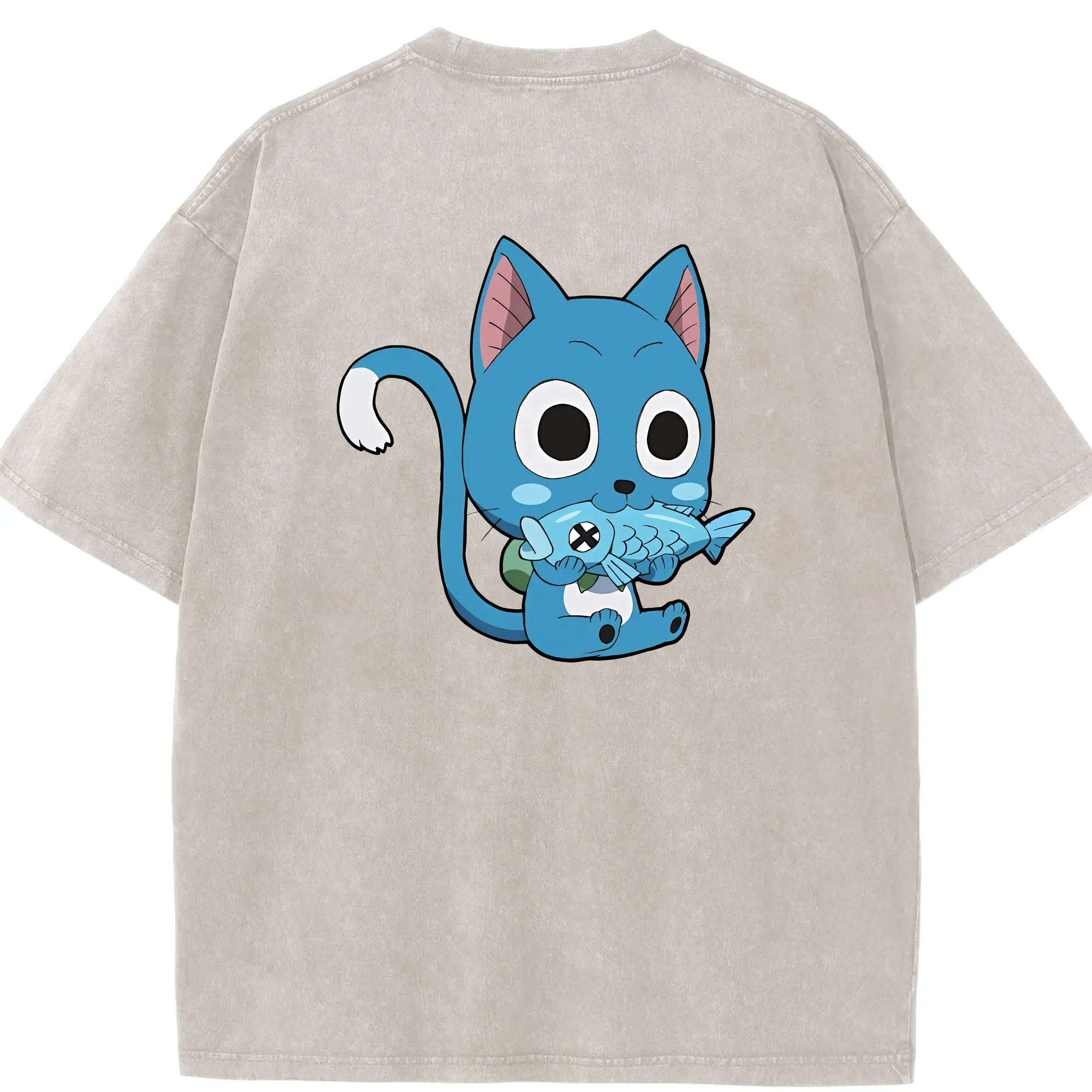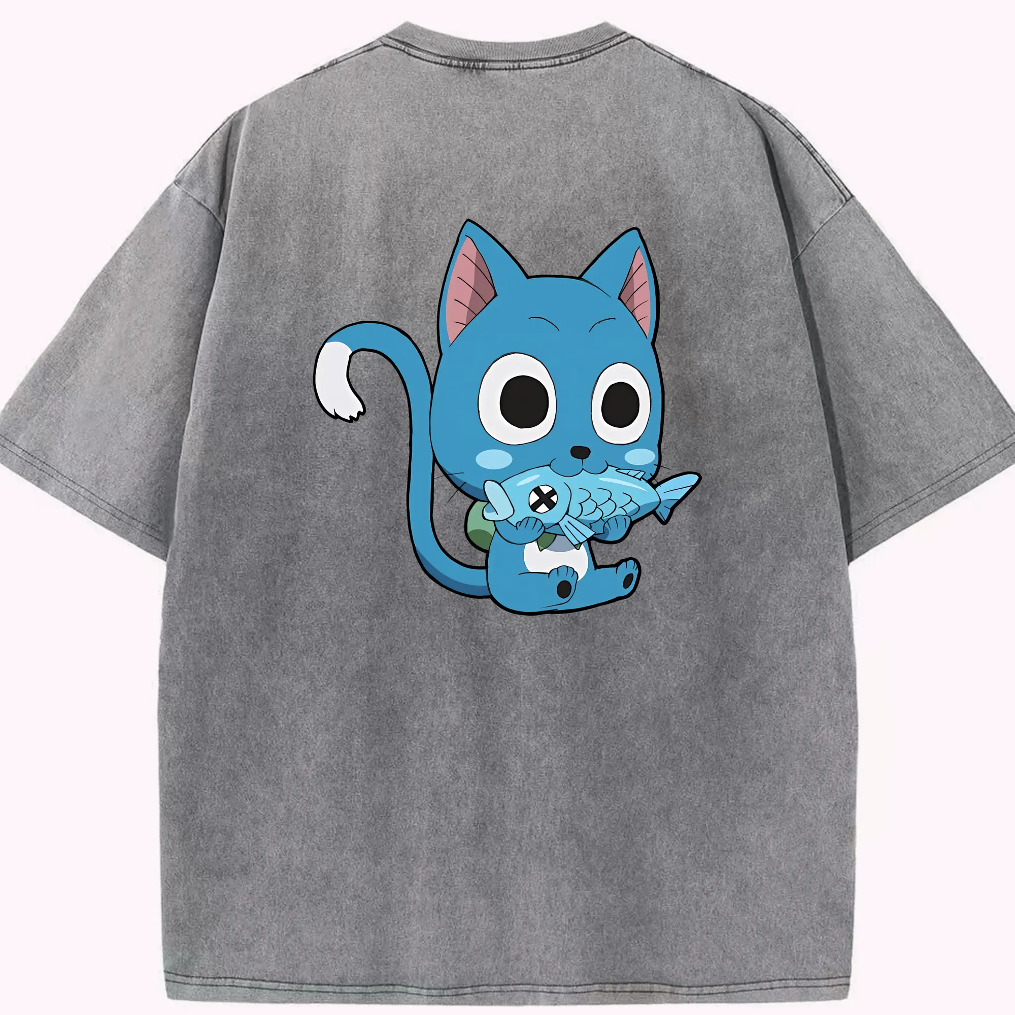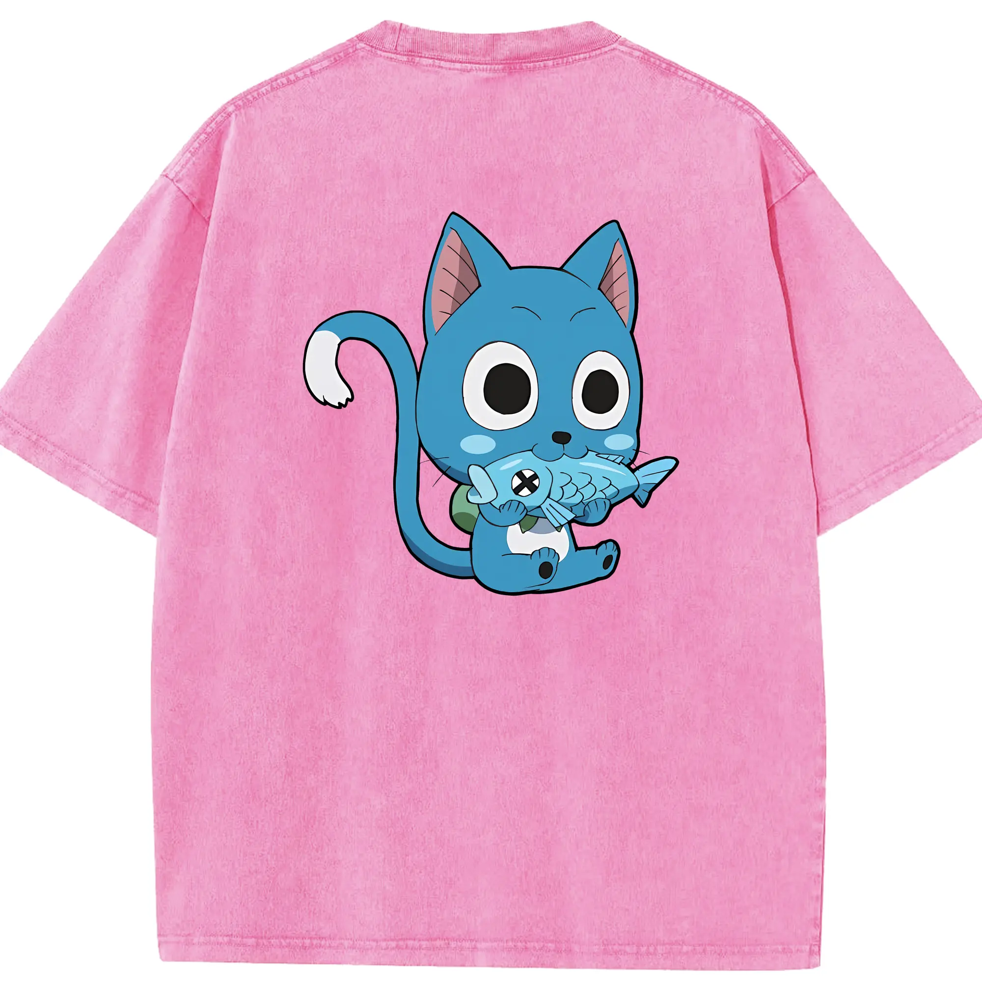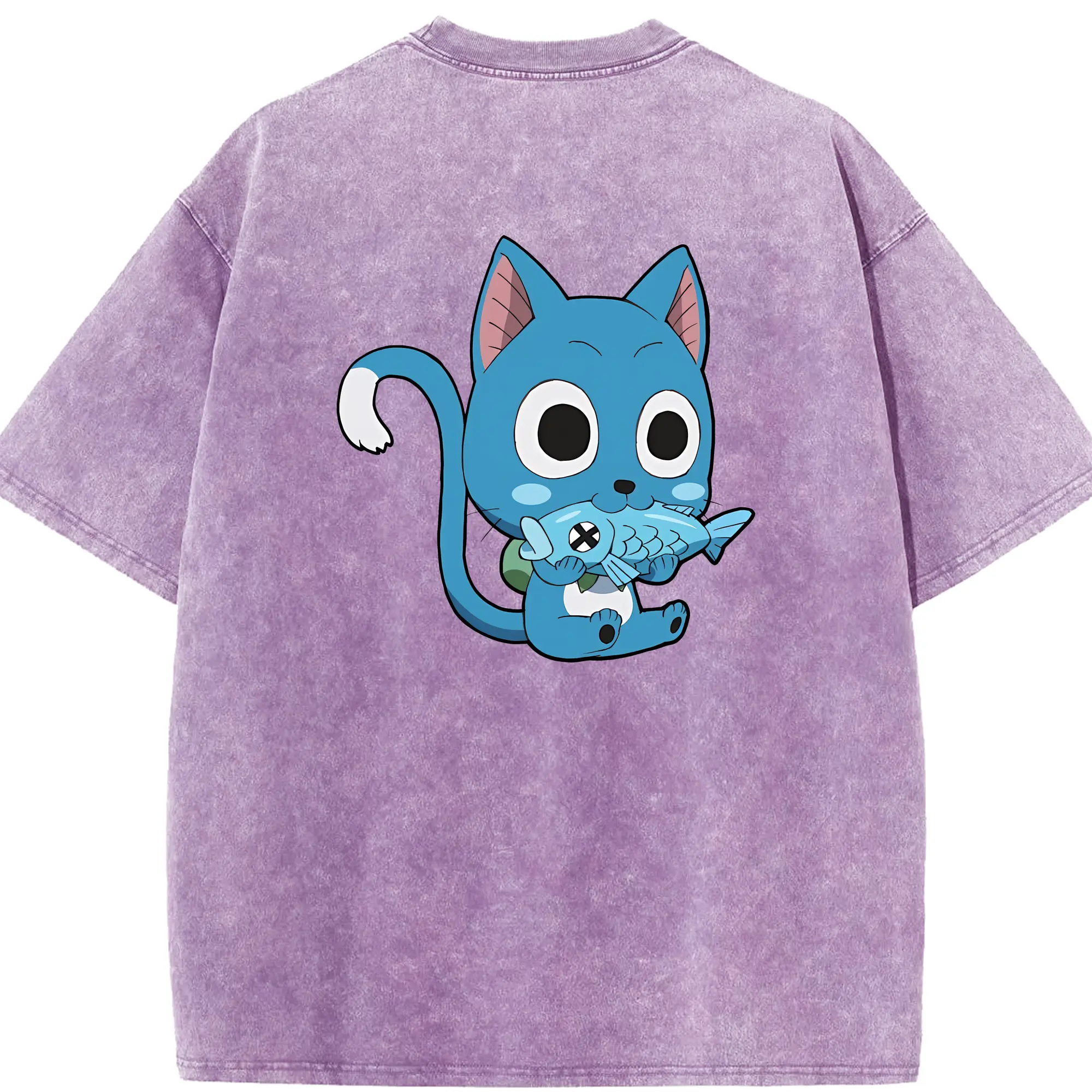 フェアリーテイル グッズ ハッピー - 綿100% 半袖Tシャツ ・ バックプリント ・ 快適 通気性 ・ 日常使い 散歩 スポーツ用