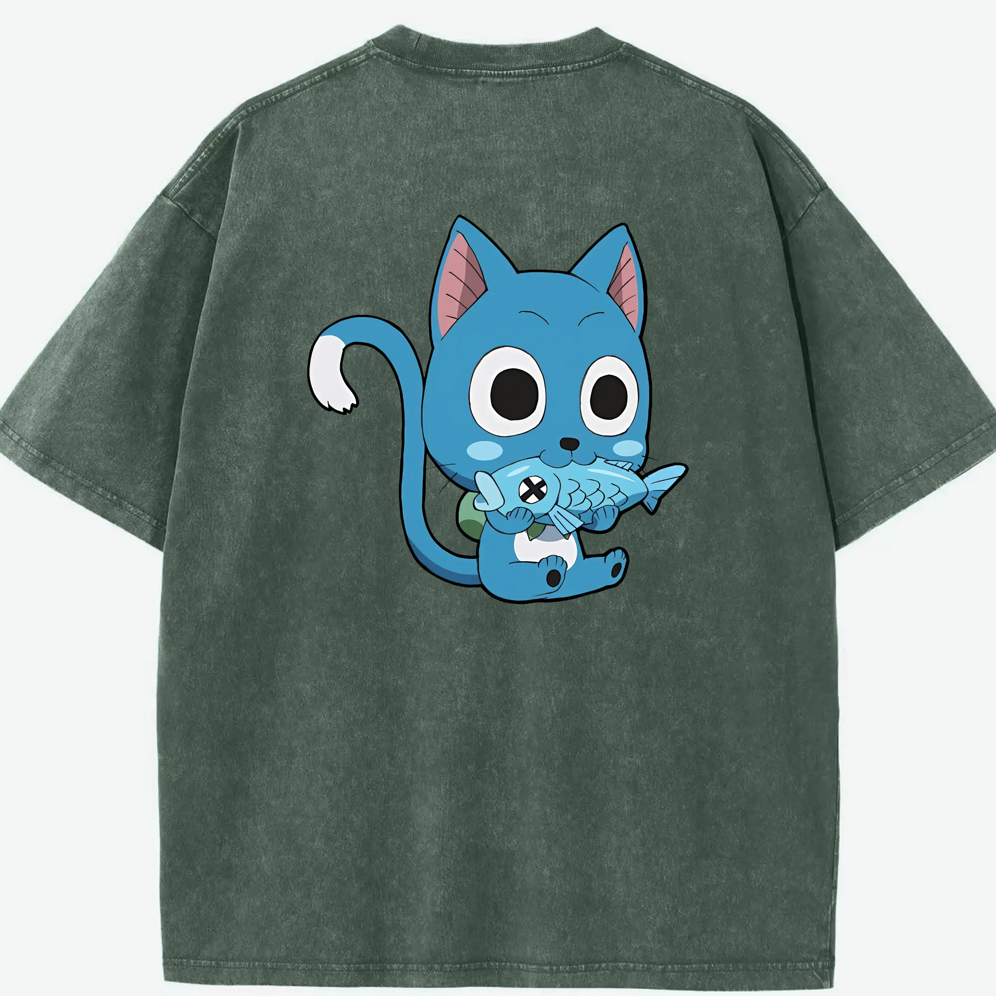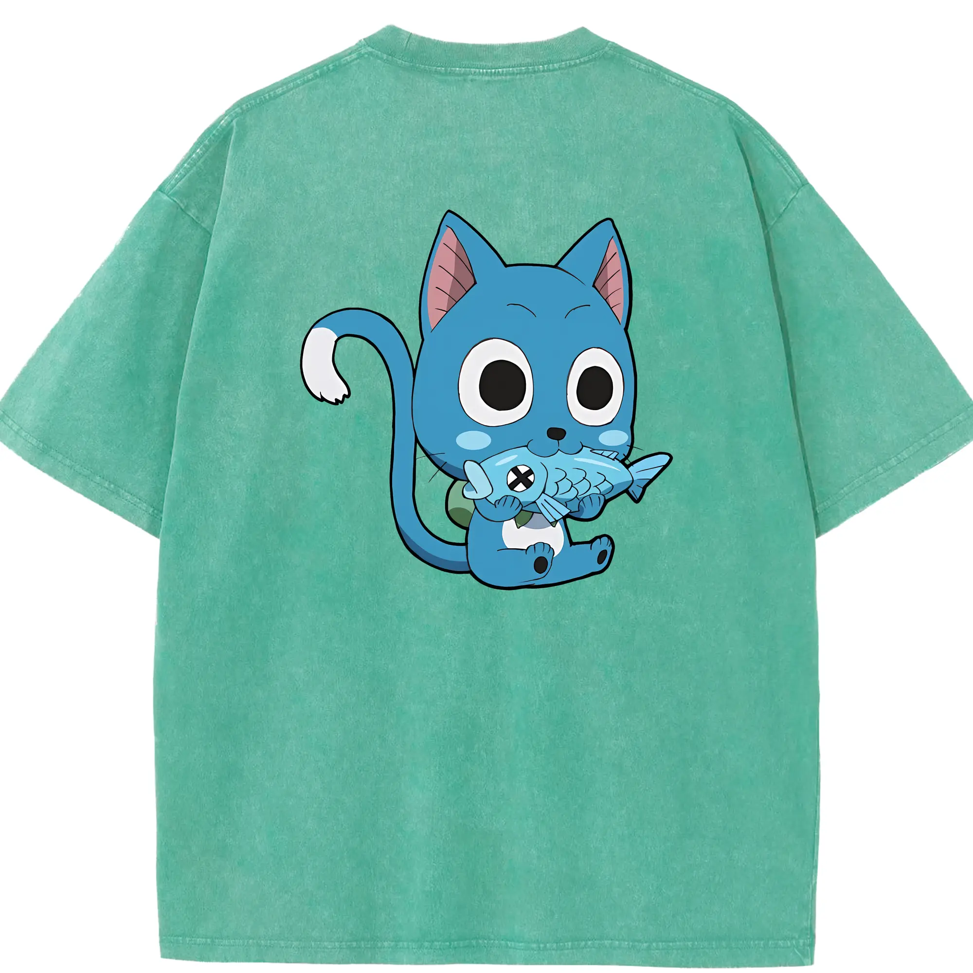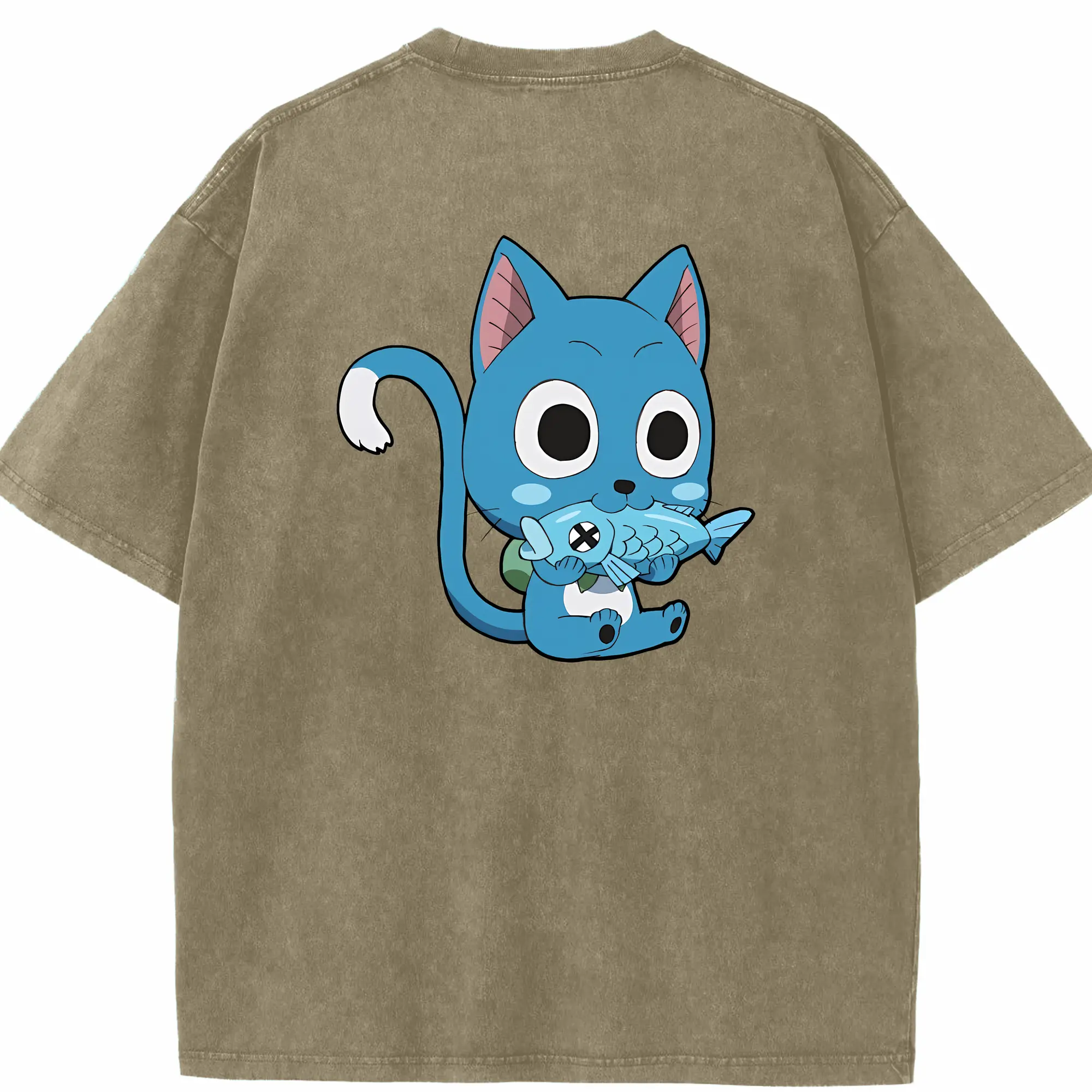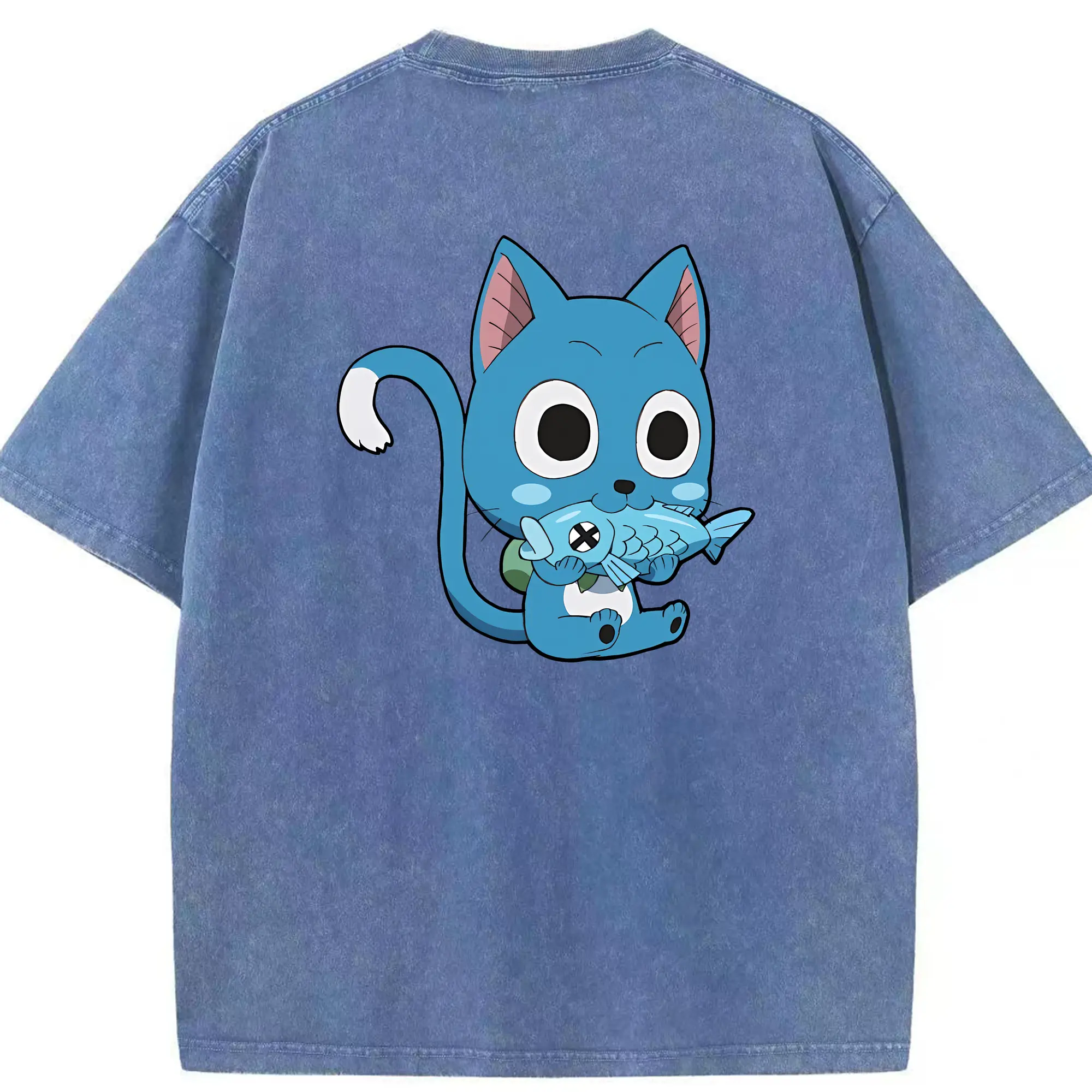 フェアリーテイル グッズ ハッピー - 綿100% 半袖Tシャツ ・ バックプリント ・ 快適 通気性 ・ 日常使い 散歩 スポーツ用