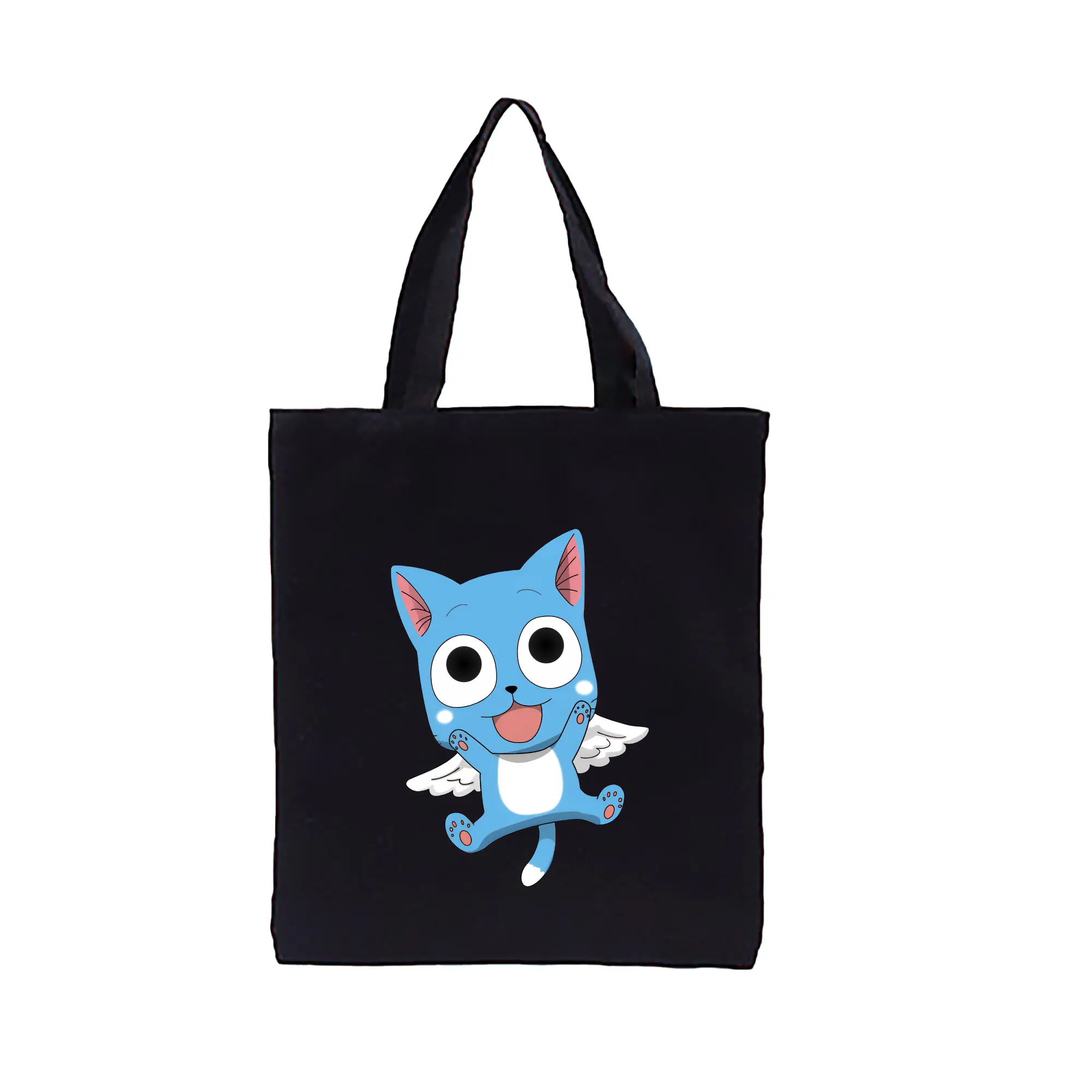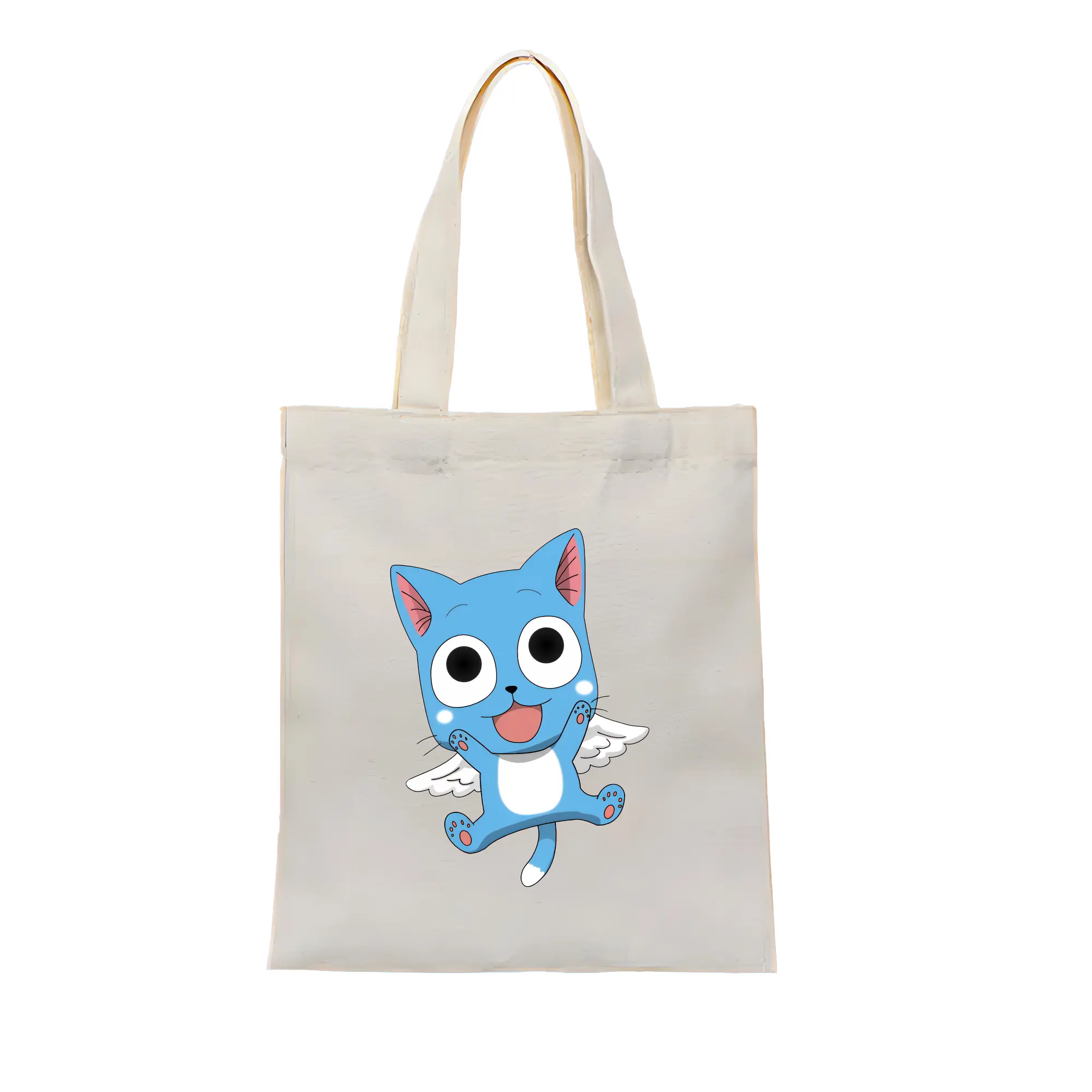 フェアリーテイル グッズ ハッピー - 縦型キャンバス手提げバッグ(トートバッグ) ・ キャンバス素材 ・ ショッピング用 ・ 軽量 丈夫 お手入れ簡単
