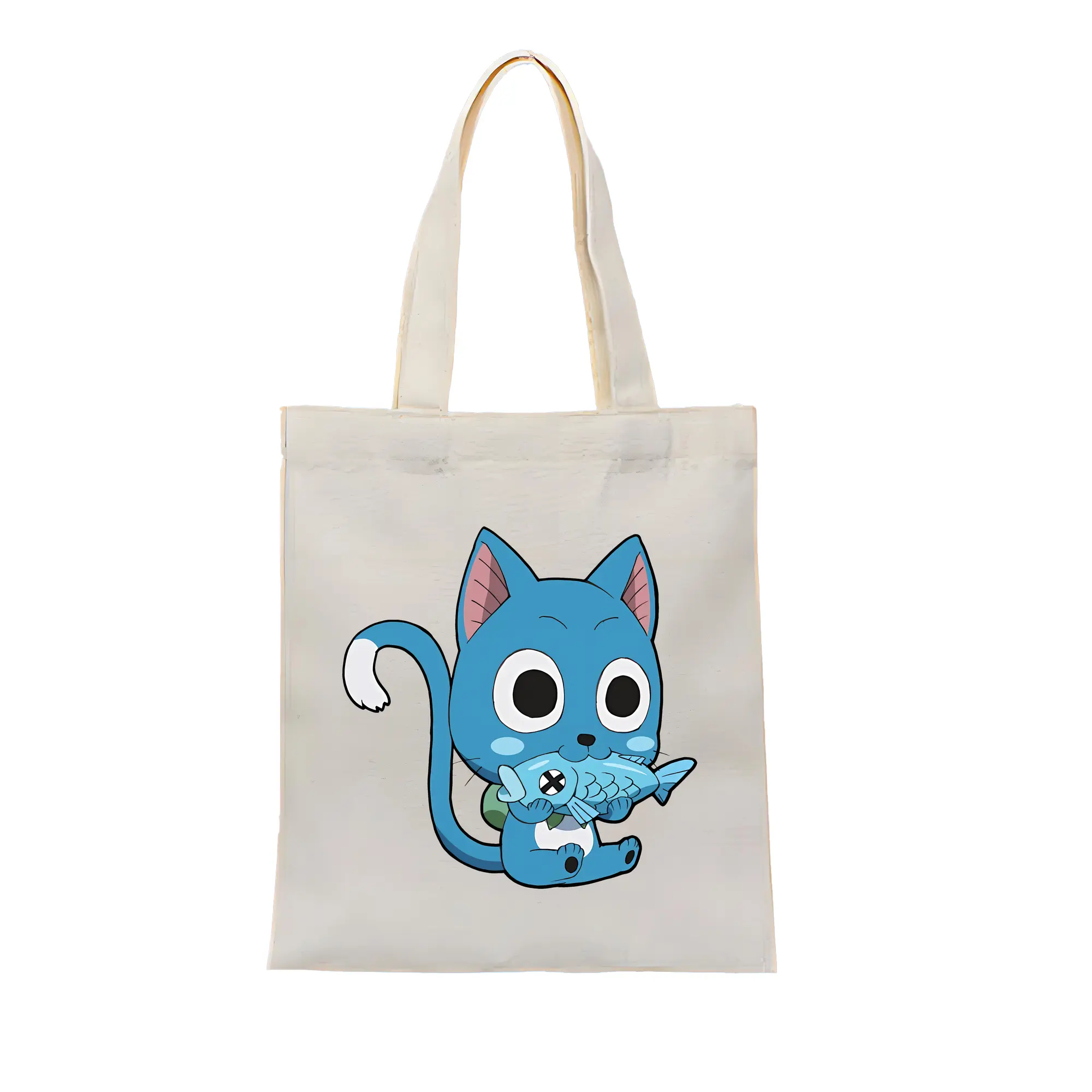 フェアリーテイル グッズ ハッピー - 縦型キャンバス手提げバッグ(トートバッグ) ・ キャンバス素材 ・ ショッピング用 ・ 軽量 丈夫 お手入れ簡単
