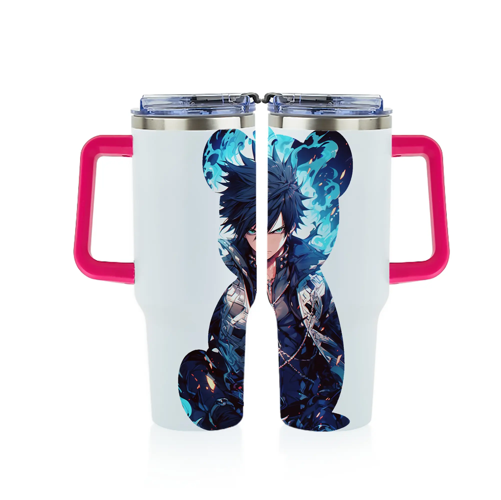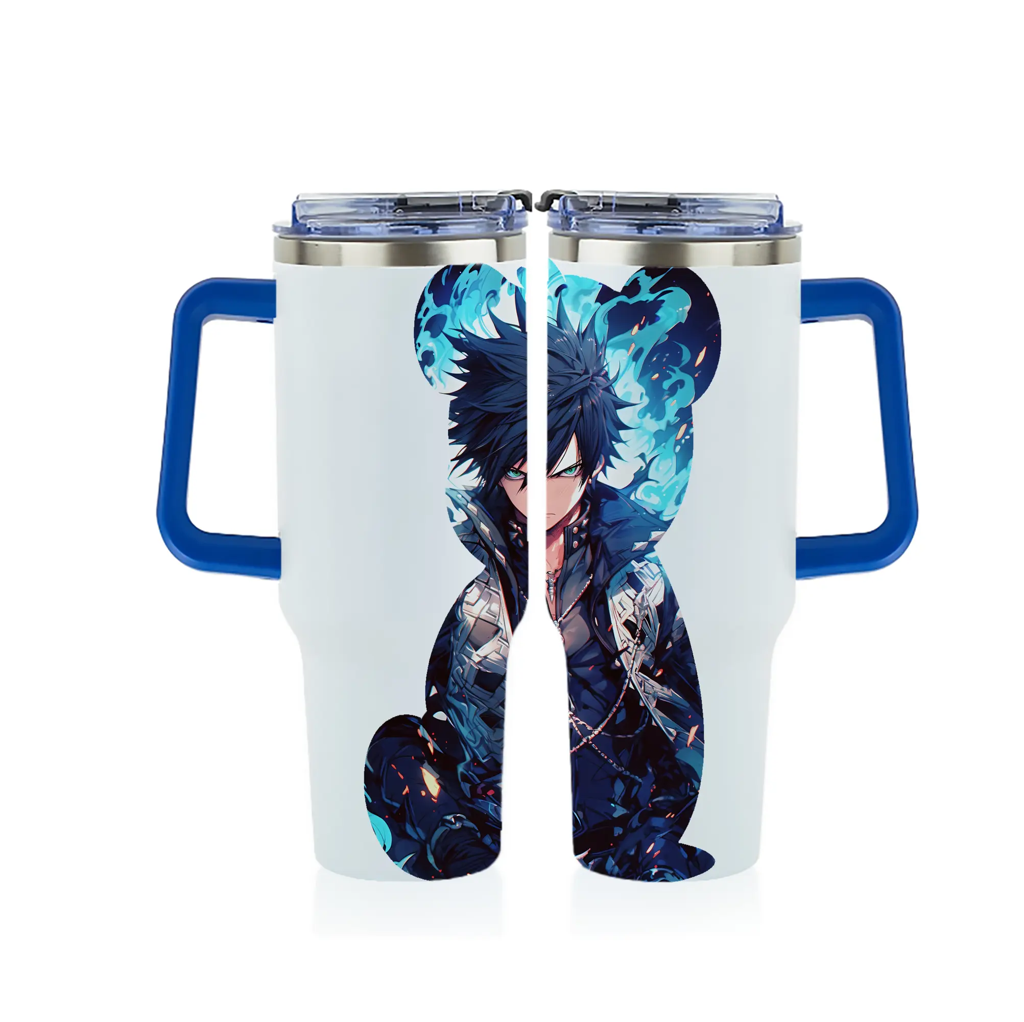 フェアリーテイル グッズ グレイ・フルバスター - 1200mL フルプリント車用タンブラー ・ 304ステンレス 内側 ・ 201ステンレス 外側 ・ 保温 保冷 ・ 通勤 ドライブ アウトドア用