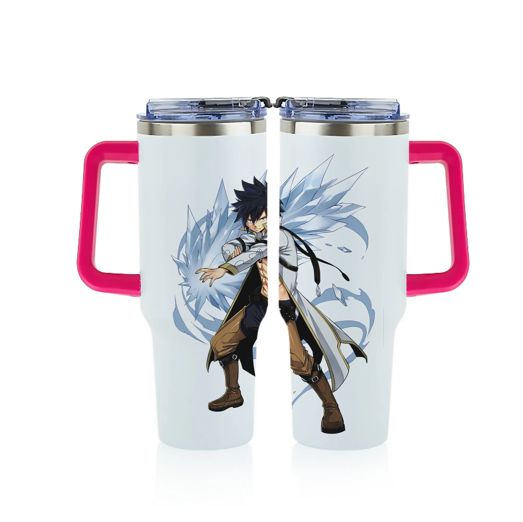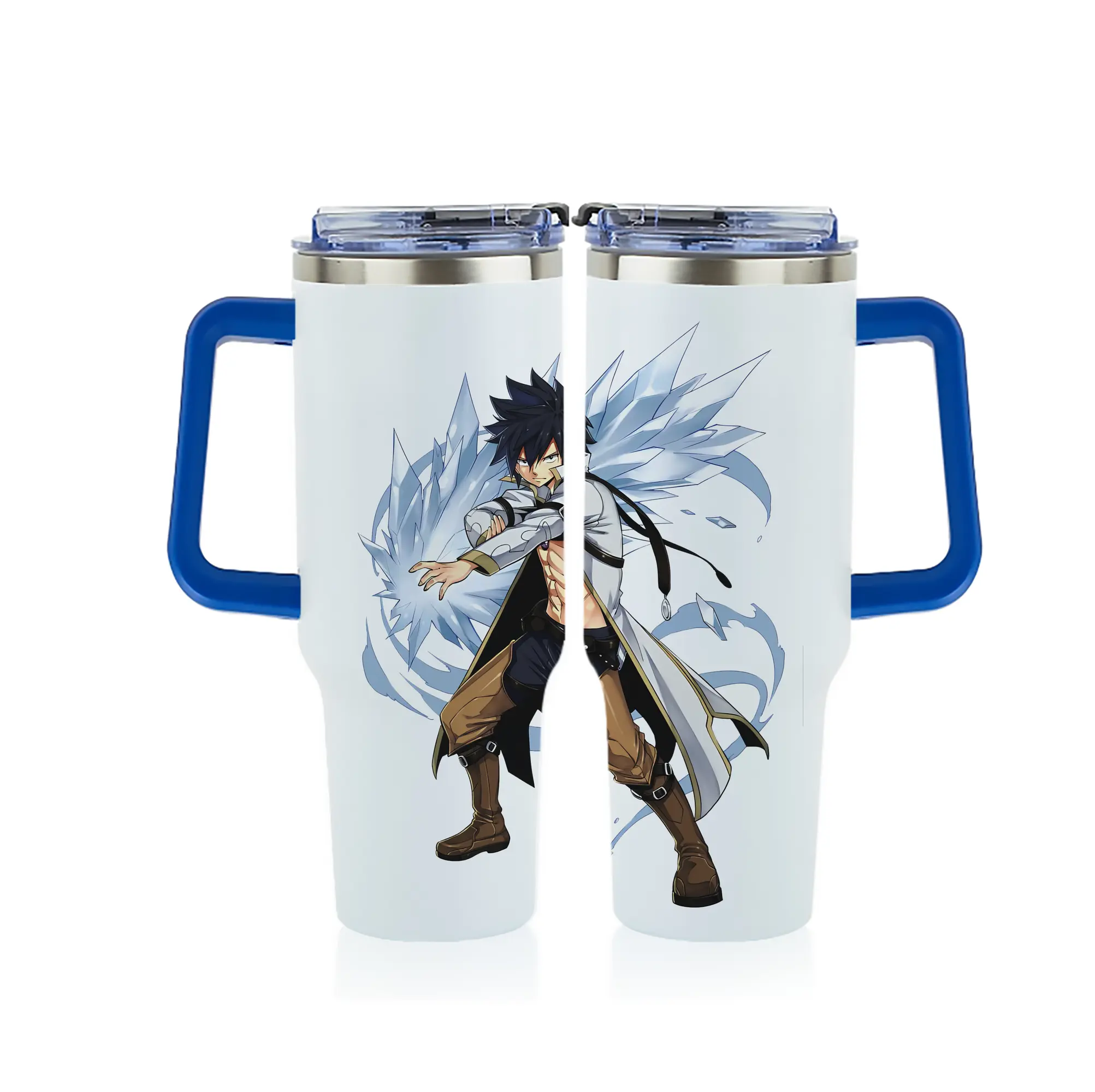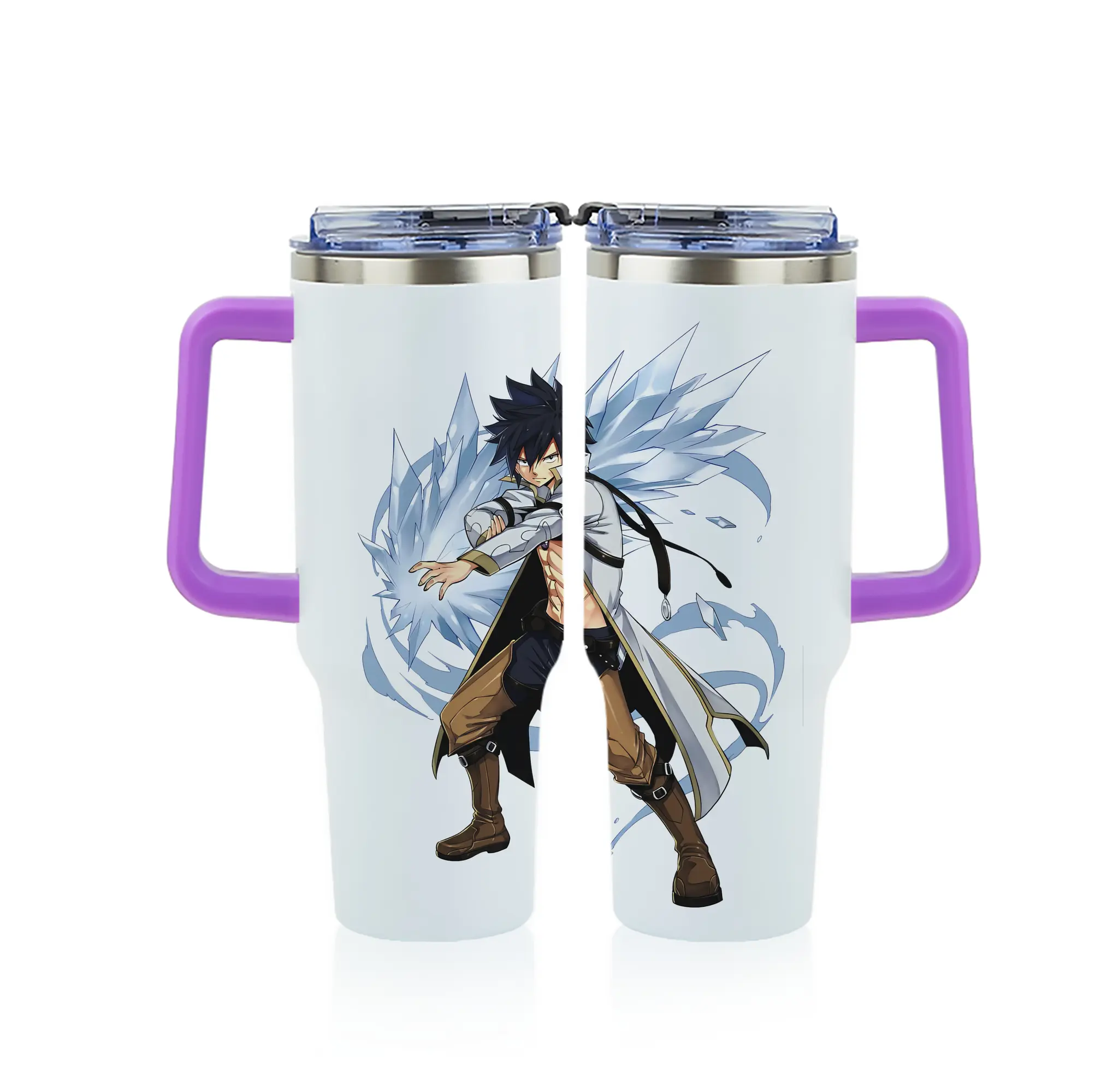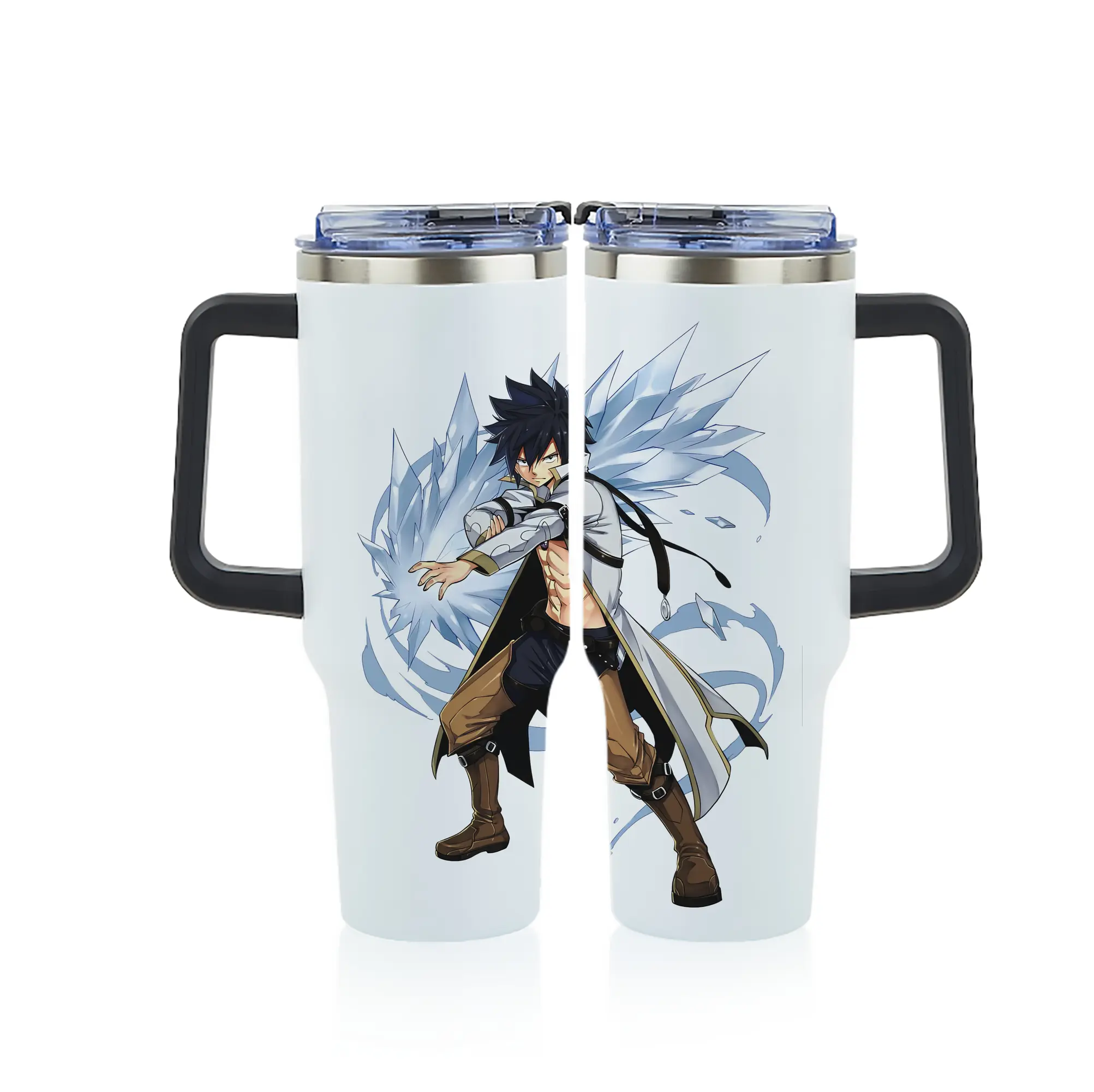 フェアリーテイル グッズ グレイ・フルバスター - 1200mL フルプリント車用タンブラー ・ 304ステンレス 内側 ・ 201ステンレス 外側 ・ 保温 保冷 ・ 通勤 ドライブ アウトドア用