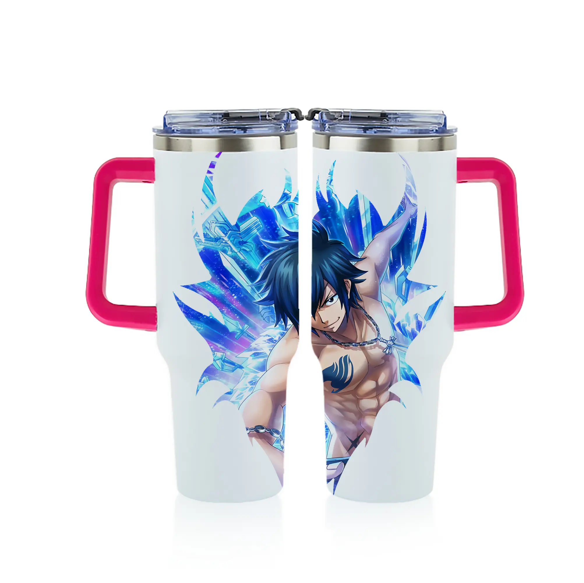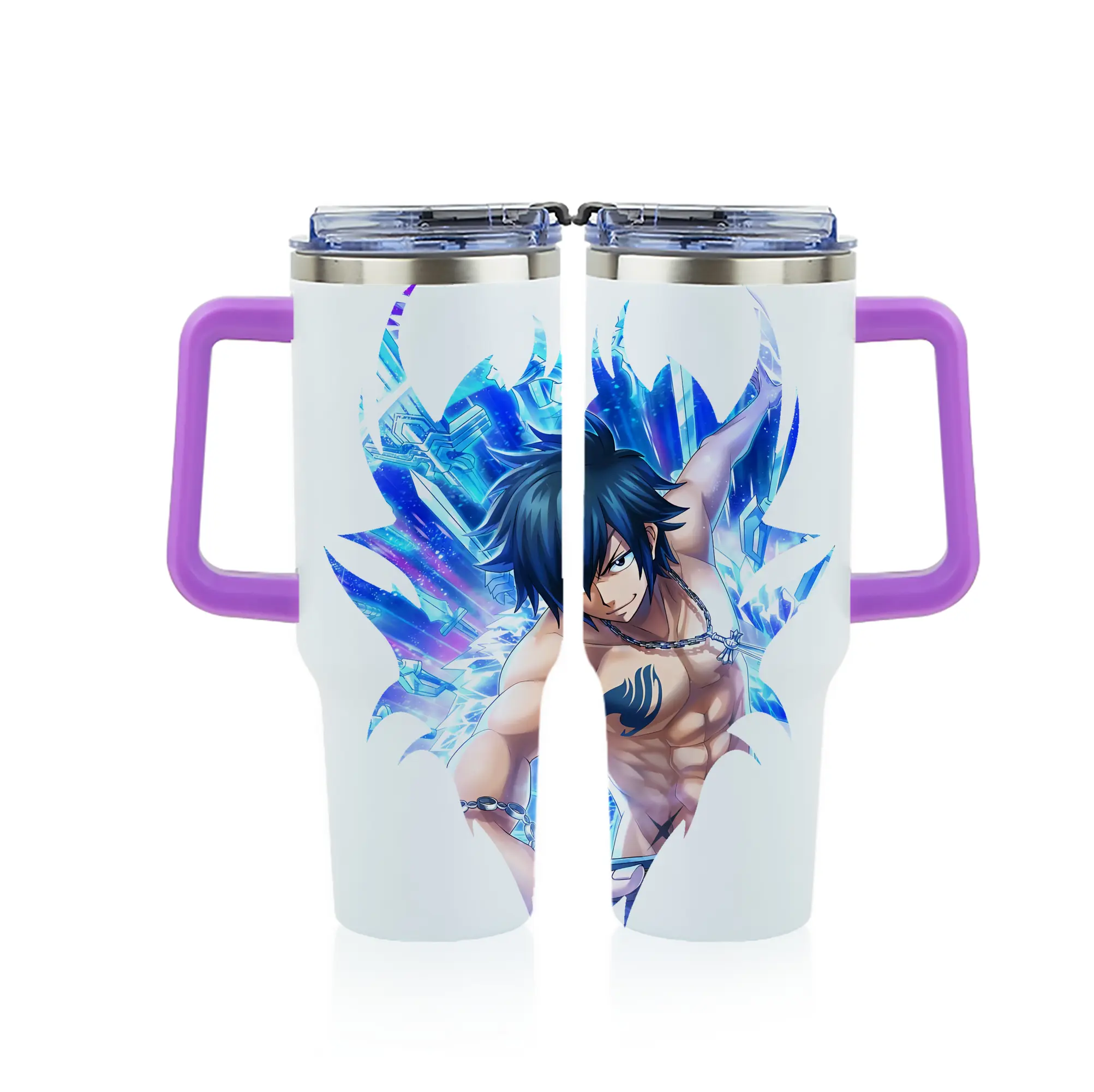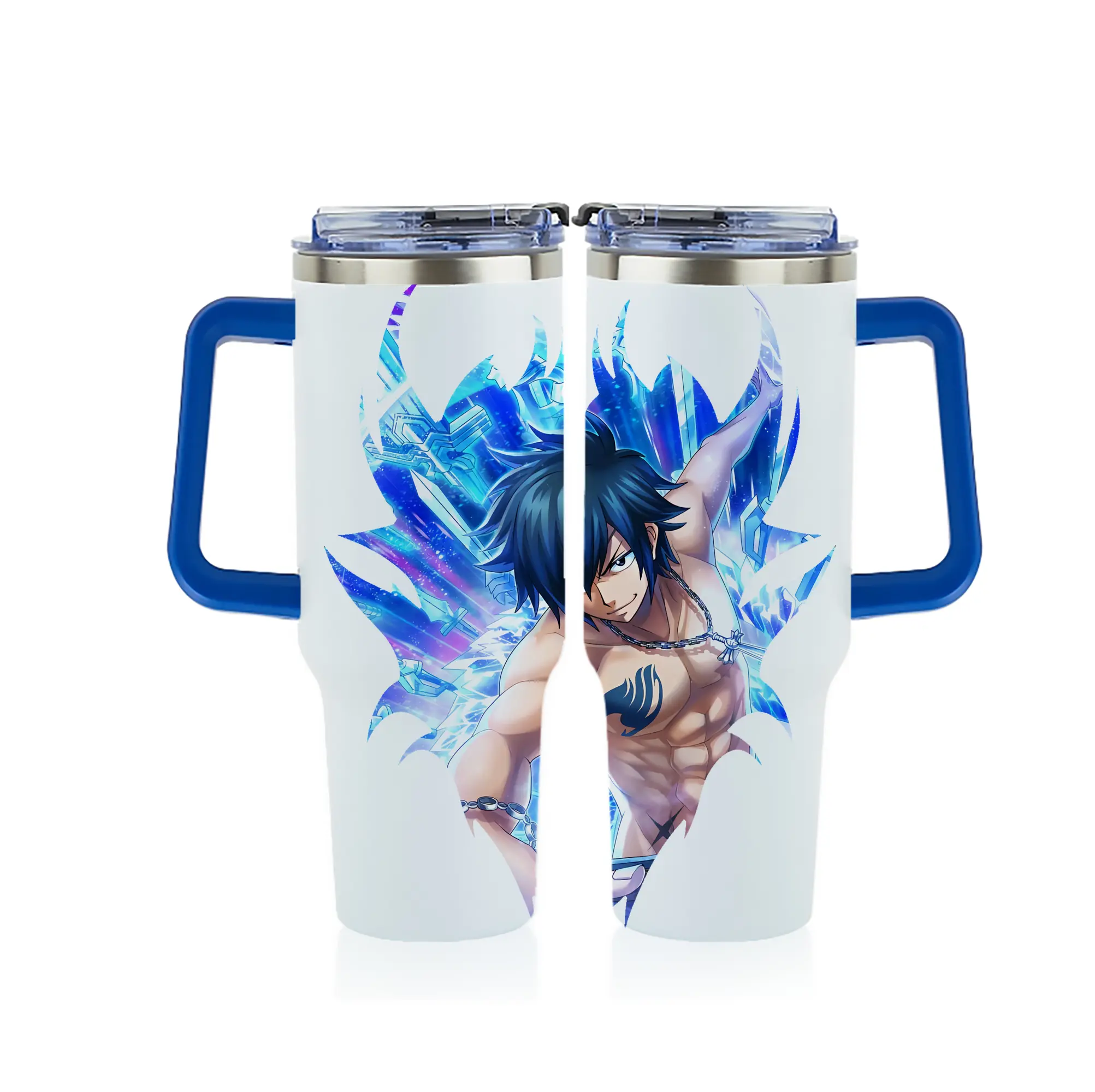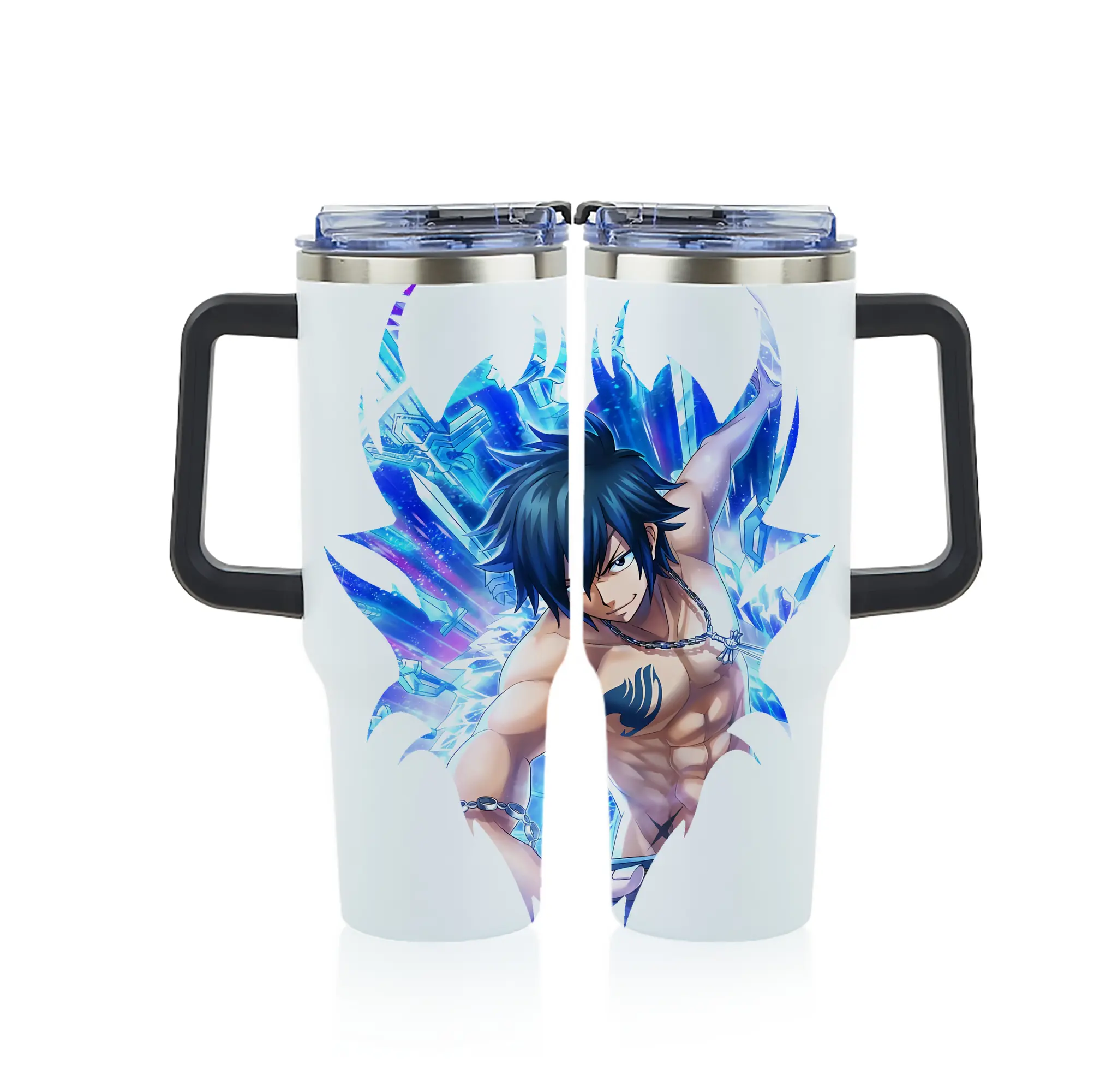 フェアリーテイル グッズ グレイ・フルバスター - 1200mL フルプリント車用タンブラー ・ 304ステンレス 内側 ・ 201ステンレス 外側 ・ 保温 保冷 ・ 通勤 ドライブ アウトドア用