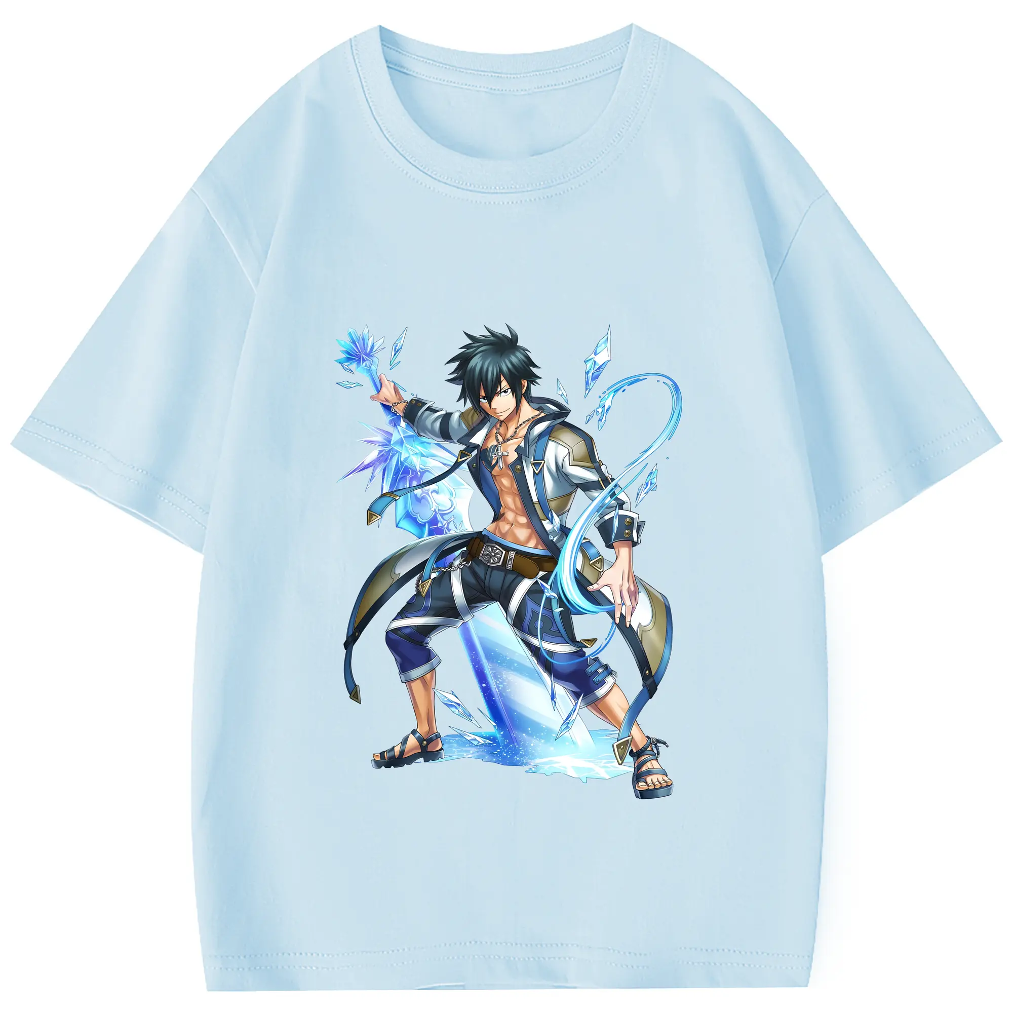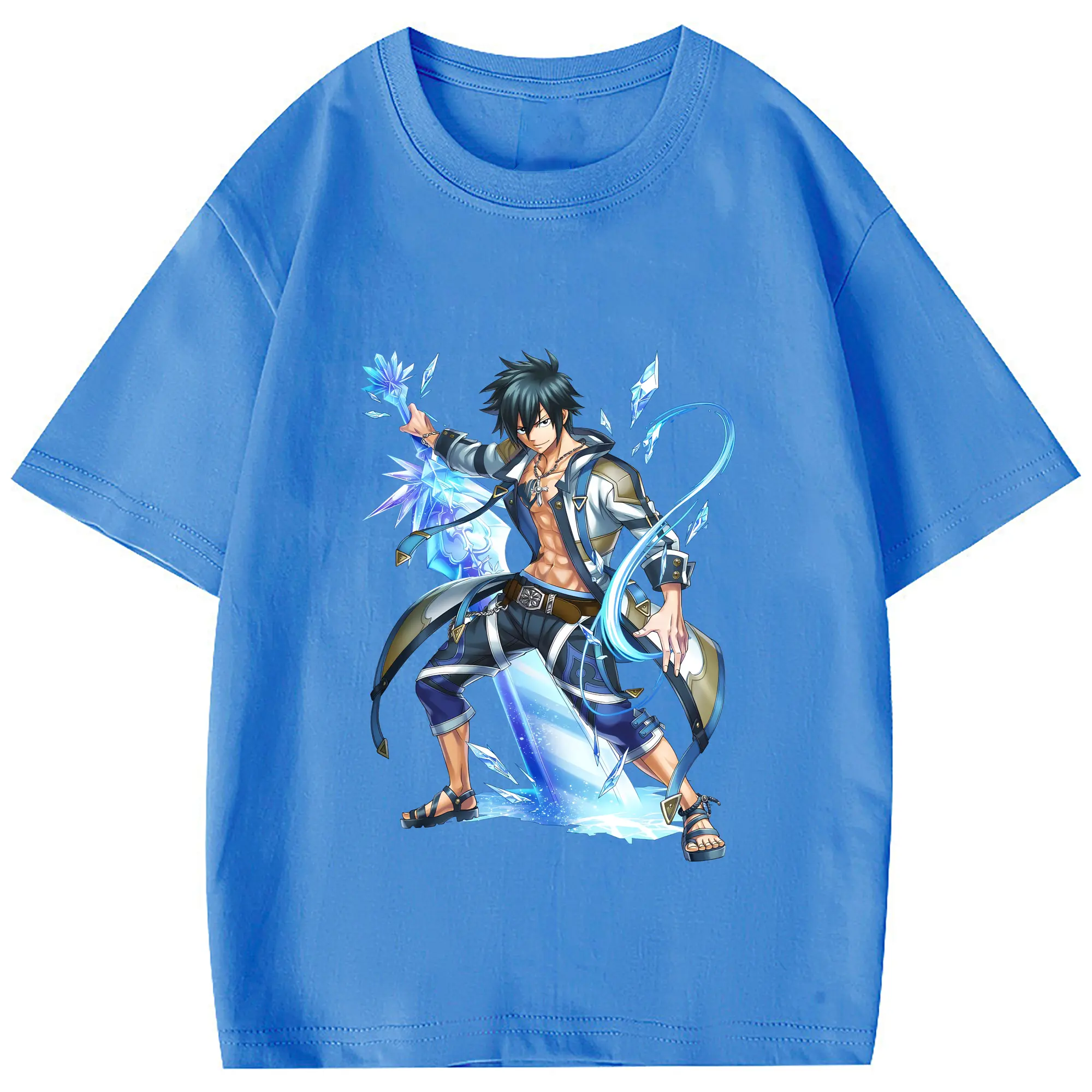 フェアリーテイル グッズ グレイ・フルバスター - 綿100% 半袖Tシャツ ・ フロントプリント ・ 快適 通気性 ・ 日常使い 散歩 スポーツ用
