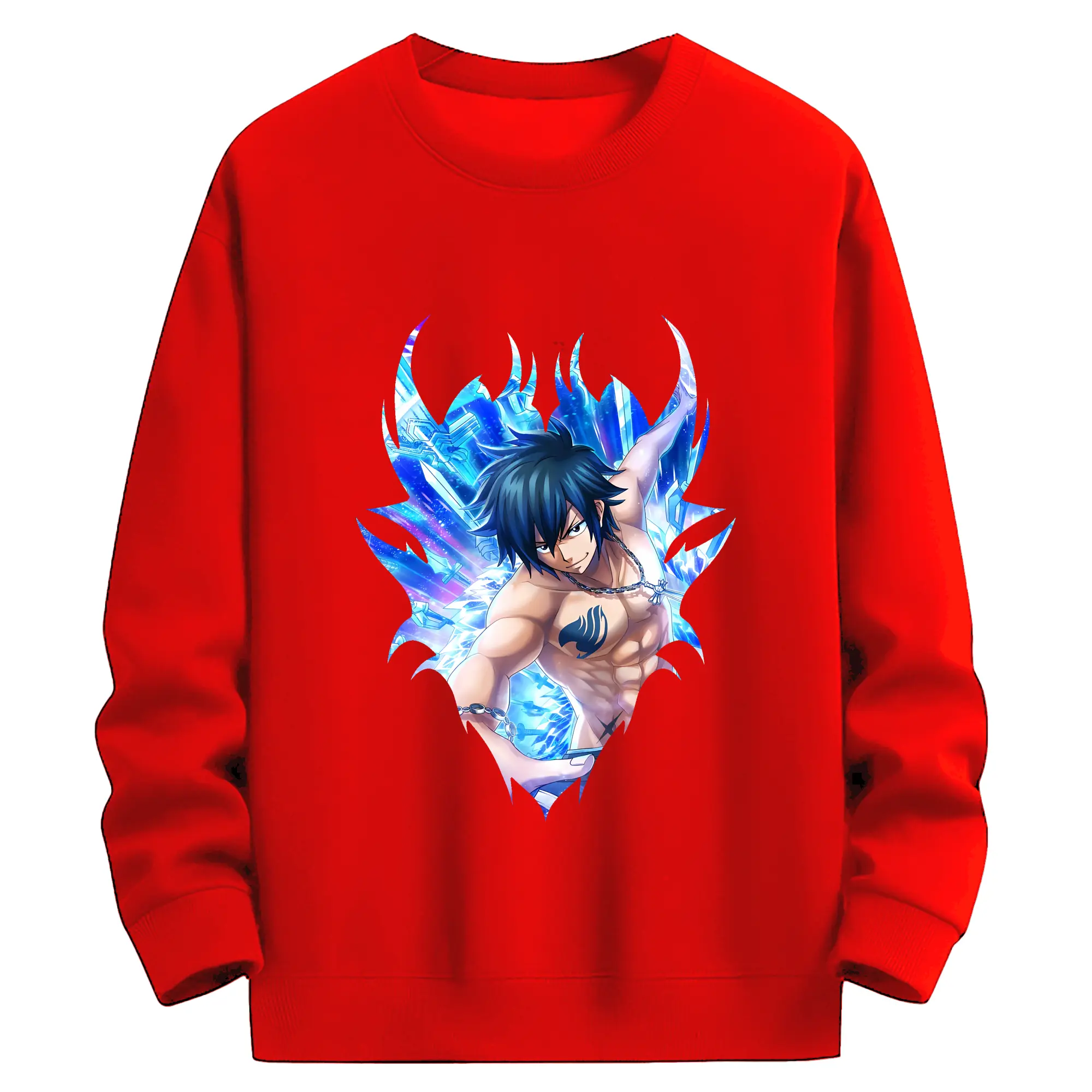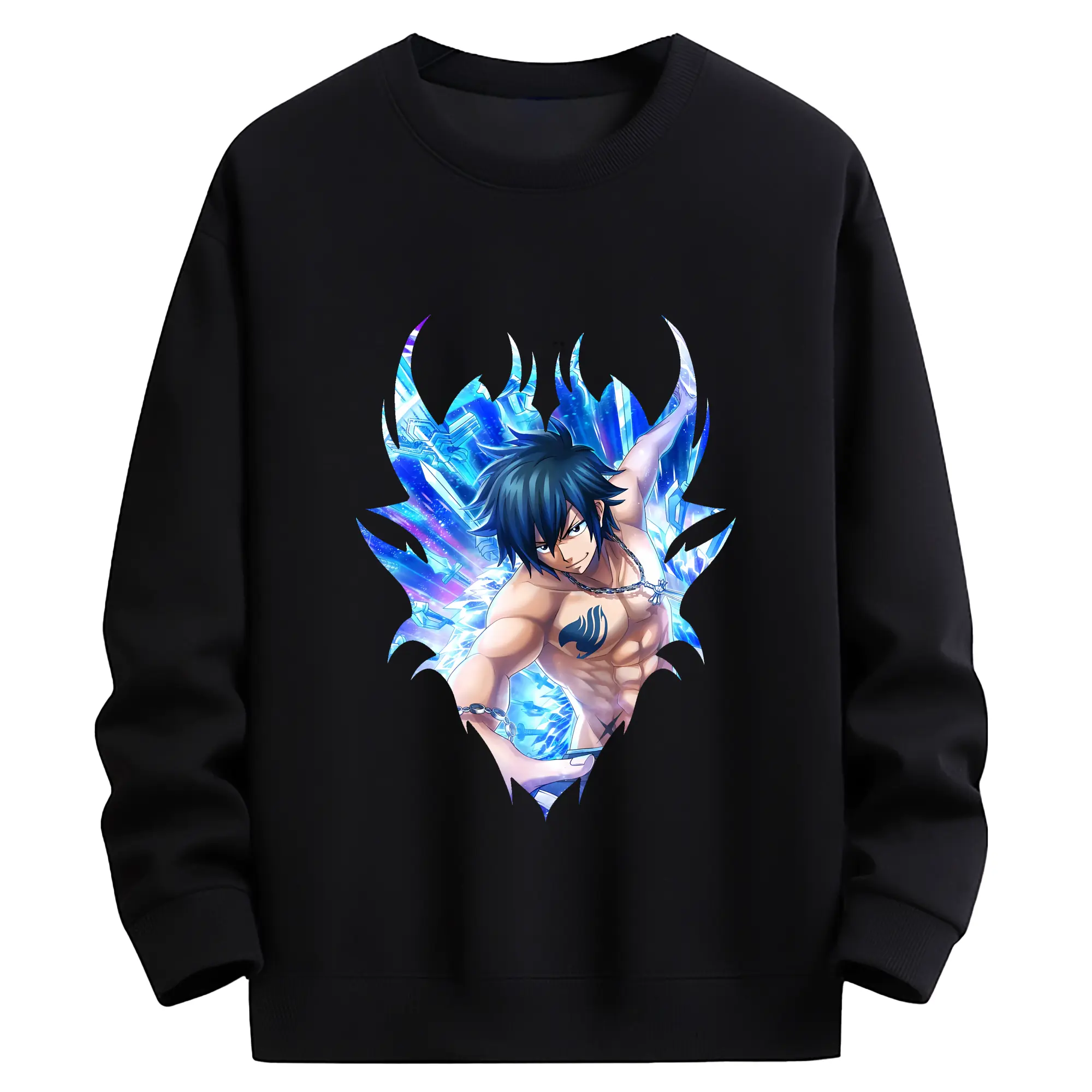 フェアリーテイル グッズ グレイ・フルバスター - 高品質 クルーネック スウェット ・ コットン59% ポリエステル41% ・ ユニセックス 長袖 トレーナー ・ カジュアル デイリー スポーツ 散歩用