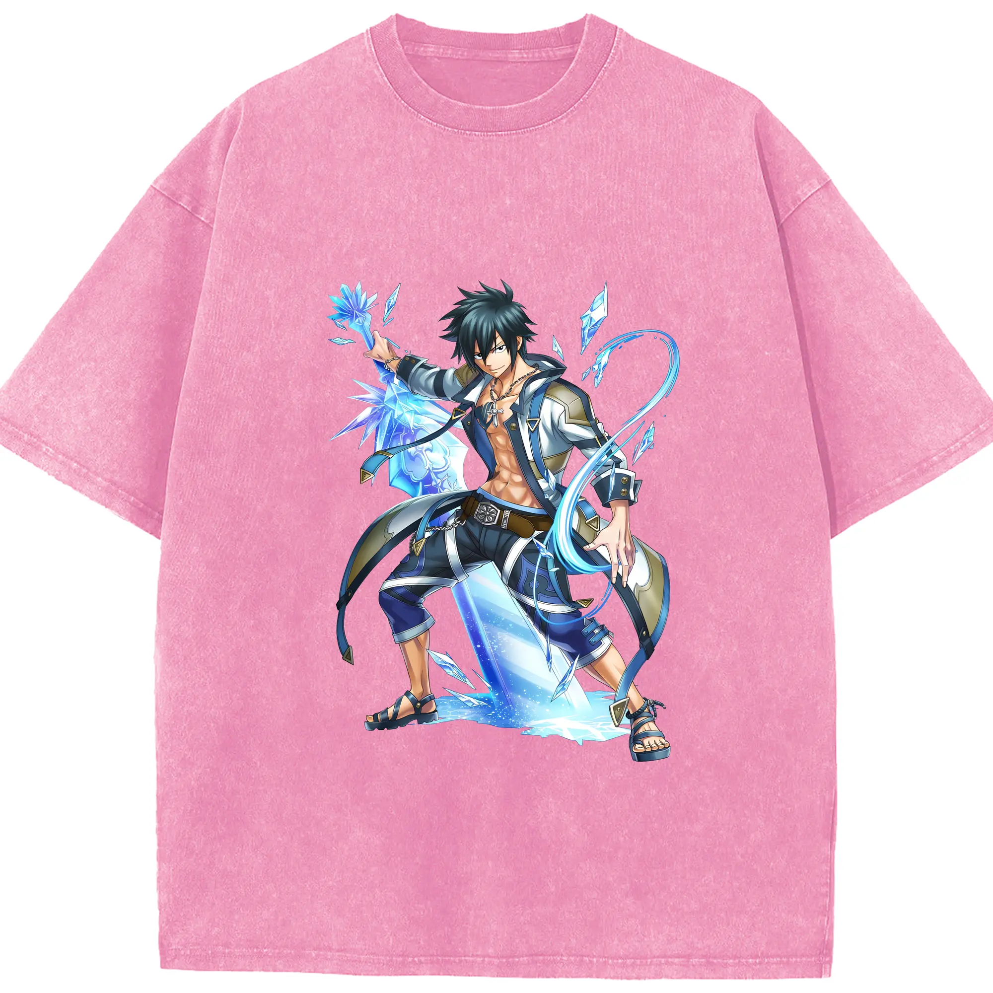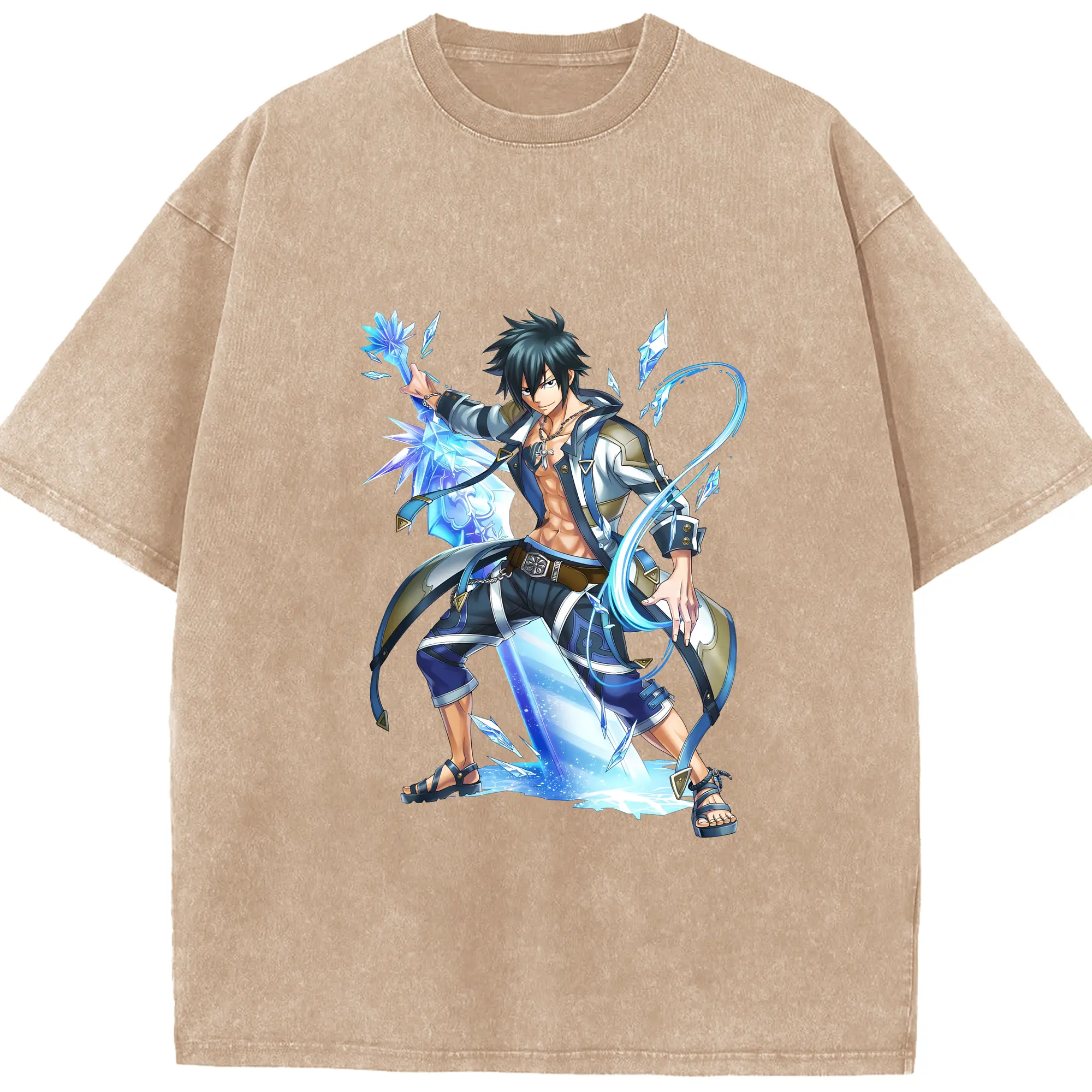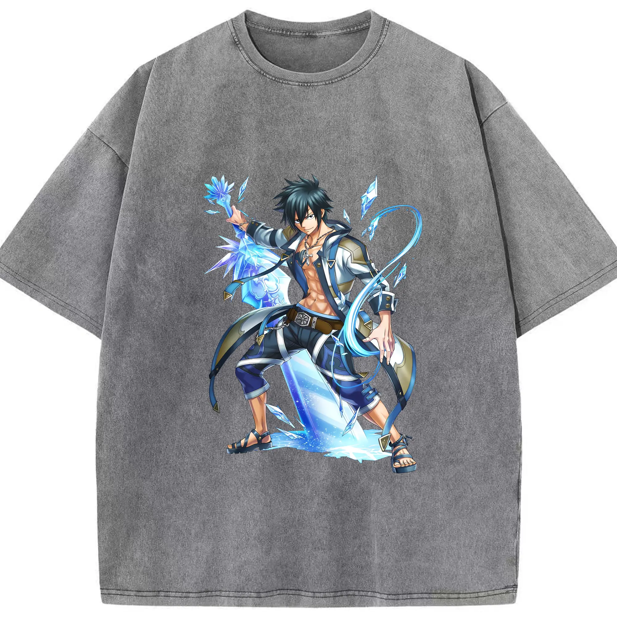 フェアリーテイル グッズ グレイ・フルバスター - 綿100% ヴィンテージ風 半袖Tシャツ ・ 背面プリント ・ 柔らか肌触り ・ 通気性 快適 ・ スポーツ カジュアル 外出用
