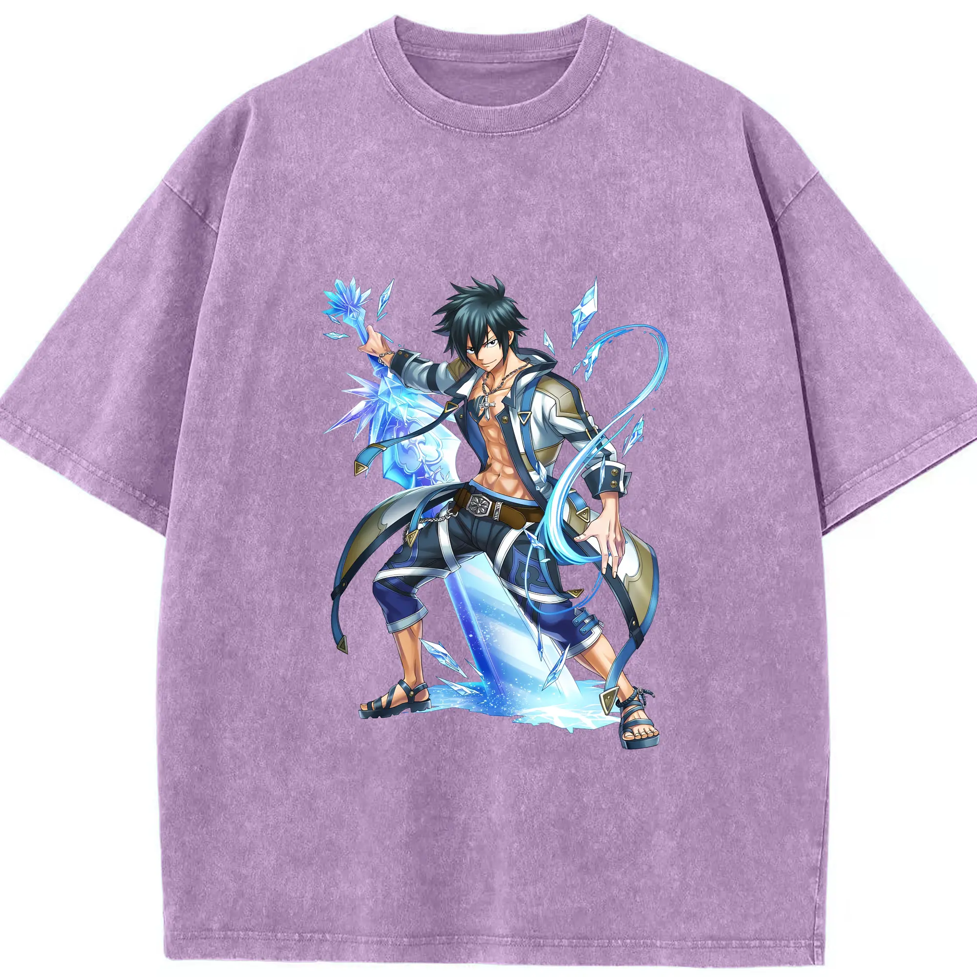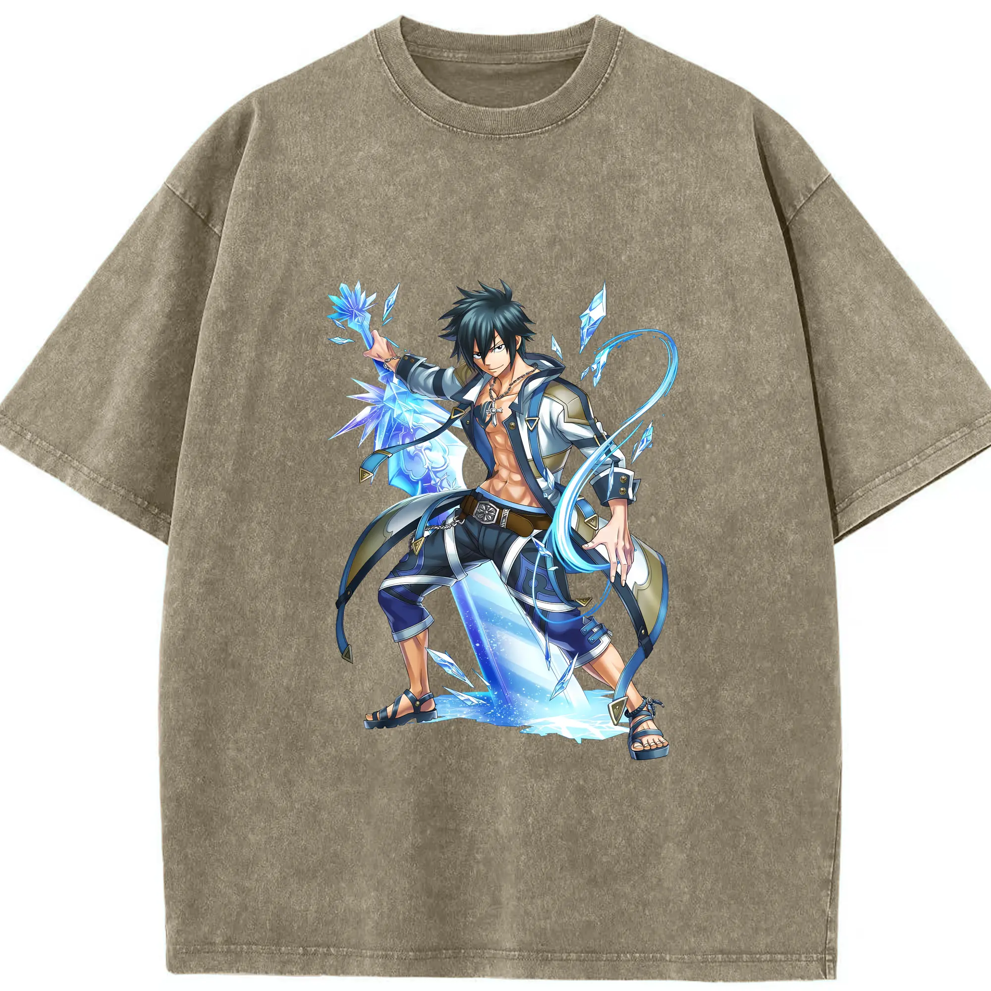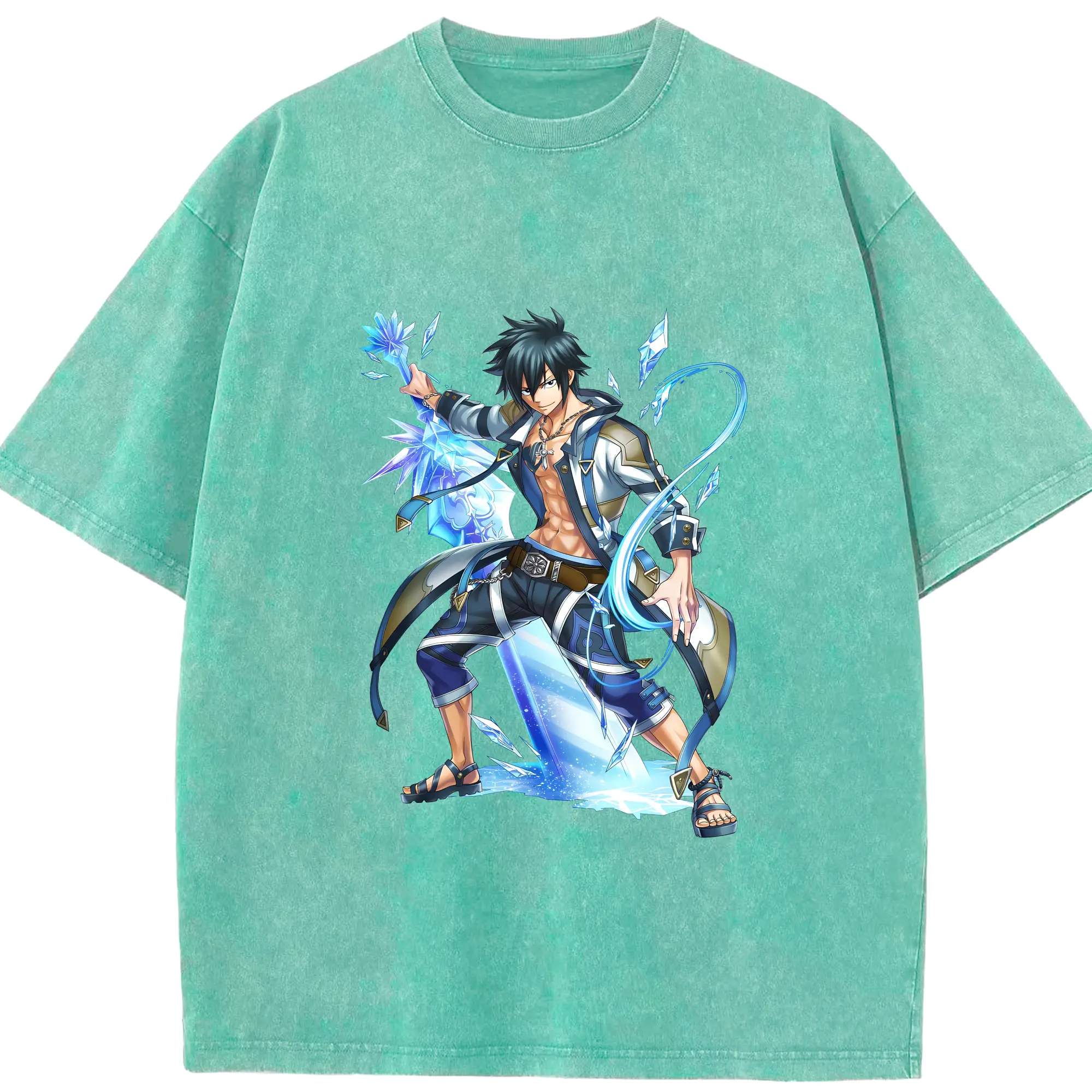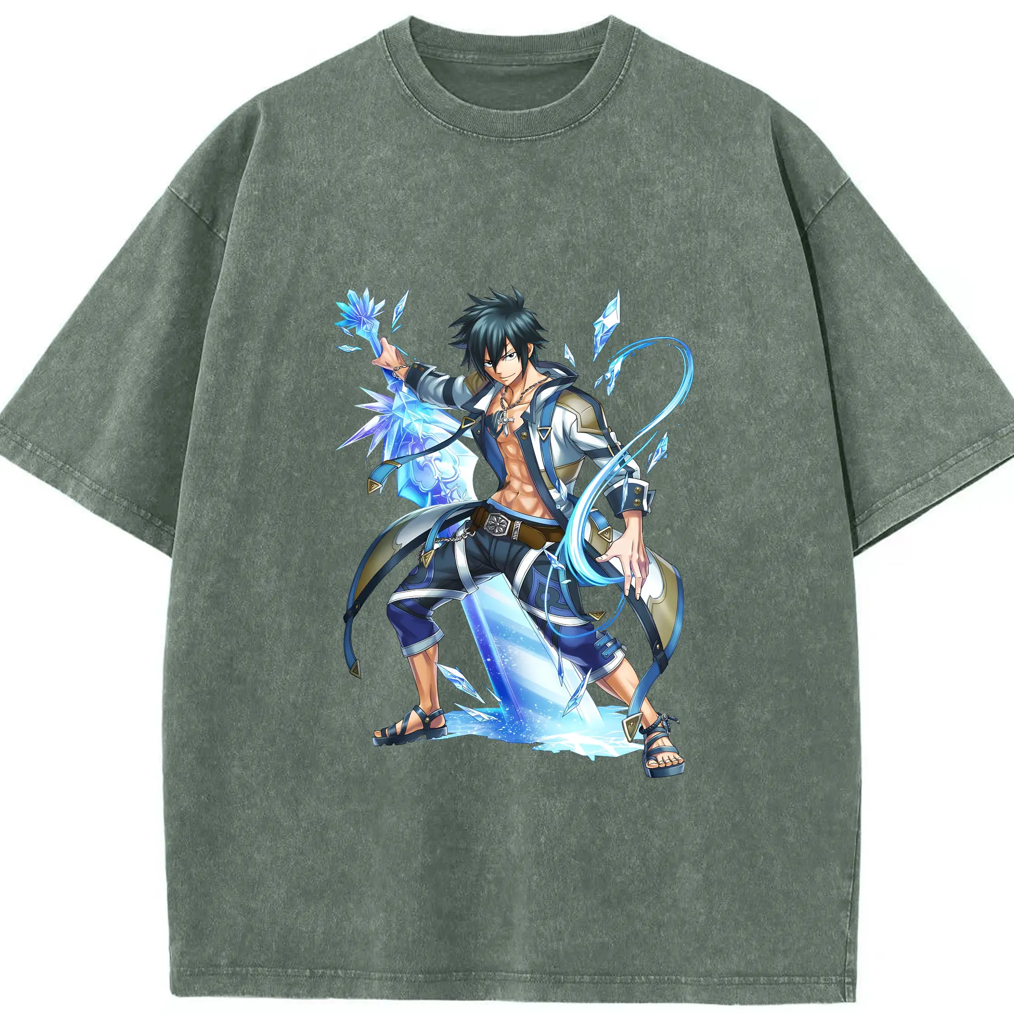 フェアリーテイル グッズ グレイ・フルバスター - 綿100% ヴィンテージ風 半袖Tシャツ ・ 背面プリント ・ 柔らか肌触り ・ 通気性 快適 ・ スポーツ カジュアル 外出用