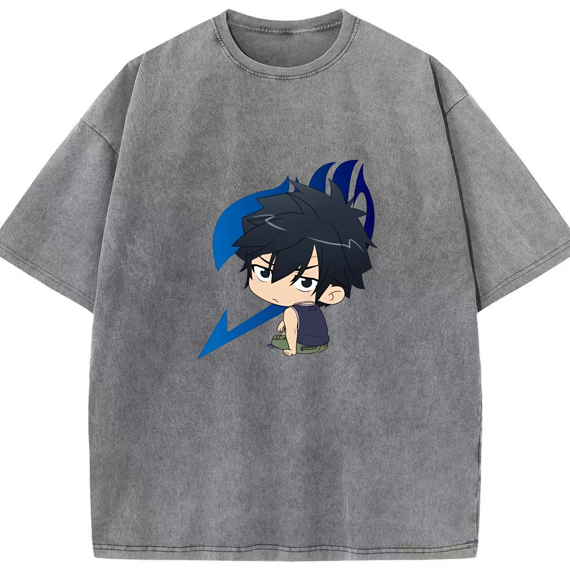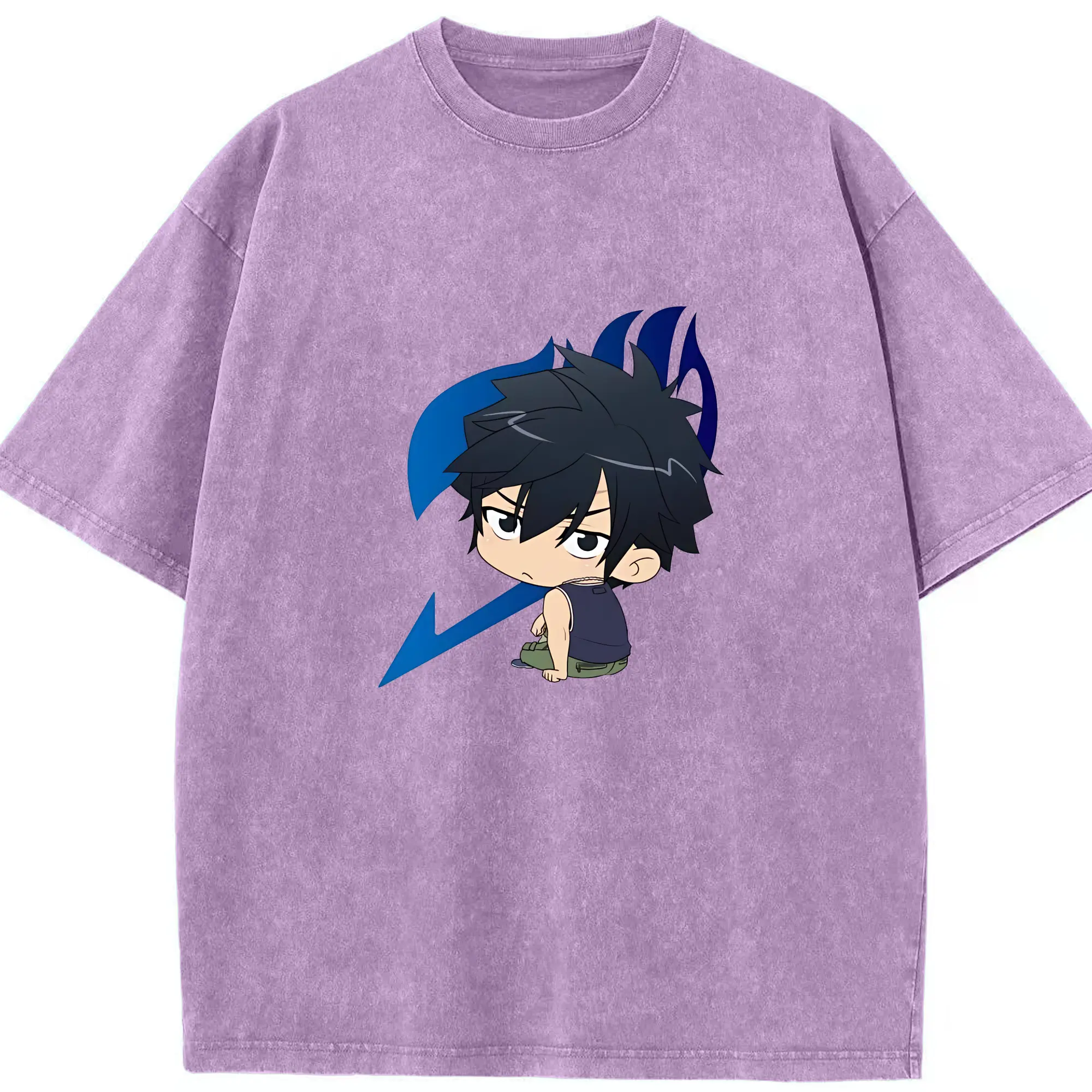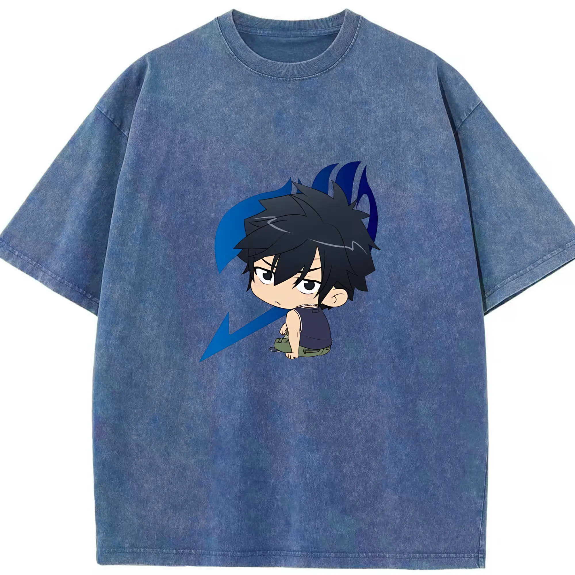 フェアリーテイル グッズ グレイ・フルバスター - 綿100% ヴィンテージ風 半袖Tシャツ ・ 背面プリント ・ 柔らか肌触り ・ 通気性 快適 ・ スポーツ カジュアル 外出用