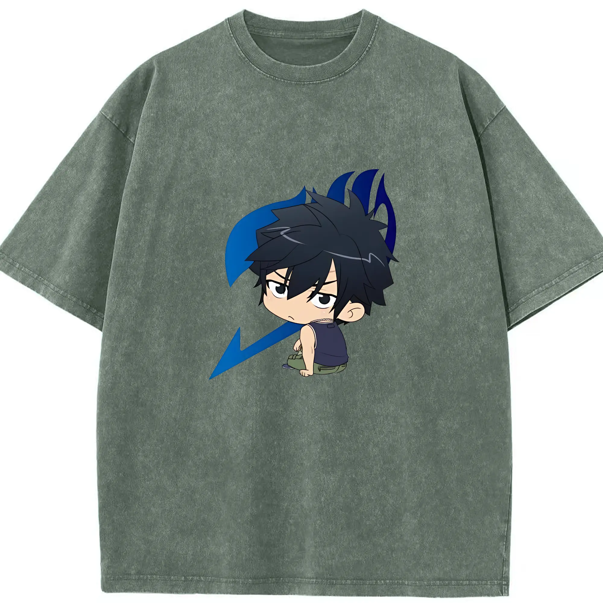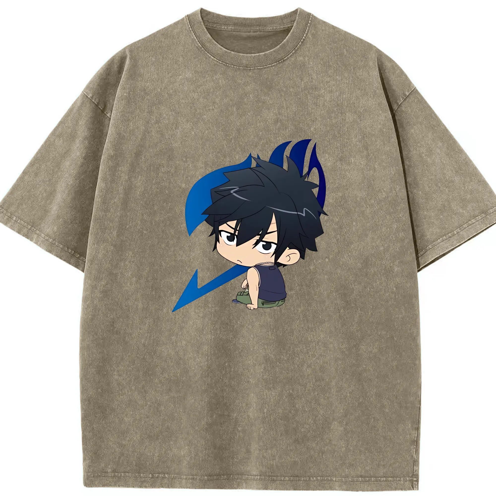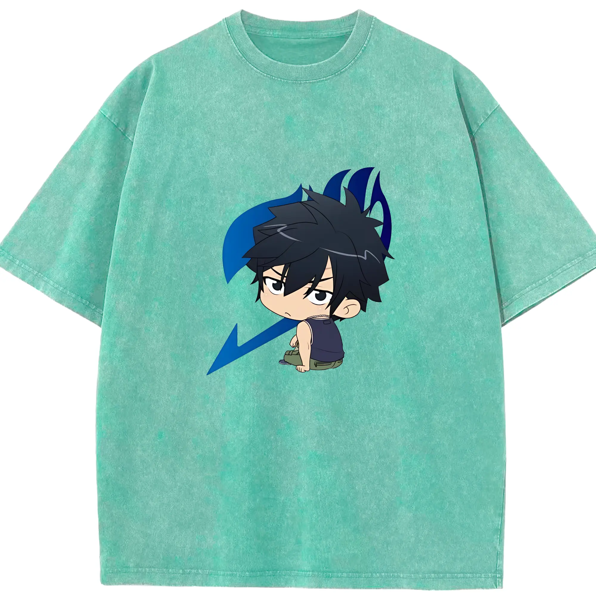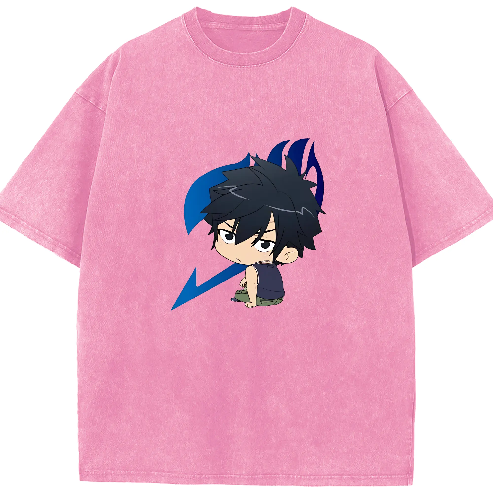 フェアリーテイル グッズ グレイ・フルバスター - 綿100% ヴィンテージ風 半袖Tシャツ ・ 背面プリント ・ 柔らか肌触り ・ 通気性 快適 ・ スポーツ カジュアル 外出用