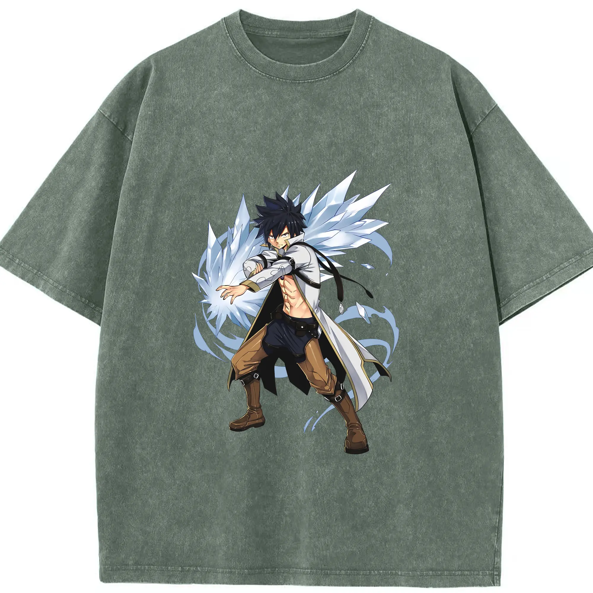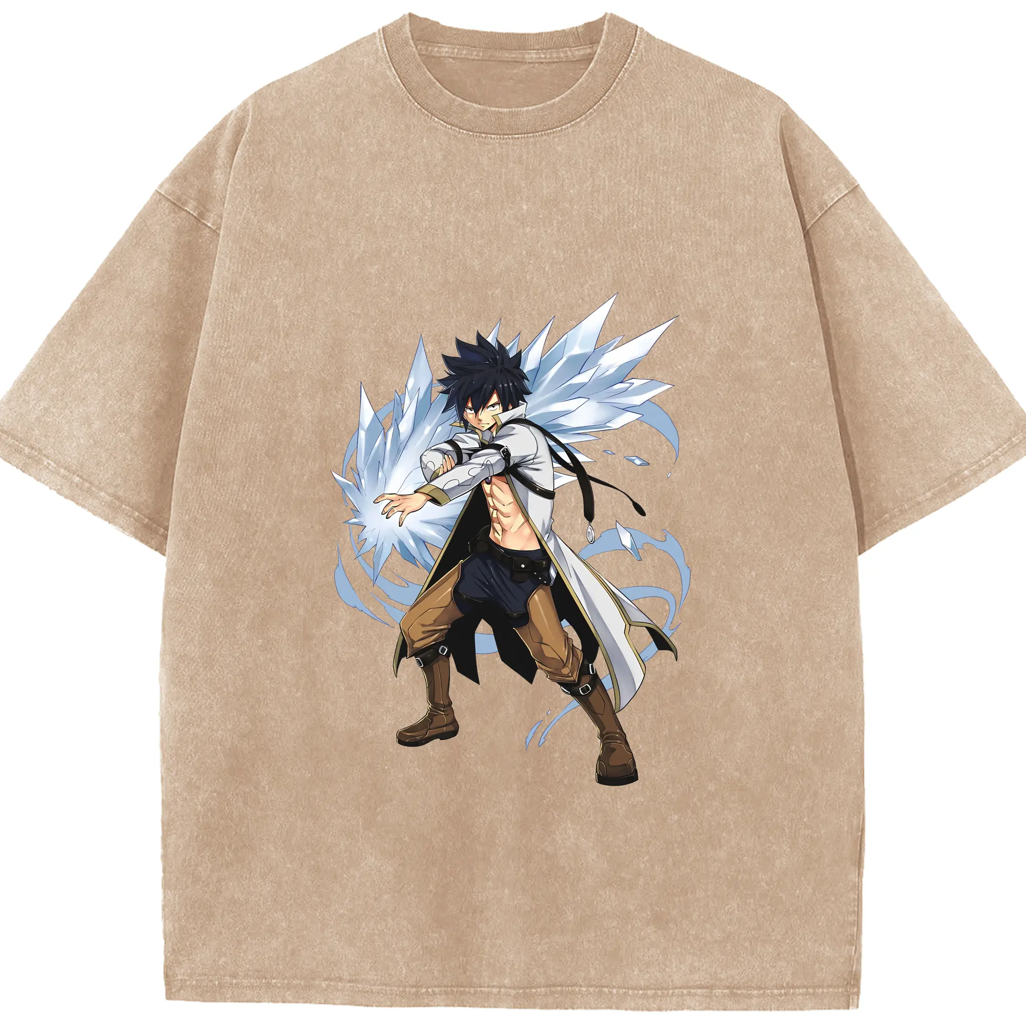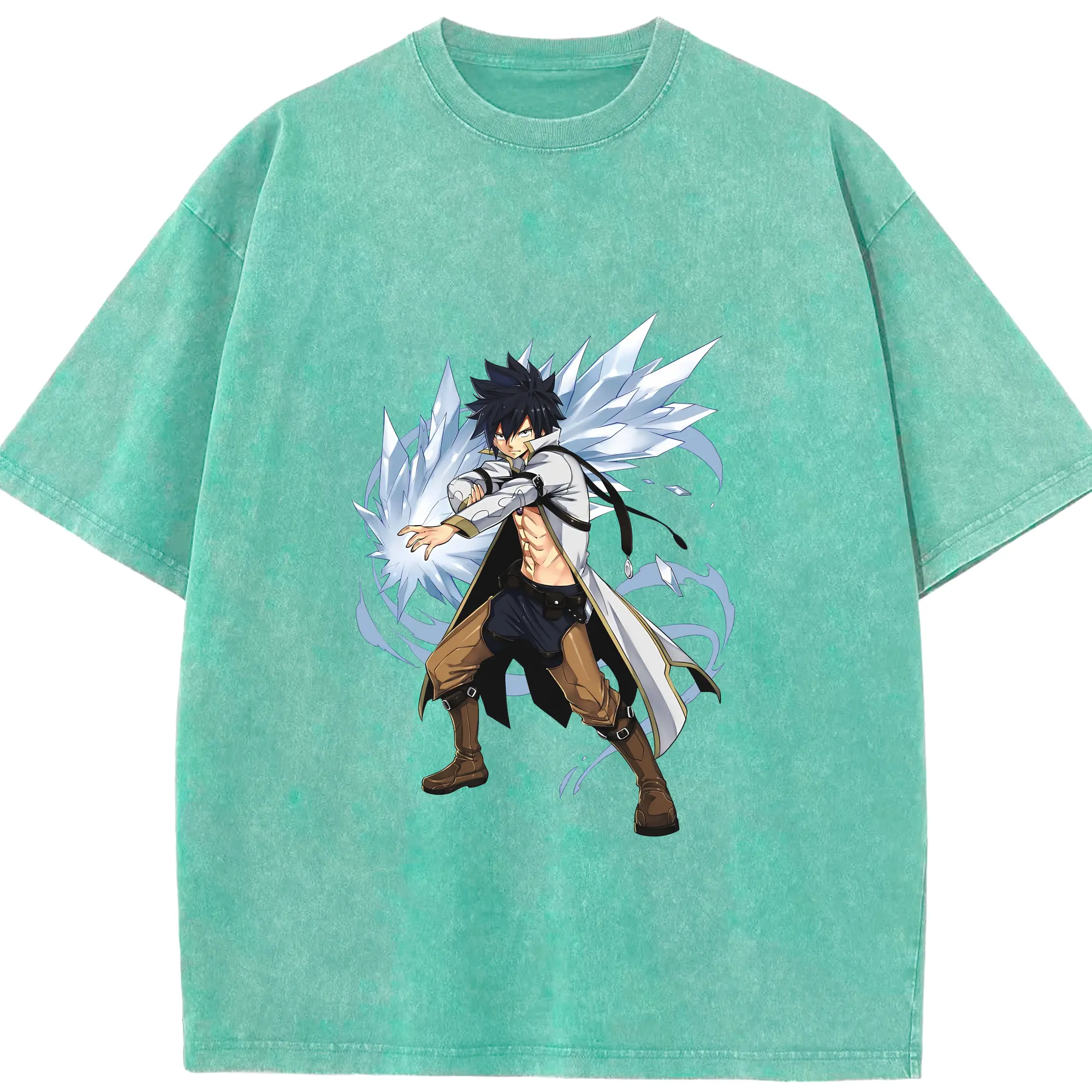 フェアリーテイル グッズ グレイ・フルバスター - 綿100% ヴィンテージ風 半袖Tシャツ ・ 背面プリント ・ 柔らか肌触り ・ 通気性 快適 ・ スポーツ カジュアル 外出用
