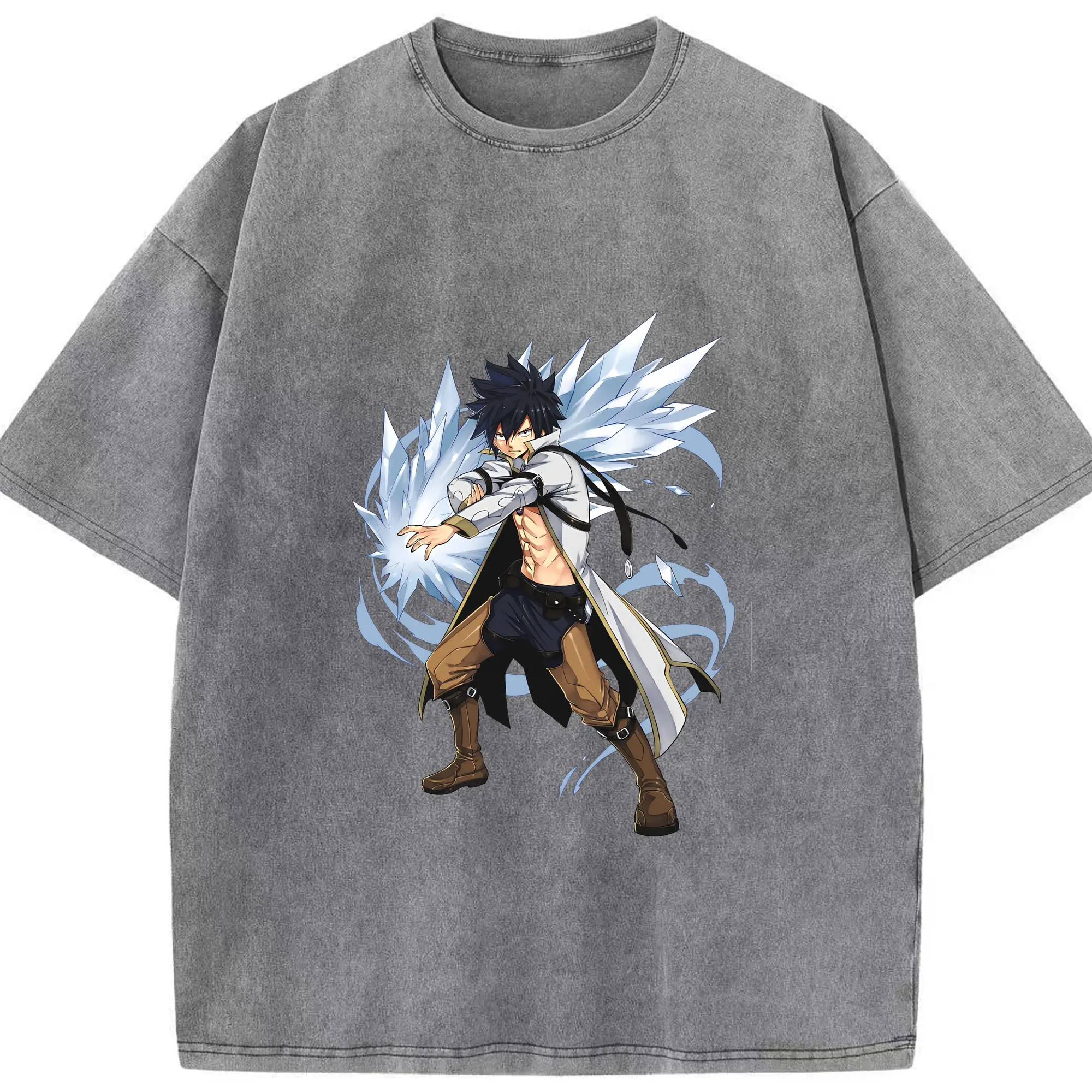 フェアリーテイル グッズ グレイ・フルバスター - 綿100% 半袖Tシャツ ・ フロントプリント ・ 快適 通気性 ・ 日常使い 散歩 スポーツ用