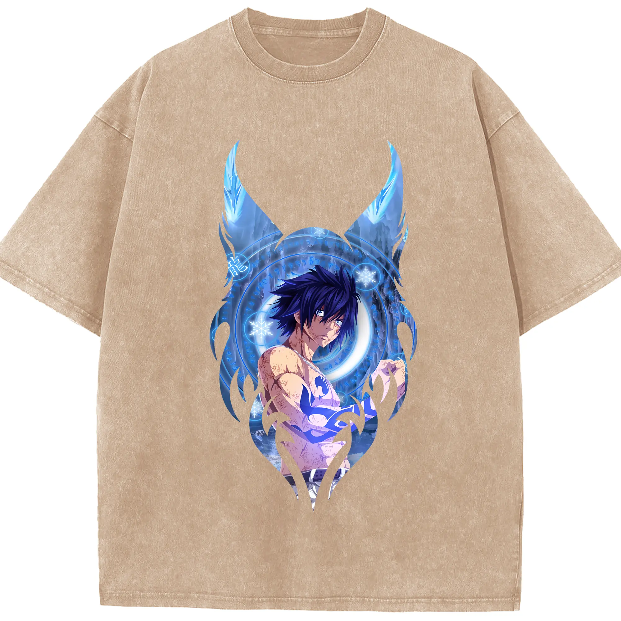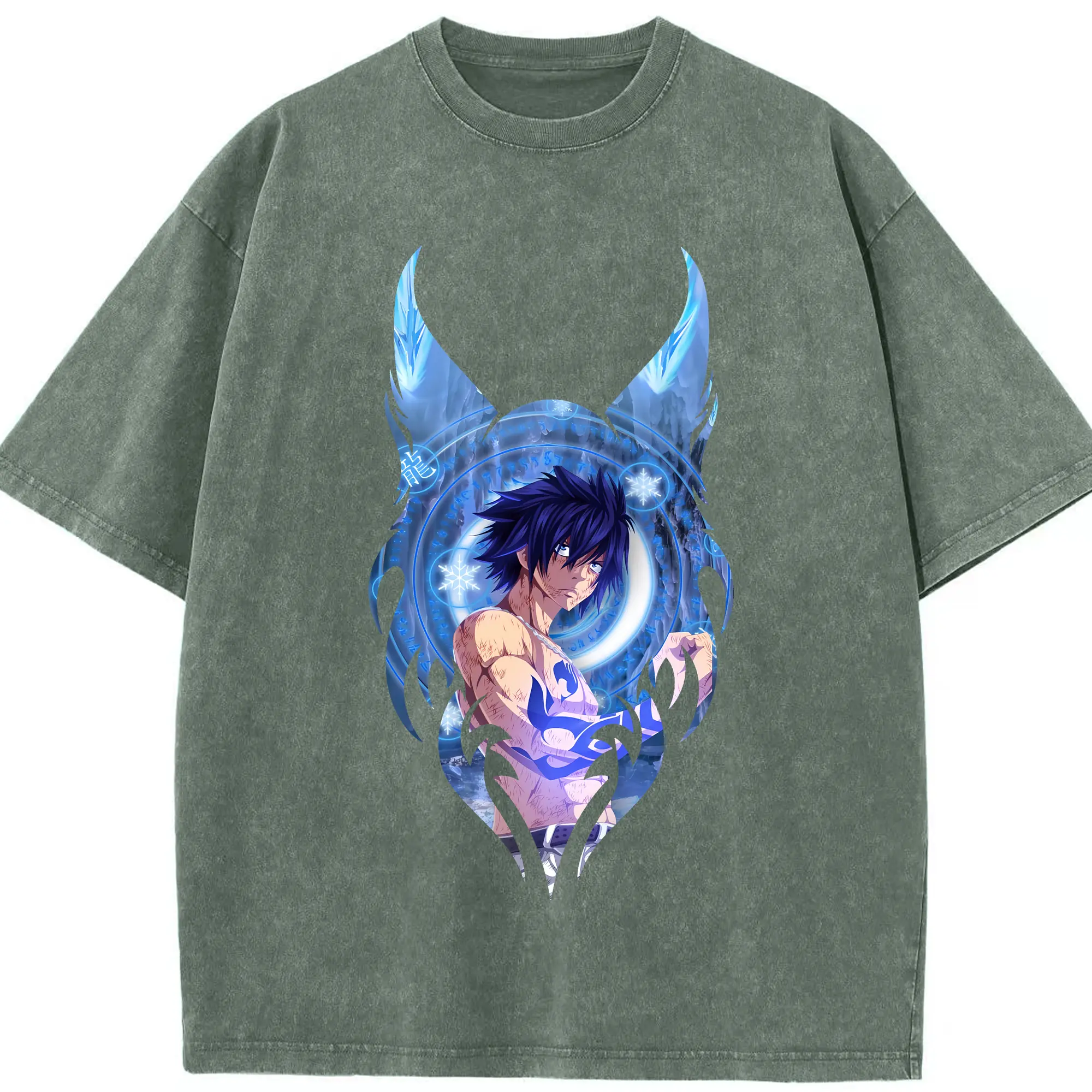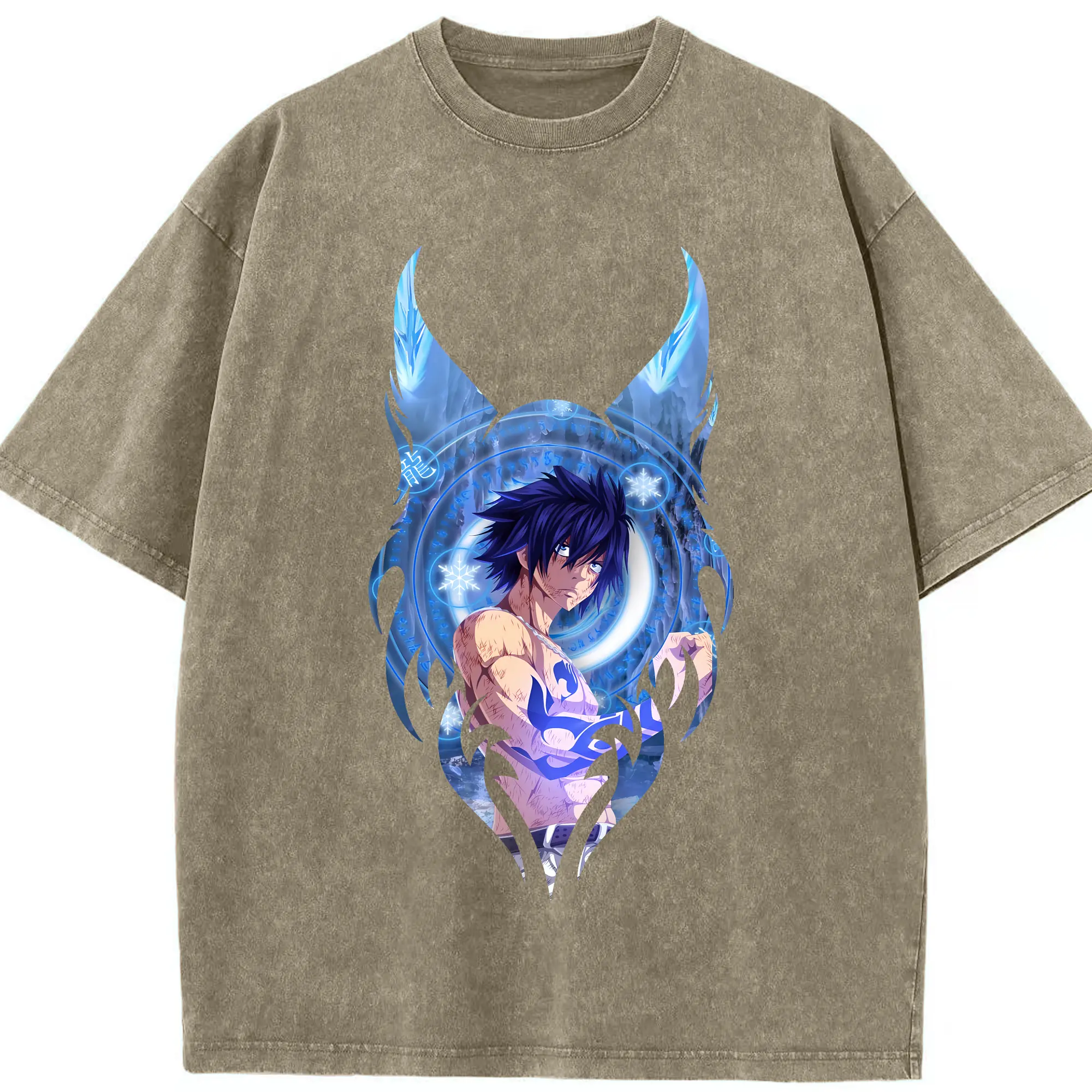 フェアリーテイル グッズ グレイ・フルバスター - 綿100% ヴィンテージ風 半袖Tシャツ ・ 背面プリント ・ 柔らか肌触り ・ 通気性 快適 ・ スポーツ カジュアル 外出用