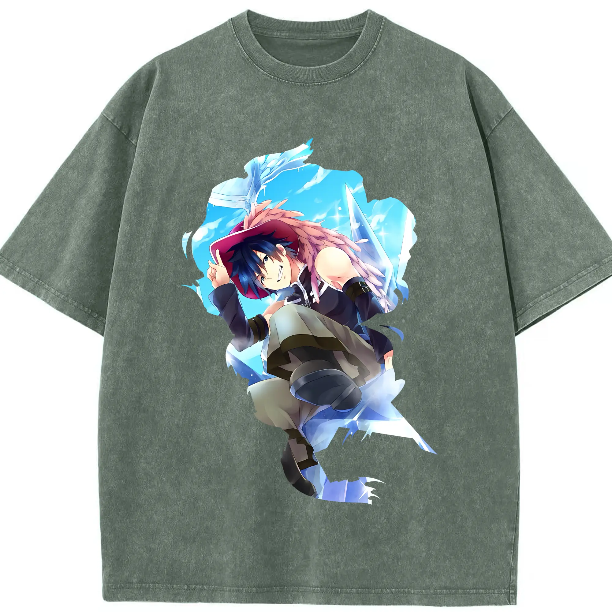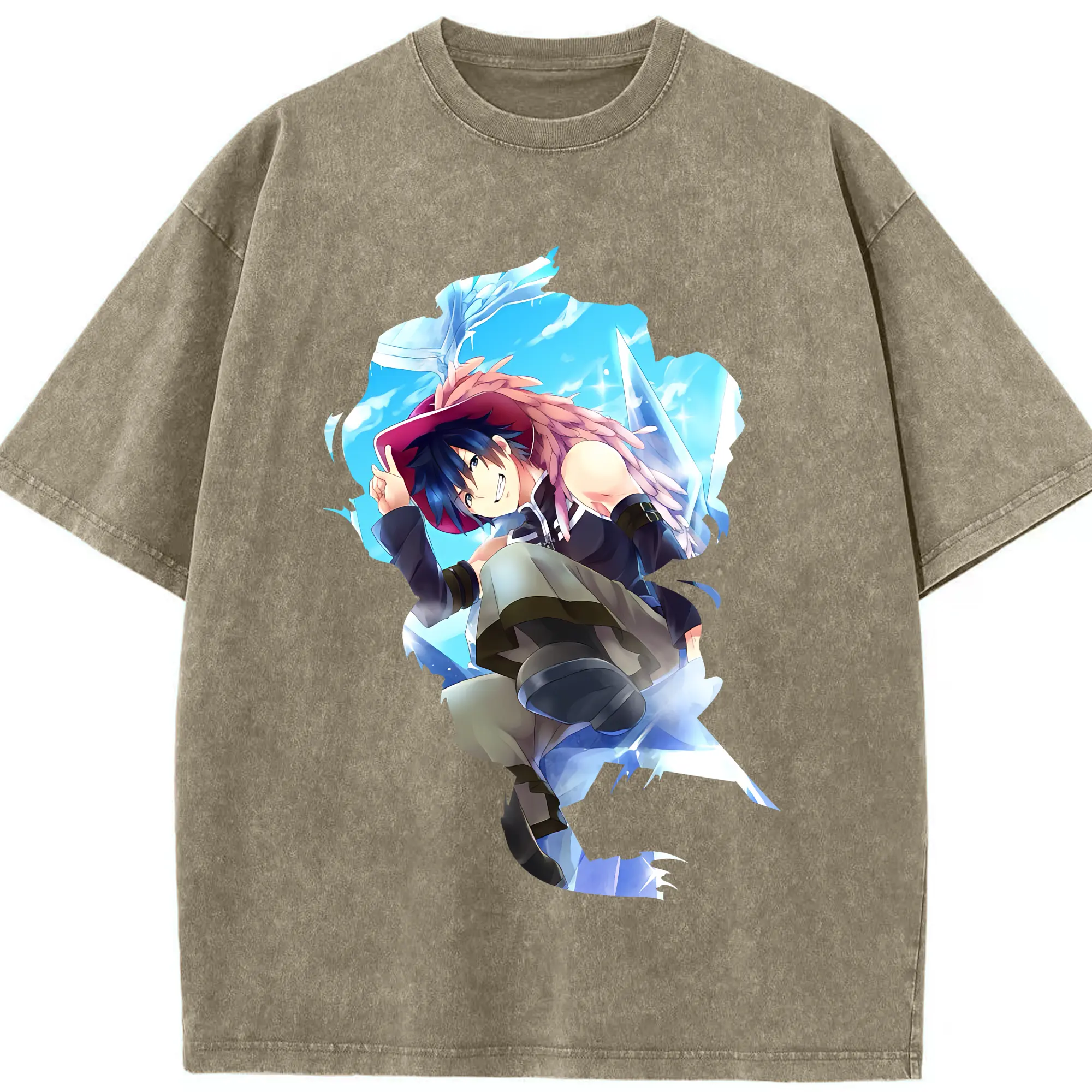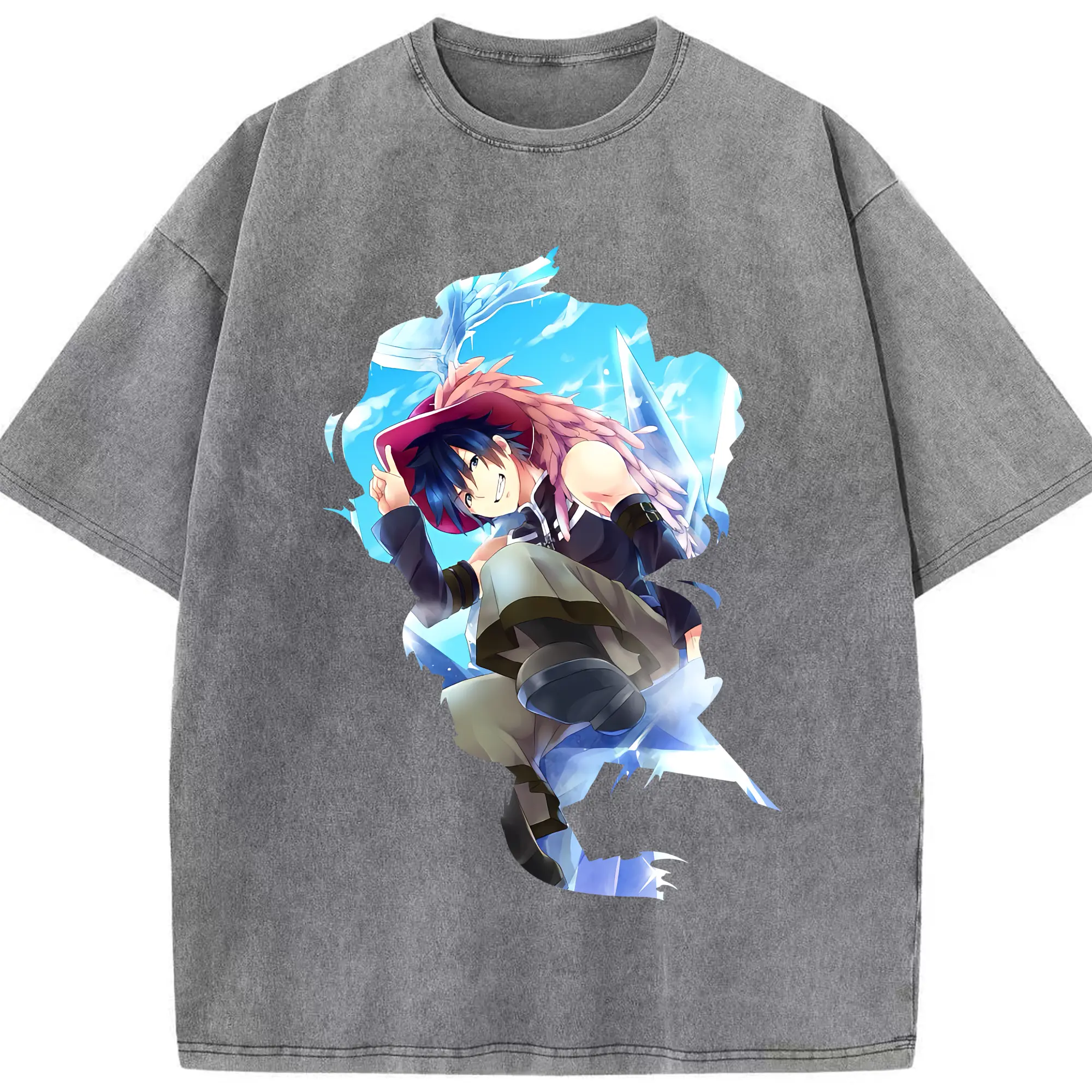 フェアリーテイル グッズ グレイ・フルバスター - 綿100% ヴィンテージ風 半袖Tシャツ ・ 背面プリント ・ 柔らか肌触り ・ 通気性 快適 ・ スポーツ カジュアル 外出用