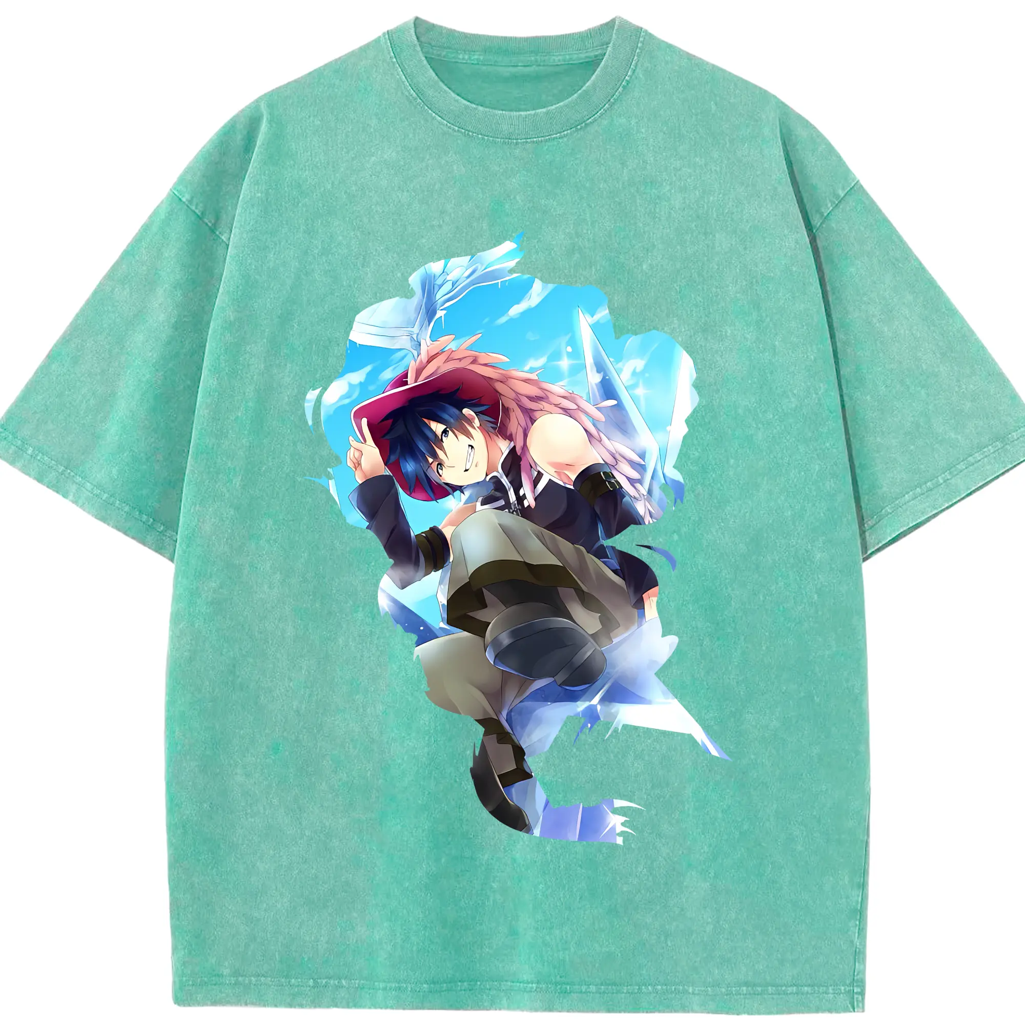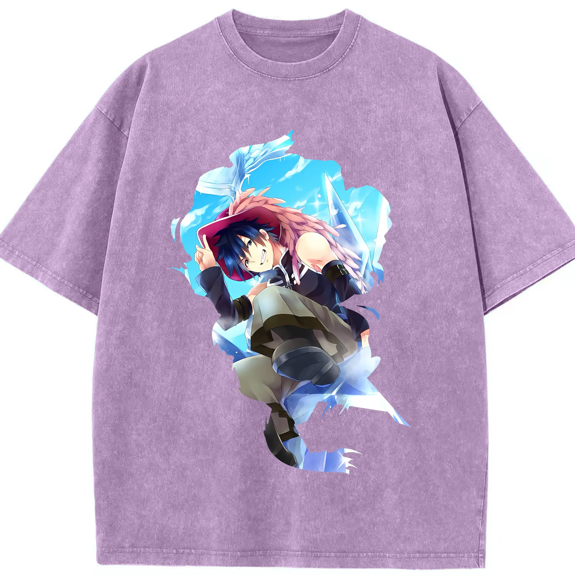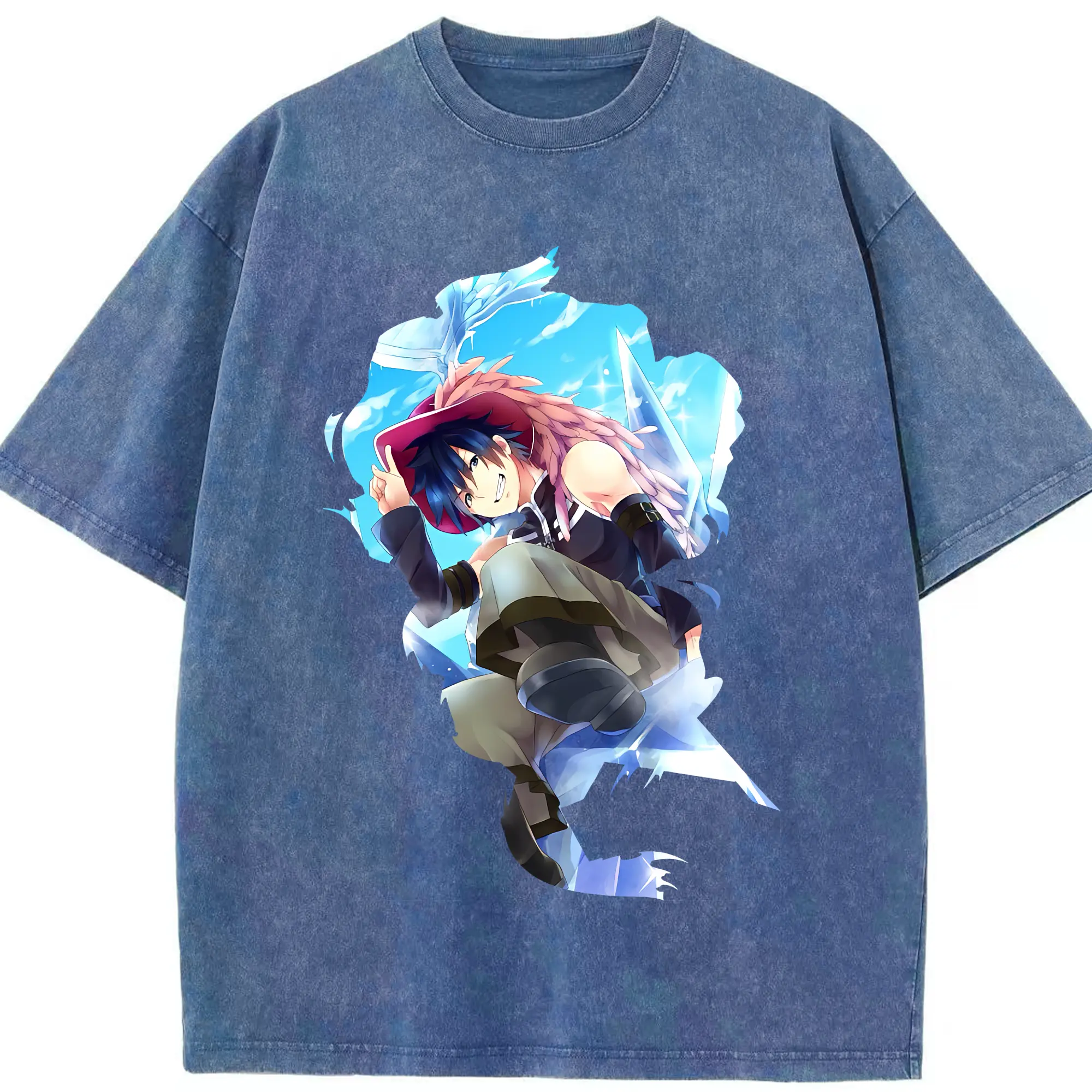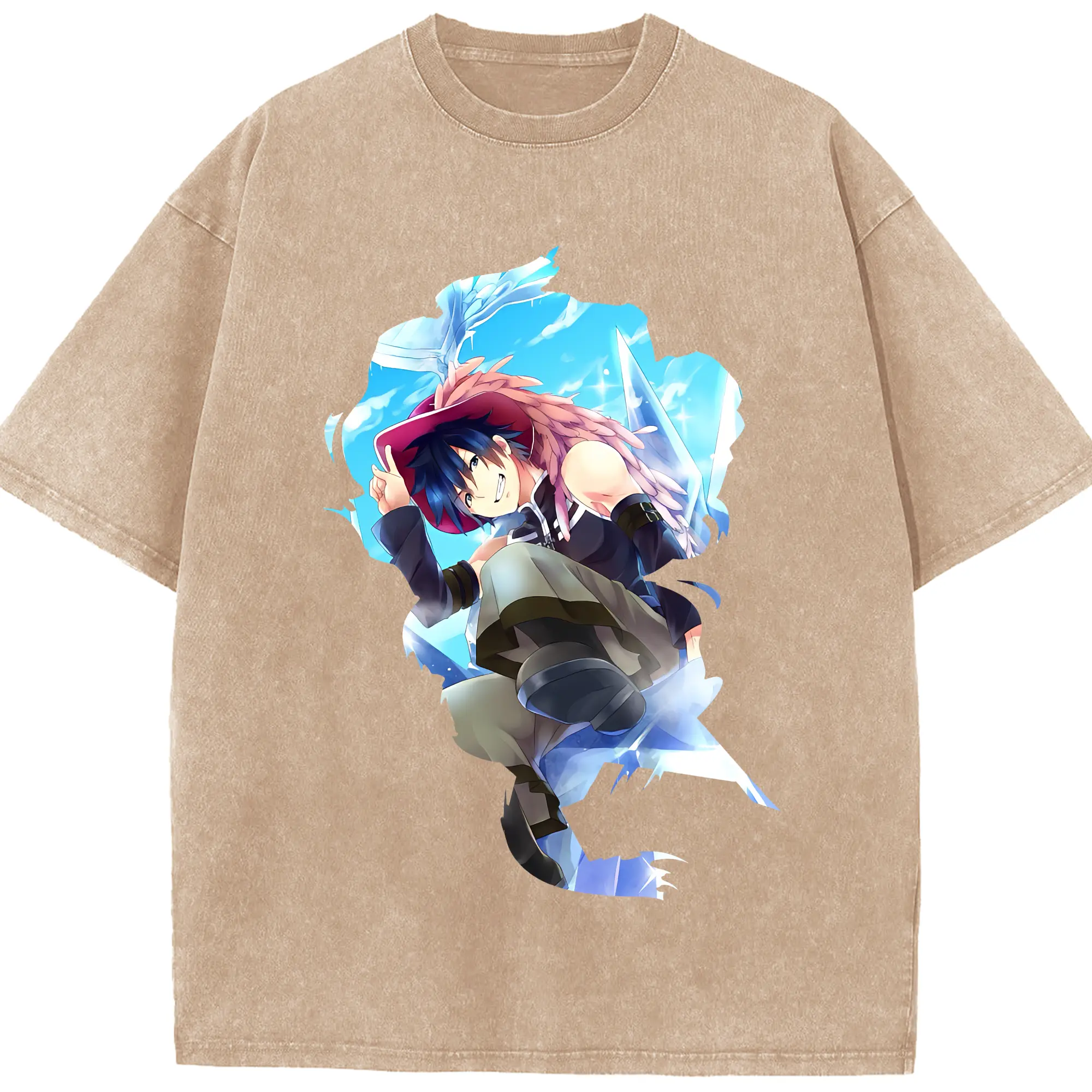 フェアリーテイル グッズ グレイ・フルバスター - 綿100% ヴィンテージ風 半袖Tシャツ ・ 背面プリント ・ 柔らか肌触り ・ 通気性 快適 ・ スポーツ カジュアル 外出用
