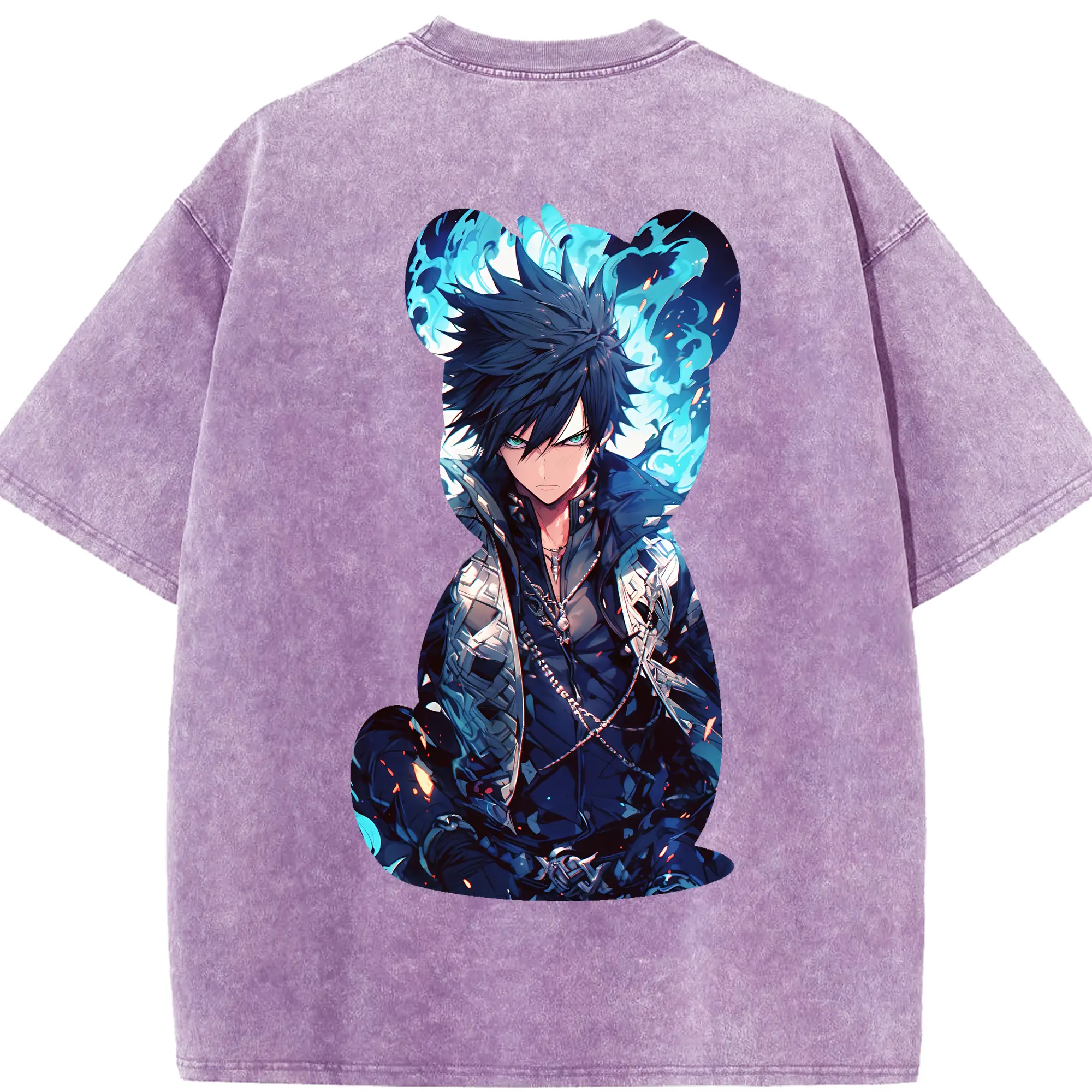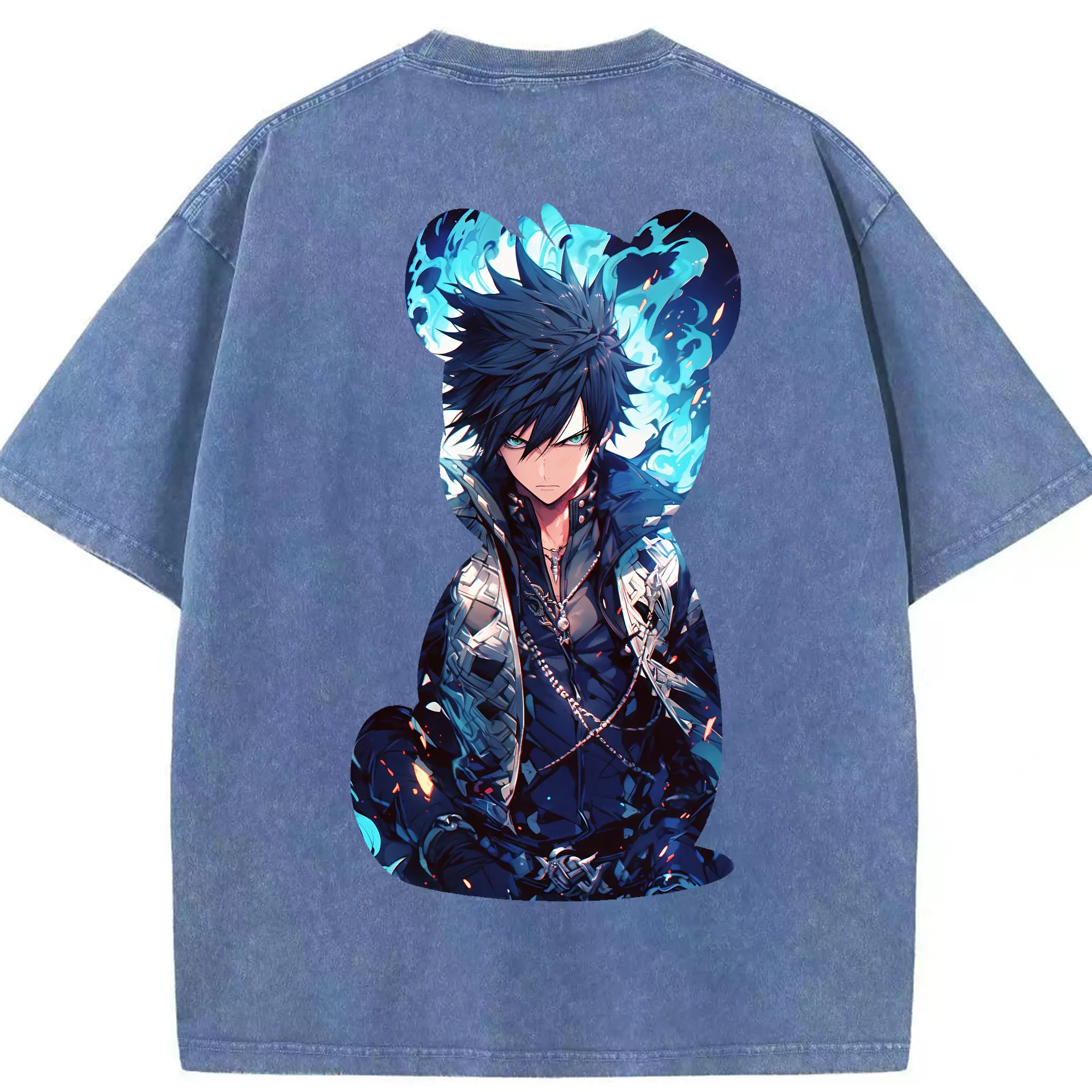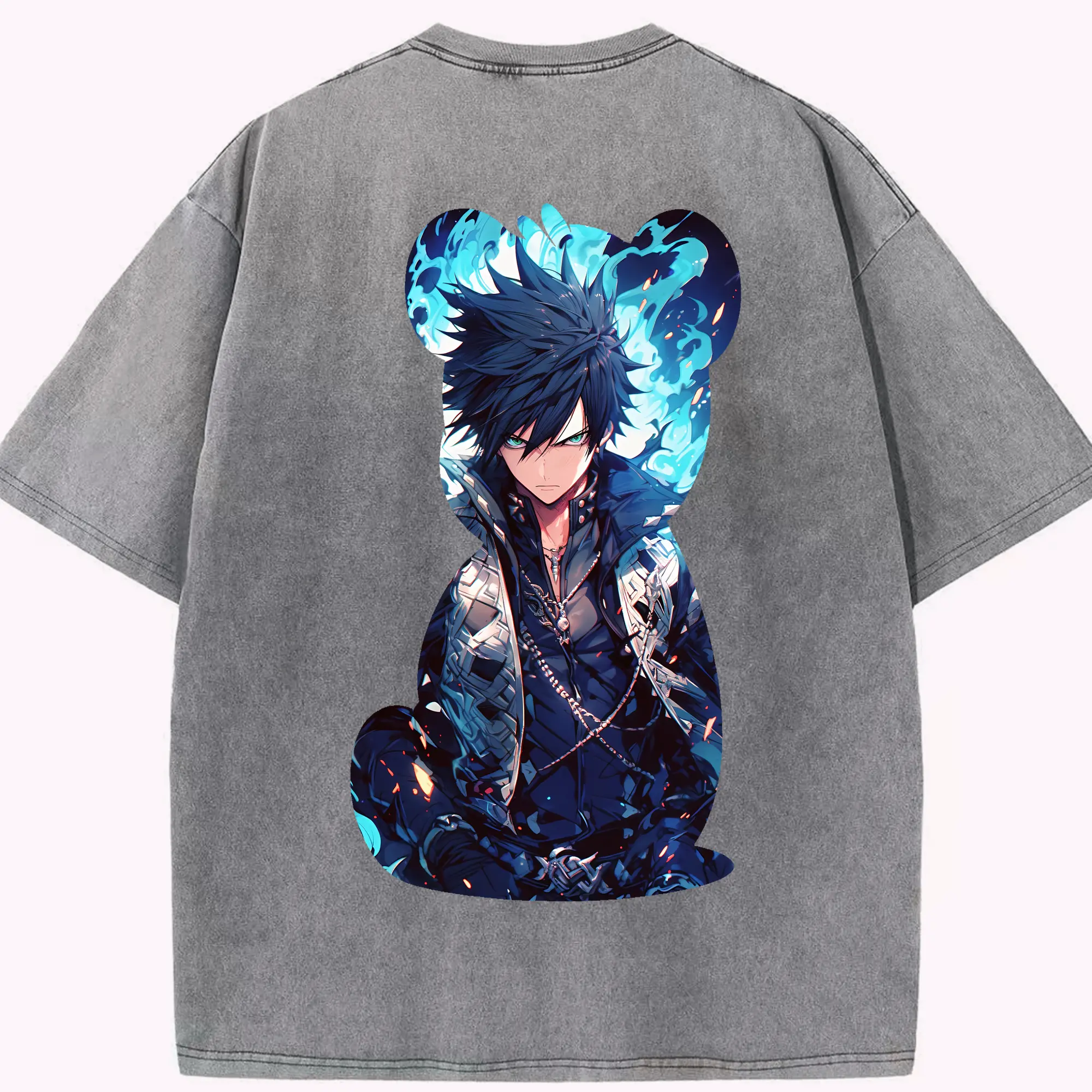 フェアリーテイル グッズ グレイ・フルバスター - 綿100% ヴィンテージ風 半袖Tシャツ ・ フロントプリント ・ 柔らか肌触り ・ 通気性 快適 ・ スポーツ カジュアル 外出用