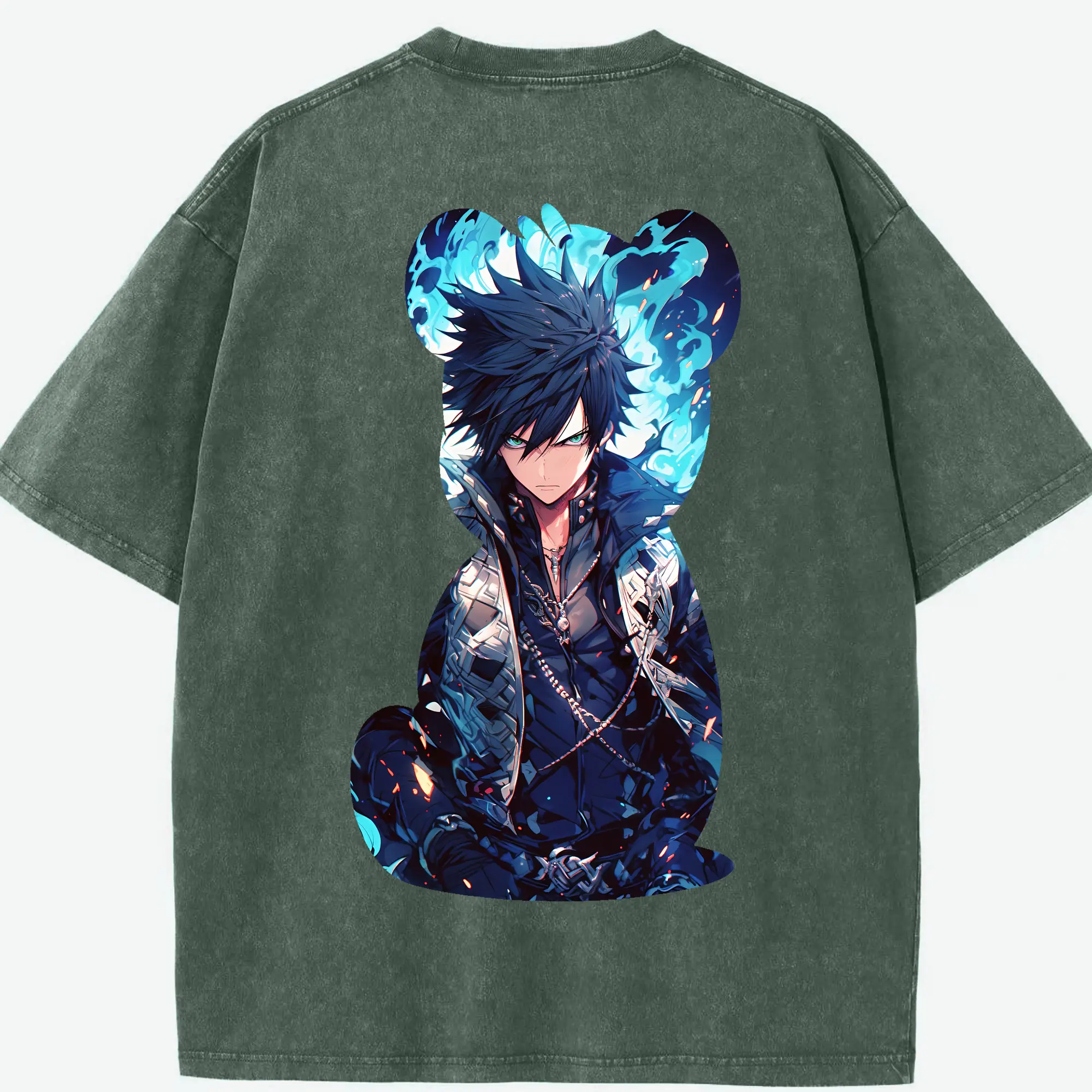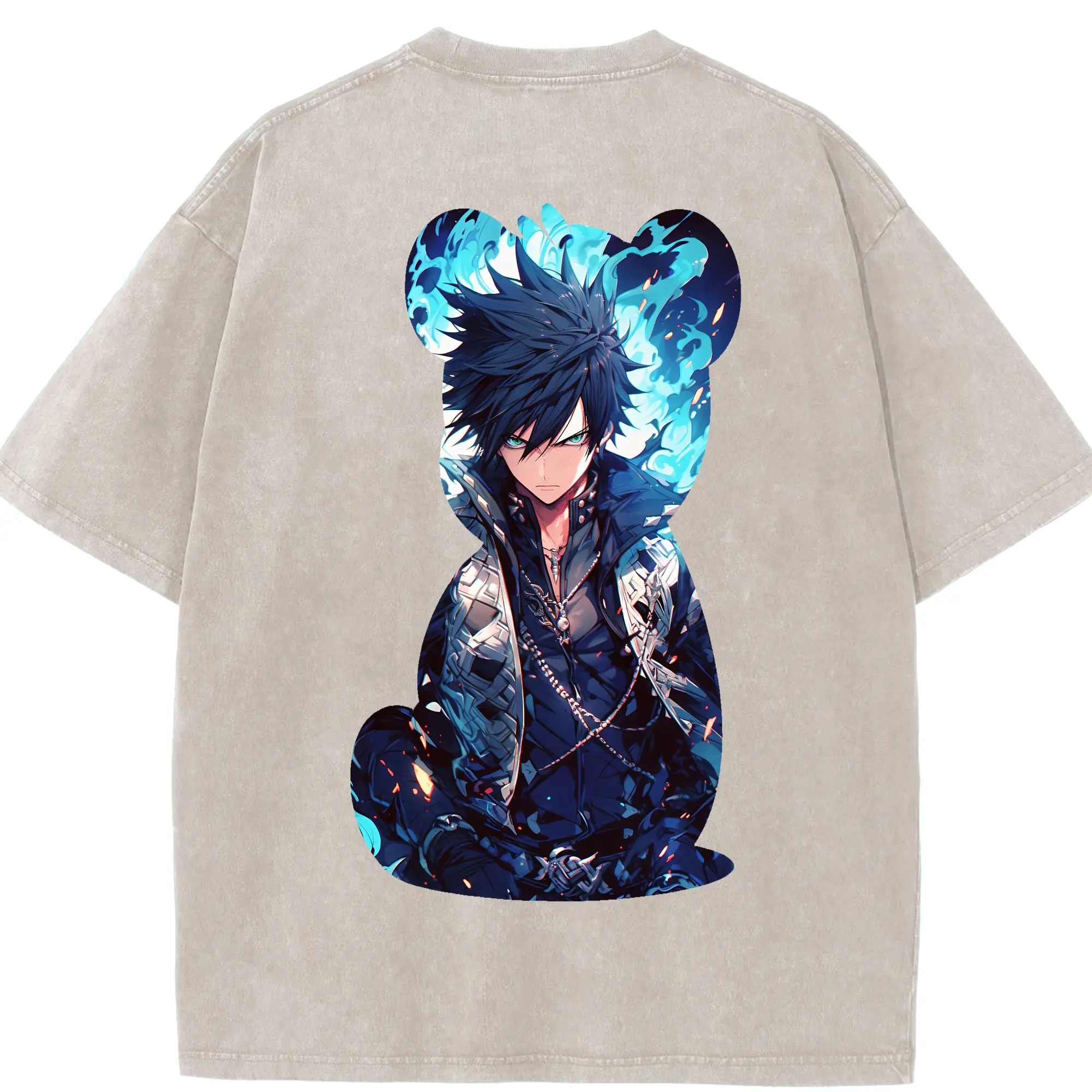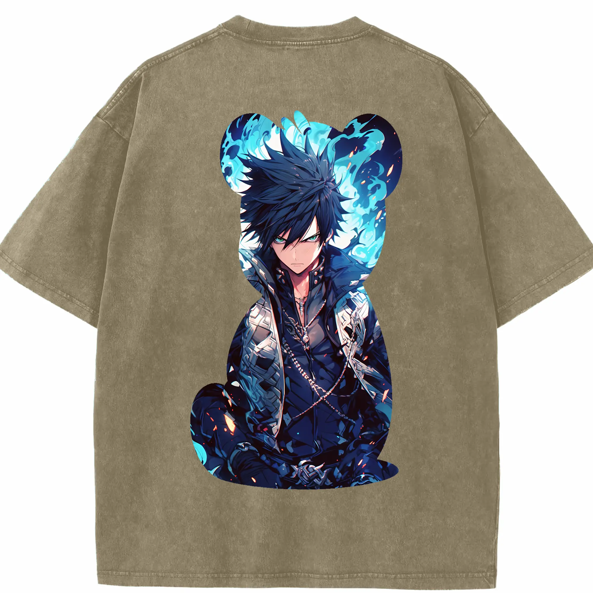 フェアリーテイル グッズ グレイ・フルバスター - 綿100% ヴィンテージ風 半袖Tシャツ ・ フロントプリント ・ 柔らか肌触り ・ 通気性 快適 ・ スポーツ カジュアル 外出用