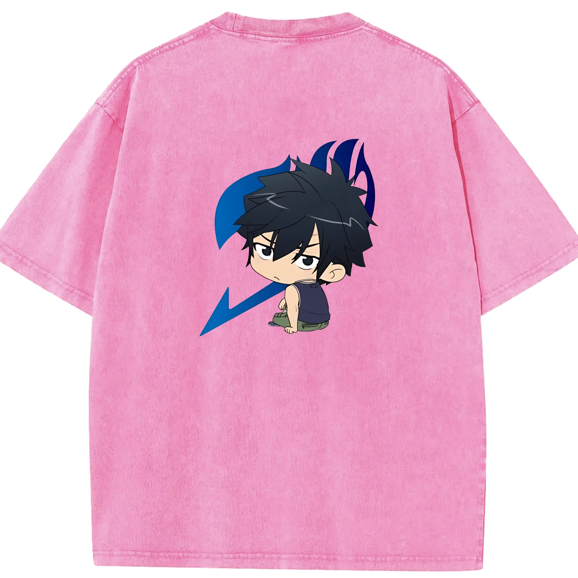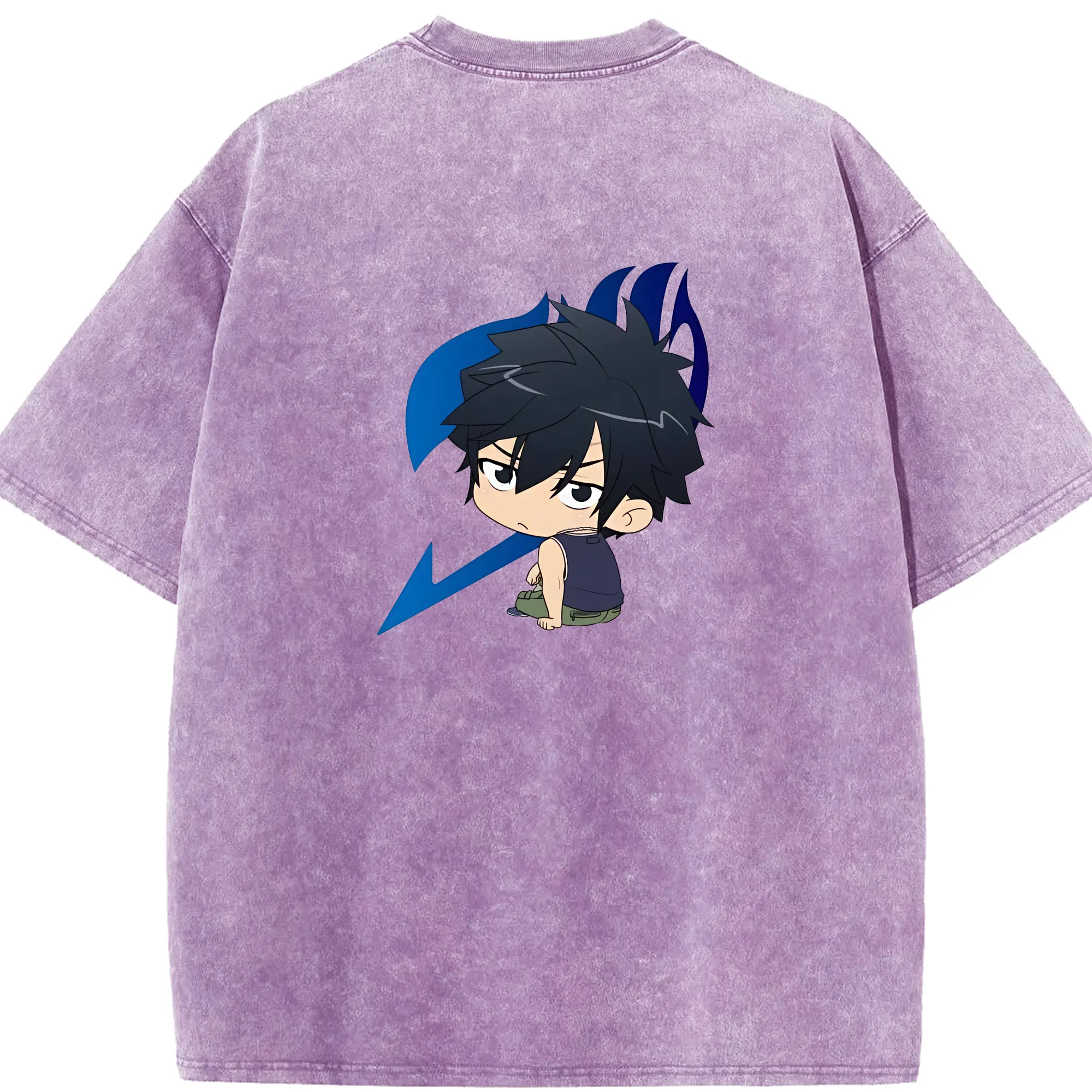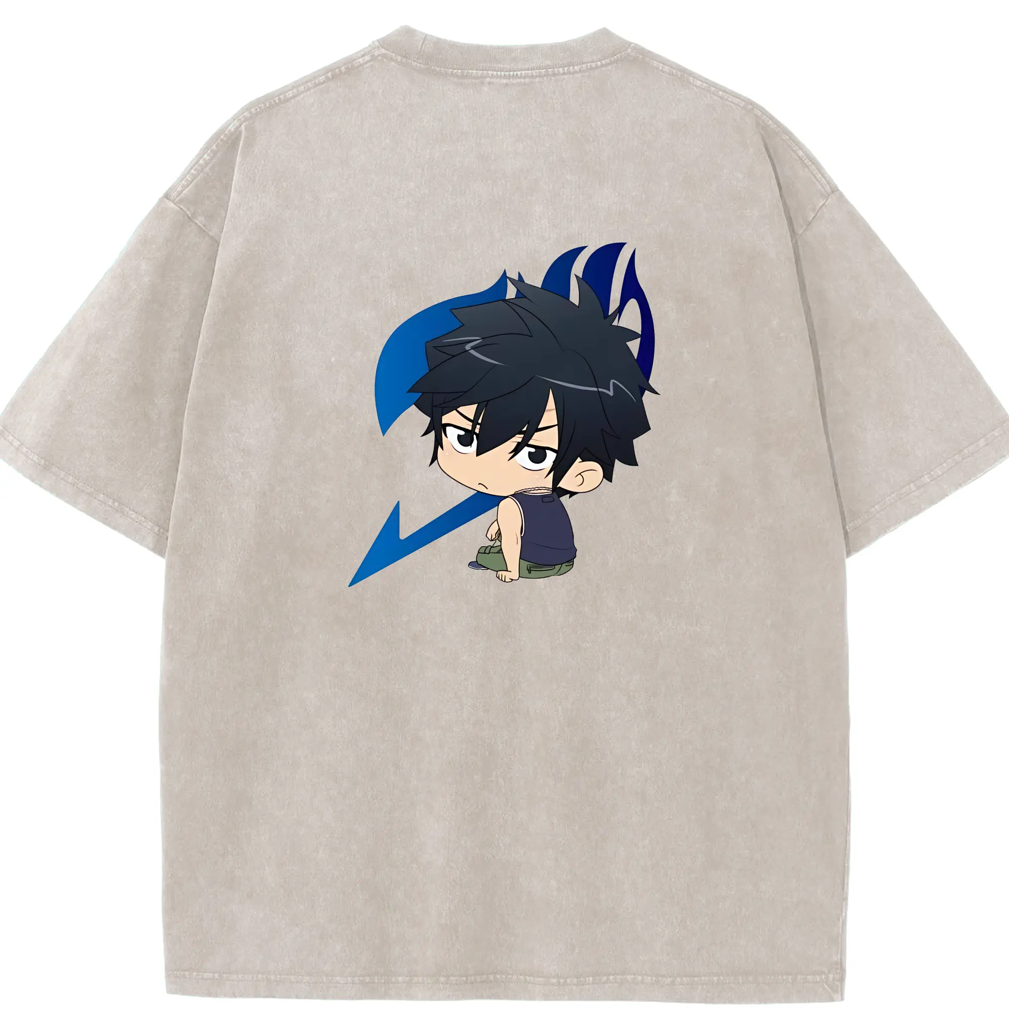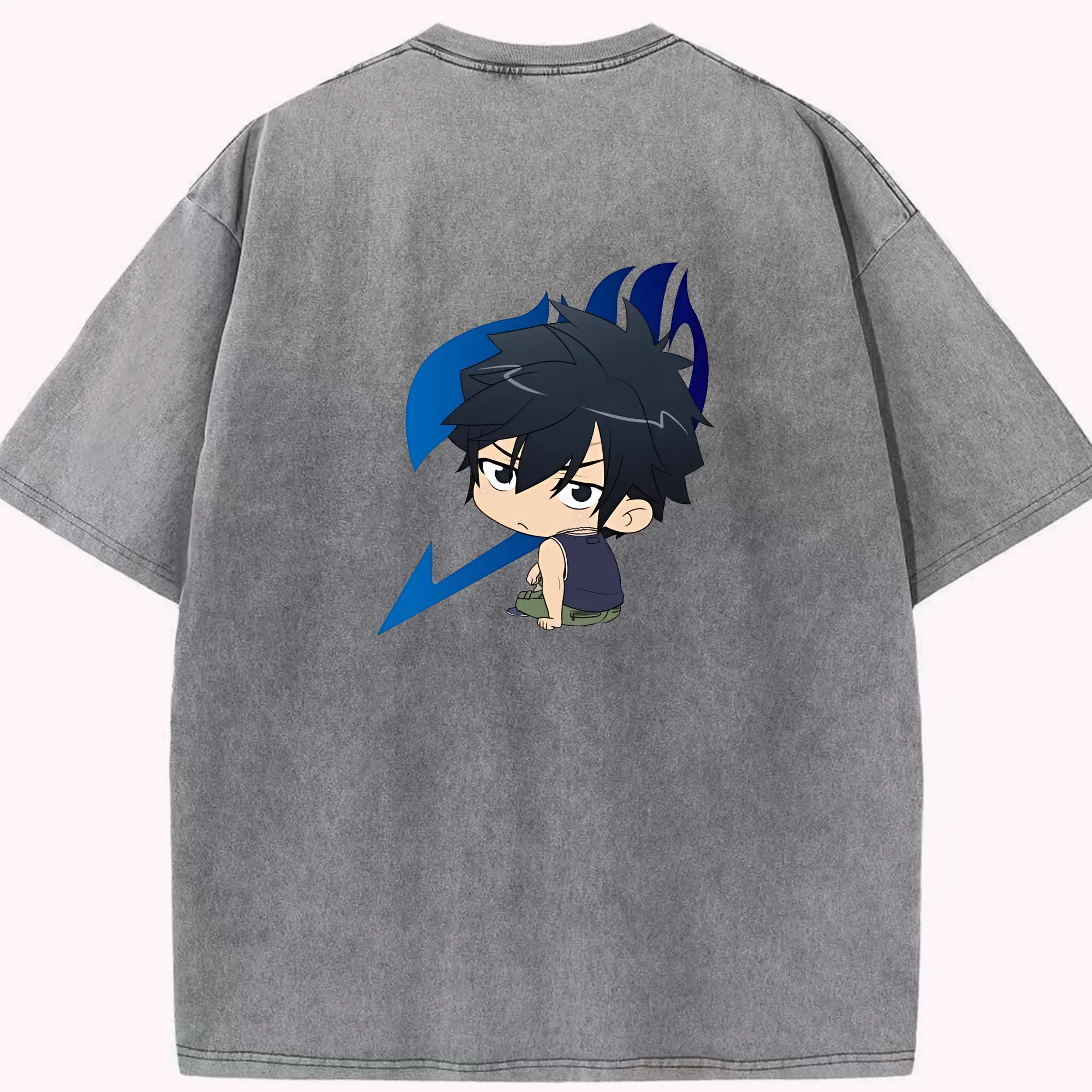 フェアリーテイル グッズ グレイ・フルバスター - 綿100% ヴィンテージ風 半袖Tシャツ ・ フロントプリント ・ 柔らか肌触り ・ 通気性 快適 ・ スポーツ カジュアル 外出用