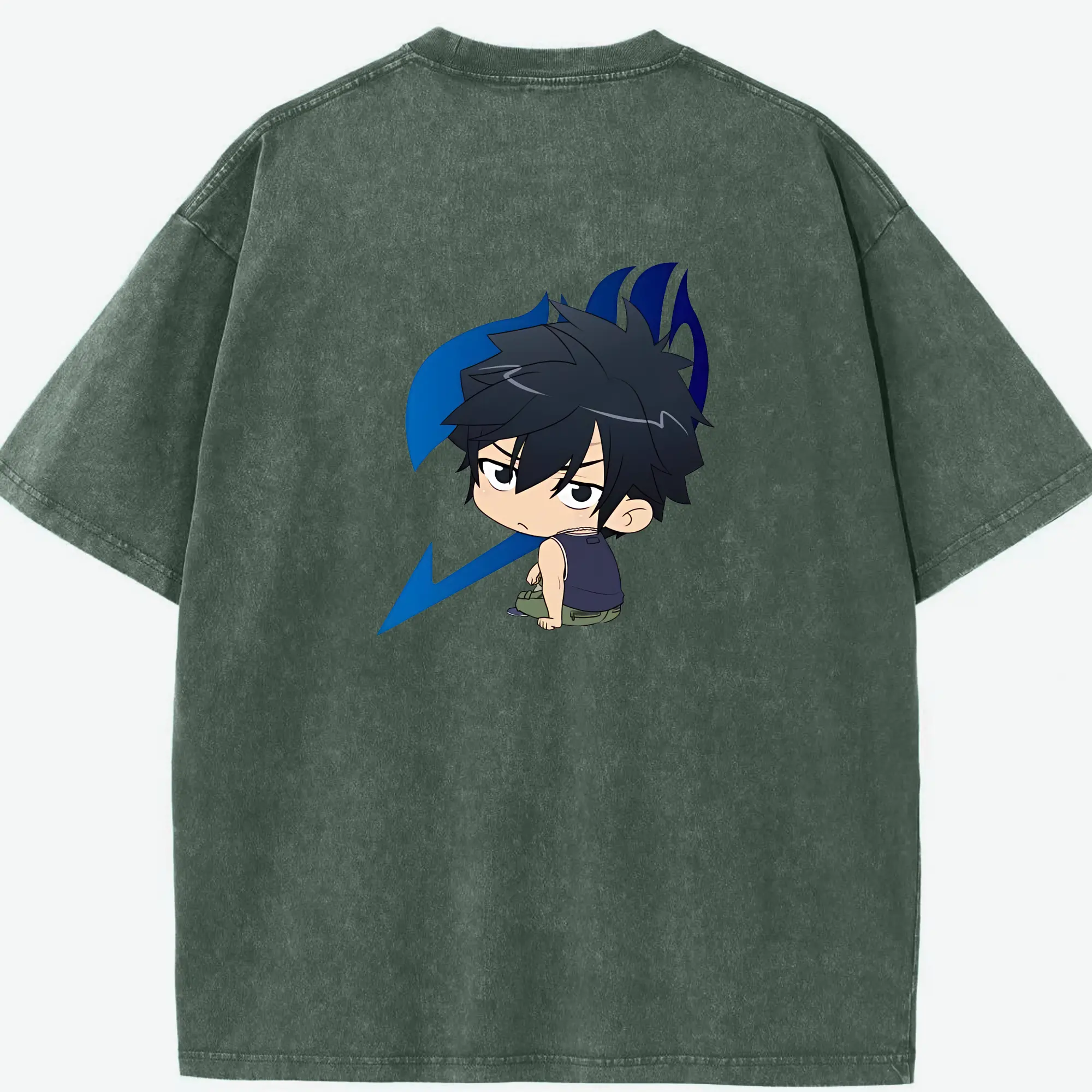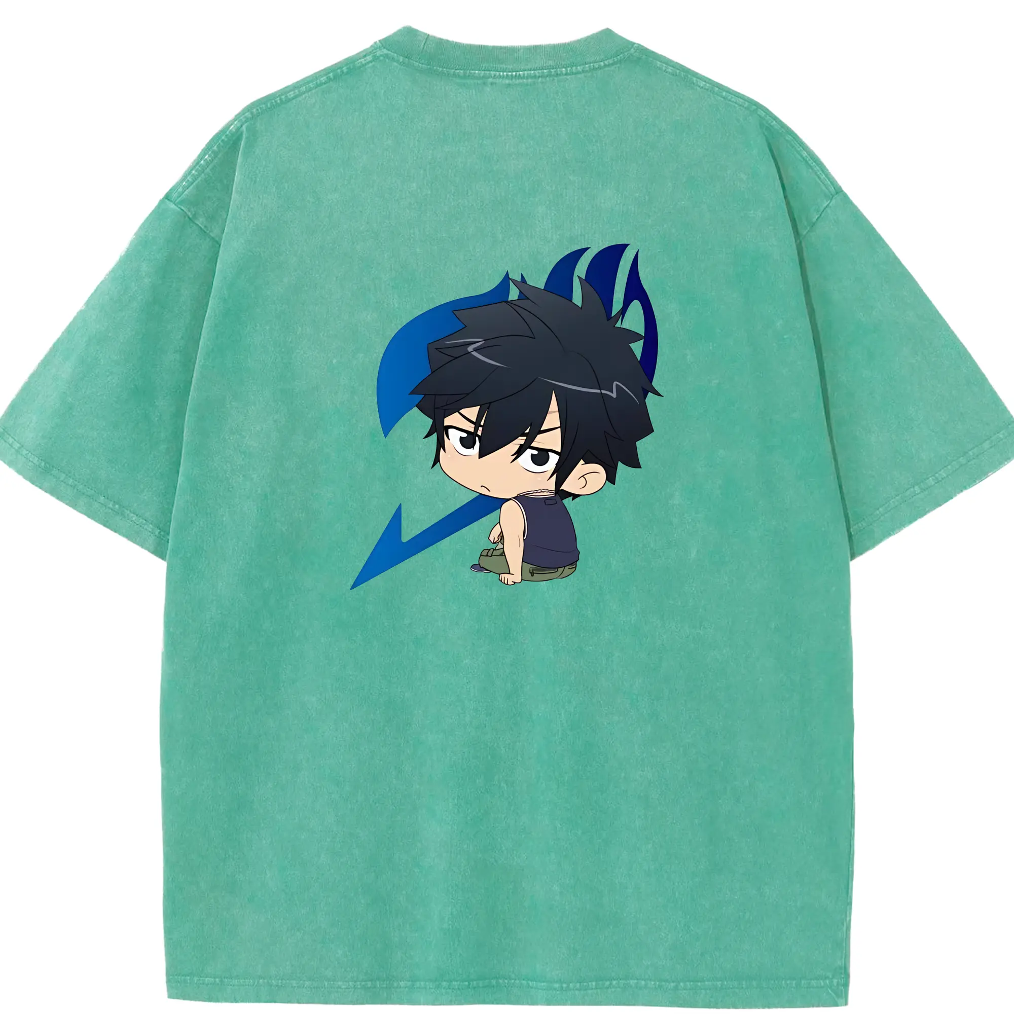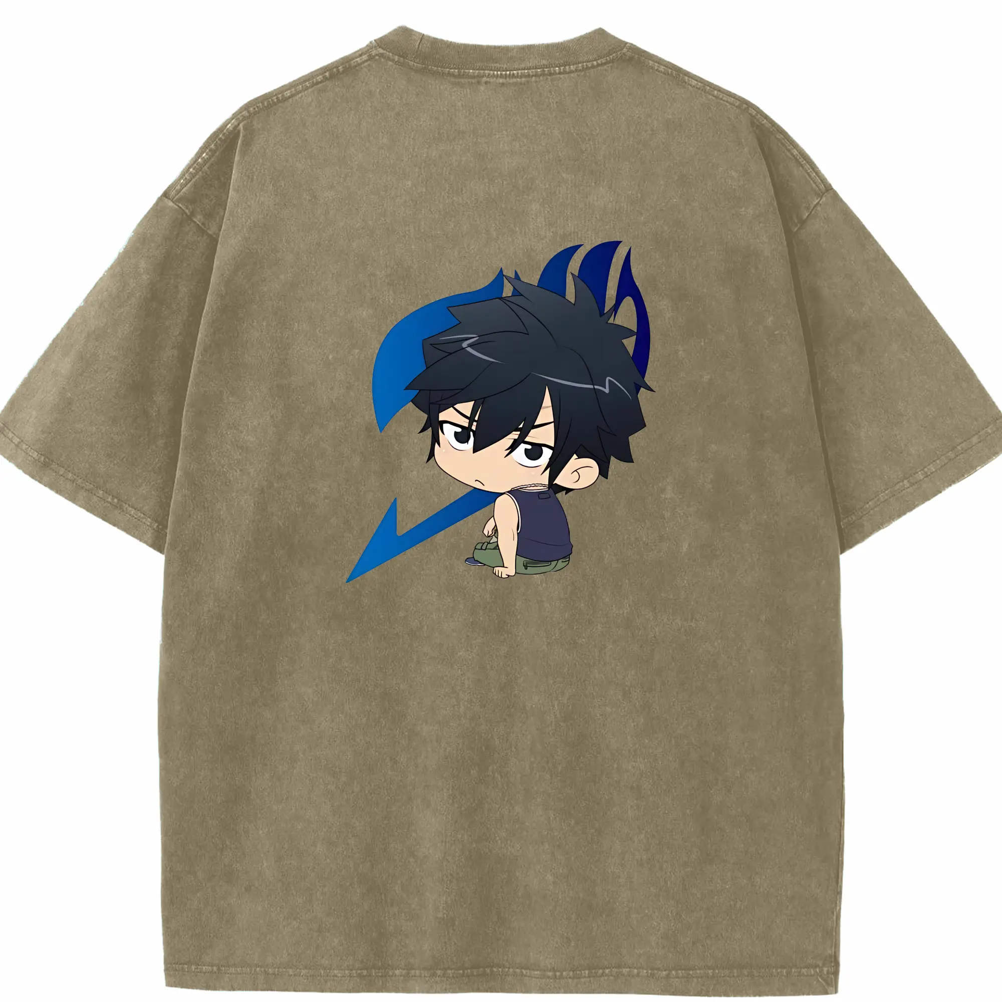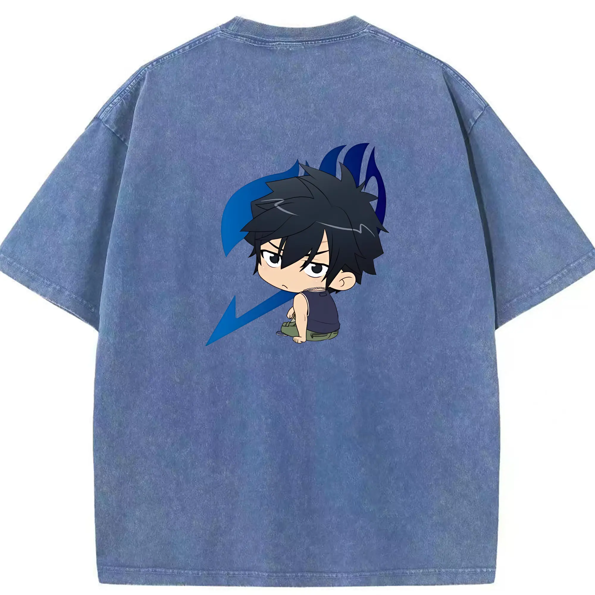 フェアリーテイル グッズ グレイ・フルバスター - 綿100% ヴィンテージ風 半袖Tシャツ ・ フロントプリント ・ 柔らか肌触り ・ 通気性 快適 ・ スポーツ カジュアル 外出用