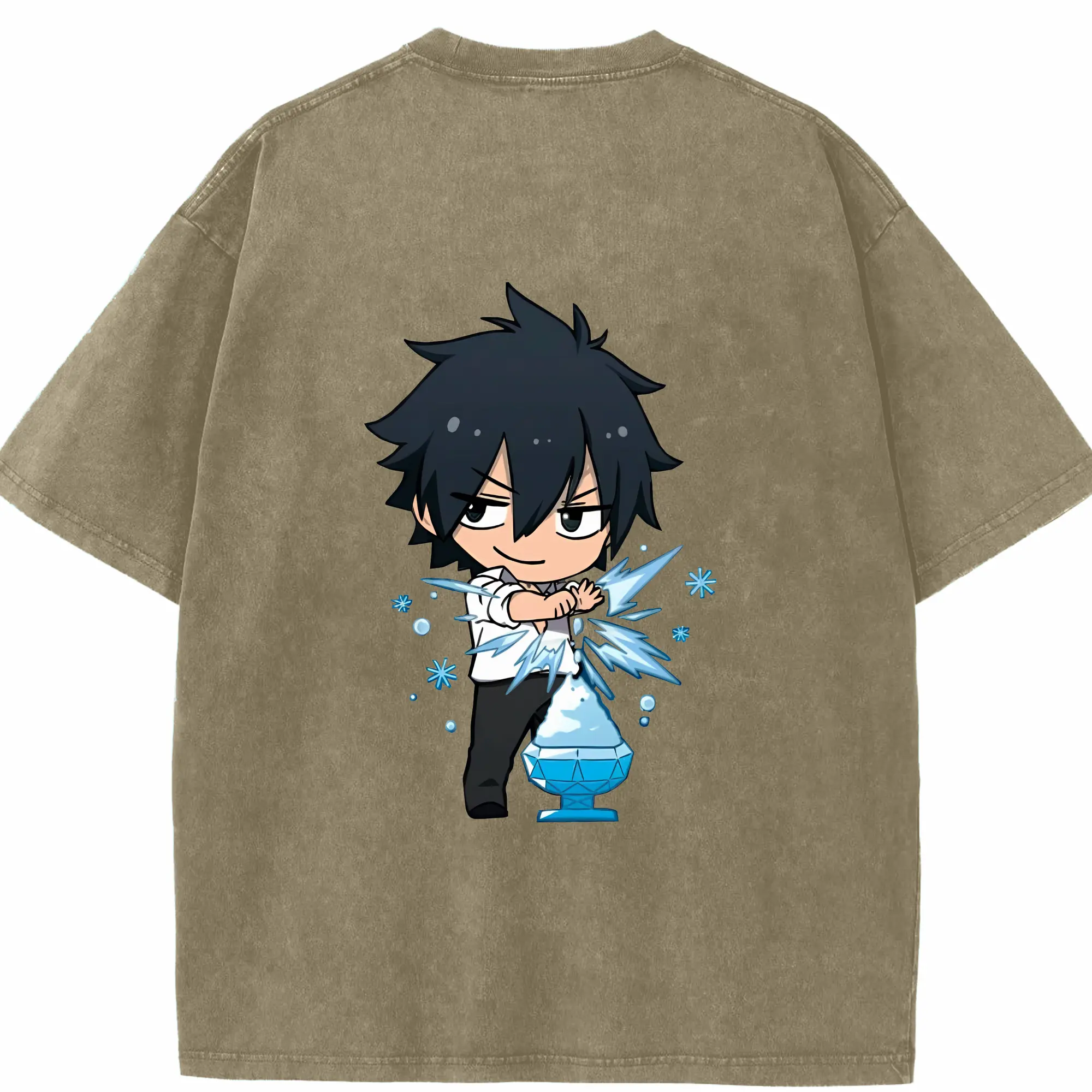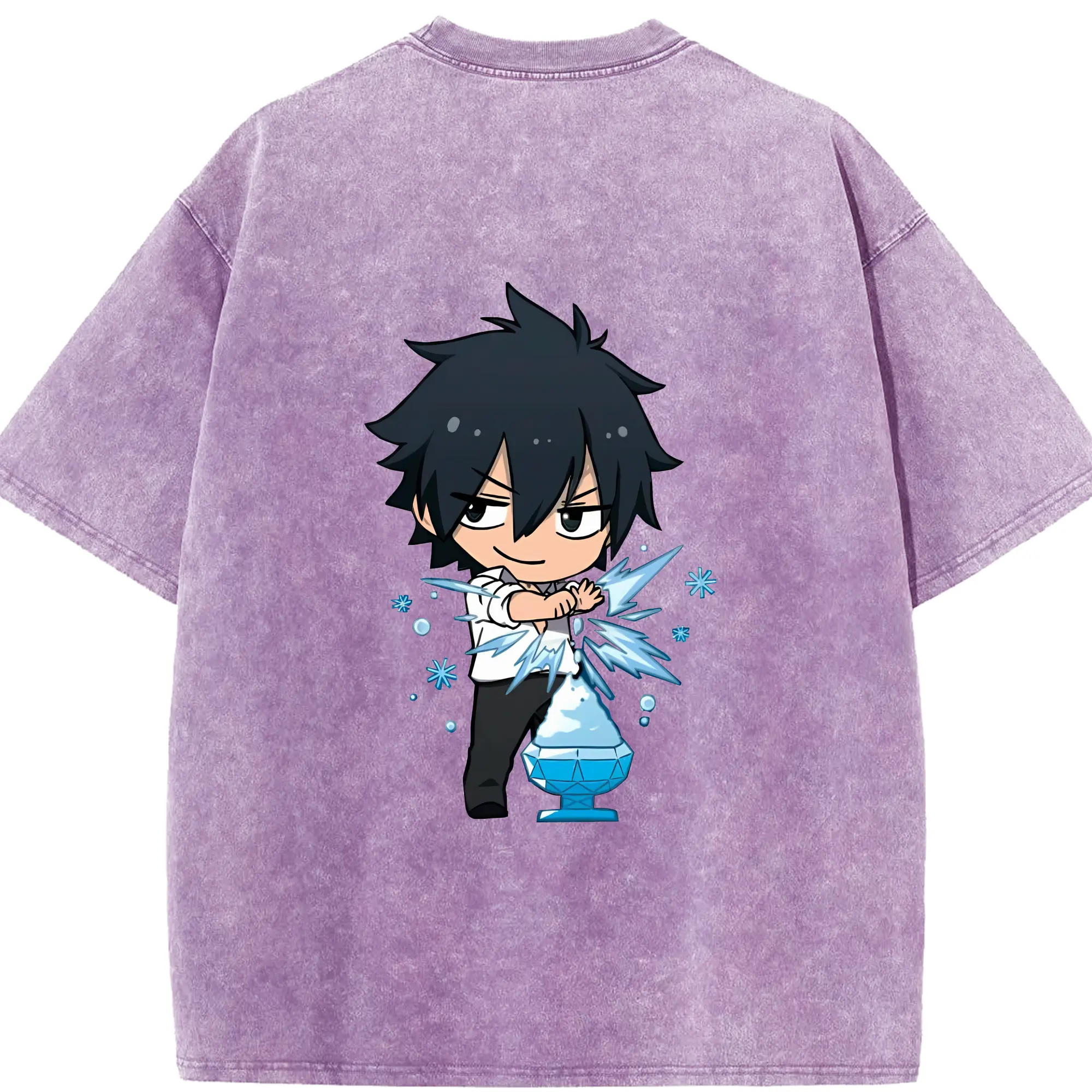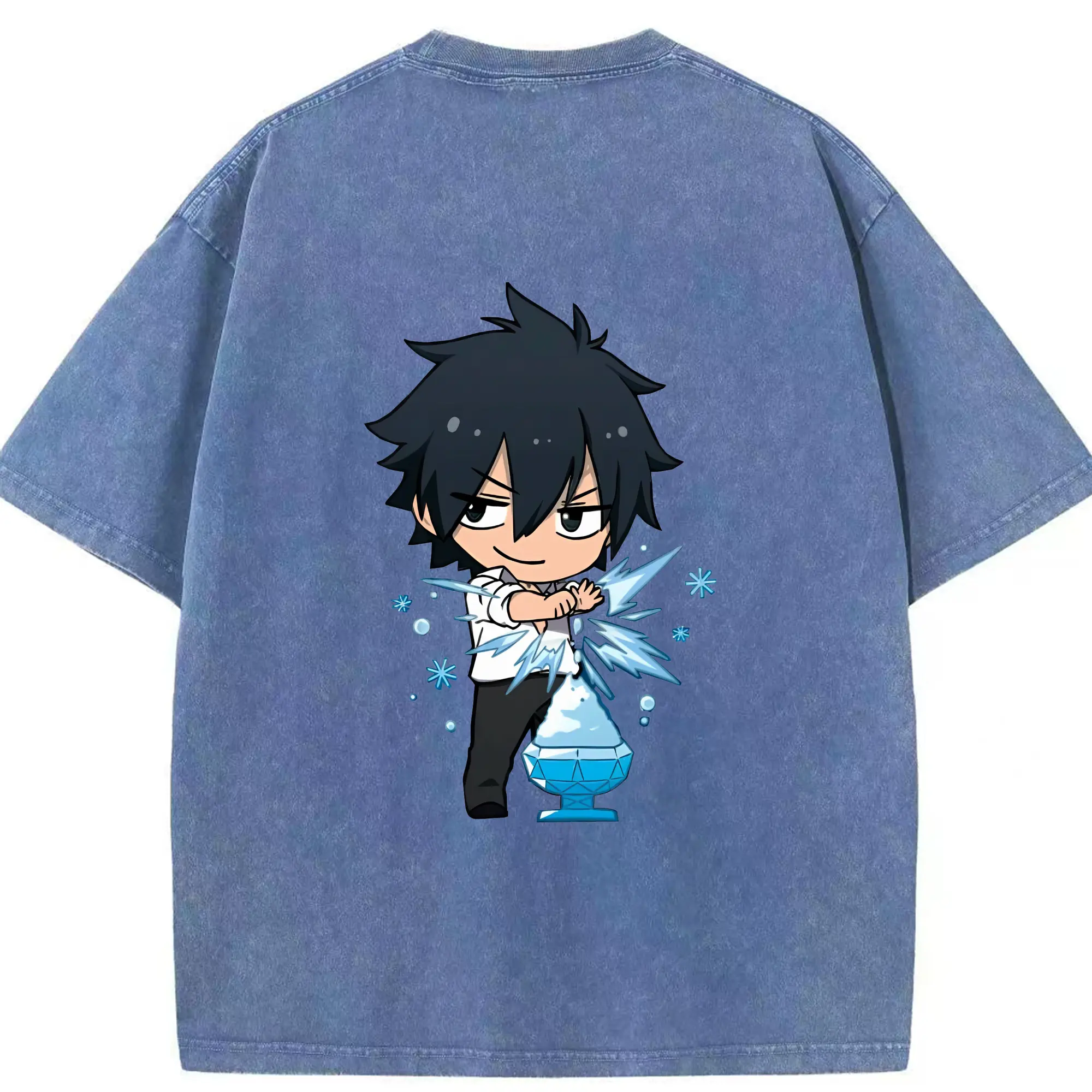 フェアリーテイル グッズ グレイ・フルバスター - 綿100% ヴィンテージ風 半袖Tシャツ ・ フロントプリント ・ 柔らか肌触り ・ 通気性 快適 ・ スポーツ カジュアル 外出用