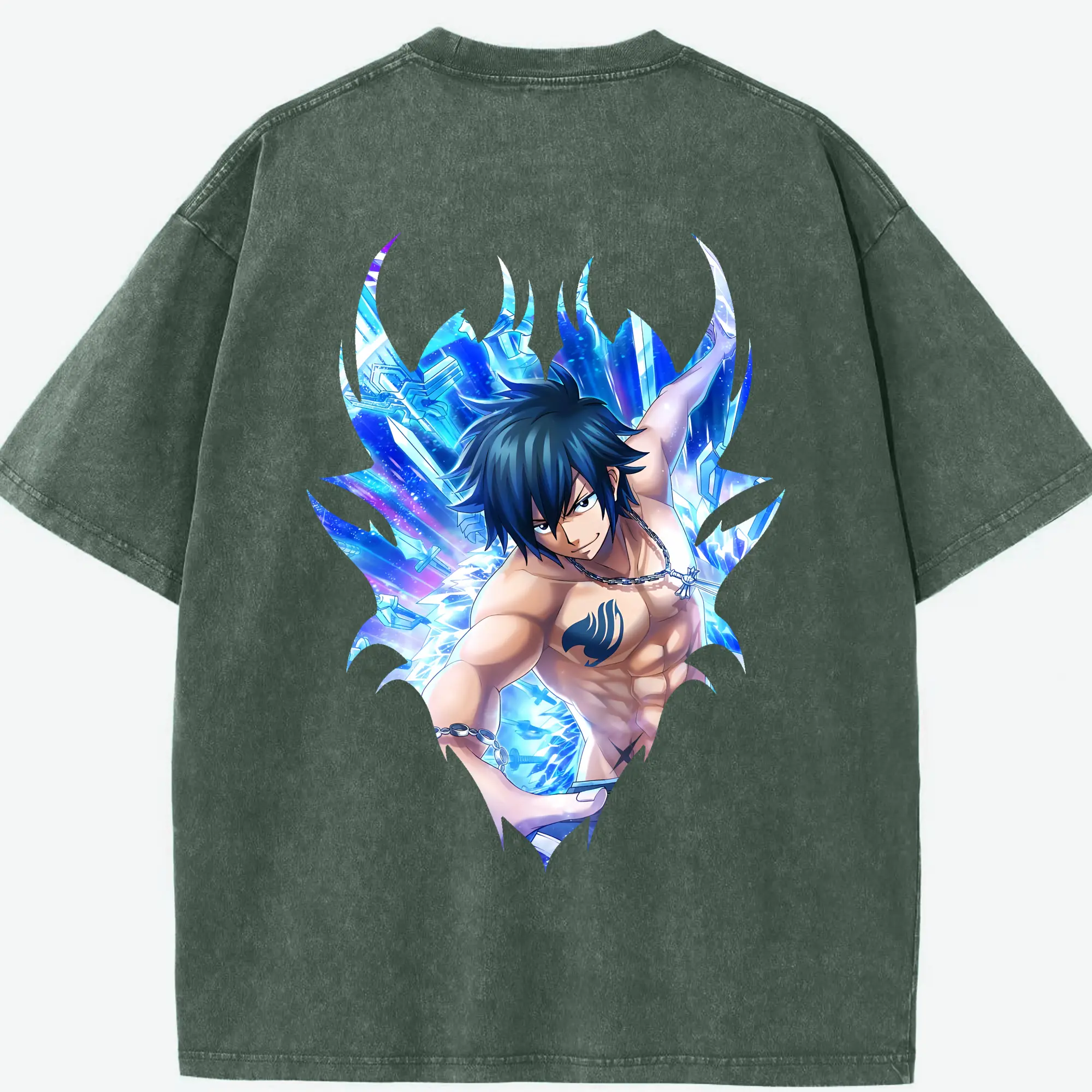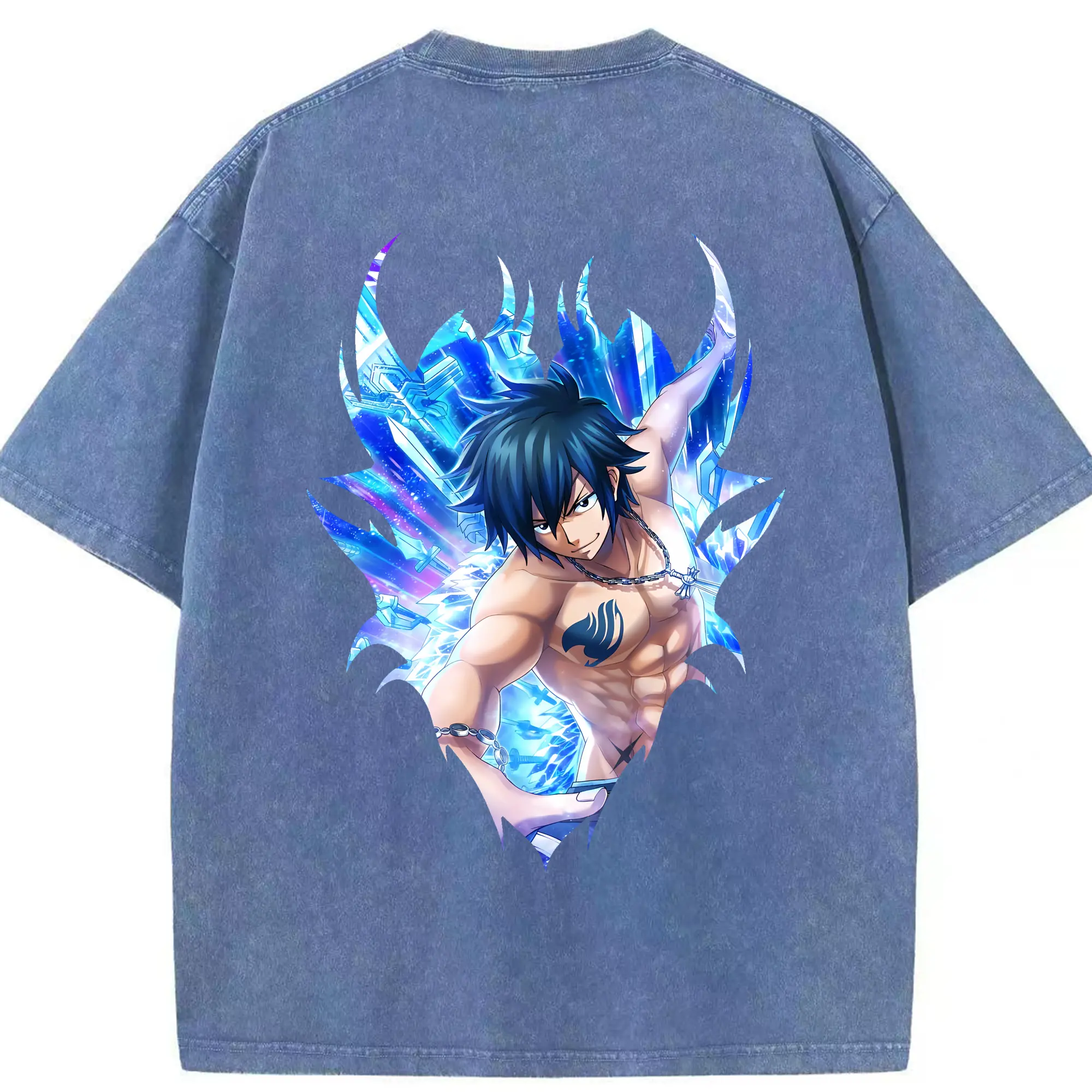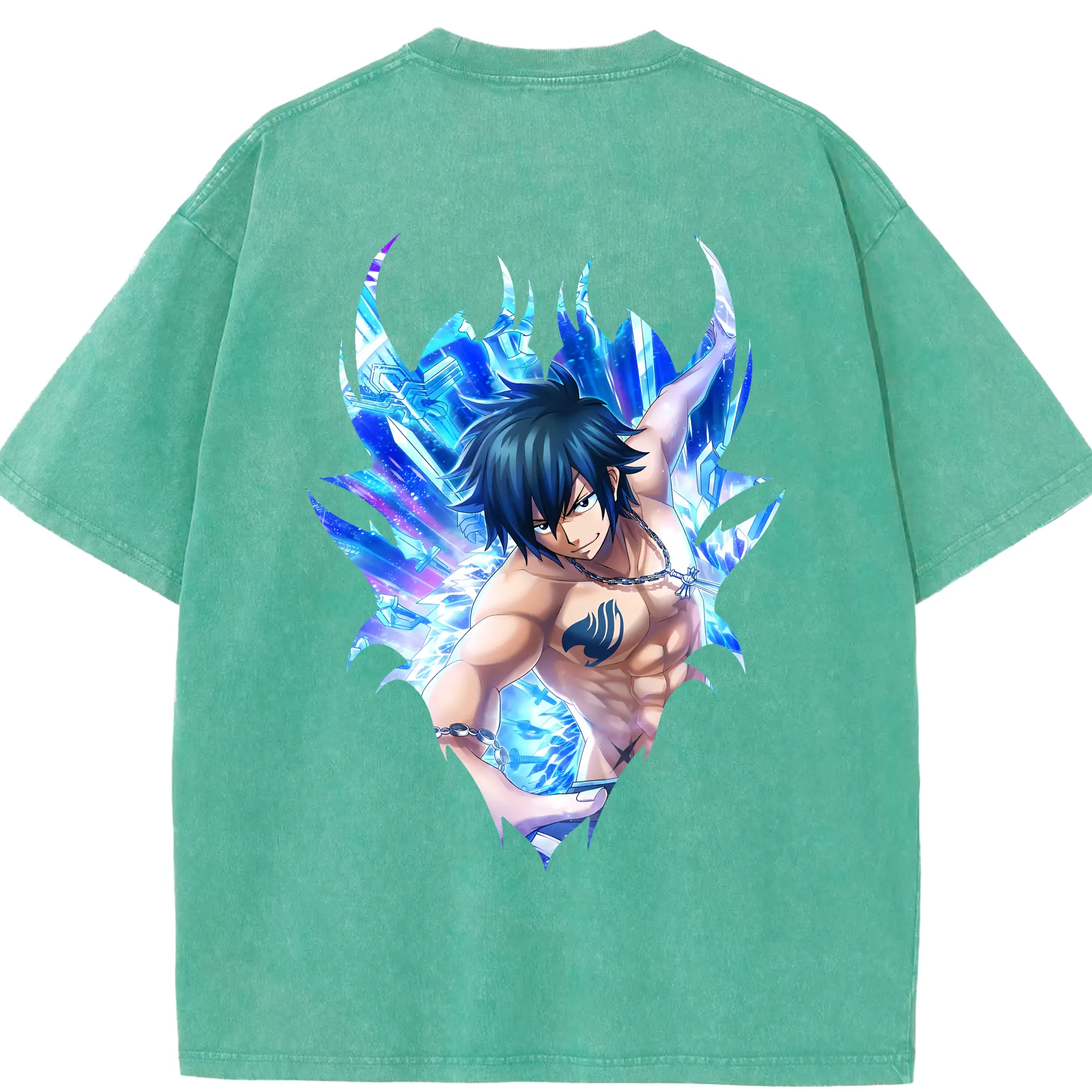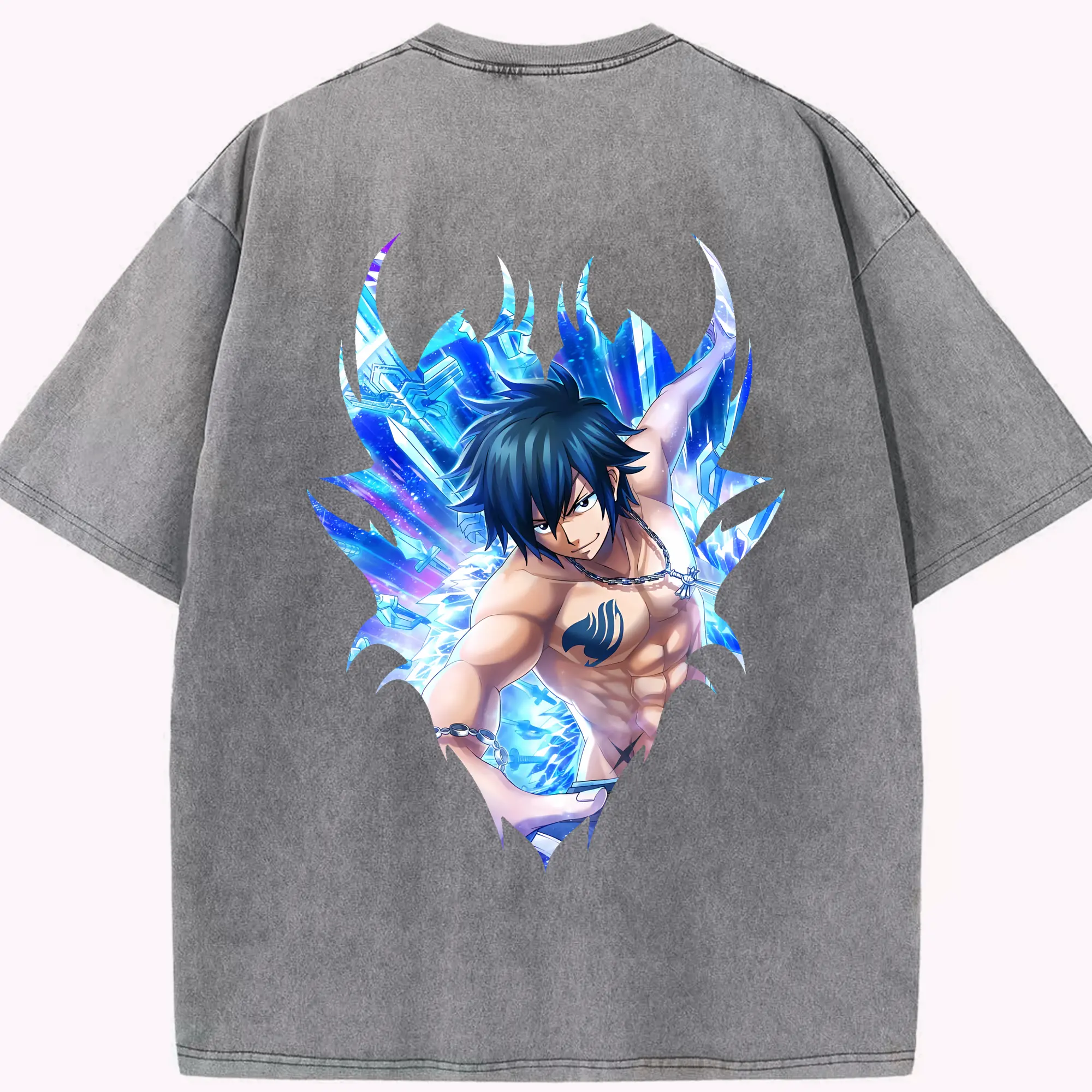 フェアリーテイル グッズ グレイ・フルバスター - 綿100% ヴィンテージ風 半袖Tシャツ ・ フロントプリント ・ 柔らか肌触り ・ 通気性 快適 ・ スポーツ カジュアル 外出用