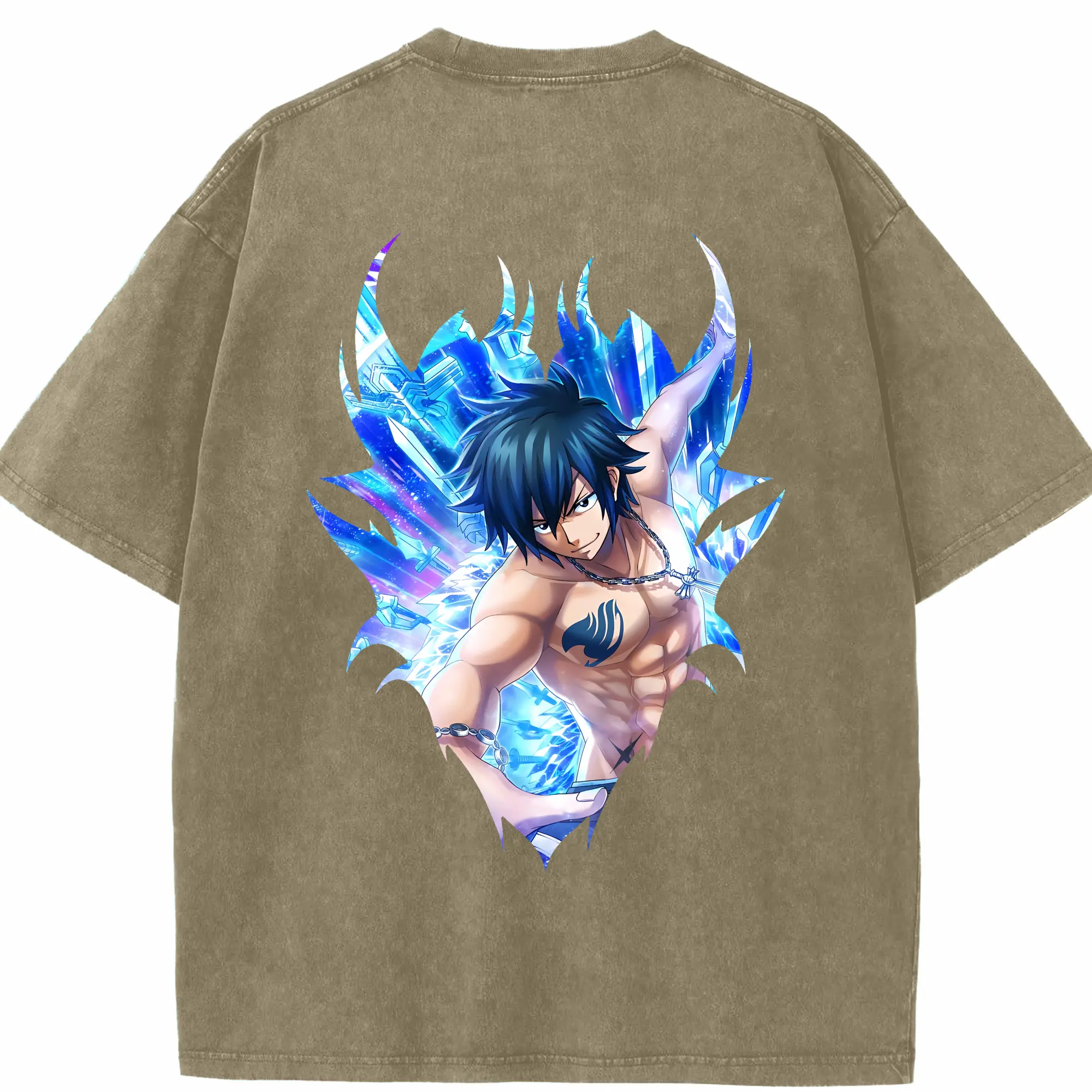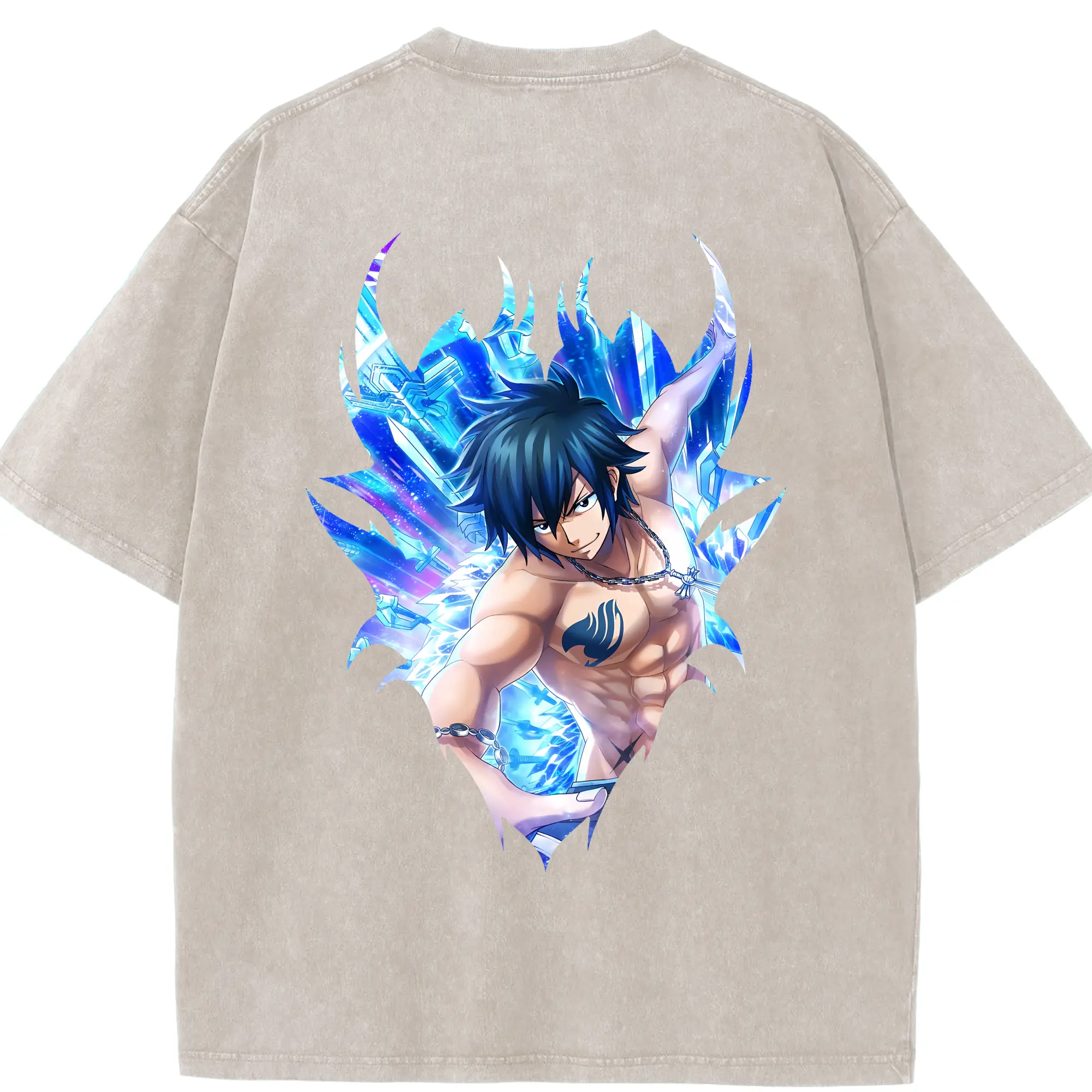 フェアリーテイル グッズ グレイ・フルバスター - 綿100% 半袖Tシャツ ・ バックプリント ・ 快適 通気性 ・ 日常使い 散歩 スポーツ用