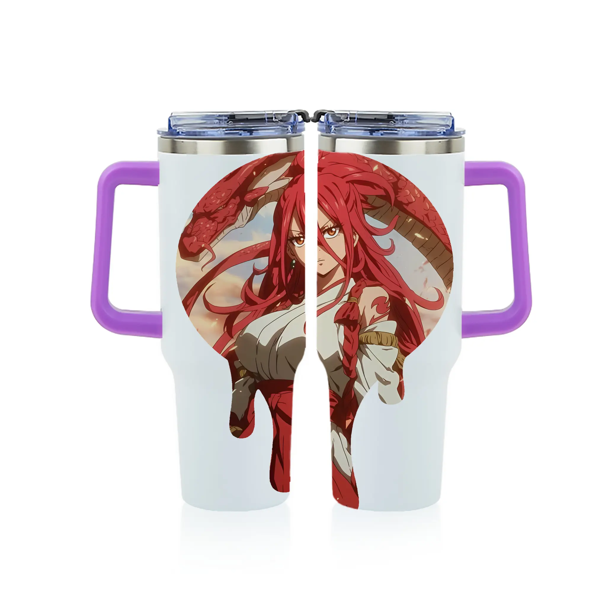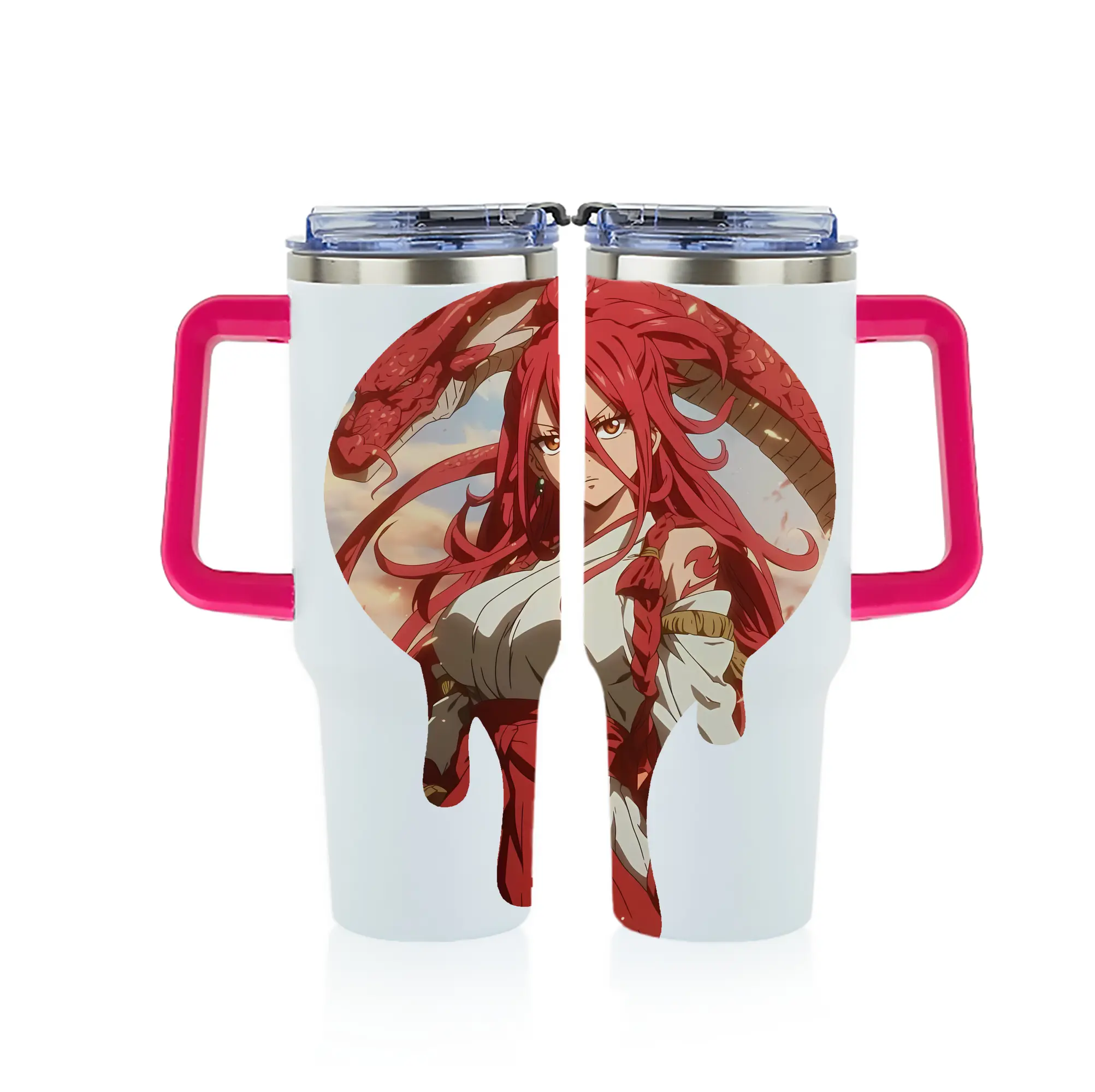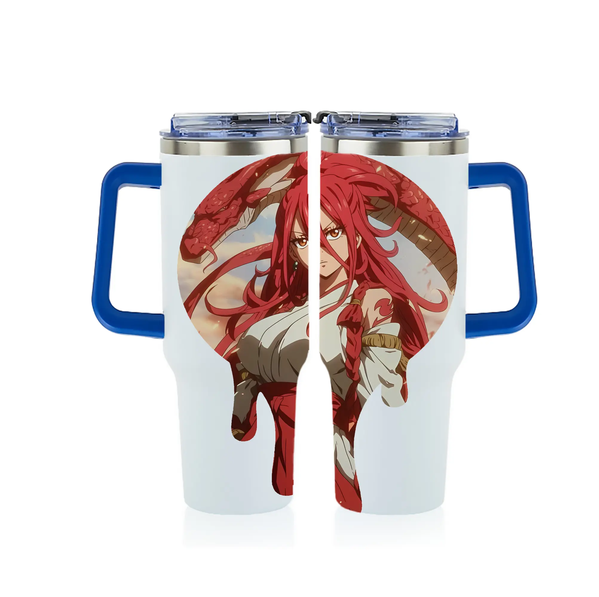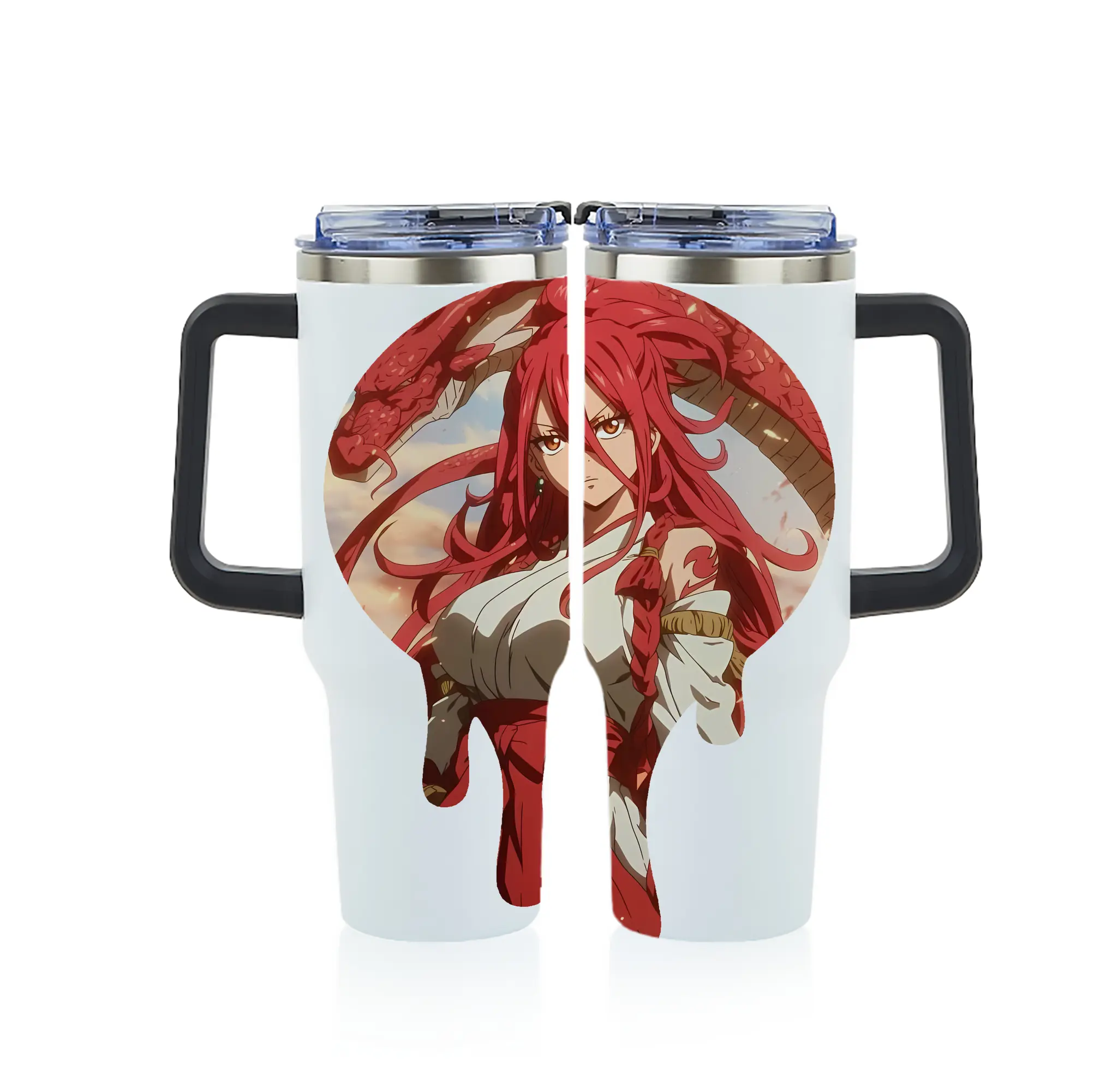 フェアリーテイル グッズ エルザ・スカーレット - 1200mL フルプリント車用タンブラー ・ 304ステンレス 内側 ・ 201ステンレス 外側 ・ 保温 保冷 ・ 通勤 ドライブ アウトドア用