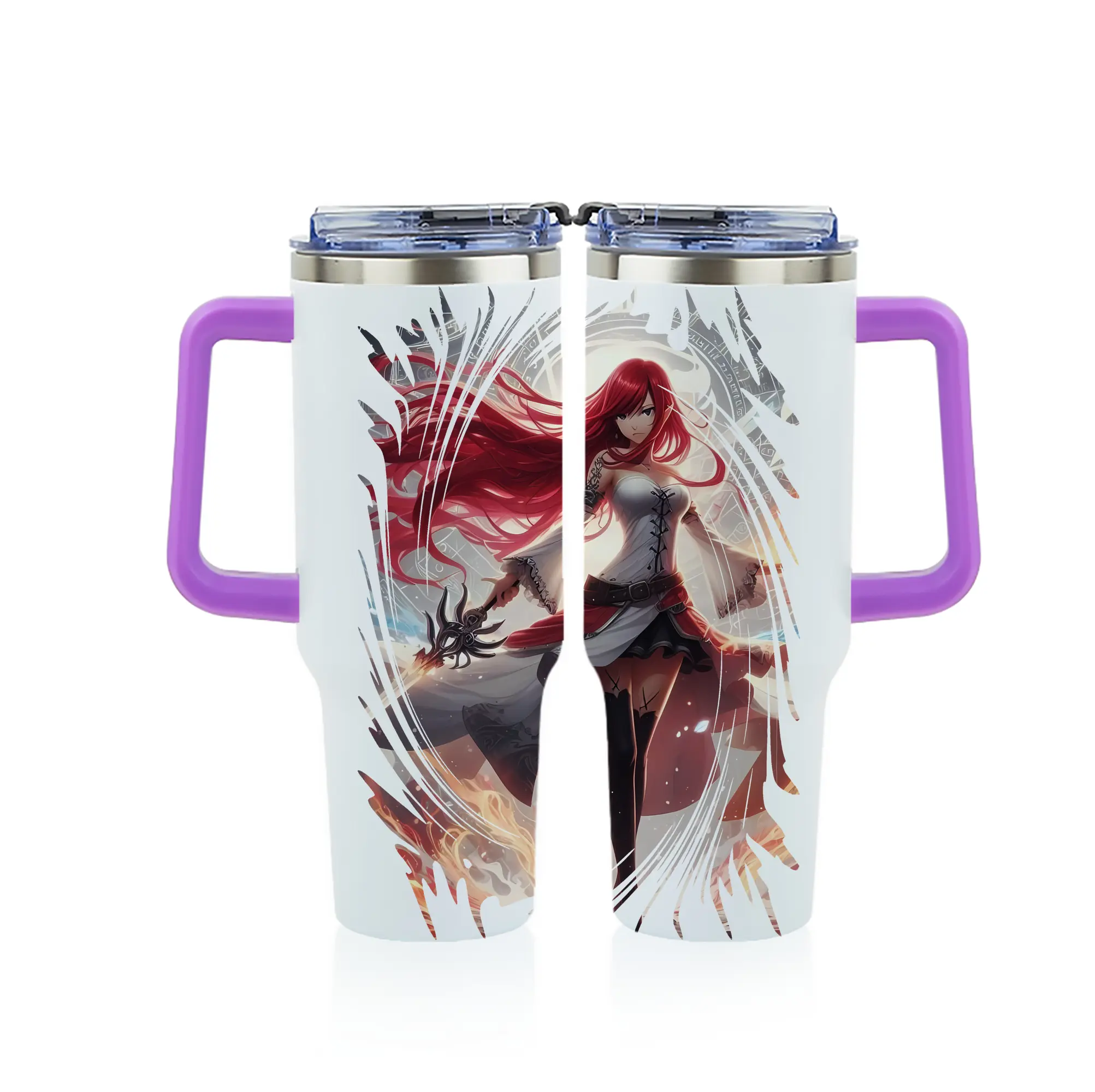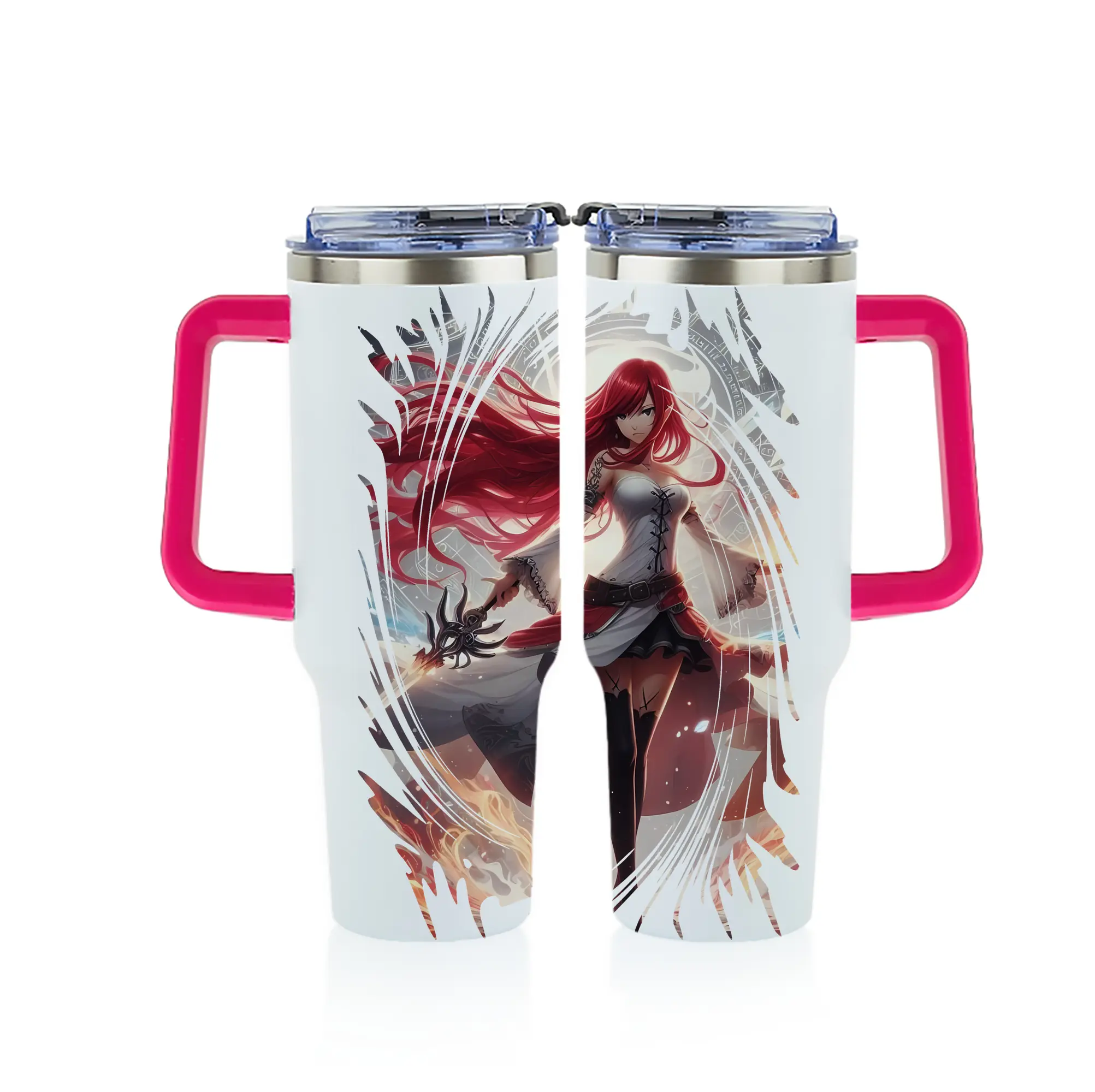 フェアリーテイル グッズ エルザ・スカーレット - 1200mL フルプリント車用タンブラー ・ 304ステンレス 内側 ・ 201ステンレス 外側 ・ 保温 保冷 ・ 通勤 ドライブ アウトドア用