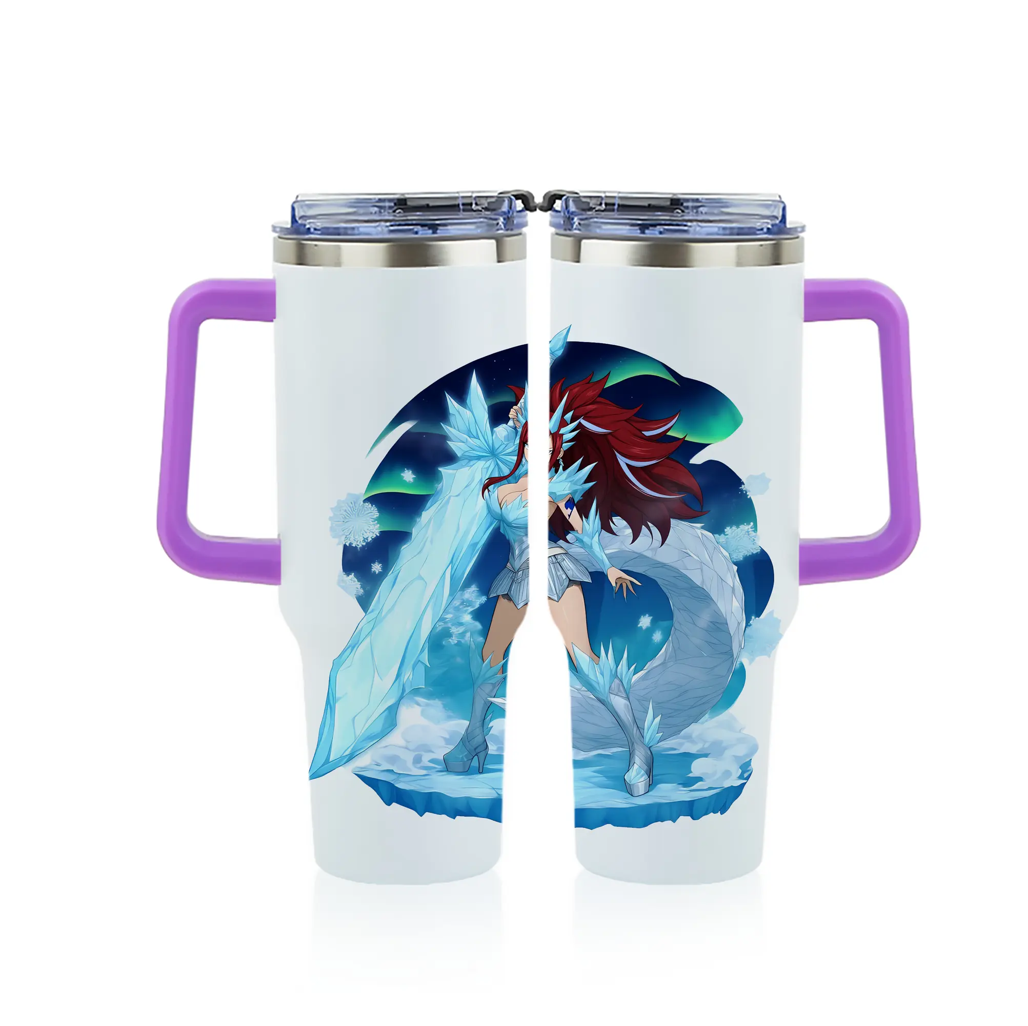 フェアリーテイル グッズ エルザ・スカーレット - 1200mL フルプリント車用タンブラー ・ 304ステンレス 内側 ・ 201ステンレス 外側 ・ 保温 保冷 ・ 通勤 ドライブ アウトドア用