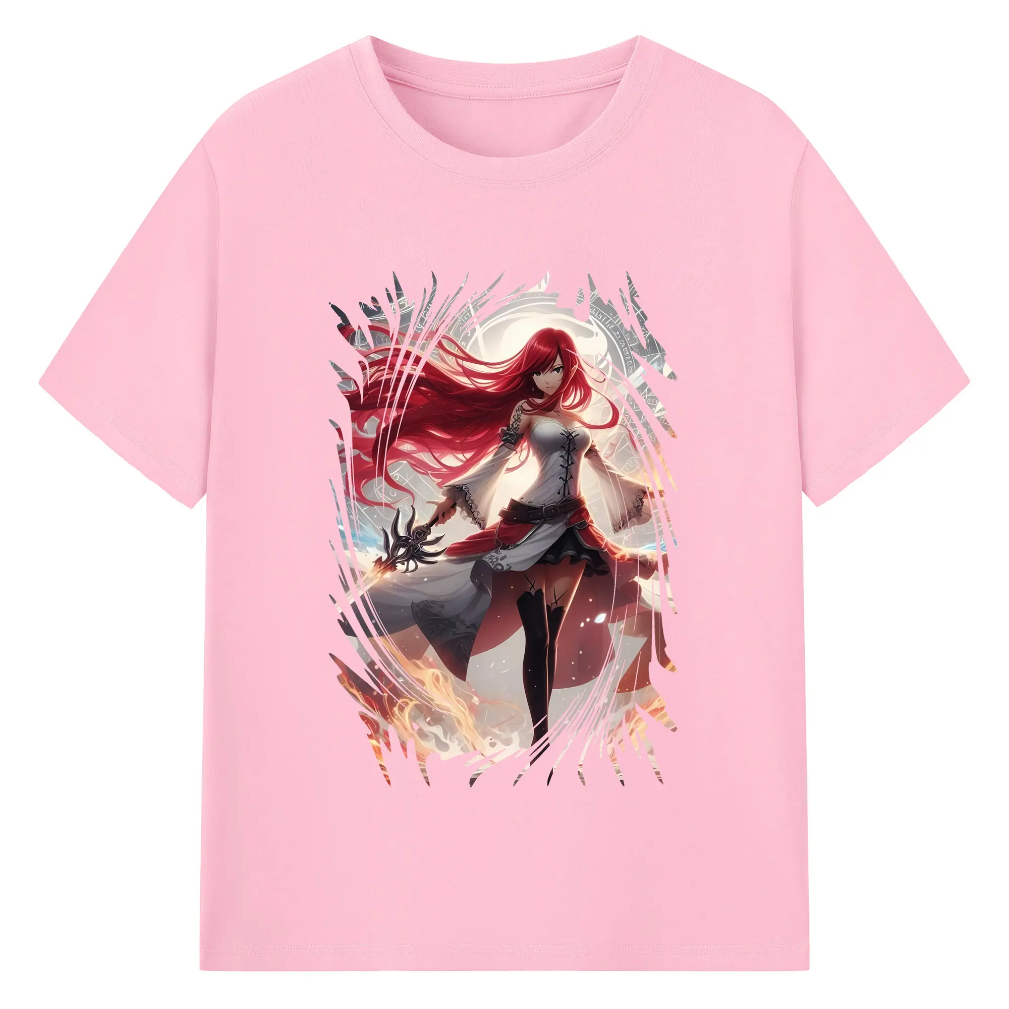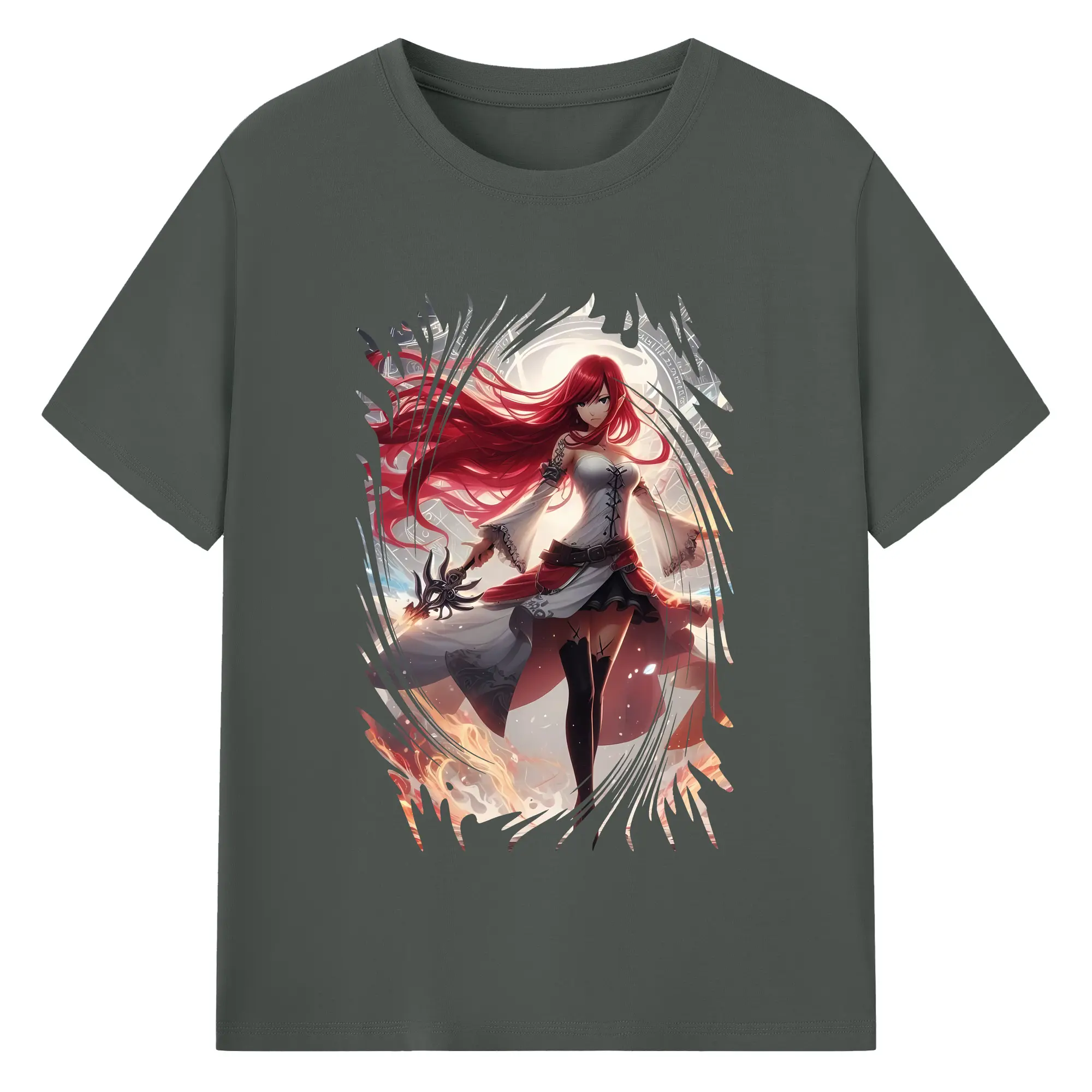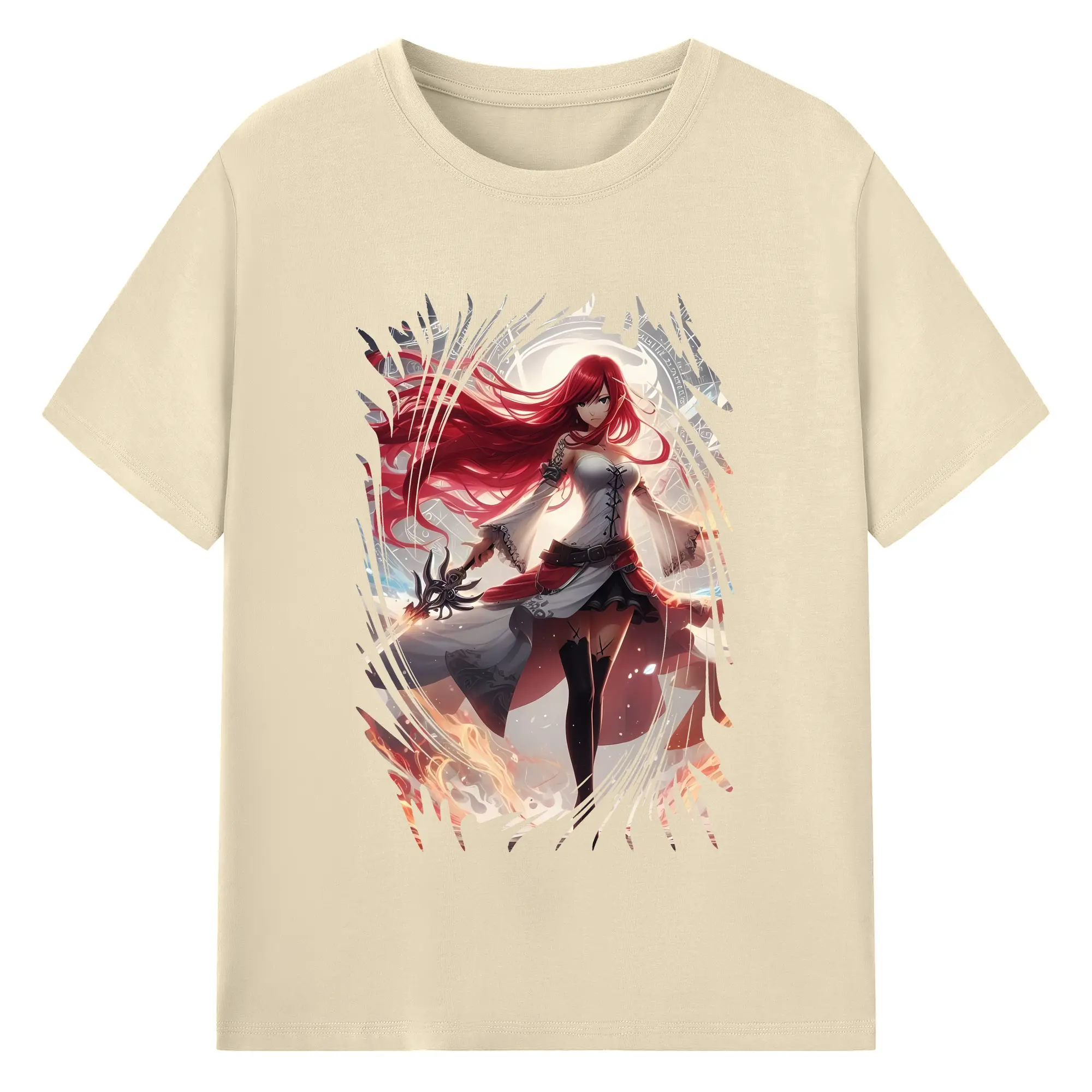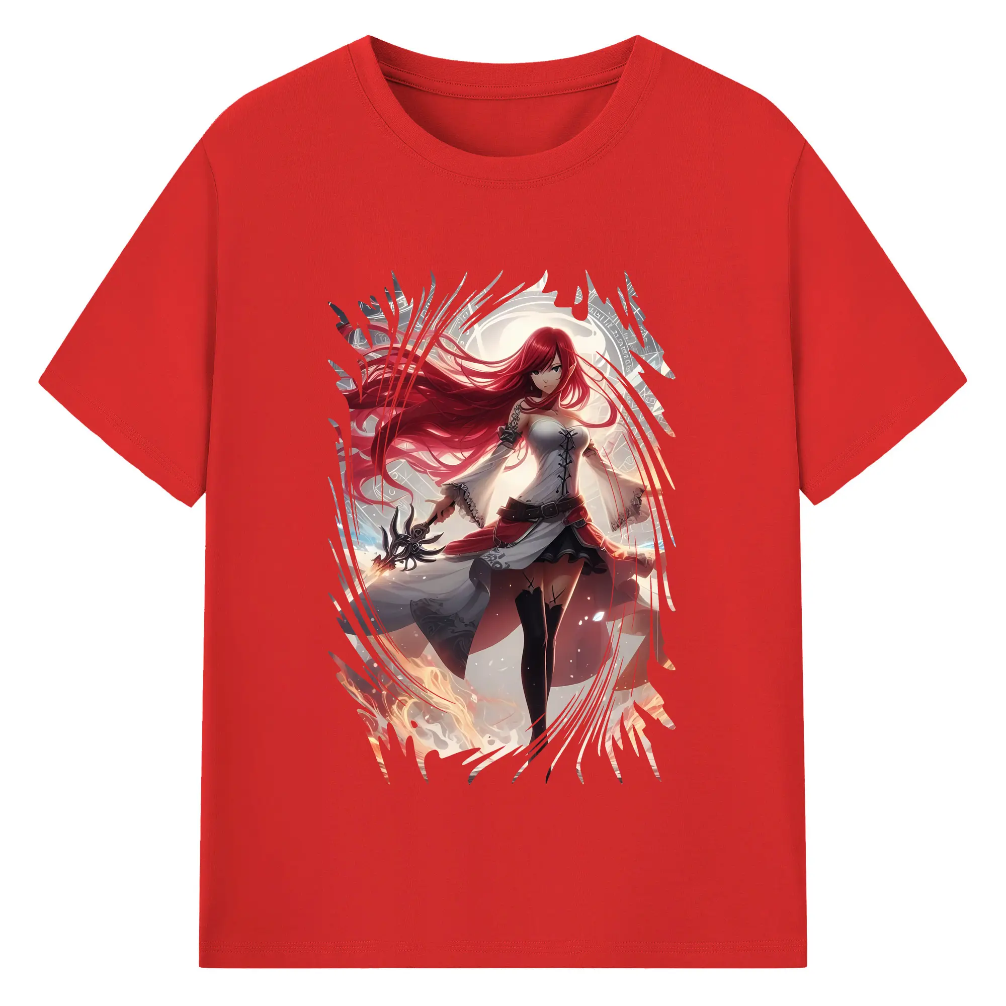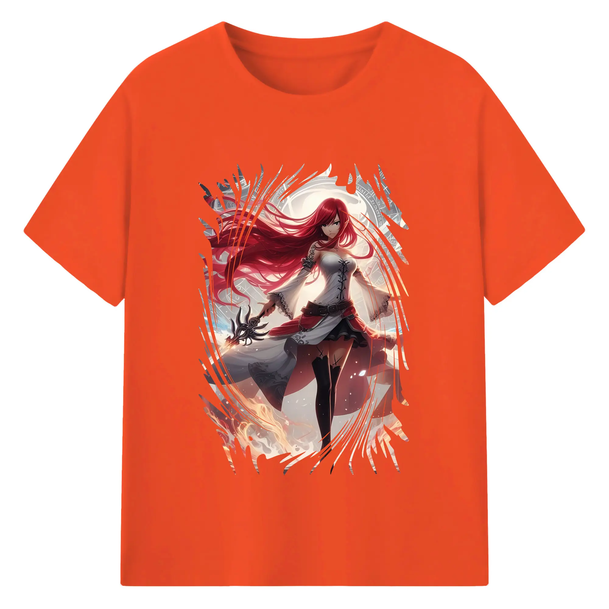フェアリーテイル グッズ エルザ・スカーレット - 綿100% ヴィンテージ風 半袖Tシャツ ・ フロントプリント ・ 柔らか肌触り ・ 通気性 快適 ・ スポーツ カジュアル 外出用
