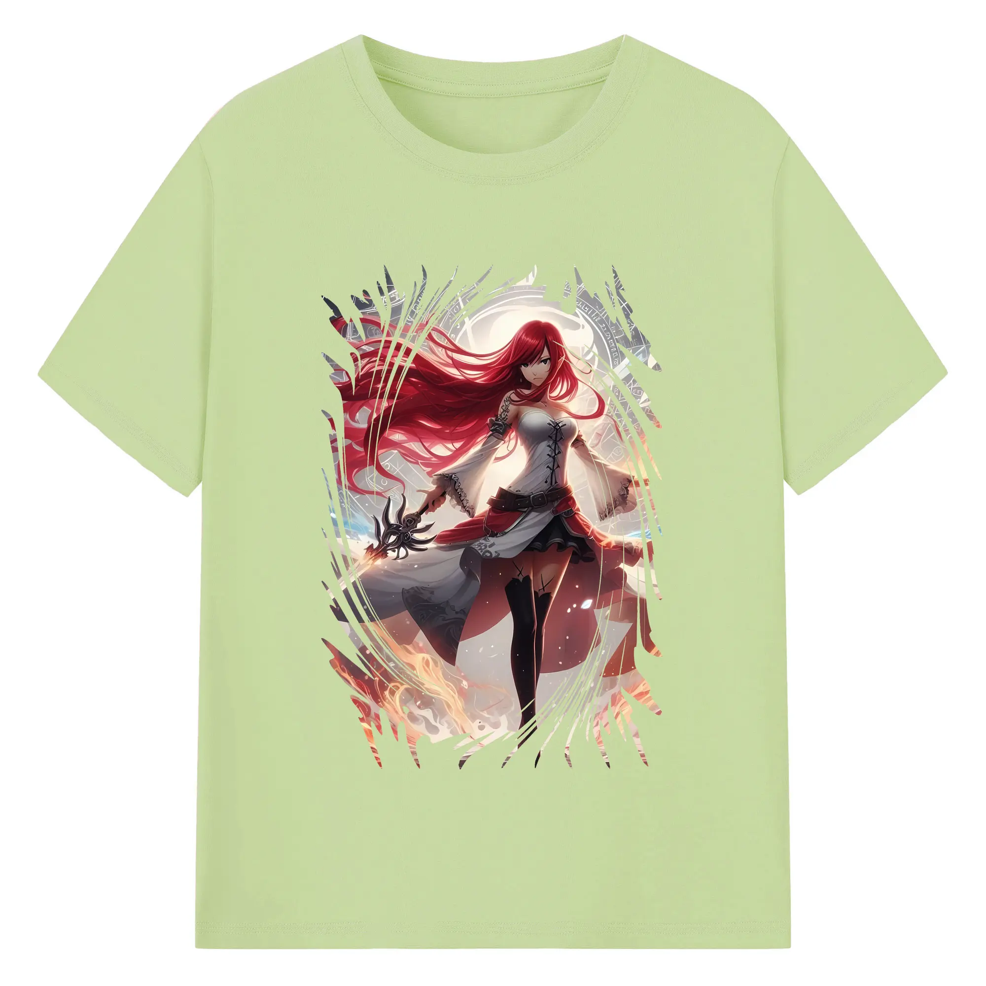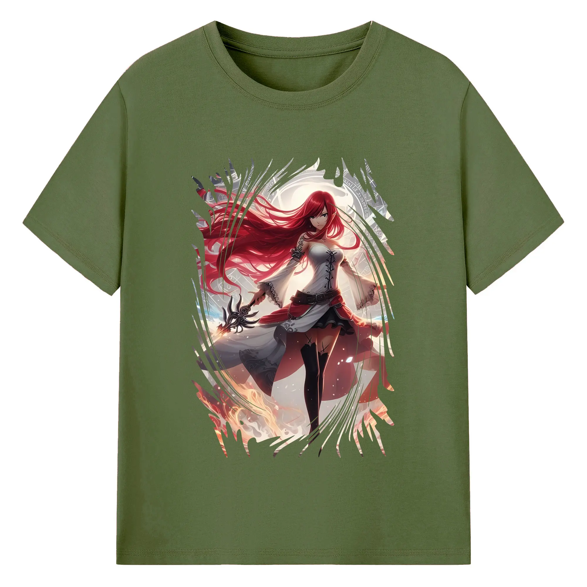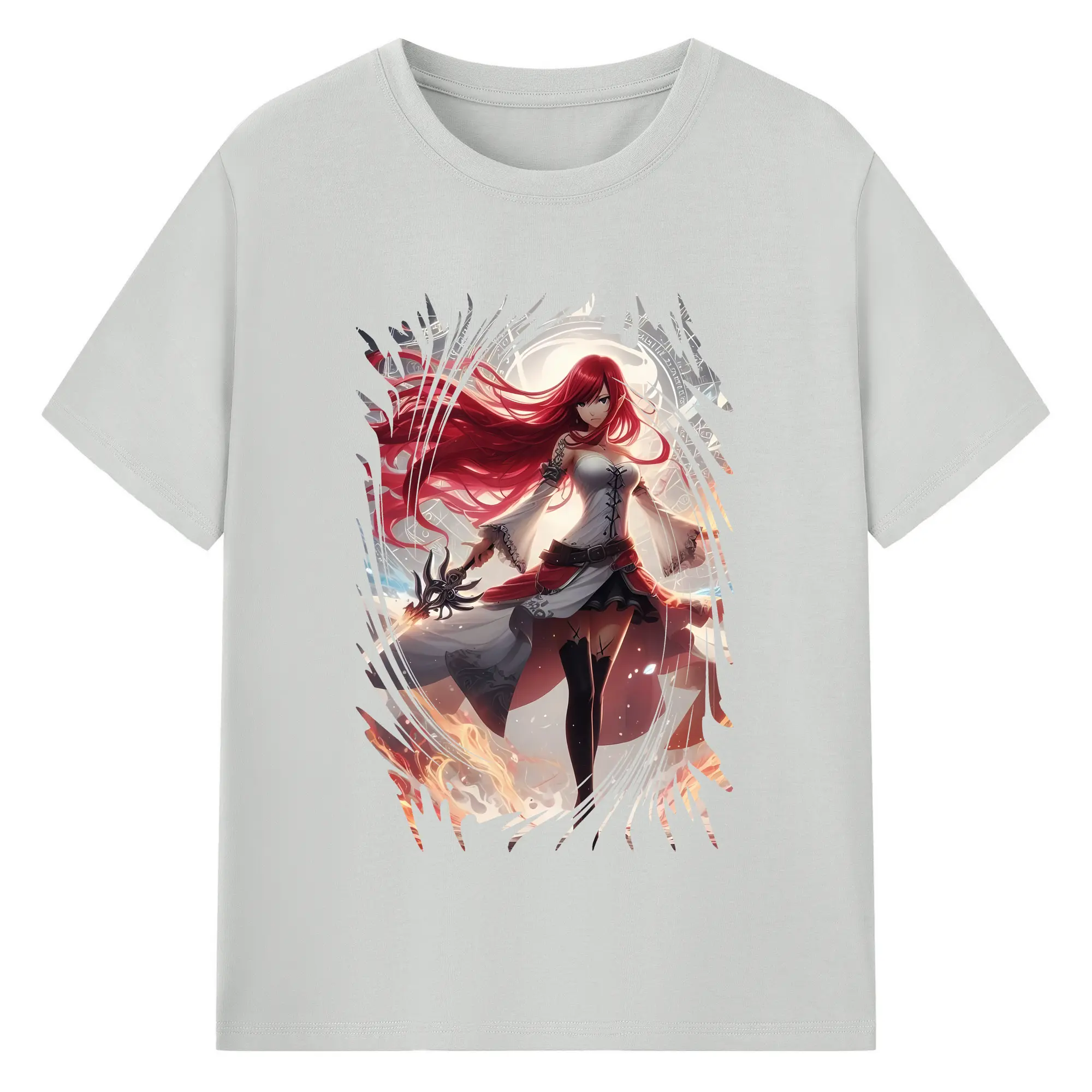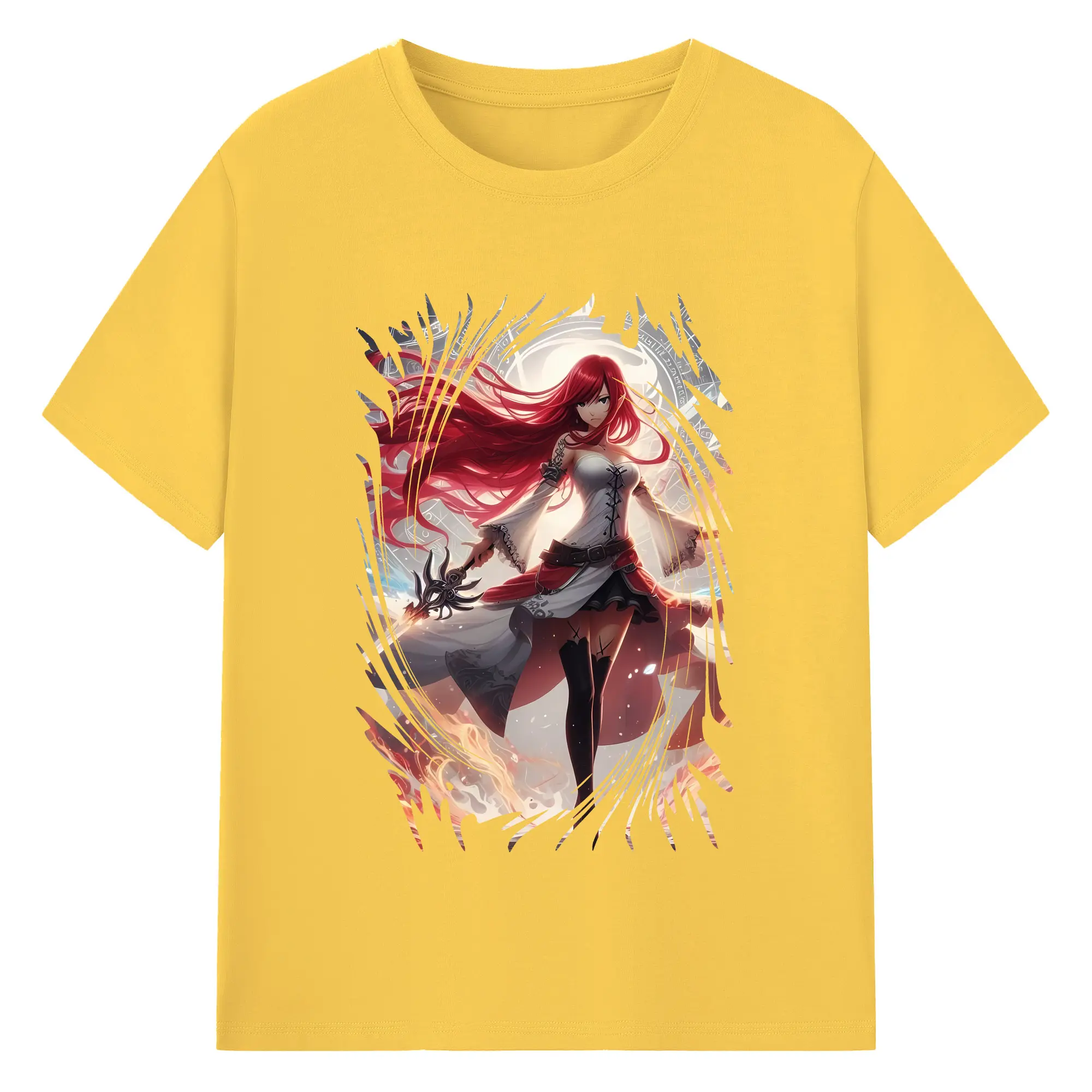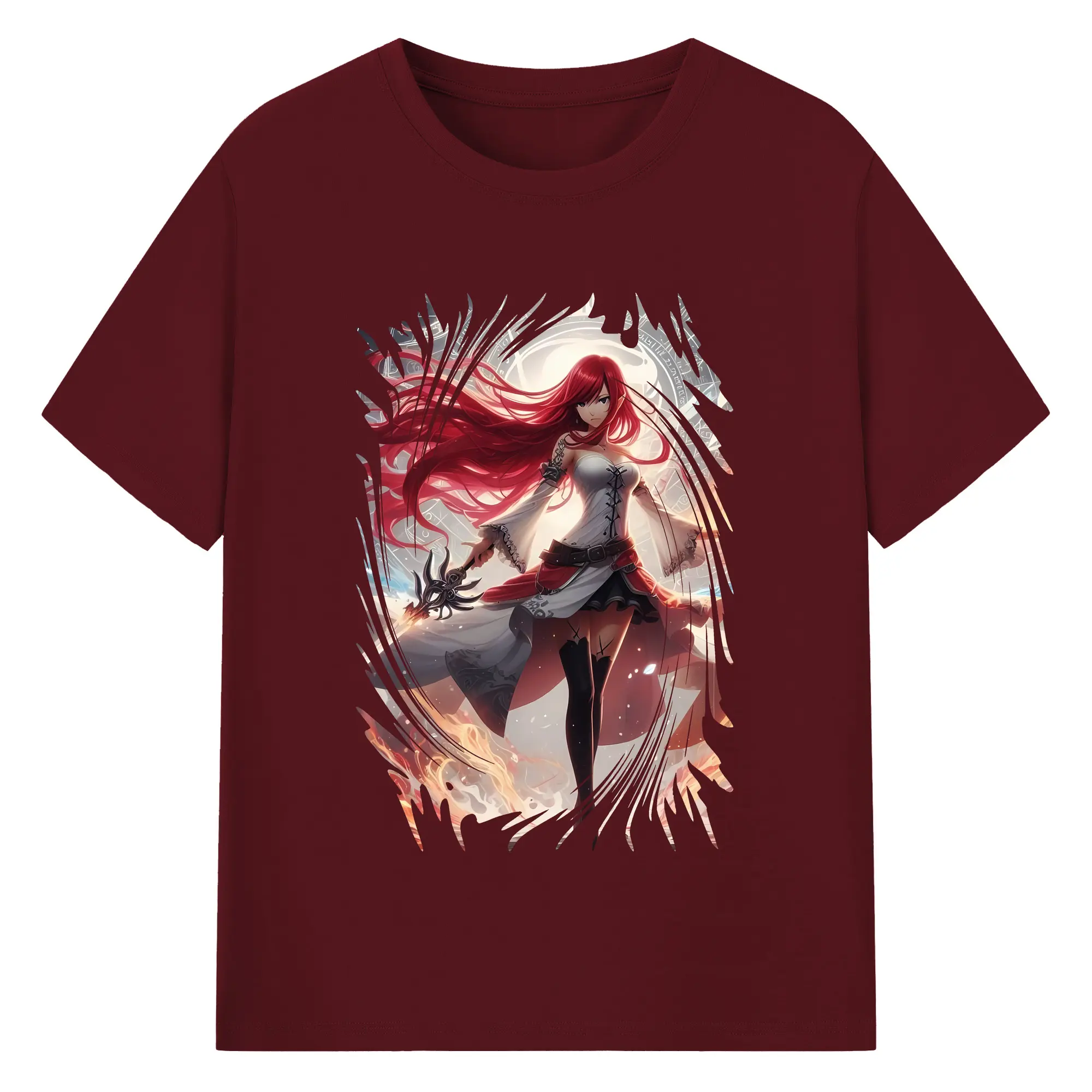 フェアリーテイル グッズ エルザ・スカーレット - 綿100% ヴィンテージ風 半袖Tシャツ ・ フロントプリント ・ 柔らか肌触り ・ 通気性 快適 ・ スポーツ カジュアル 外出用