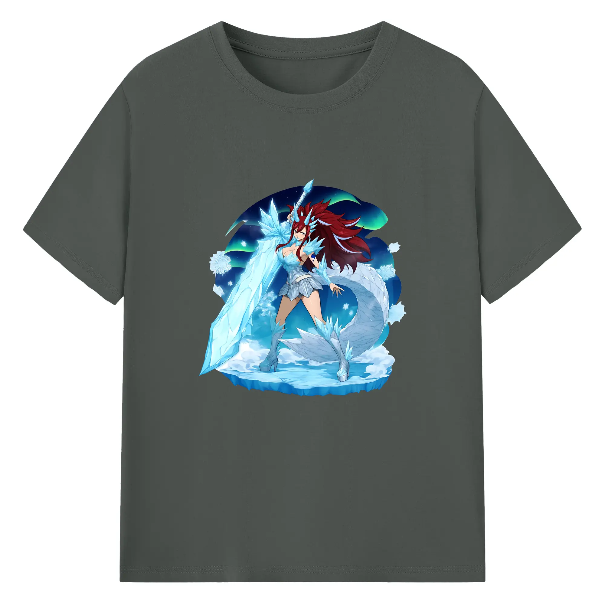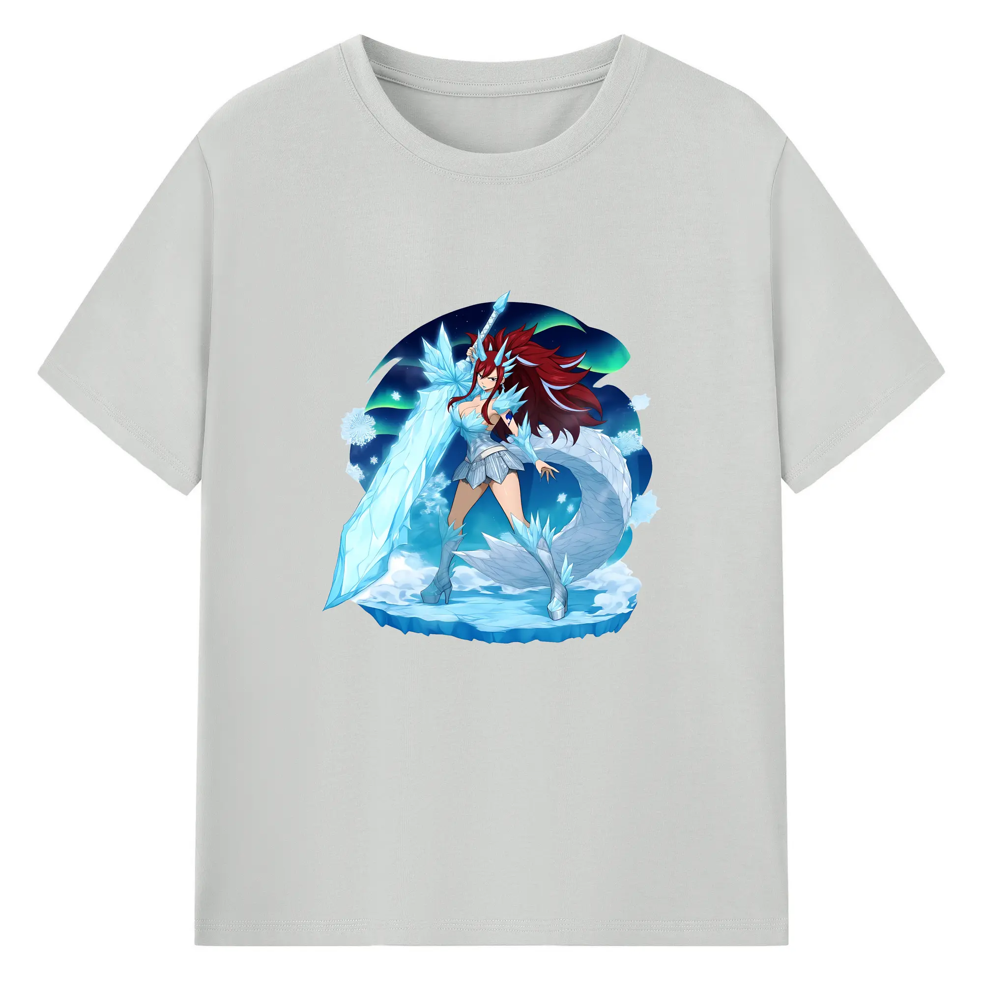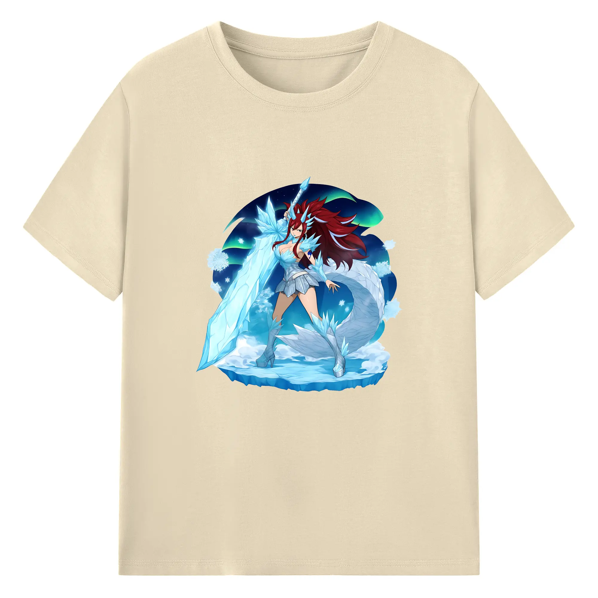 フェアリーテイル グッズ エルザ・スカーレット - 綿100% ヴィンテージ風 半袖Tシャツ ・ フロントプリント ・ 柔らか肌触り ・ 通気性 快適 ・ スポーツ カジュアル 外出用