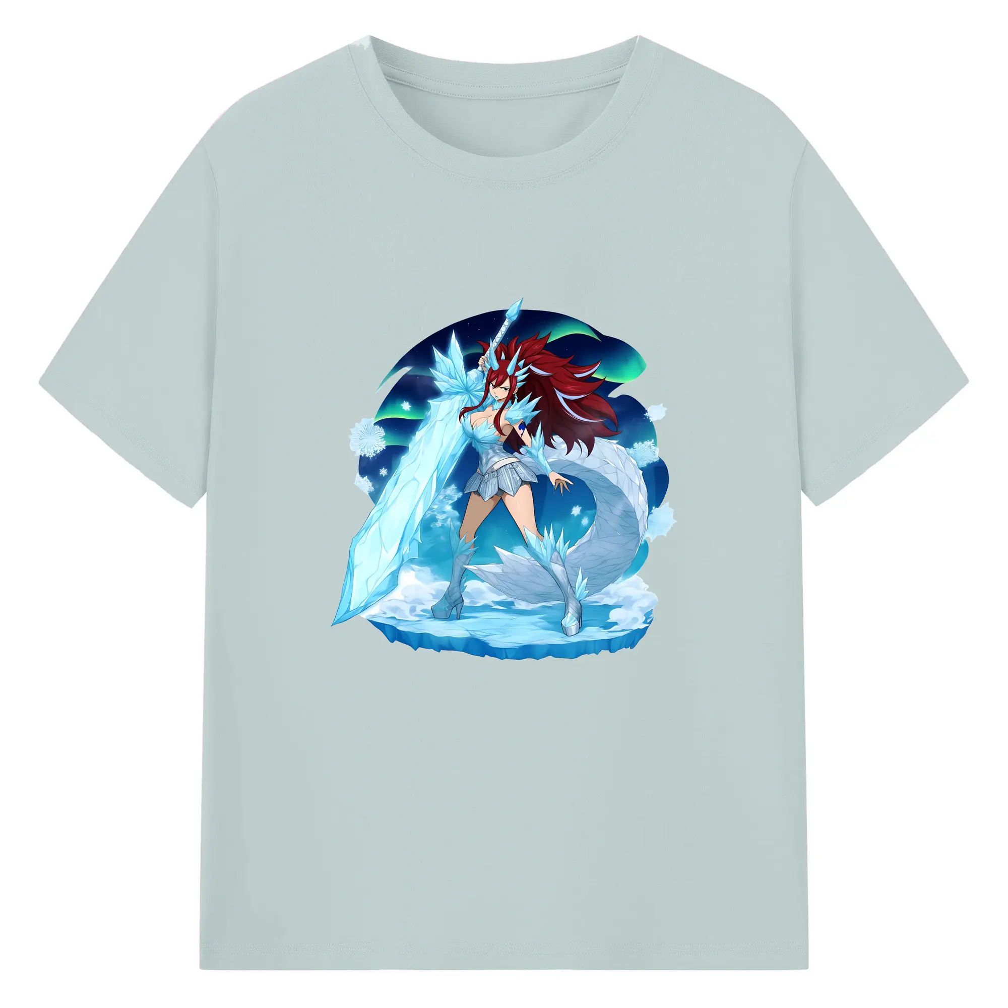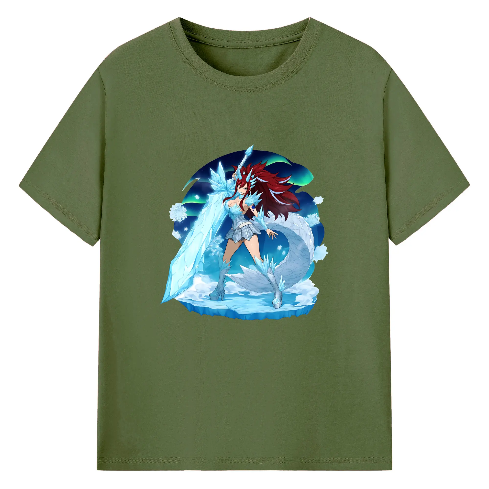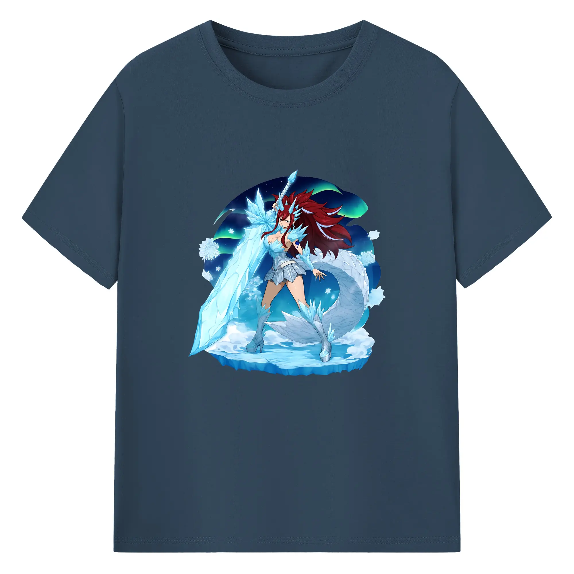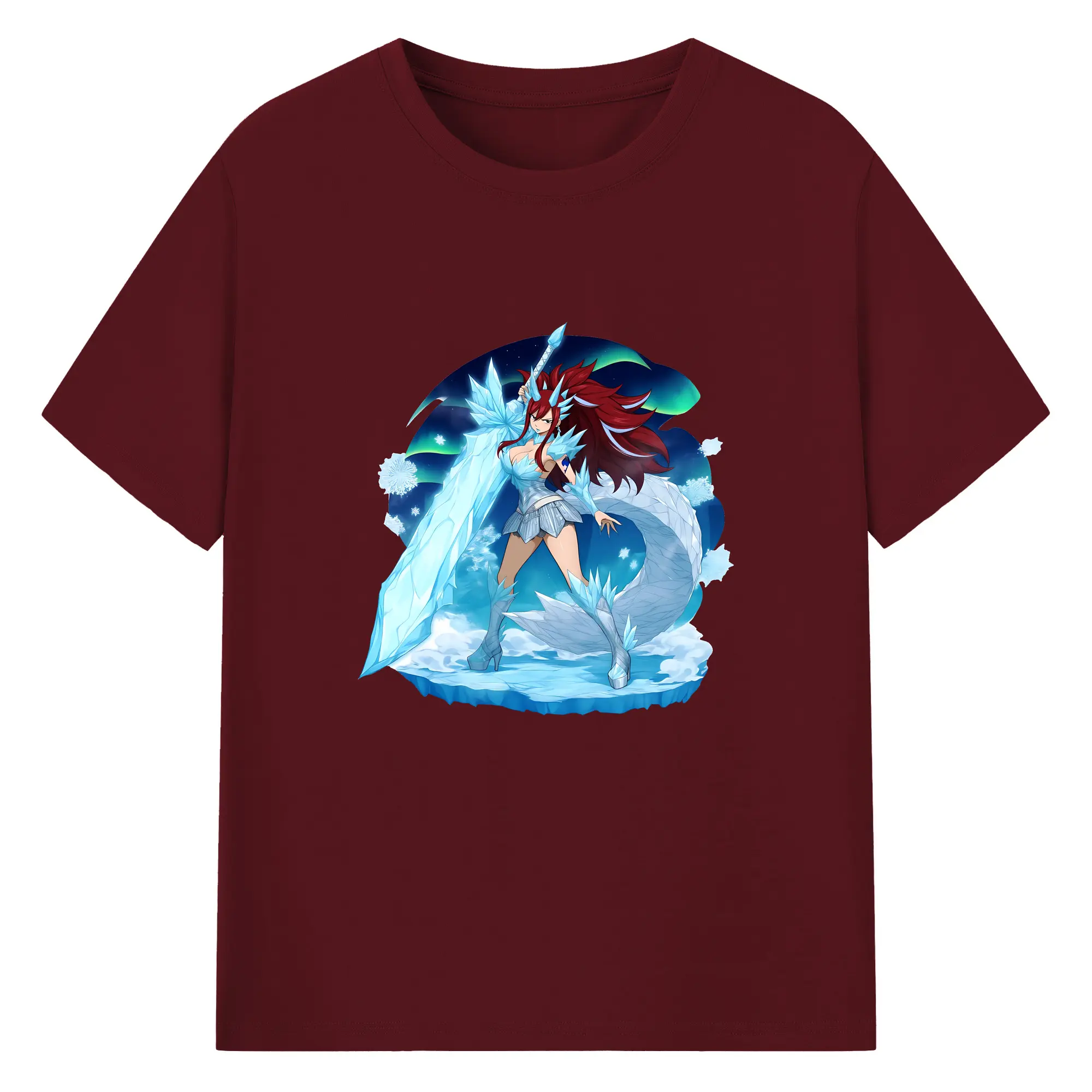 フェアリーテイル グッズ エルザ・スカーレット - 綿100% ヴィンテージ風 半袖Tシャツ ・ フロントプリント ・ 柔らか肌触り ・ 通気性 快適 ・ スポーツ カジュアル 外出用