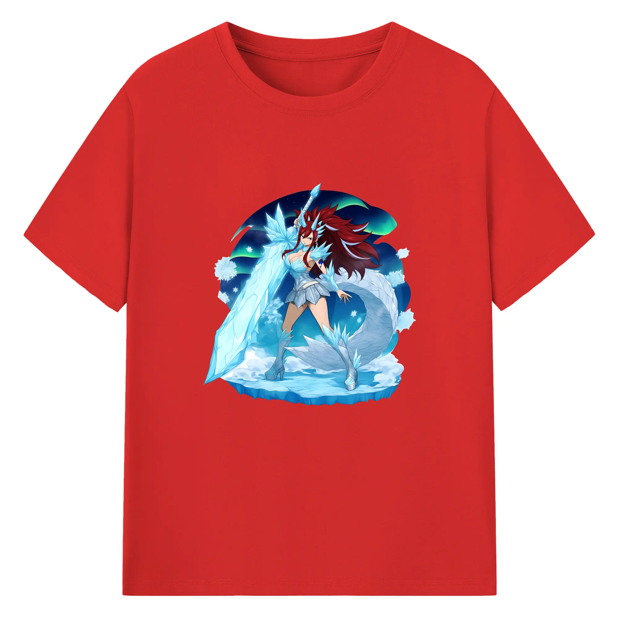フェアリーテイル グッズ エルザ・スカーレット - 綿100% 半袖Tシャツ ・ バックプリント ・ 快適 通気性 ・ 日常使い 散歩 スポーツ用