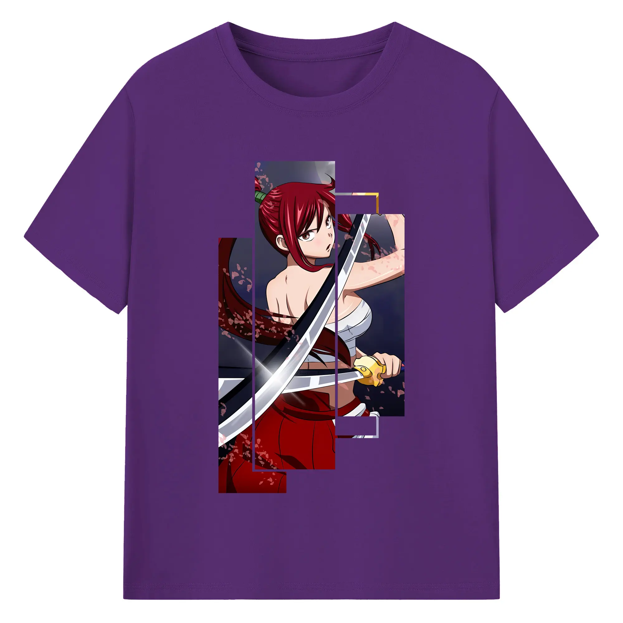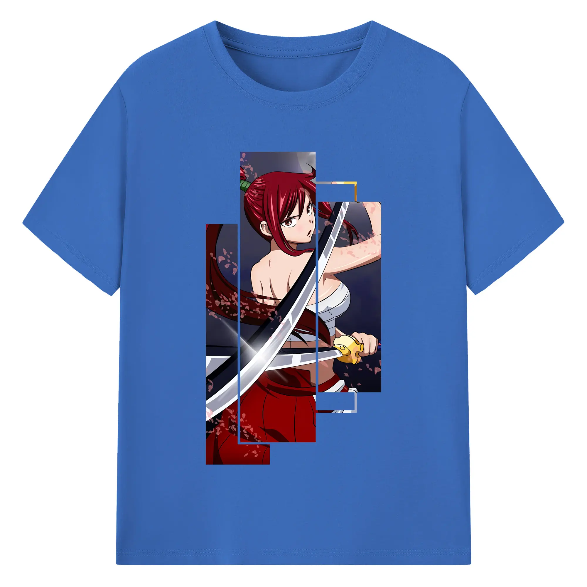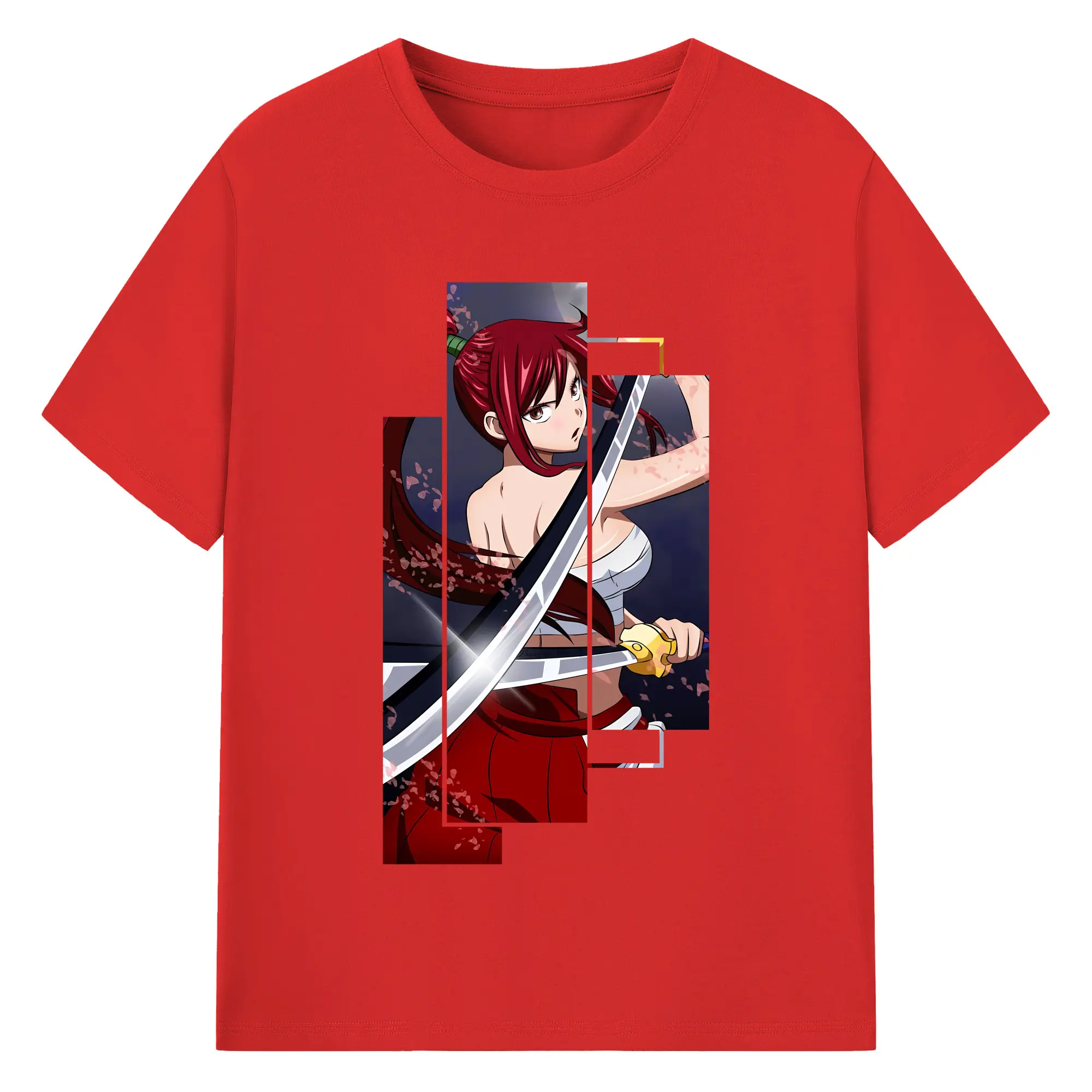 フェアリーテイル グッズ エルザ・スカーレット - 綿100% 半袖Tシャツ ・ バックプリント ・ 快適 通気性 ・ 日常使い 散歩 スポーツ用