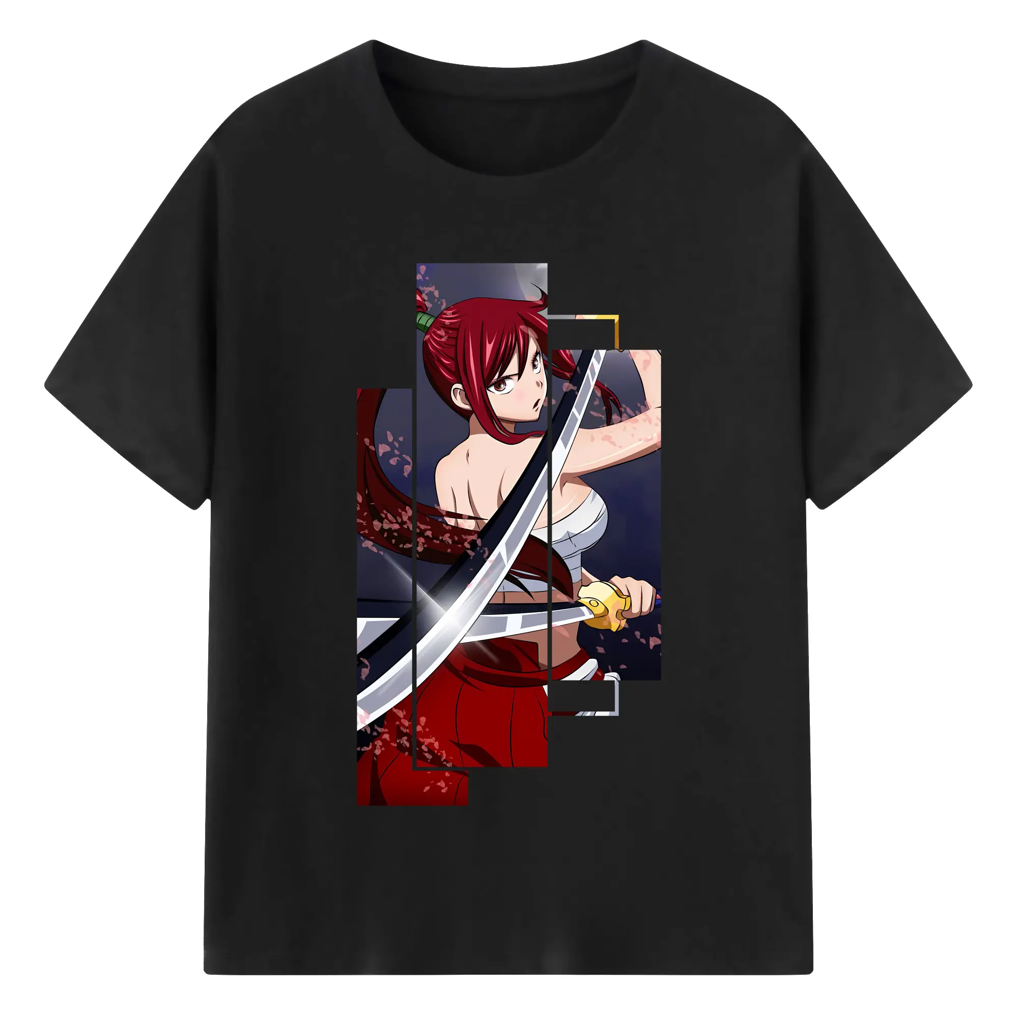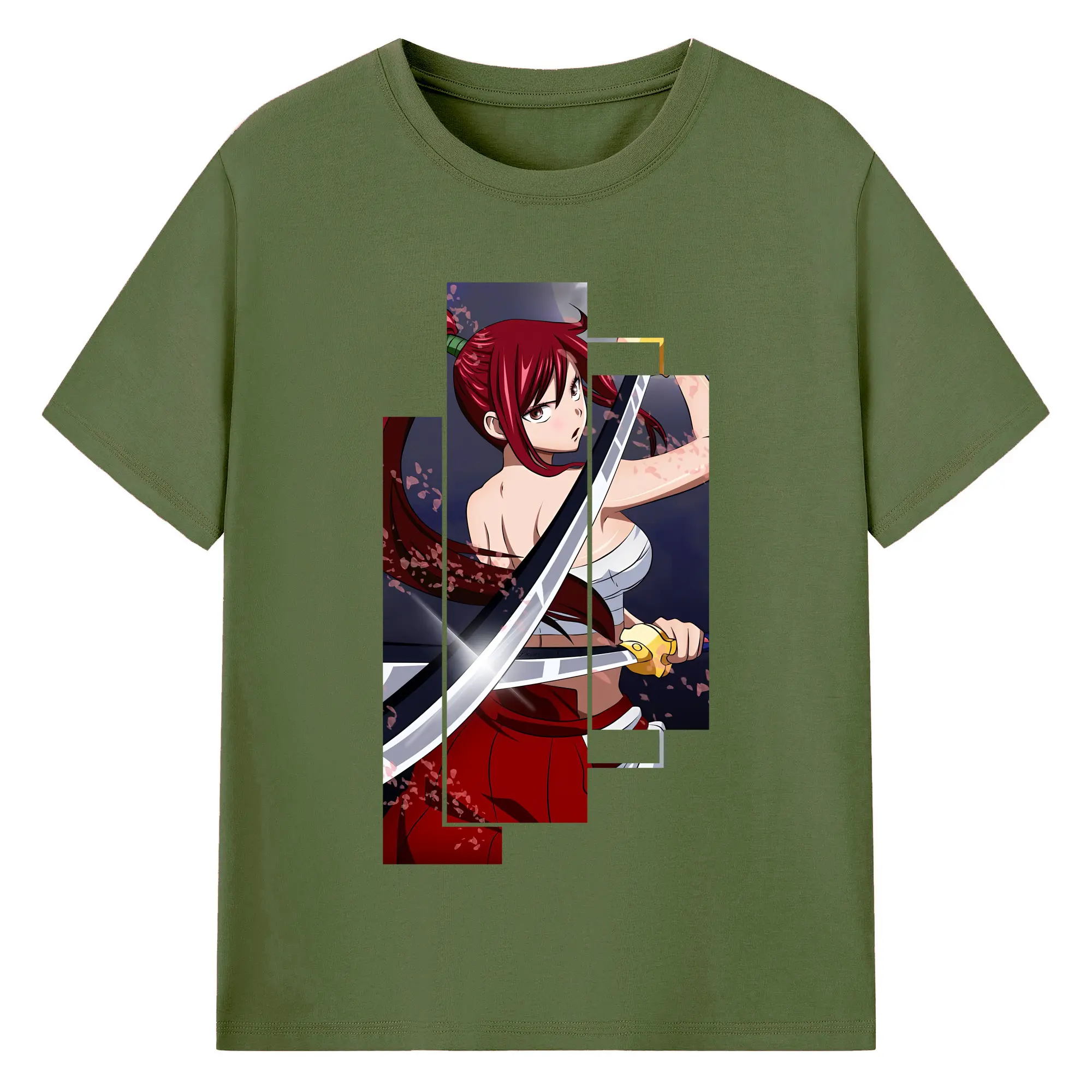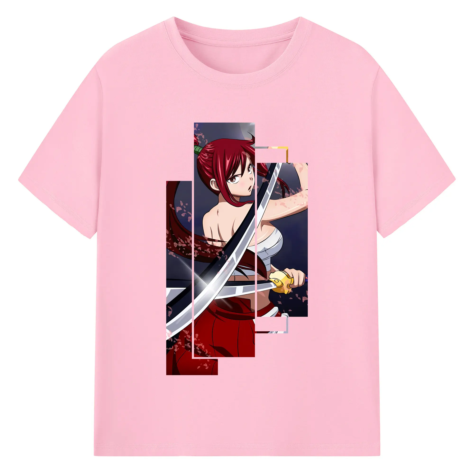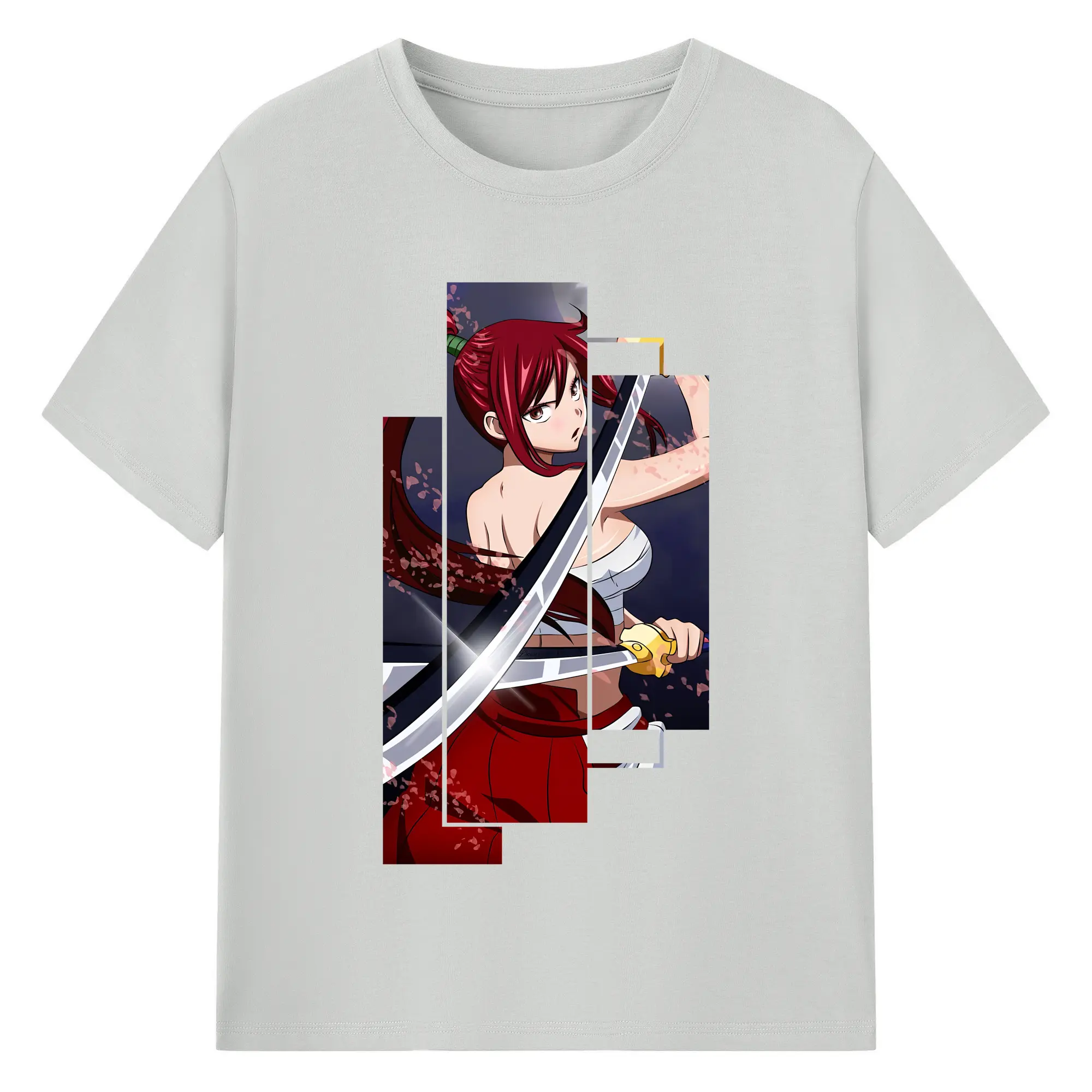フェアリーテイル グッズ エルザ・スカーレット - 綿100% 半袖Tシャツ ・ バックプリント ・ 快適 通気性 ・ 日常使い 散歩 スポーツ用