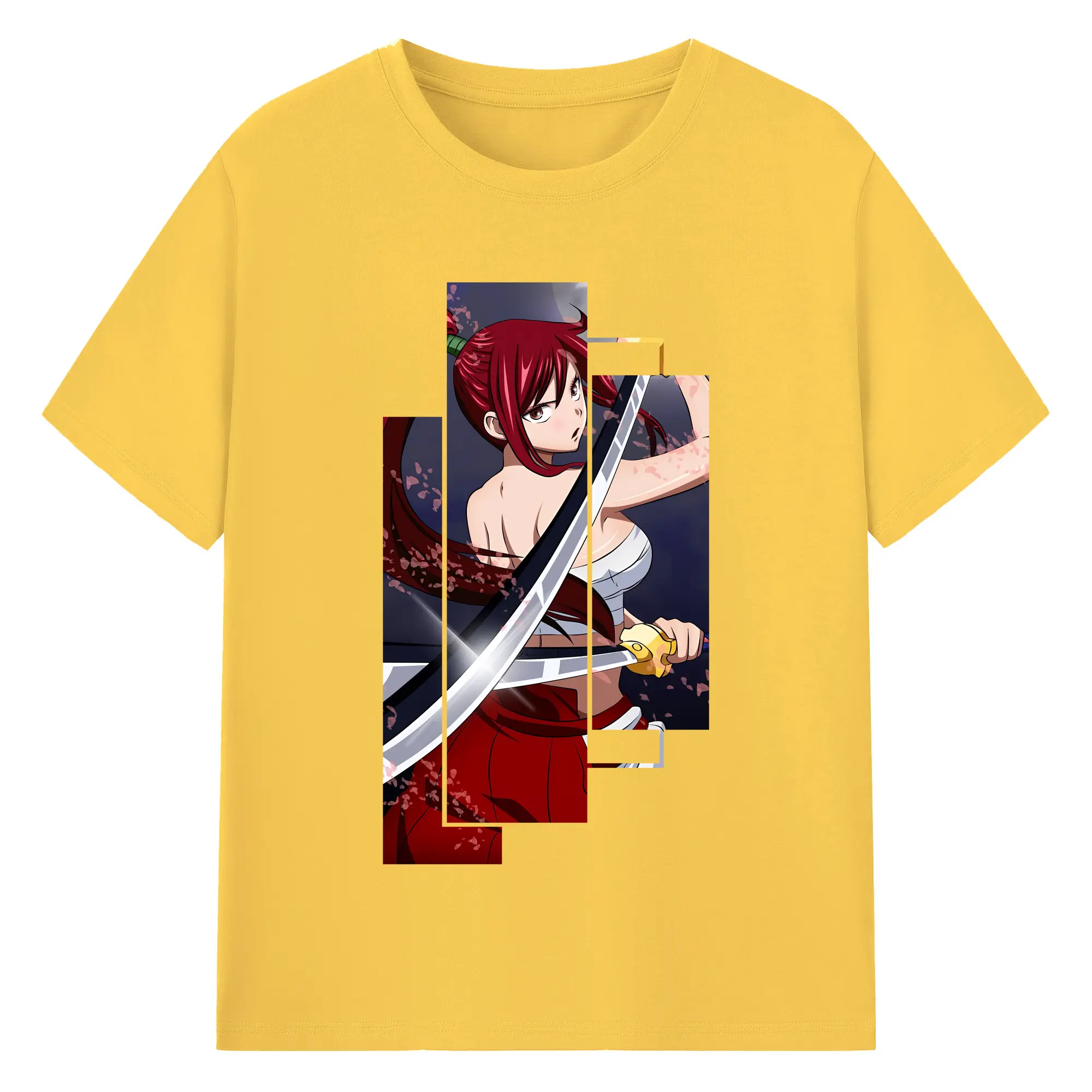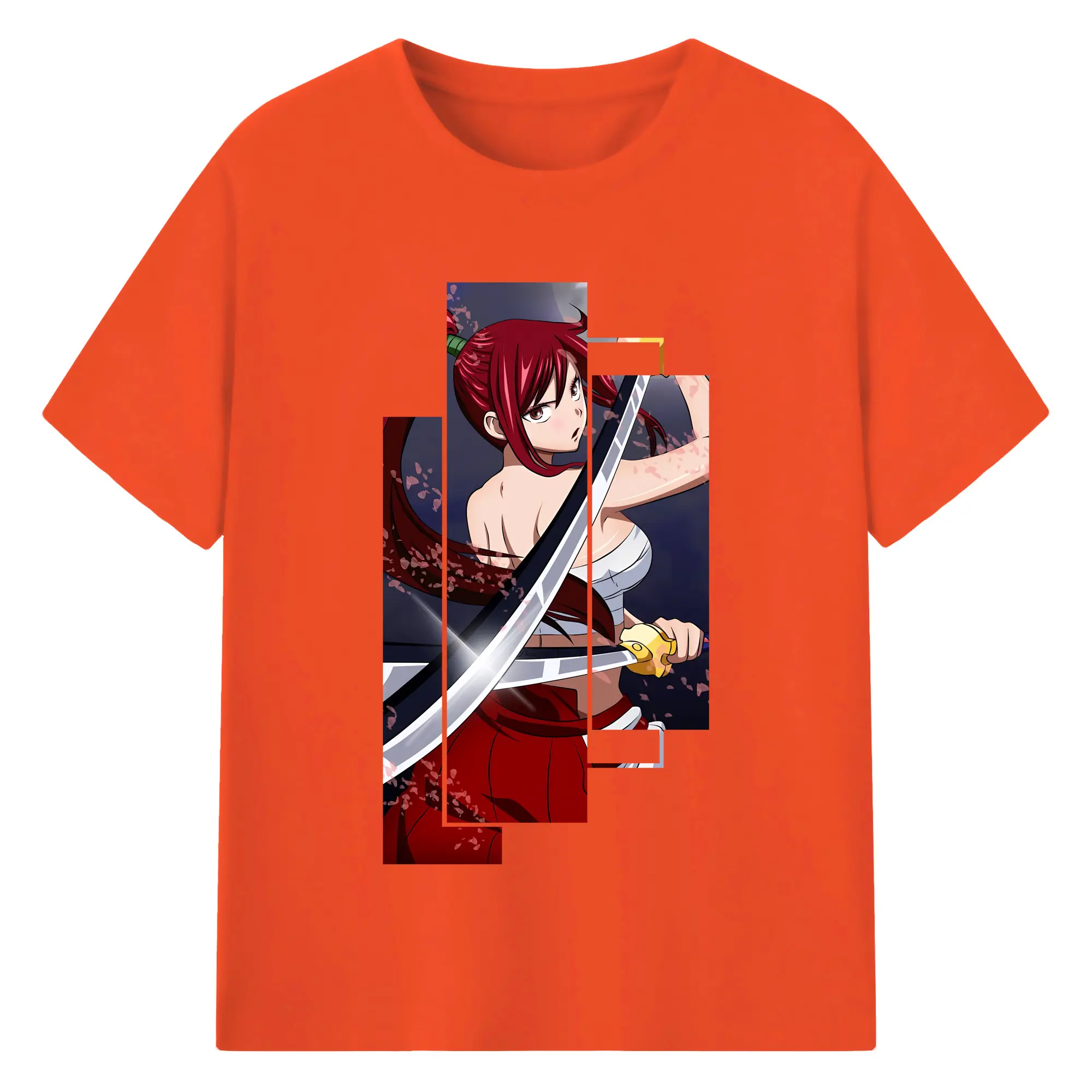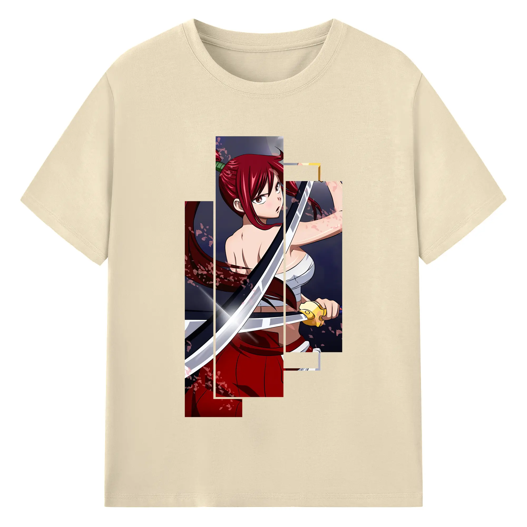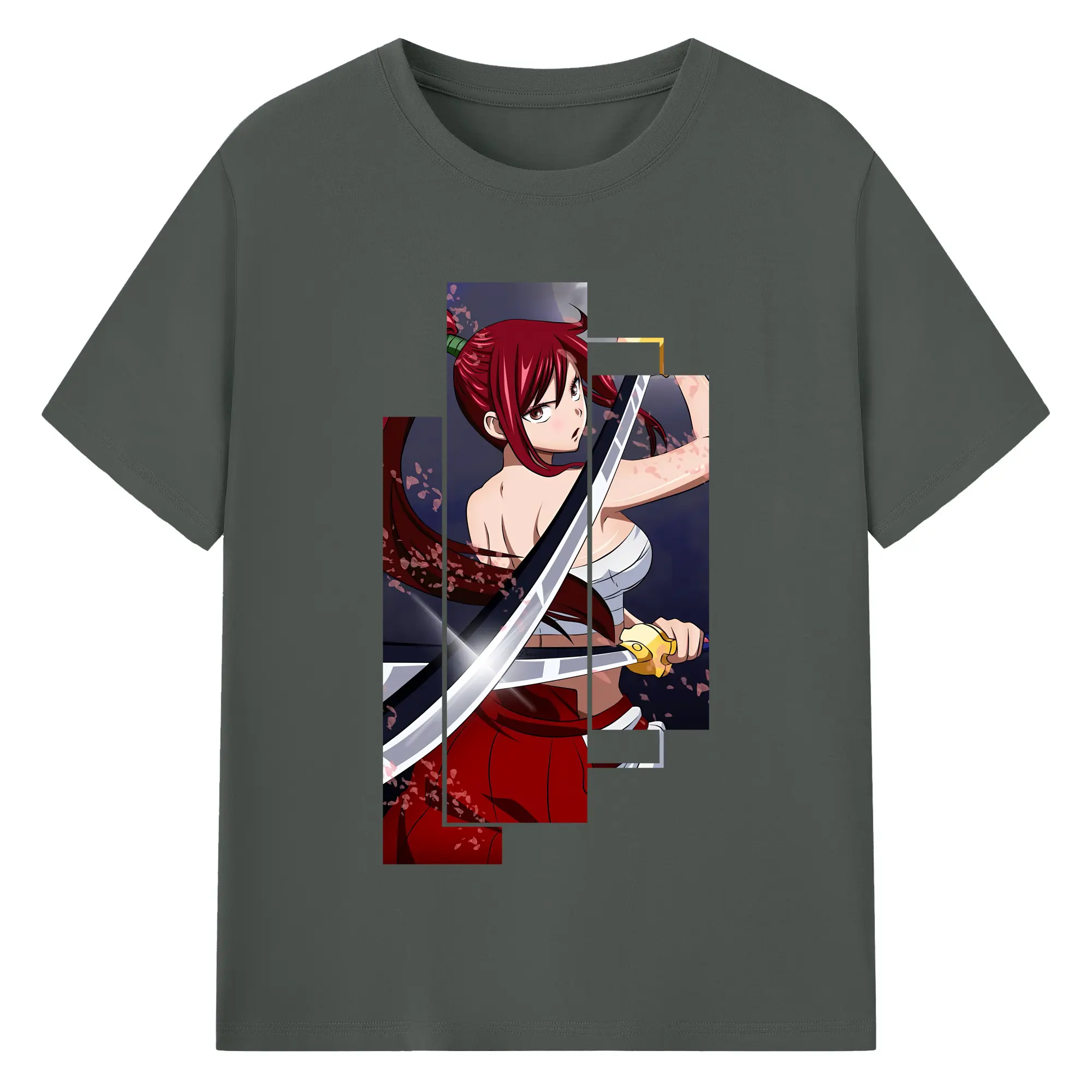 フェアリーテイル グッズ エルザ・スカーレット - 綿100% ヴィンテージ風 半袖Tシャツ ・ フロントプリント ・ 柔らか肌触り ・ 通気性 快適 ・ スポーツ カジュアル 外出用