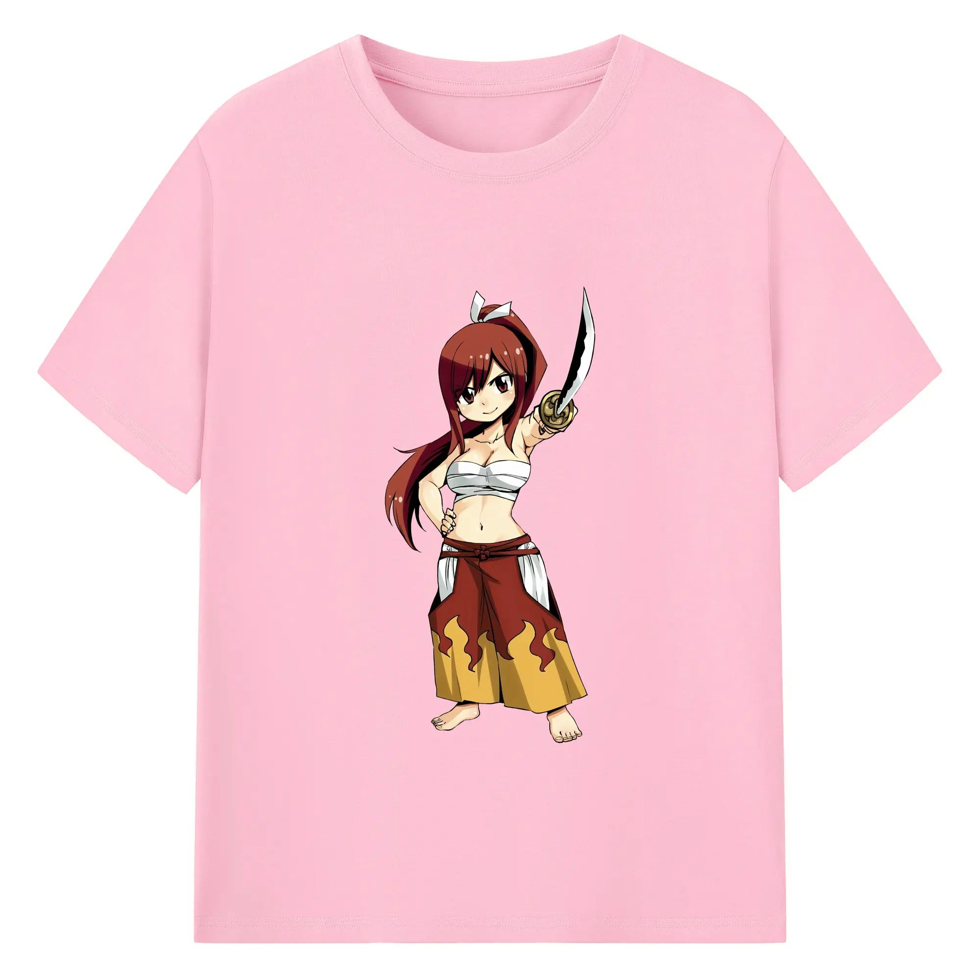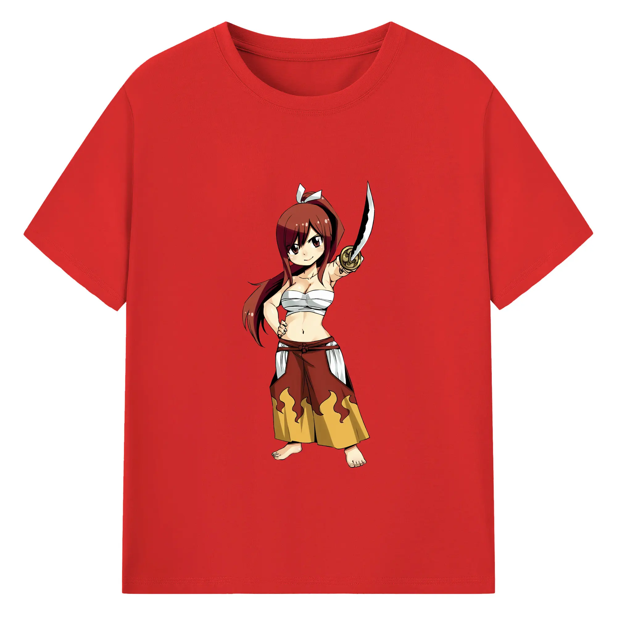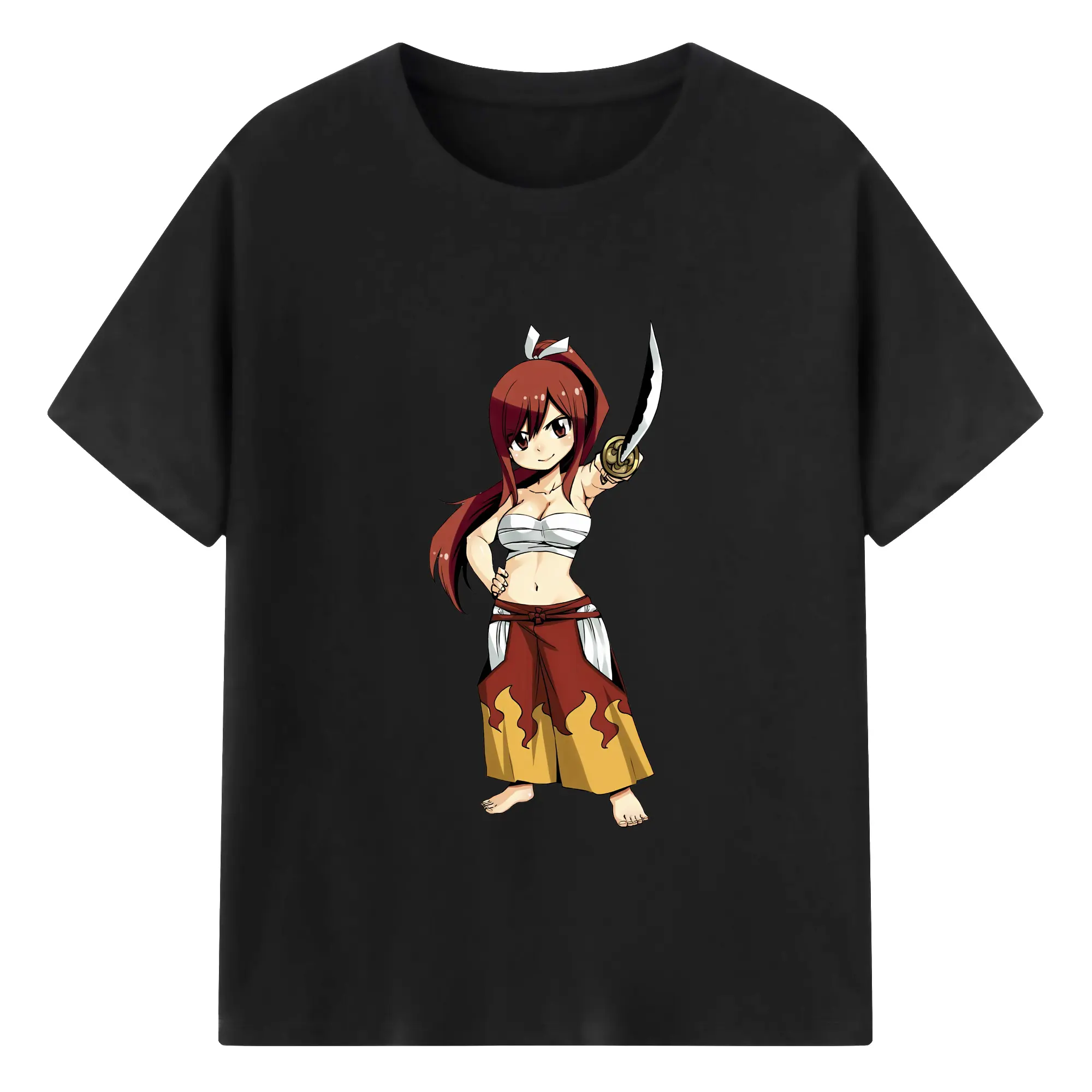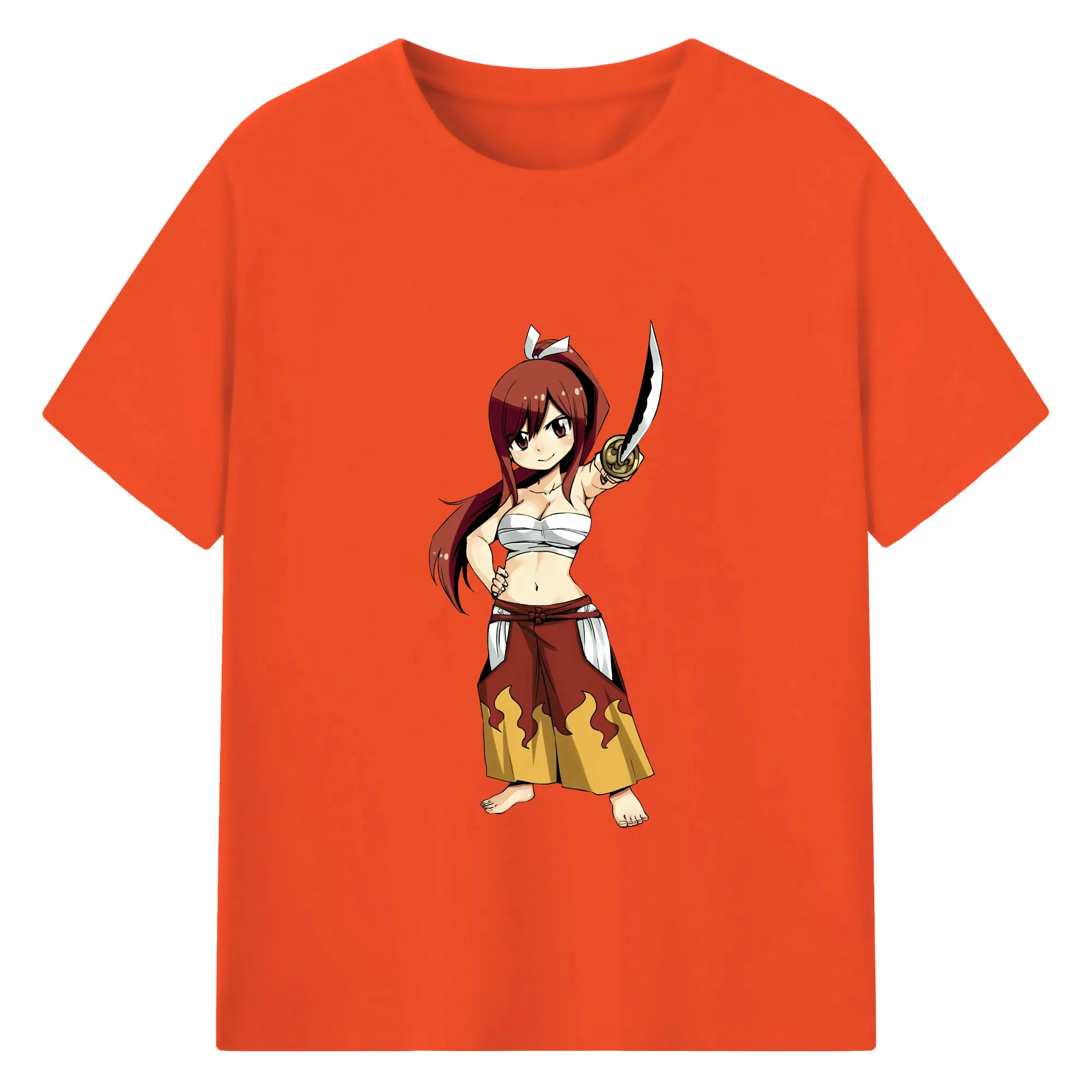 フェアリーテイル グッズ エルザ・スカーレット - 綿100% ヴィンテージ風 半袖Tシャツ ・ フロントプリント ・ 柔らか肌触り ・ 通気性 快適 ・ スポーツ カジュアル 外出用