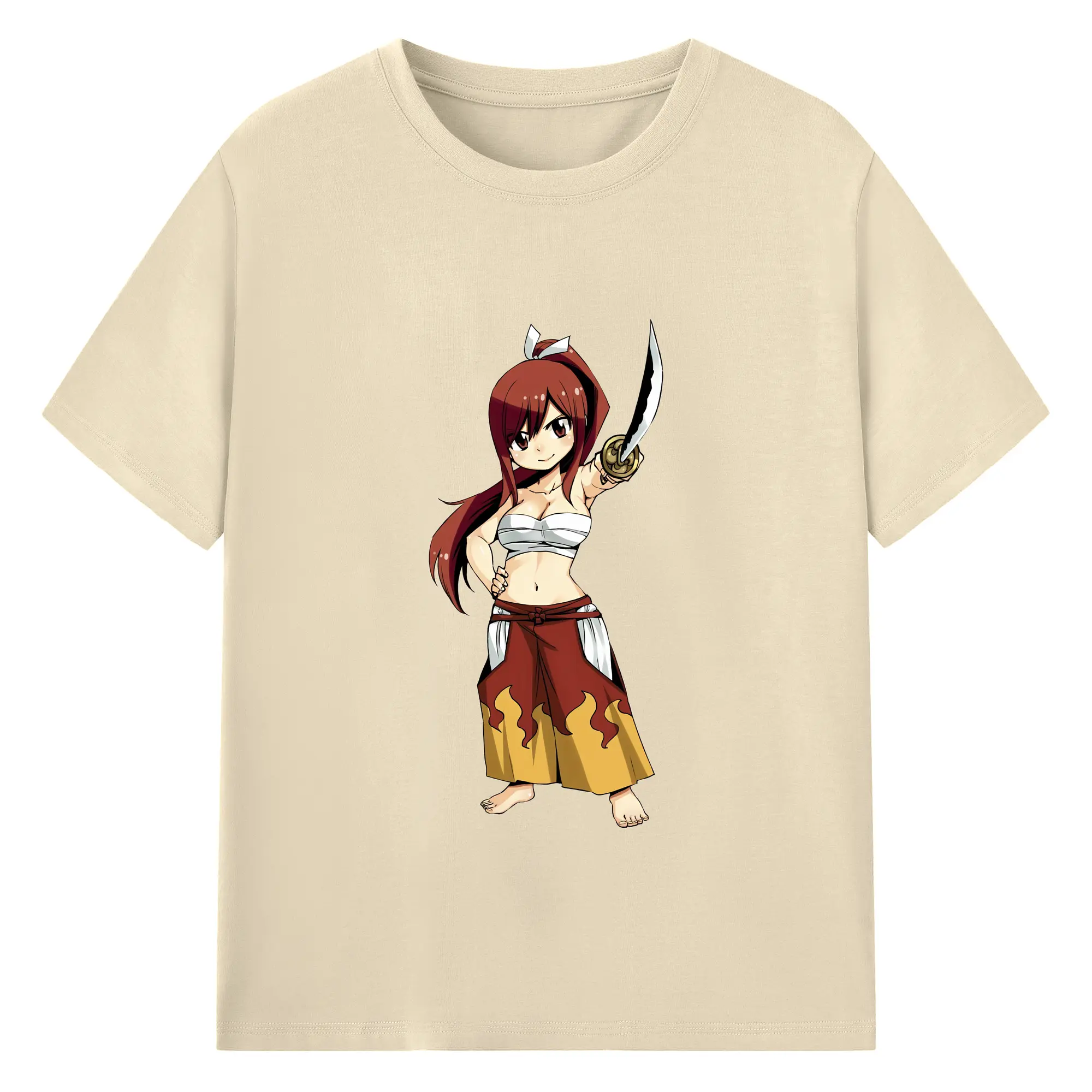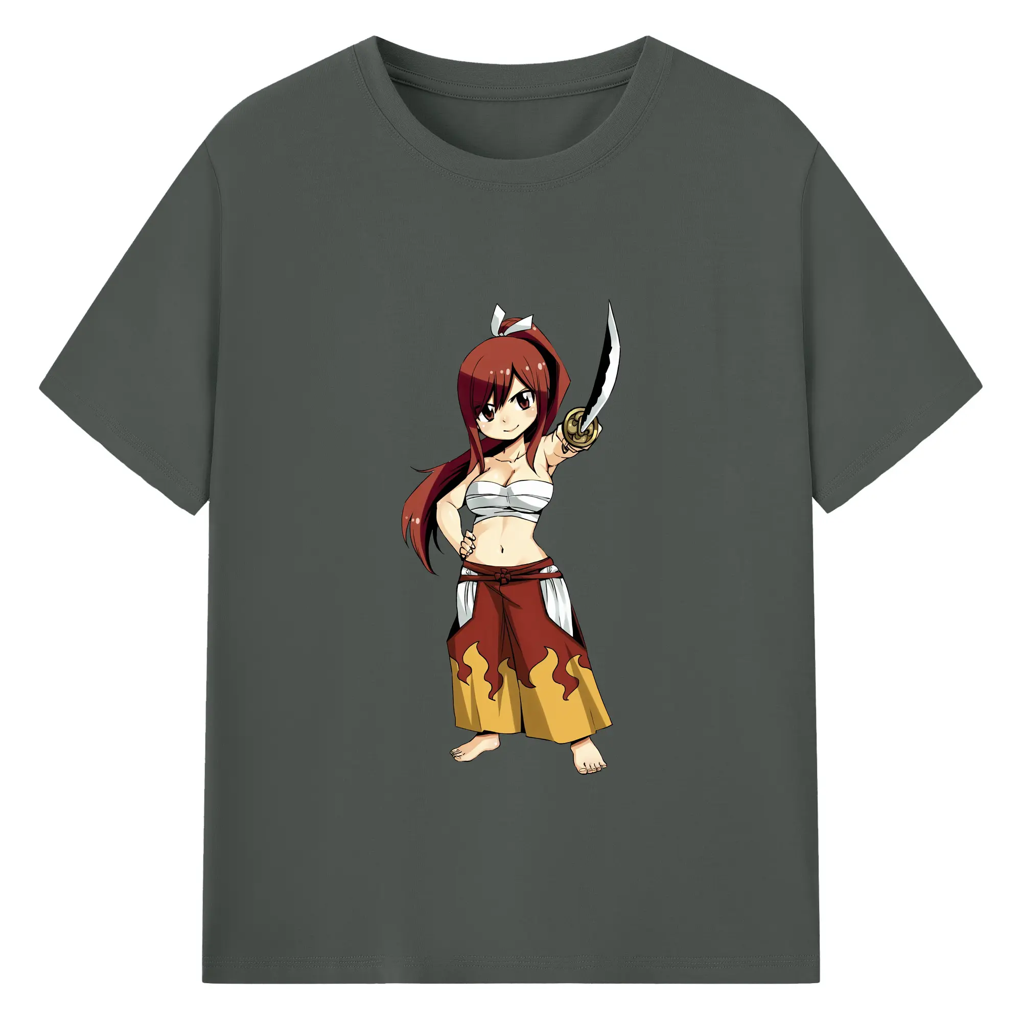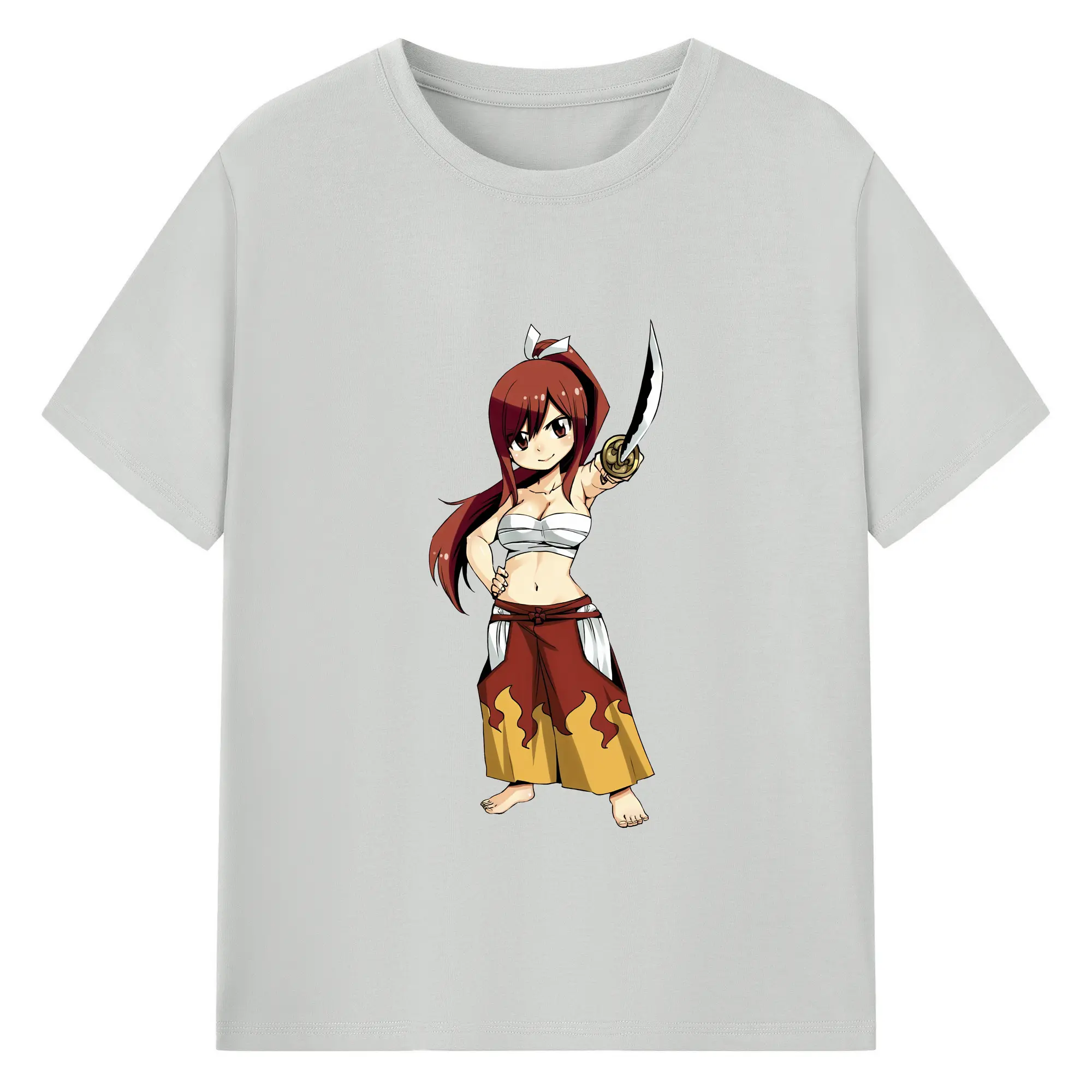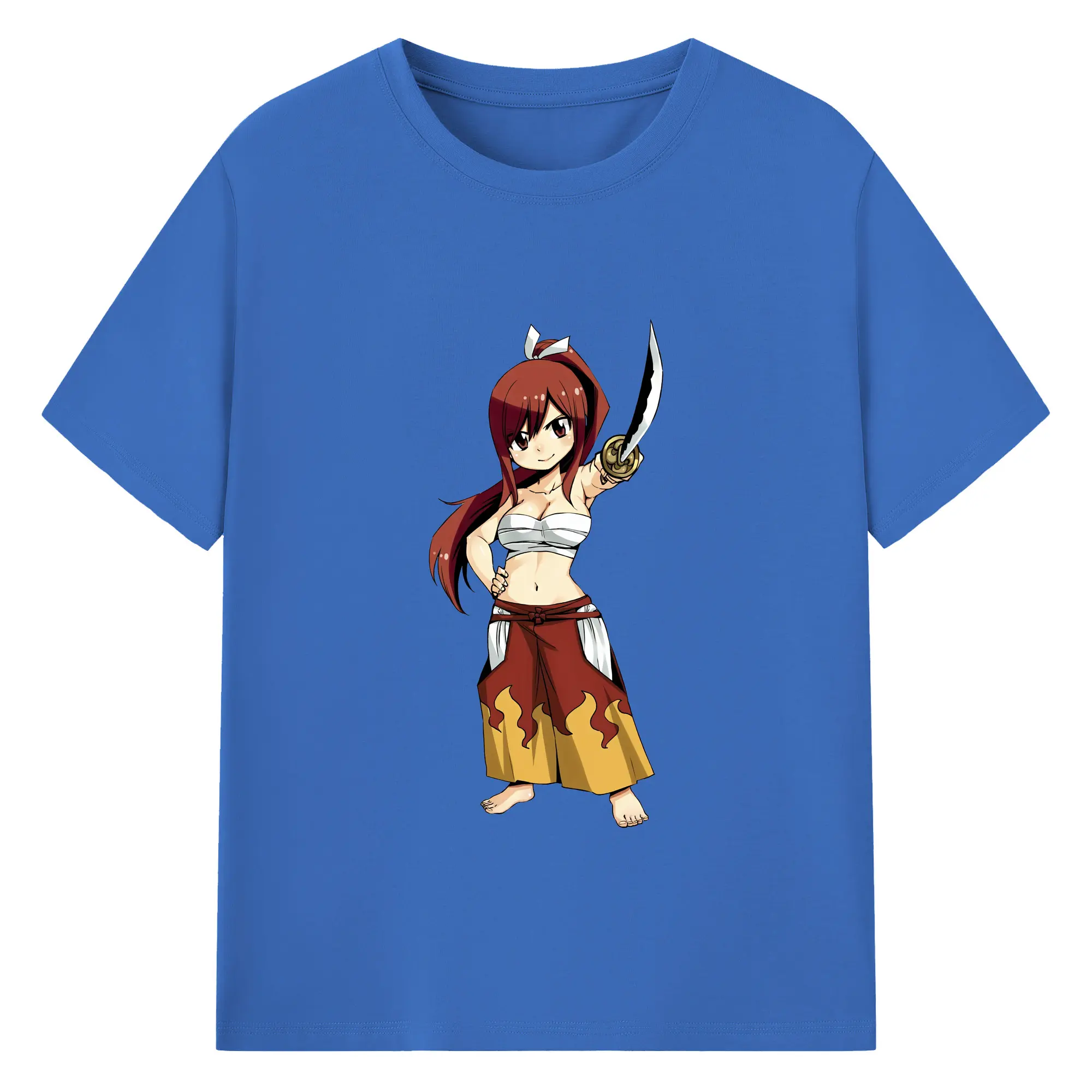 フェアリーテイル グッズ エルザ・スカーレット - 綿100% ヴィンテージ風 半袖Tシャツ ・ フロントプリント ・ 柔らか肌触り ・ 通気性 快適 ・ スポーツ カジュアル 外出用
