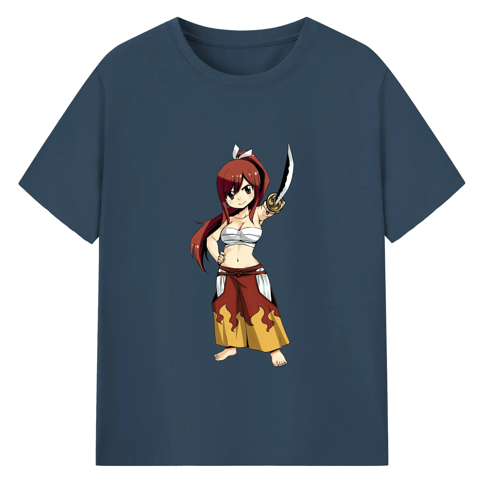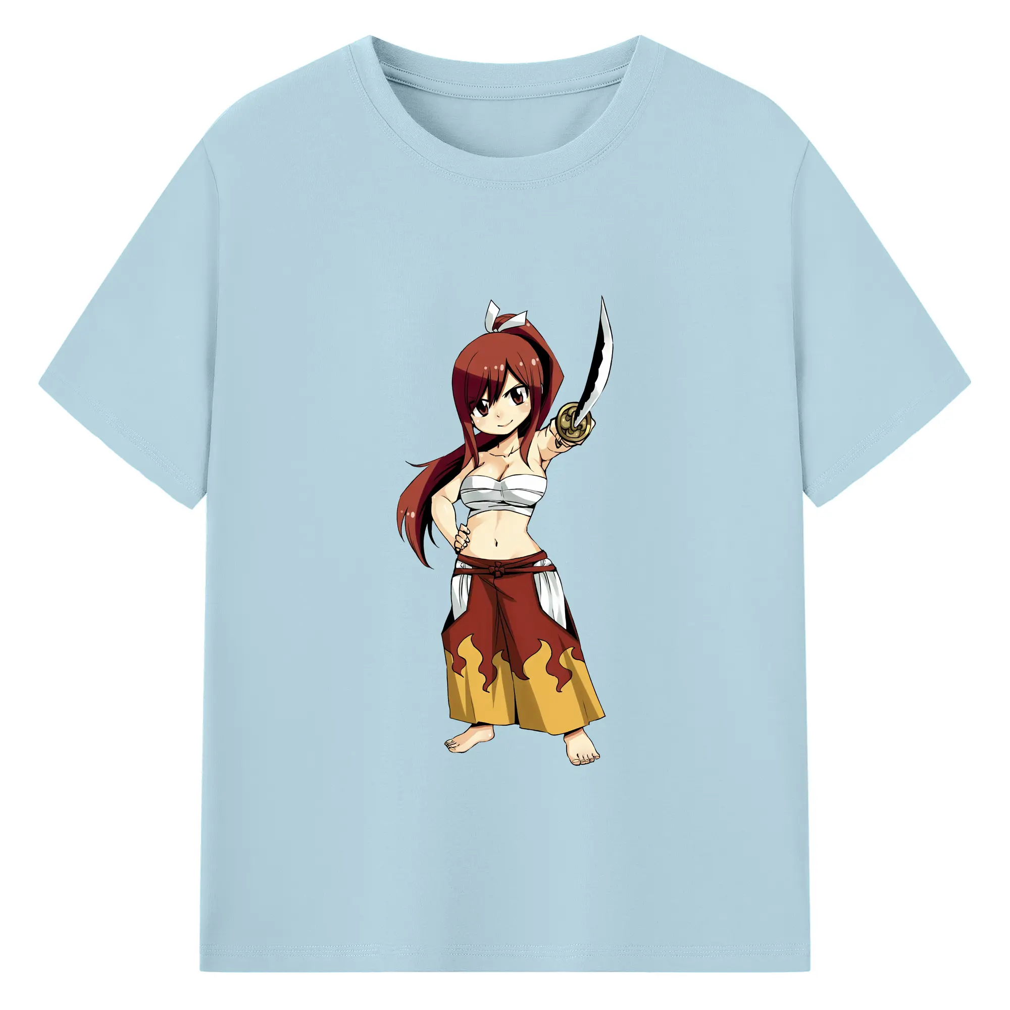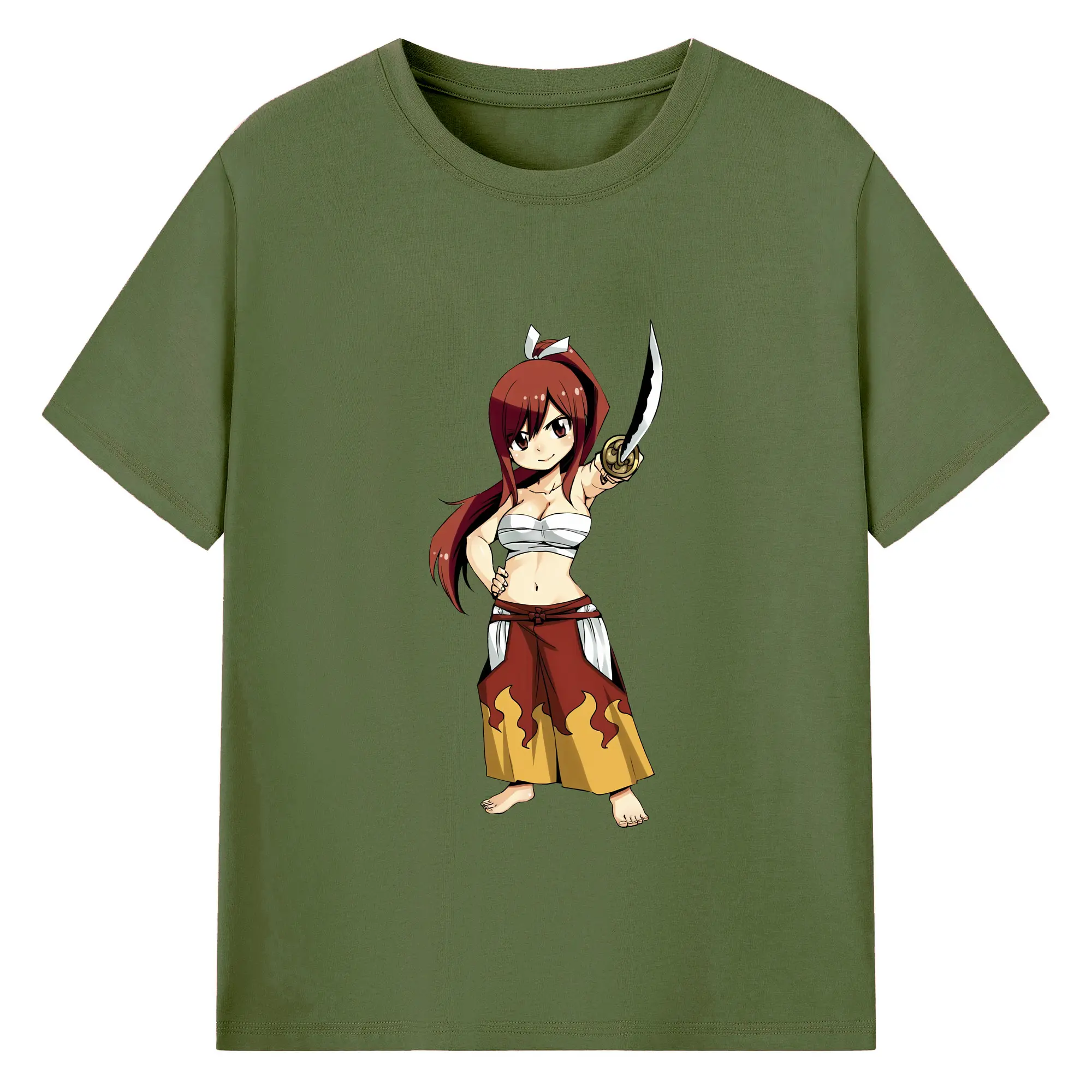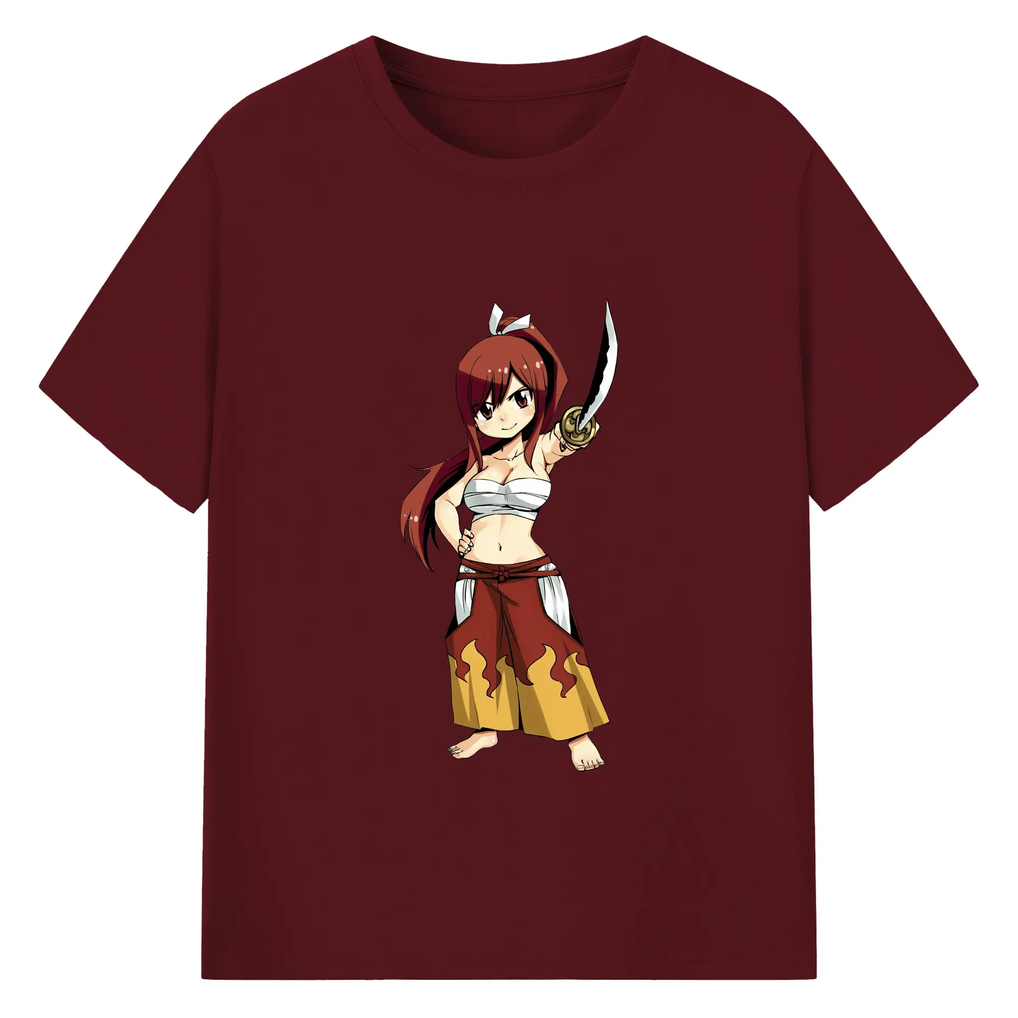 フェアリーテイル グッズ エルザ・スカーレット - 綿100% ヴィンテージ風 半袖Tシャツ ・ フロントプリント ・ 柔らか肌触り ・ 通気性 快適 ・ スポーツ カジュアル 外出用