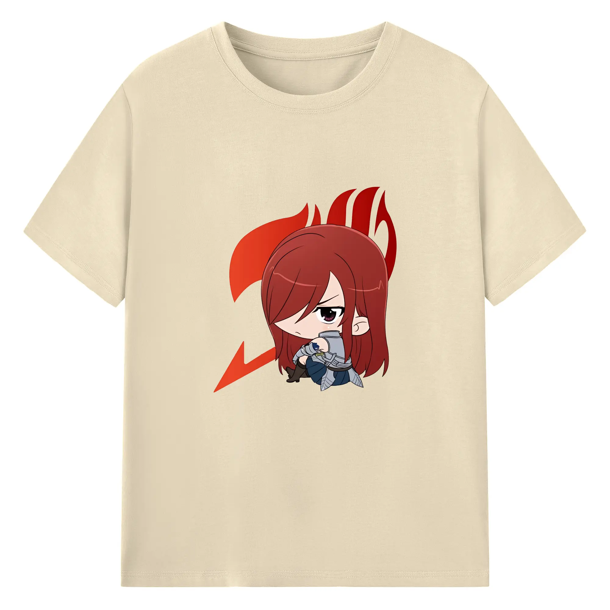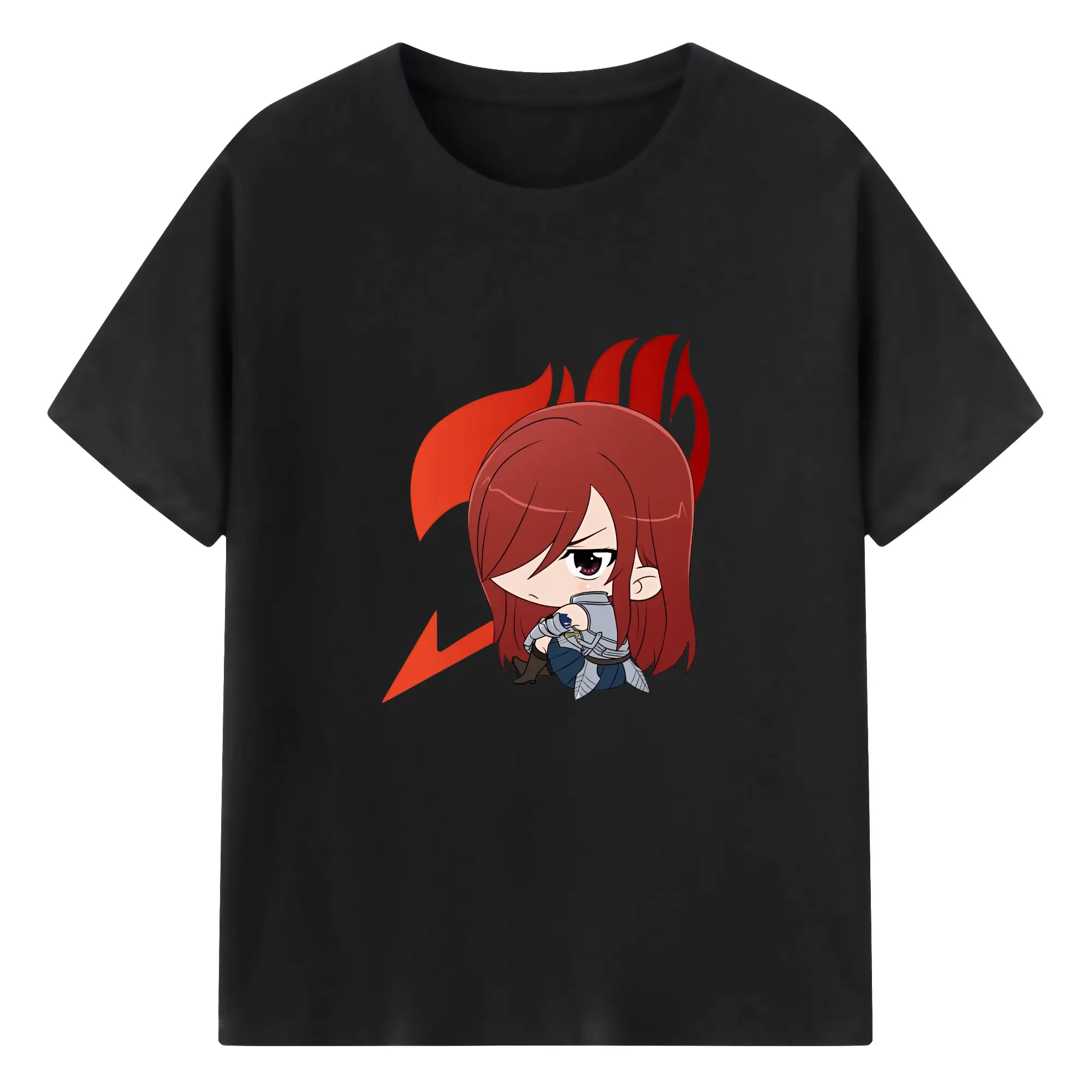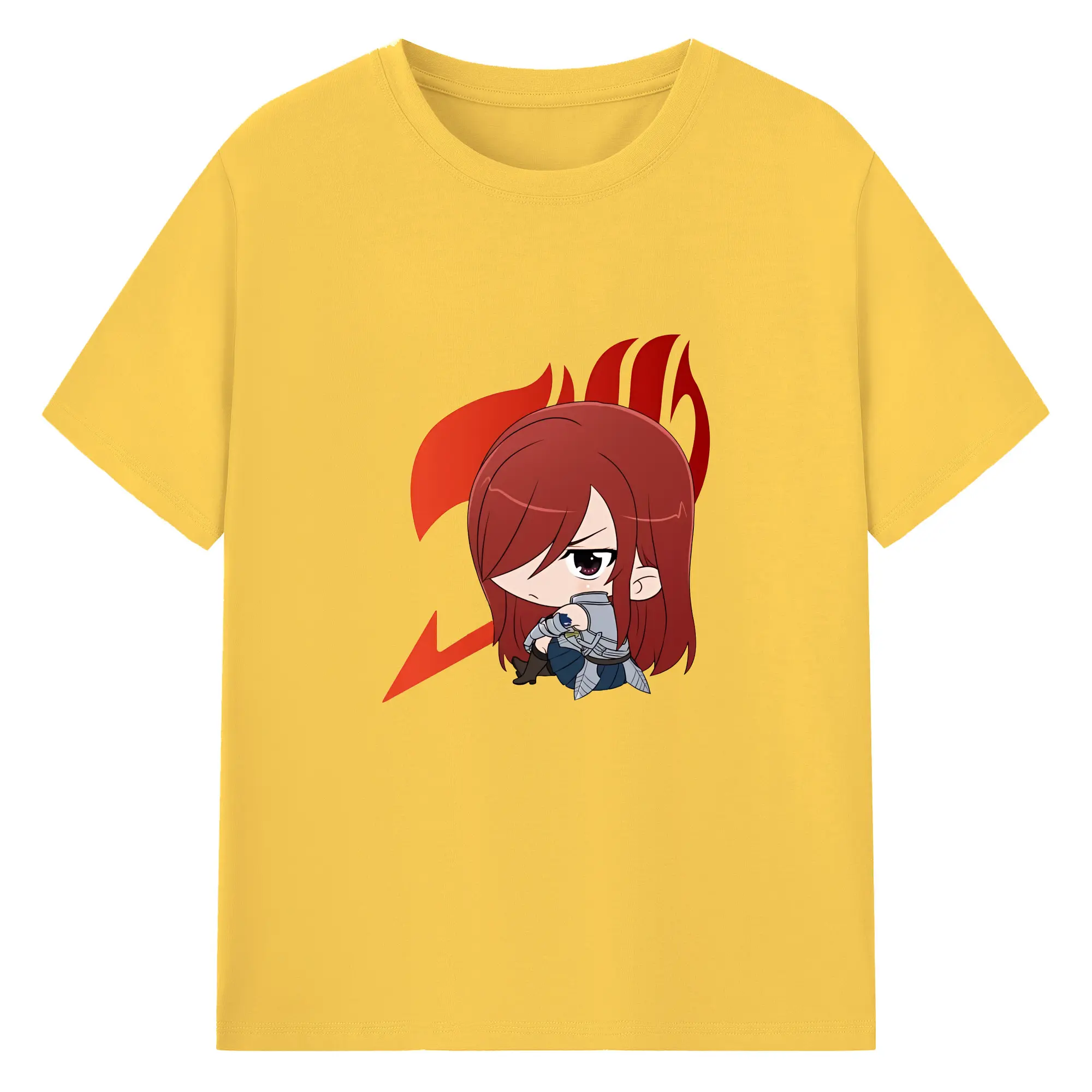 フェアリーテイル グッズ エルザ・スカーレット - 綿100% ヴィンテージ風 半袖Tシャツ ・ フロントプリント ・ 柔らか肌触り ・ 通気性 快適 ・ スポーツ カジュアル 外出用