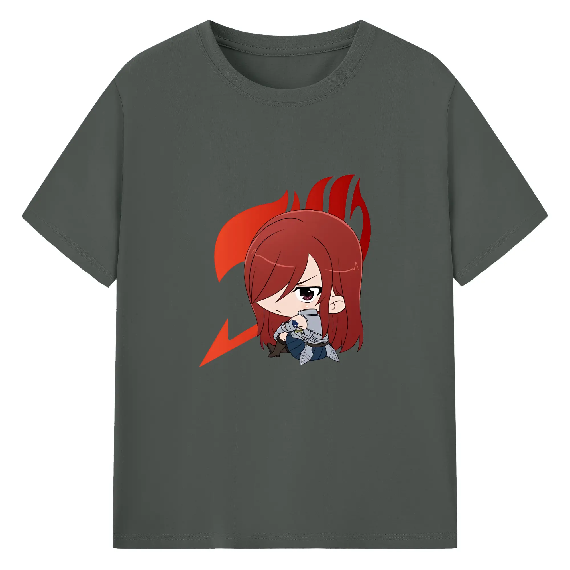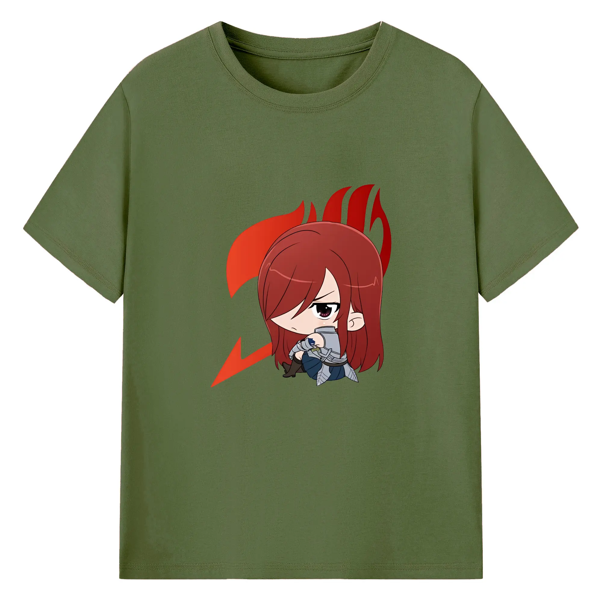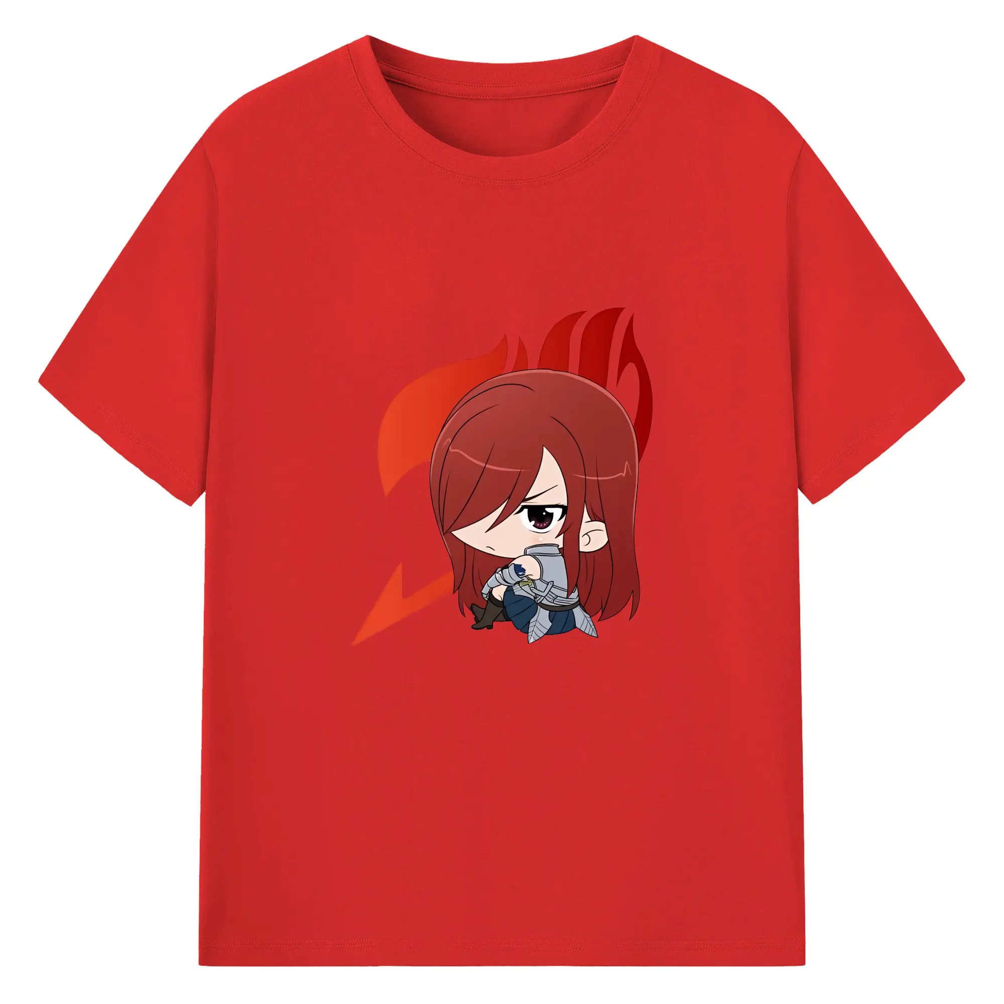 フェアリーテイル グッズ エルザ・スカーレット - 綿100% ヴィンテージ風 半袖Tシャツ ・ フロントプリント ・ 柔らか肌触り ・ 通気性 快適 ・ スポーツ カジュアル 外出用
